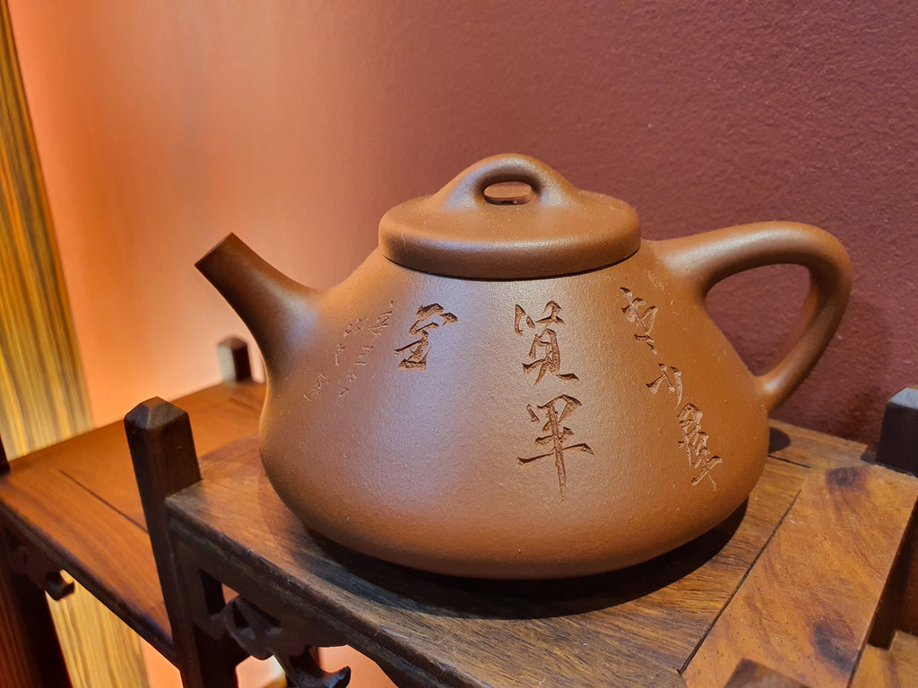 This overly large Di Cao Qing Zi Ni, JIan Liu De Zhong, is really superbly made. The walls are thin, even, the lid fits to a T, no leakage anywhere when pouring. For a large pot it's very easy to handle.