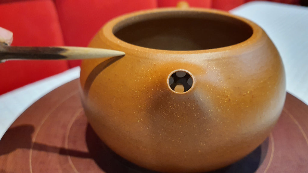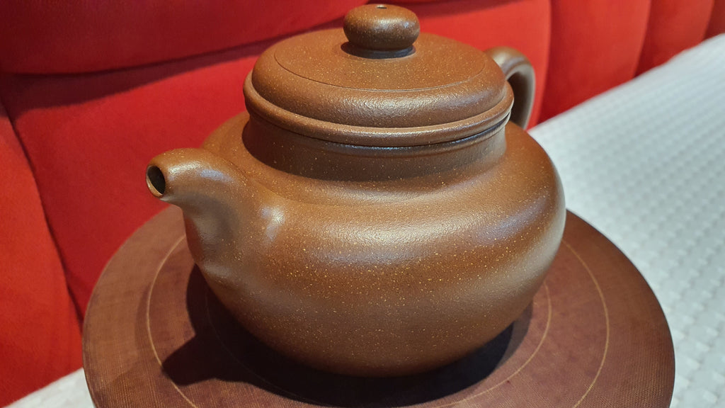 Our Craftsmen also know that OTHER yixing folks who engage in jigger-machined and half-handmade 流水线 "Liu Shui Xian" factory line operations enjoy very stable and higher income.  However, our true Craftsmen: they choose to stay with Fully-Handmaking Craft.  They know that those jigger-machined pots sell easily at USD120 online on many platforms even though each cost only, 15-30rmb, and they know half-handmade pots also sell easily at USD260 even though each cost only 150-200rmb each.  To half-handmake a pot: using halves-moulds for the body, lid, spout and handle, and putting them together in a "Liu Shui Xian" factory line operation is easy: an unskilled worker requires just six months of apprenticeship in such a factory line.  Half-handmaking entails the forceful application of pressure during the "Tang Pei" 搪胚 stage: using a jolly to physically squeeze the two half clay slabs against the two half-moulds for the main body, totally defeating the point of ZiSha.  The markups are tremendous, the stories spun online easily by multiple retailers, make these fake pots' operations spring up everywhere, and the bosses earn unspeakable amounts of profits (thus free shipping is easily offered, tao bao, etc).  The number of people never having a Fully-Handmade pot are everywhere and hence never had a reference true Fully-Handmade work to compare with.  (Again: 15-20rmb is the cost price of a jigger-machined pot while 150rmb is the cost price of a half-handmade pot, thus when many a jigger-machined or half-handmade pot are sold on many channels both within China or overseas at usd150, usd200, usd250 (1000 to 1700rmb), the jigger-machined pot is marked up/multiplied by 100 times, while the half-handmade pot is marked up/multiplied by 10 times.)