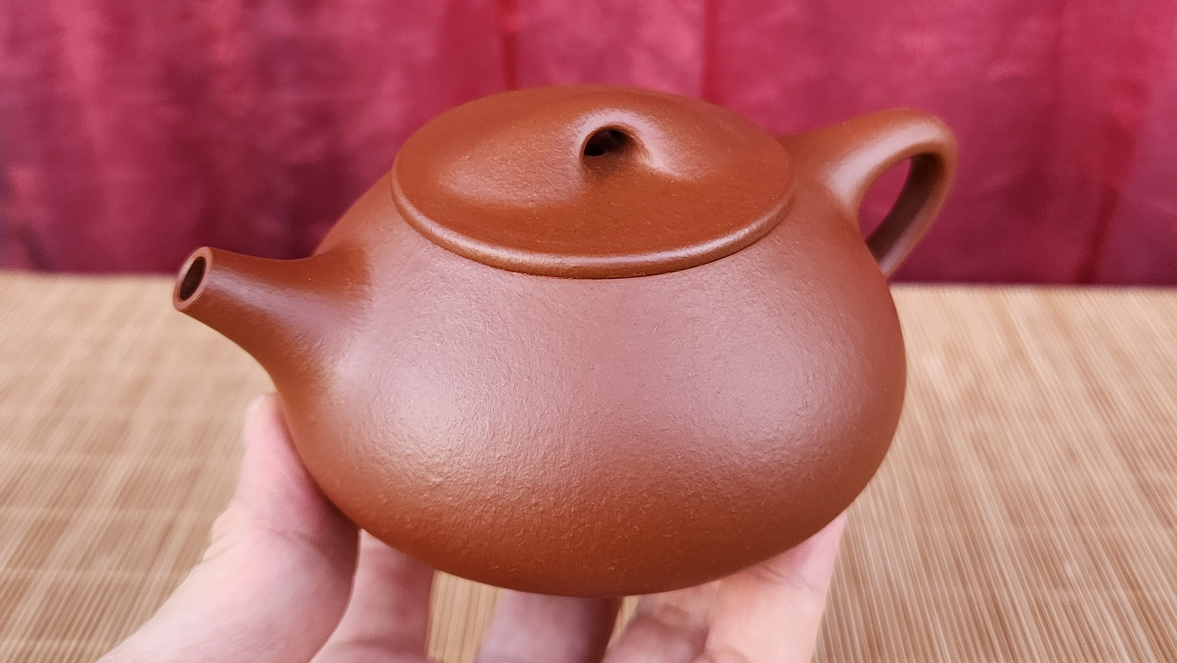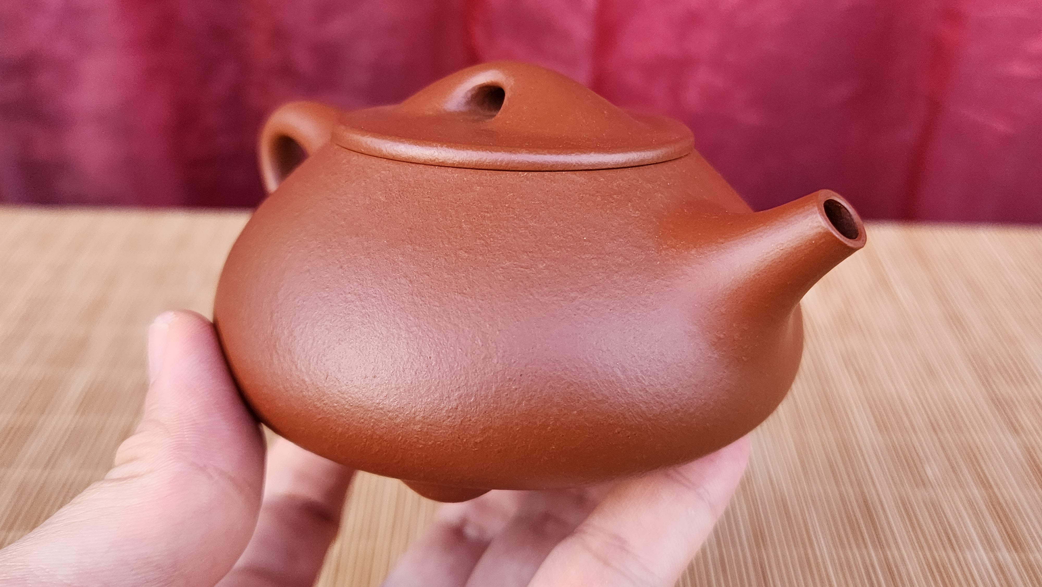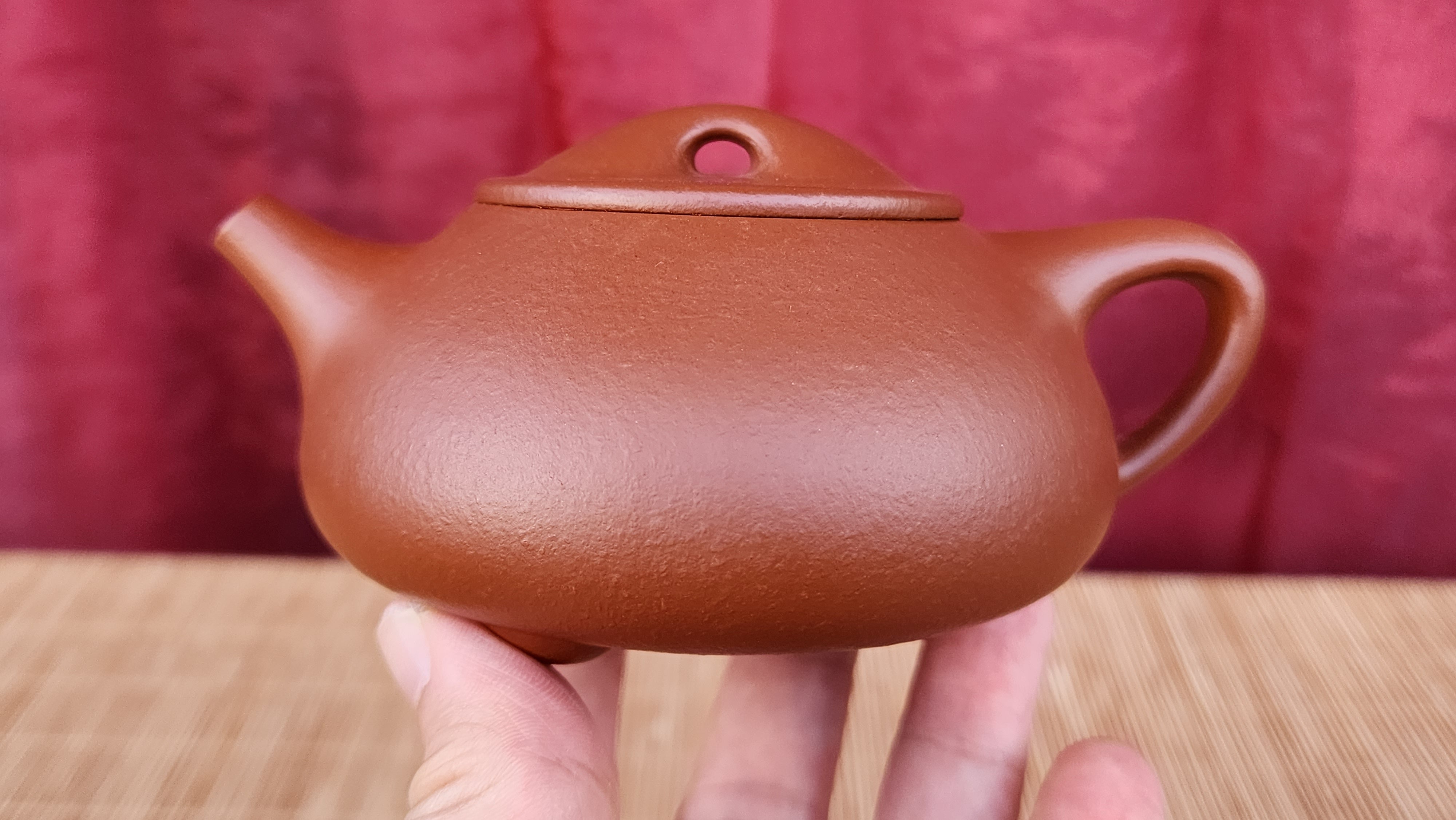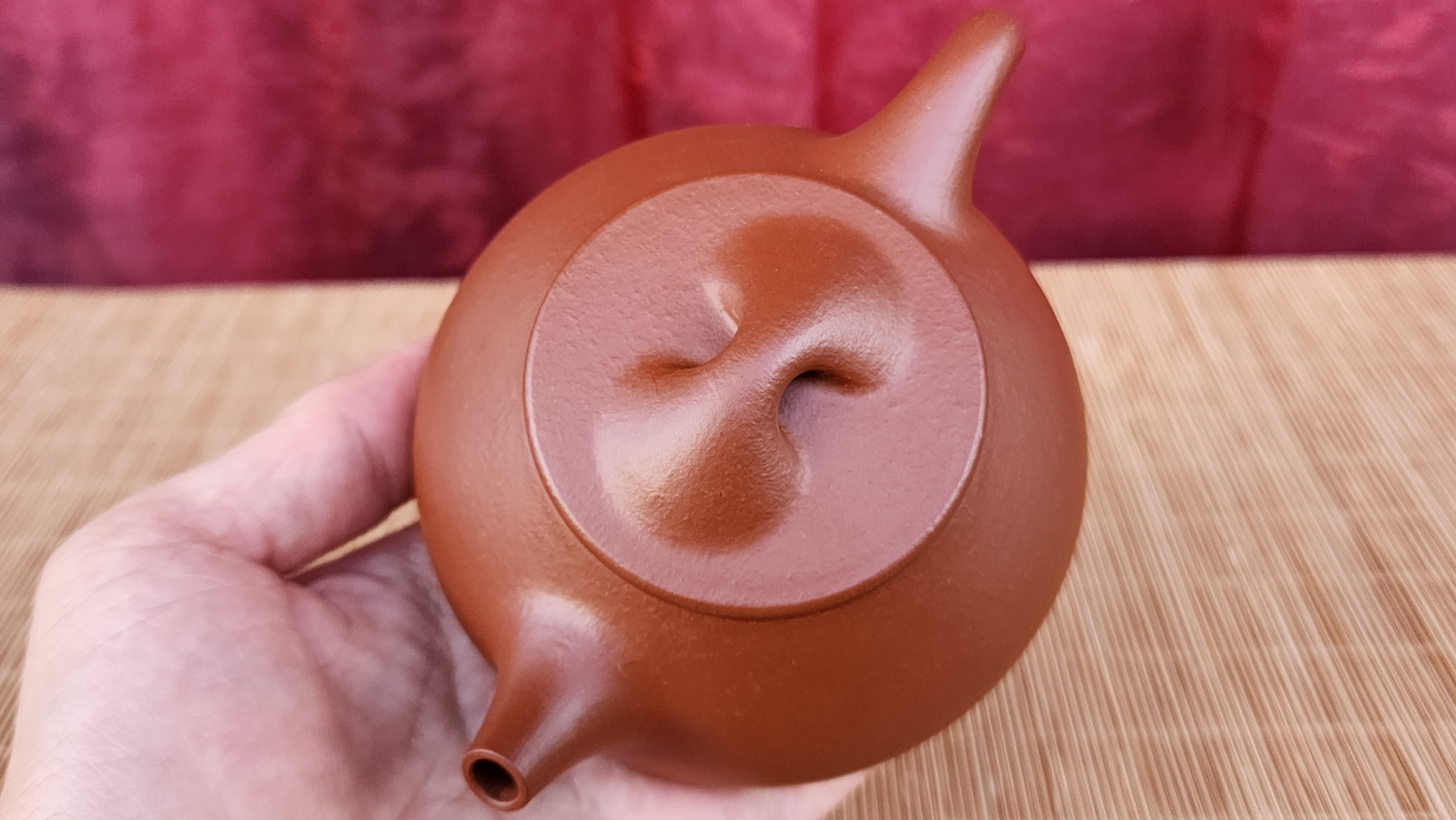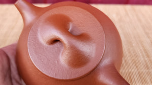 Fun fact: in the fraternity, we usually lift up the lid of a JingZhou ShiPiao using 3 fingers: thumb, index finger and middle finger. The thumb and the middle finger grip the left and right edges of the lid, while the index finger gently pressed on the top/middle stabilising it, while the user lifts off the lid from the pot's body.