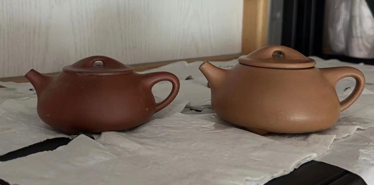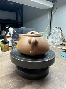 ~ Delicately made, NOT those thick-/irregular-thickness-walled like those cheating new technology 车一刀 Che Yi Dao 朱泥 pots sprouting up in the market since early 2022. Che Yi Dao involves a swivelling-rotational cutter that goes around a roughly-finished ZhuNi pot to cut the outer surface into a perfect shape. This cutter obliviates the need of accomplished skill of a true Fully-Handmaking Craftsman. Obviously, Che Yi Dao also absolves the need of a skilled FHM Craftsman to 1)pound the slab into a careful thin-slab, 2)paddle-pat the slab into a uniform shape purely manually.