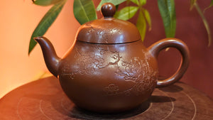 Li Xing 梨形, 172.5ml, Xiao Mei Yao Zhu Ni 小煤窑朱泥, by Craftsman Wang Xing 王兴, Engraving by Craftsman Ding Tie Ping 丁铁平 (Artistic Byname 一德).
