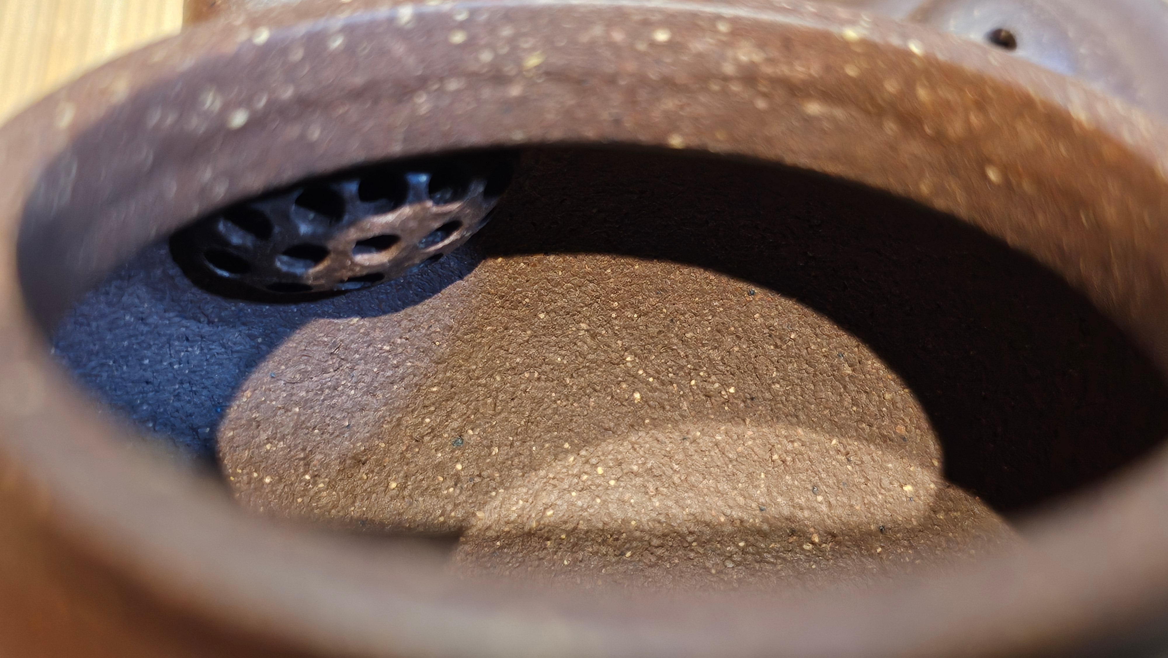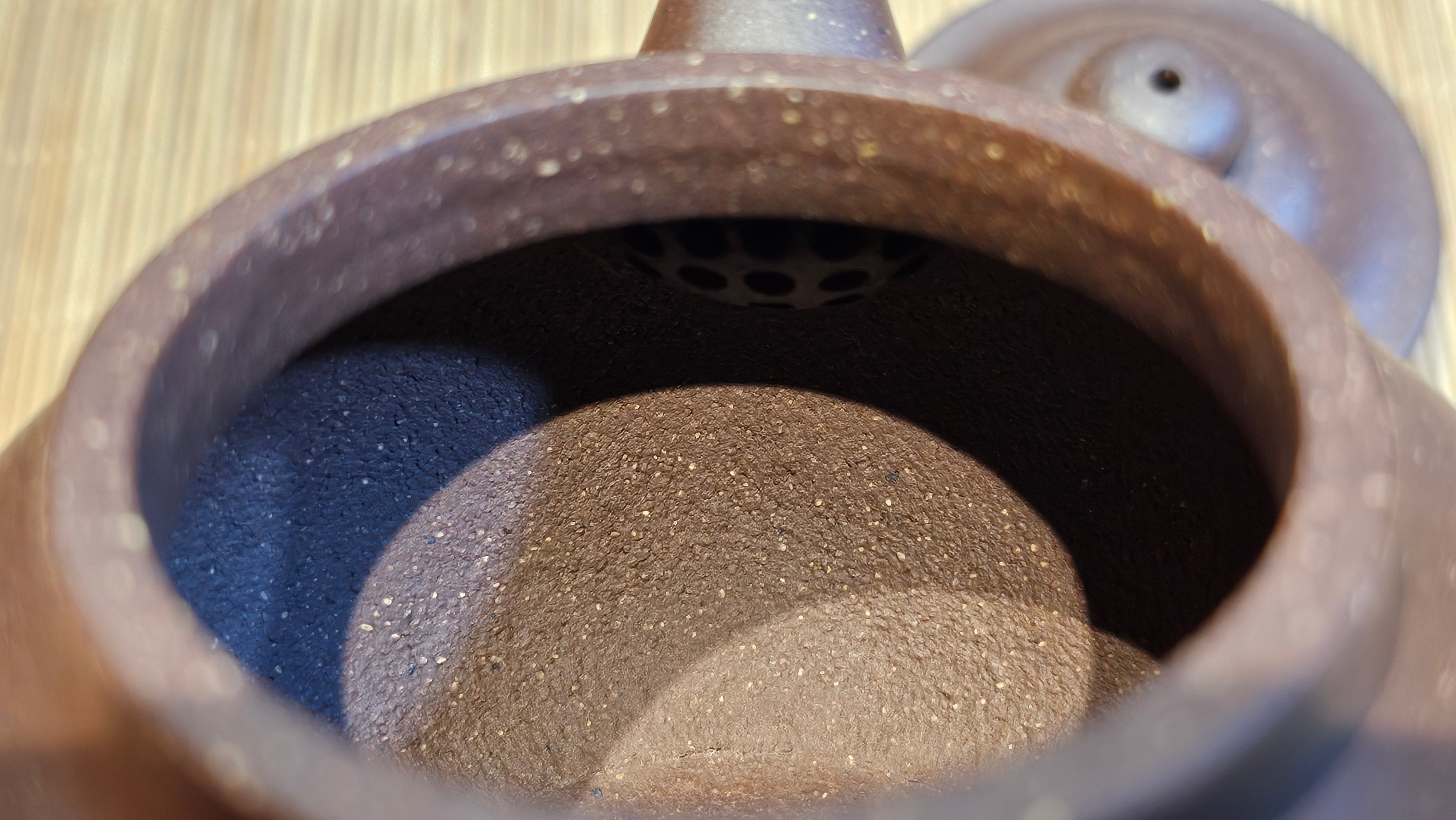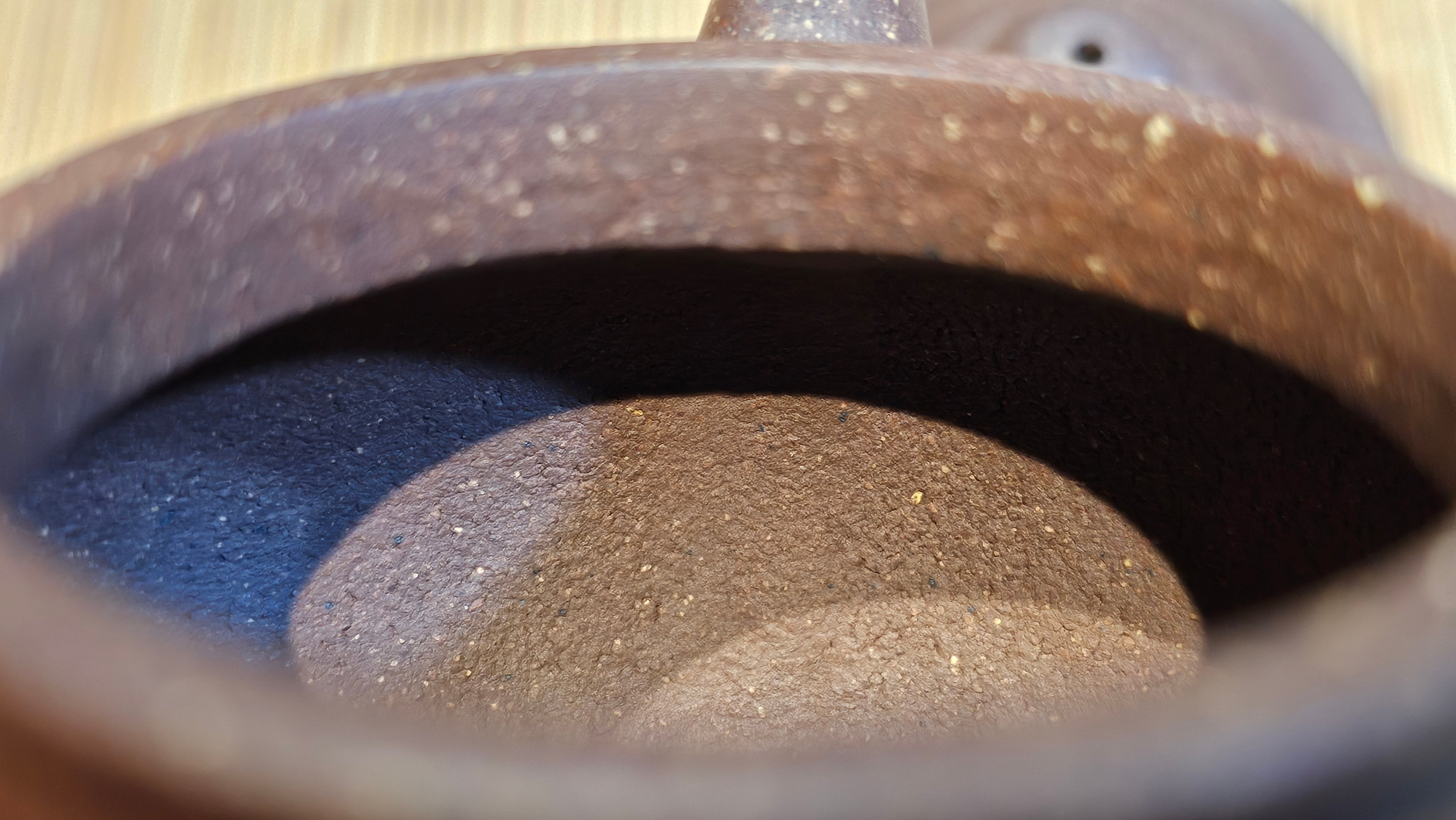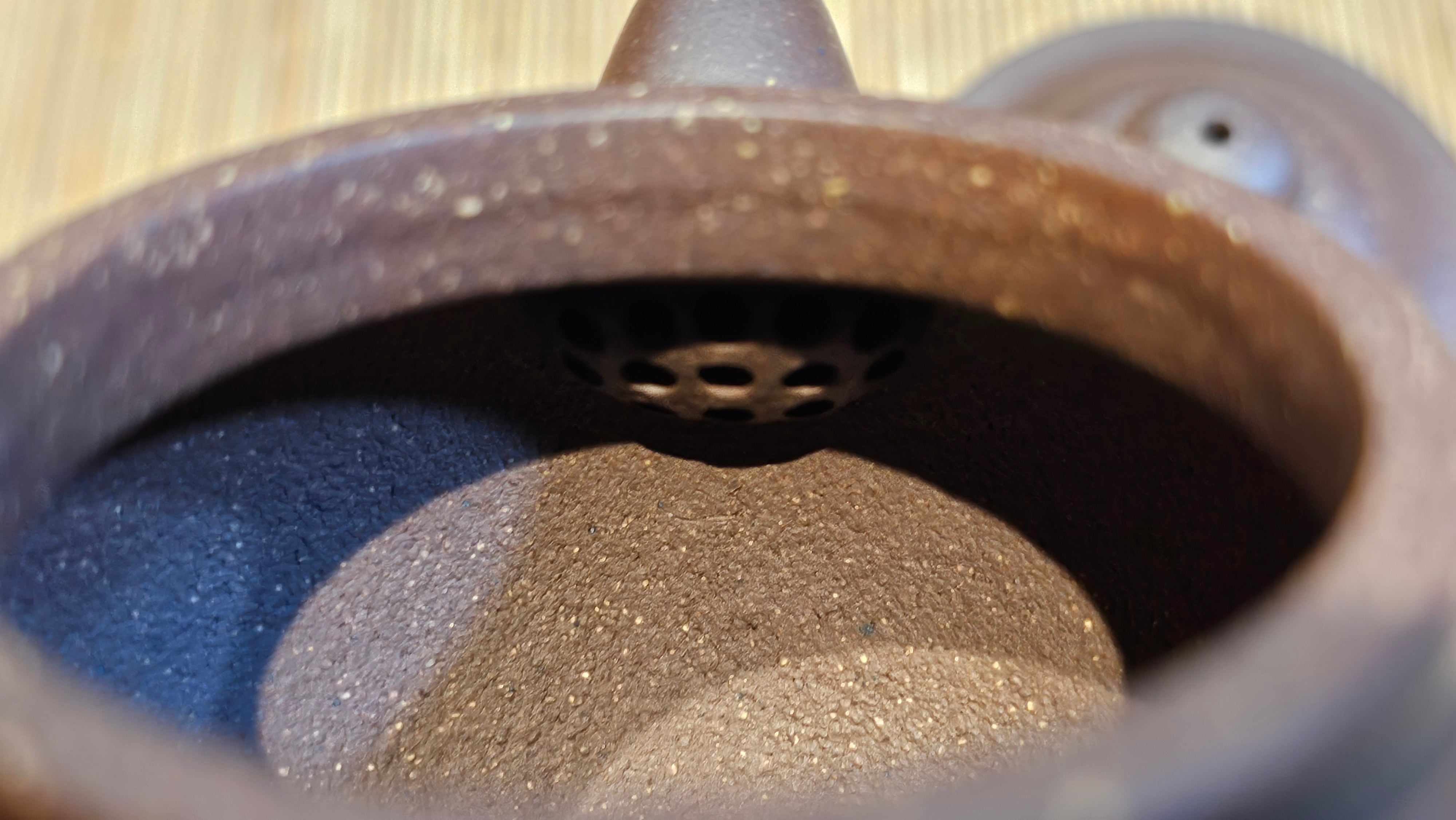 Dear Friends! Presenting, the Lao Zi NI of particular High Graininess, and of Low Sieve Count! This clay has been given fanciful names, and hyped up and marketed at high prices. But this is RealZiSha, we deconstruct, and we simplify things because this clay is really NOT super rare, nor exceedingly costly. This breed of clay also has inherent high iron content just like the Zhu Ni types. Our Cao Family provided these clay (from a particular famous mine site of Huang Long Shan) to Craftsman Chen Fa Chu and he responded perfectly!