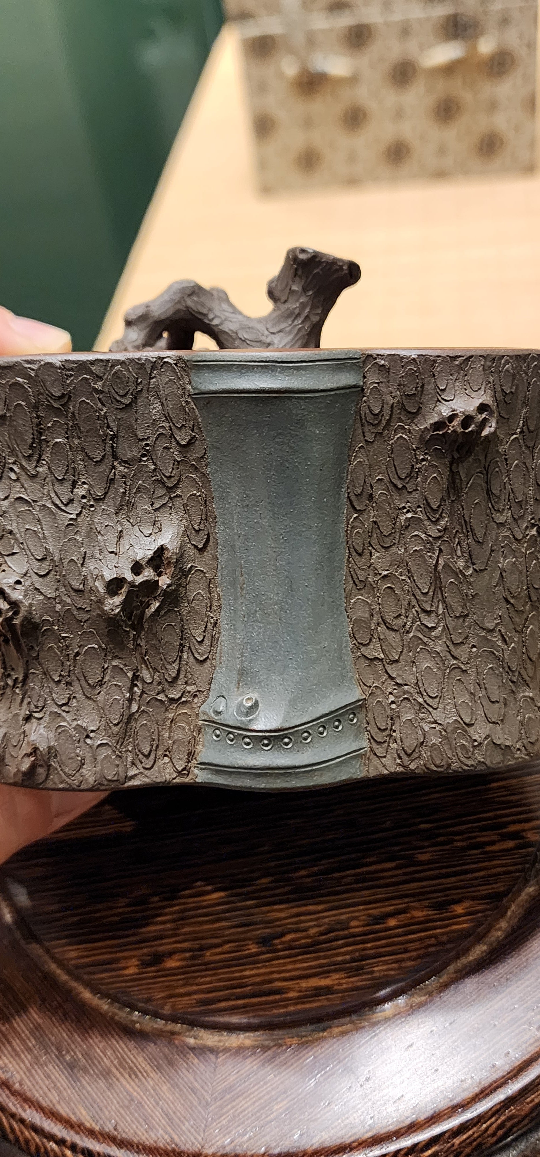 3) There is also the COLOSSAL problem of cracking open at the joining of the various clay types, because different clay types bear different shrinkage properties. Senior Master Lu must be diligent to the Nth degree at ALL edges to make sure that there is no air-holes/gaps, PLUS taking care that things are smoothened out.