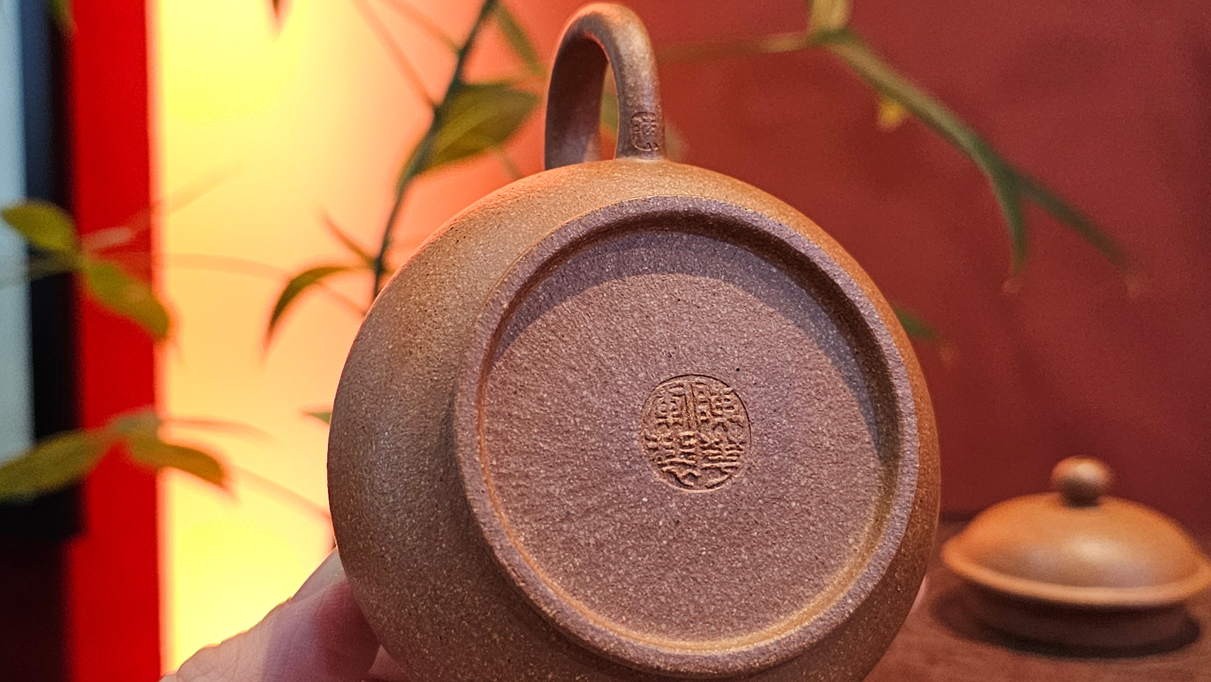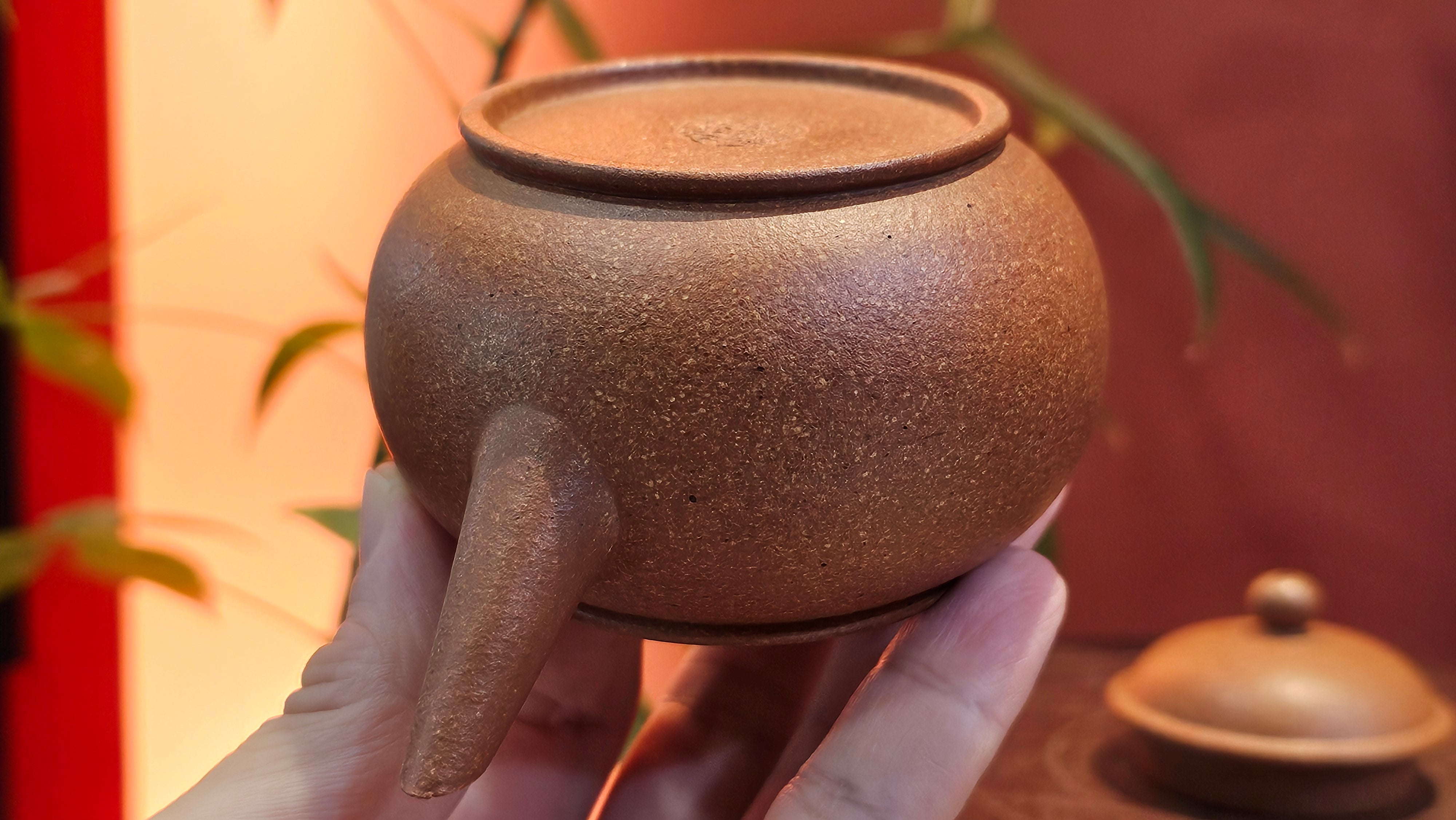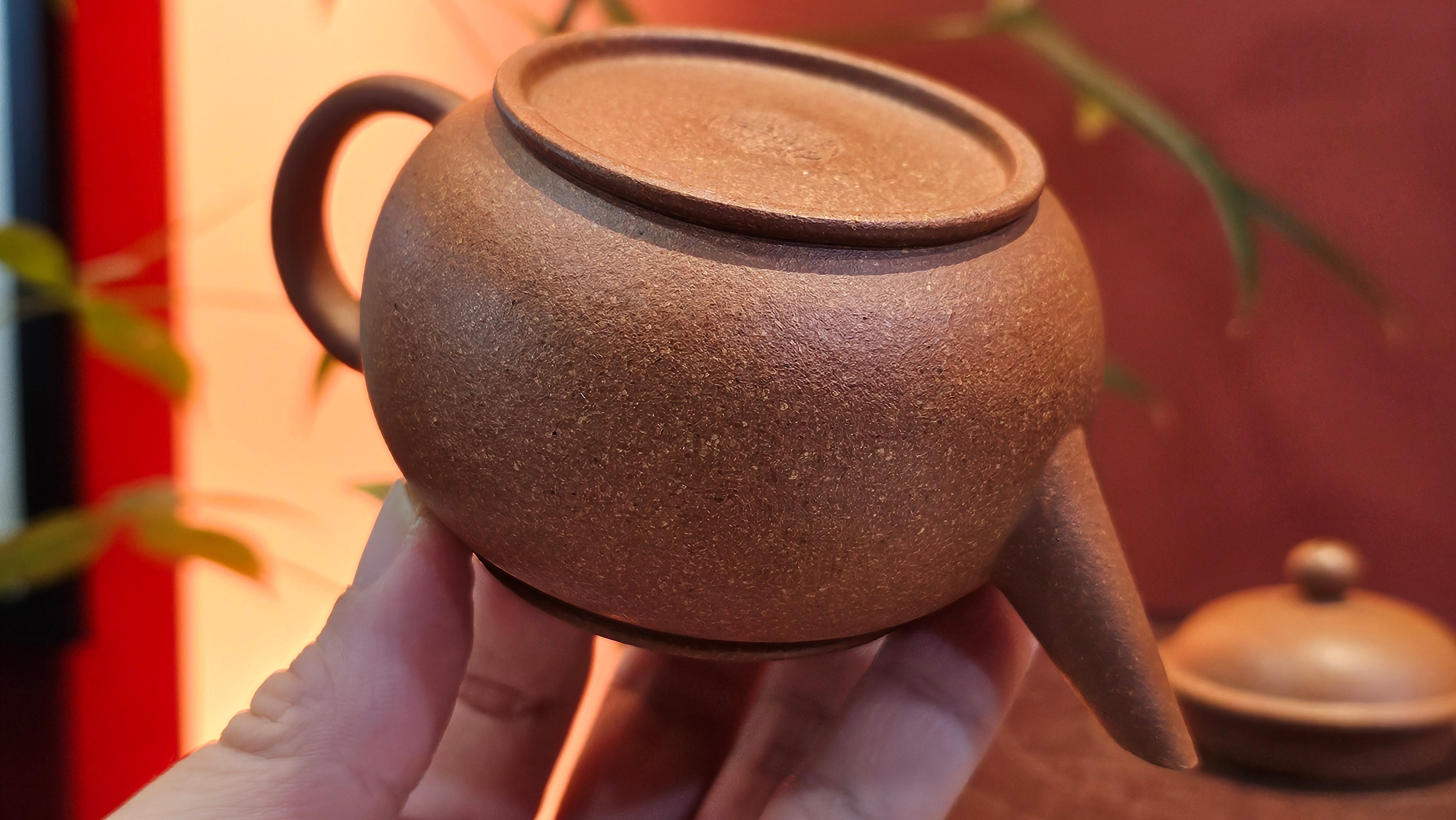 Craftsman Chen also conscientiously sculpted a 手推内球孔 Hand-Pushed Spherical Filter to increase the number of filter holes for a solid and fast pour of tea out, working with the largish diameter spout; and with better catching of tea leaves at the bottom fast while allowing tea to flow out from the upper holes.
