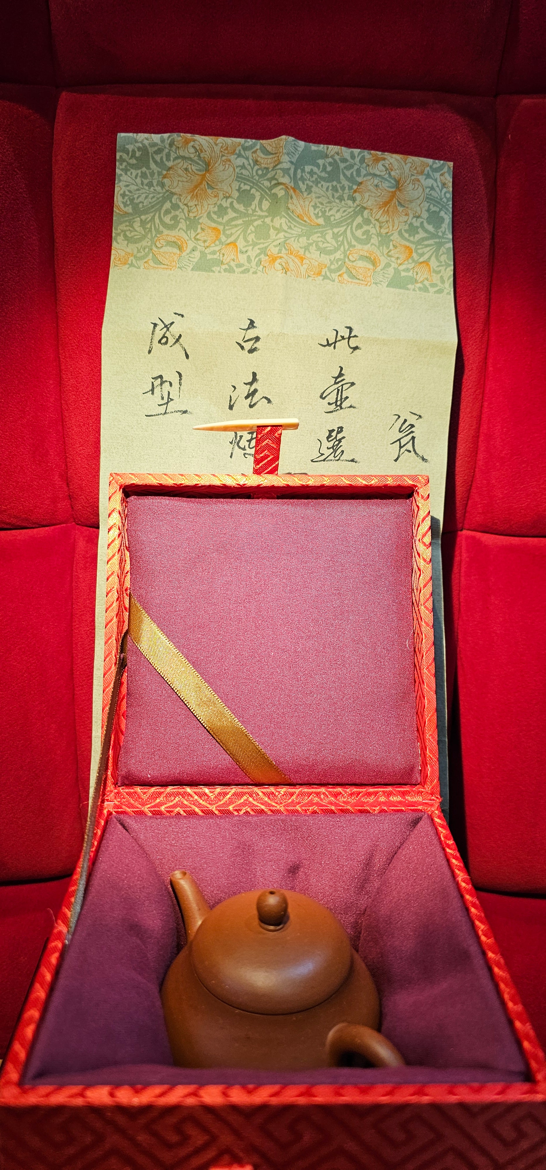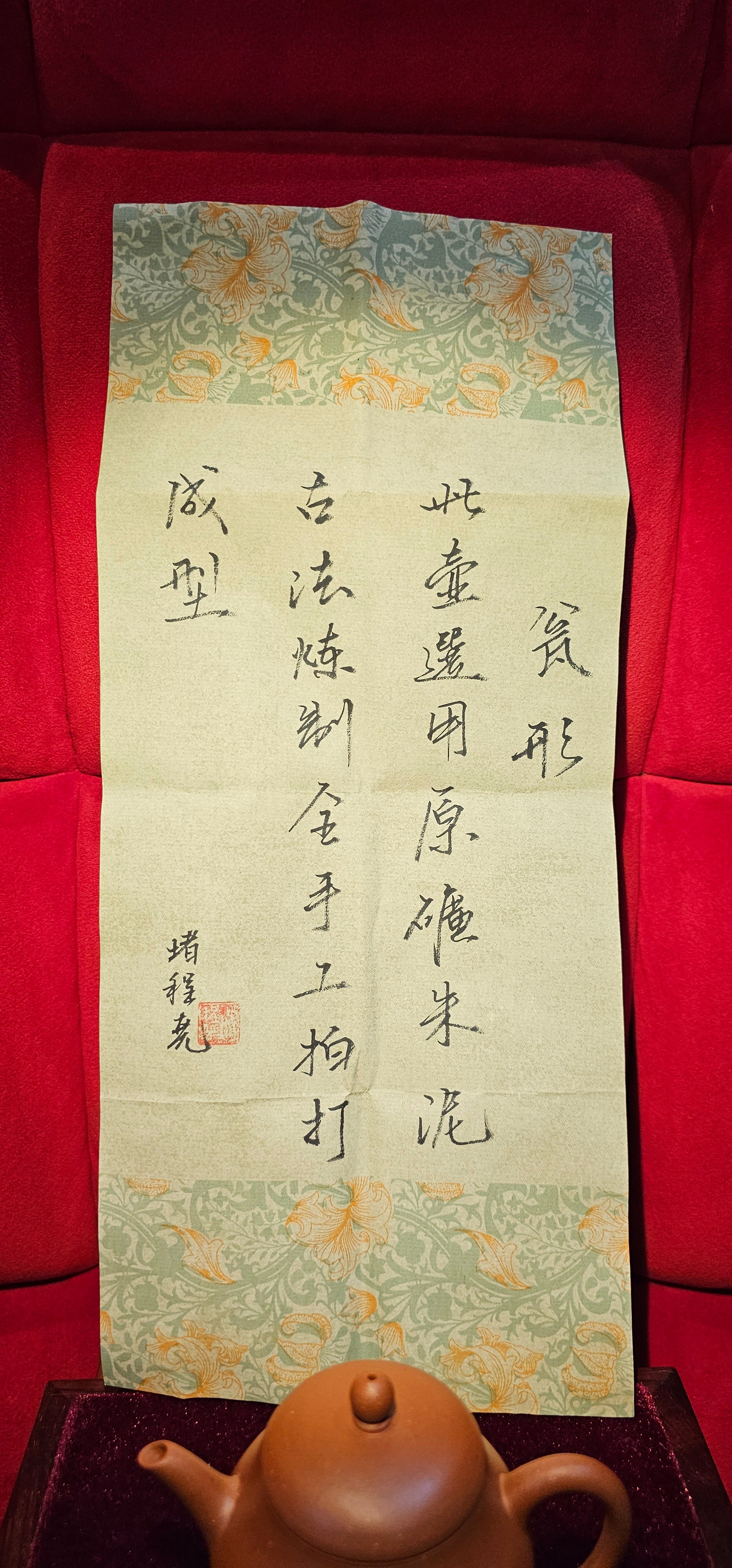 Outstanding workmanship and appearance . A wonderful addition to my prevous purchases and an enhancement to my tea experience . Caligraphy , artistry , poem , and the Hei Zi Ni clay , make every session quite pleasant !!