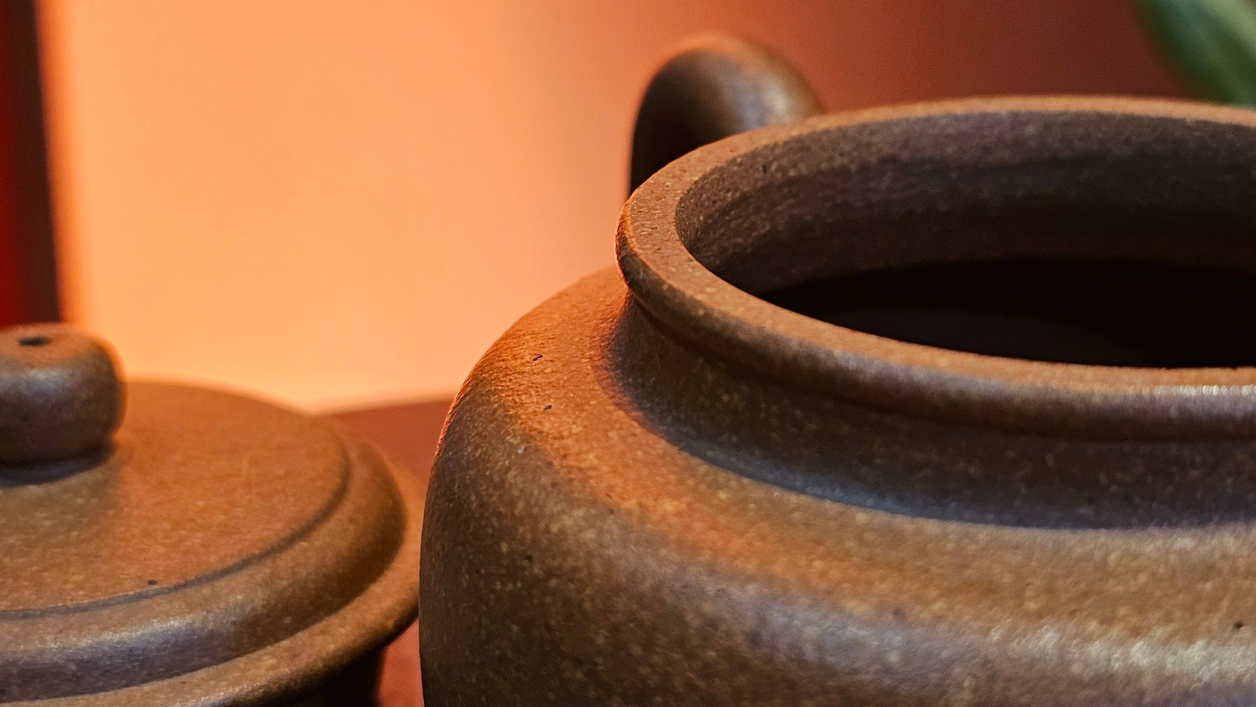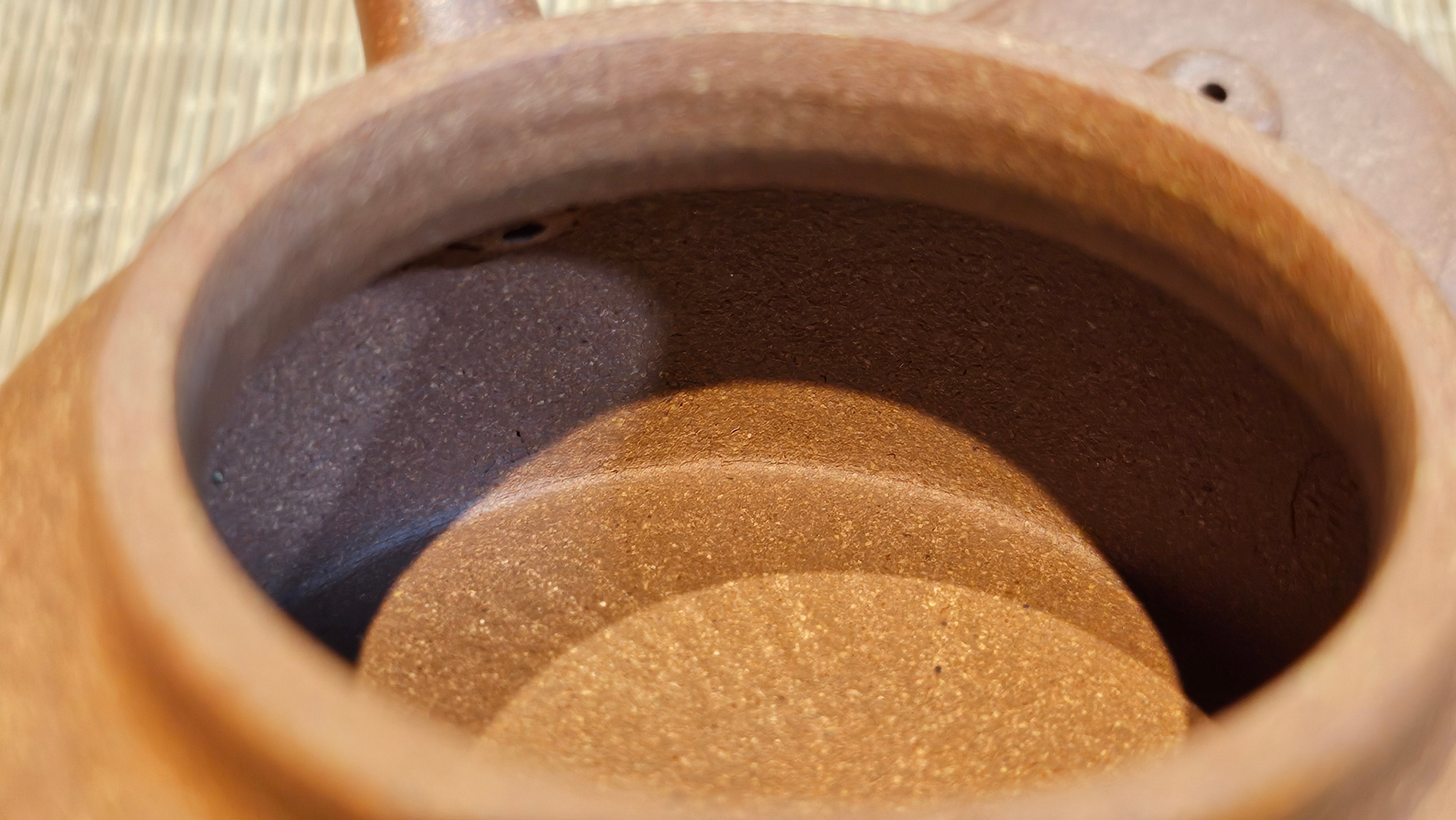 Chen Hua Jun is very familiar with Jiang Po Ni, both Red and Yellow, and here, he brings forth this Long Dan 龙蛋。 Jiang Po Ni is a combination of Hong Ni, Zi Ni and Lü Ni. Both Hong (Red) Jiang Po Ni and Huang (Yellow) Jiang Po Ni are both relatively sandy/grainy, with the characteristic ORANGEY-RED HUE. Both Hong Jiang Po Ni and Huang Jiang Po Ni contain the combination of HongNi, LüNi and ZiNi. Hong Jiang Po Ni has comparatively more HongNi within, while Huang Jiang Po Ni has a higher percentage of ZiNi and LüNi within. JiangPoNi is amazingly porous. Huang Jiang Po Ni is one of the most amazing unadulterated ZiSha clay with amazing Patina formation through use. It is very rewarding to use Huang Jiang Po Ni, both for its amazing Patina formation and its excellent pairings with both Sheng and Shu Pu Er.