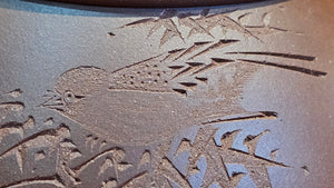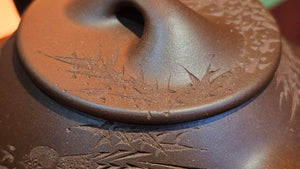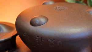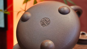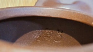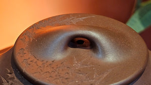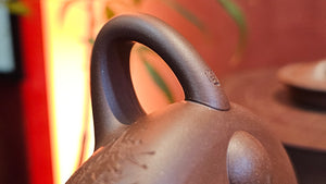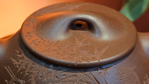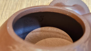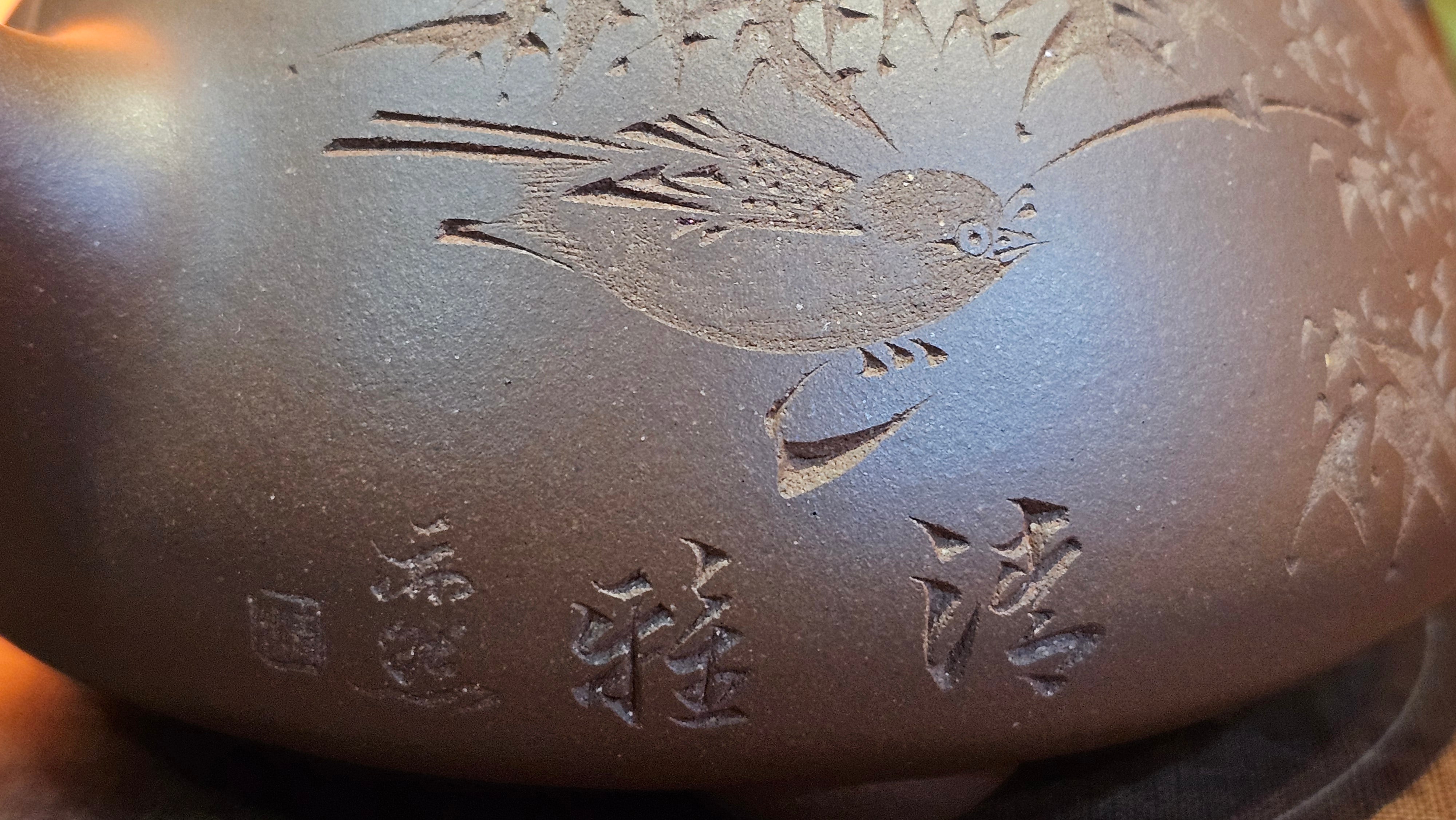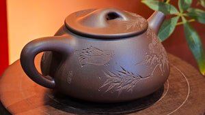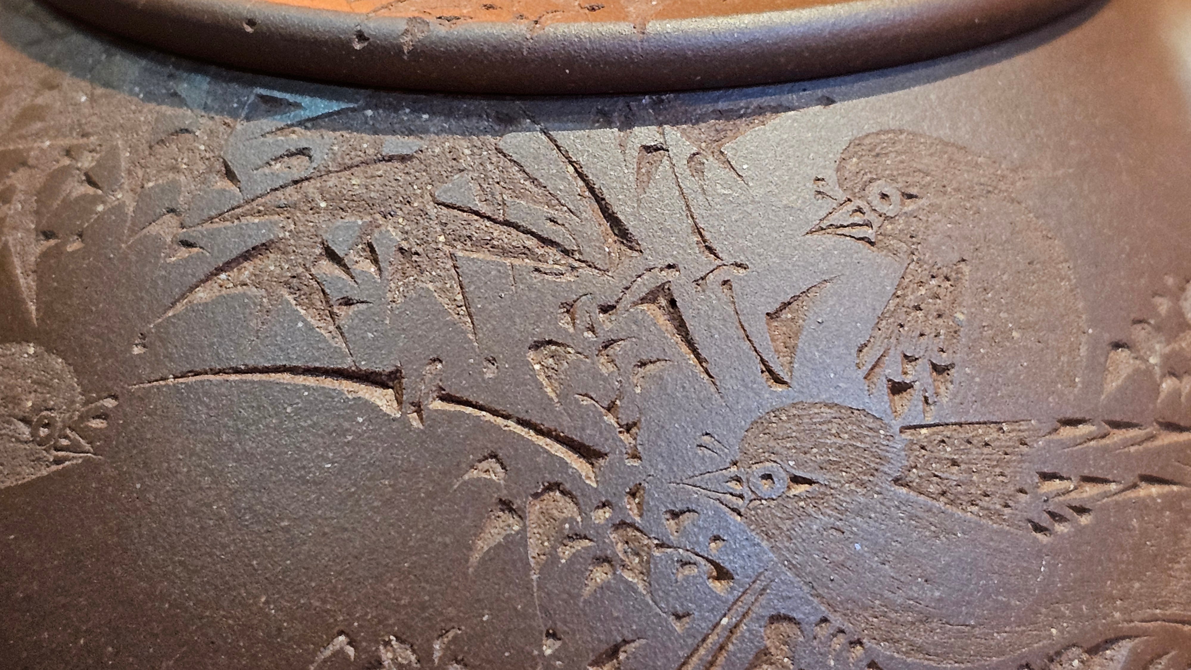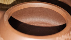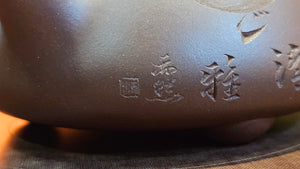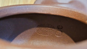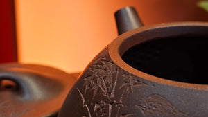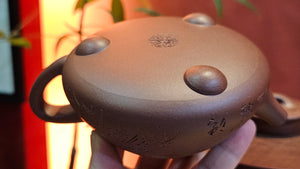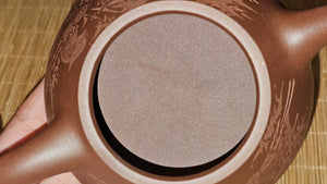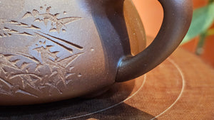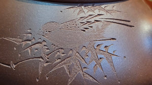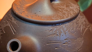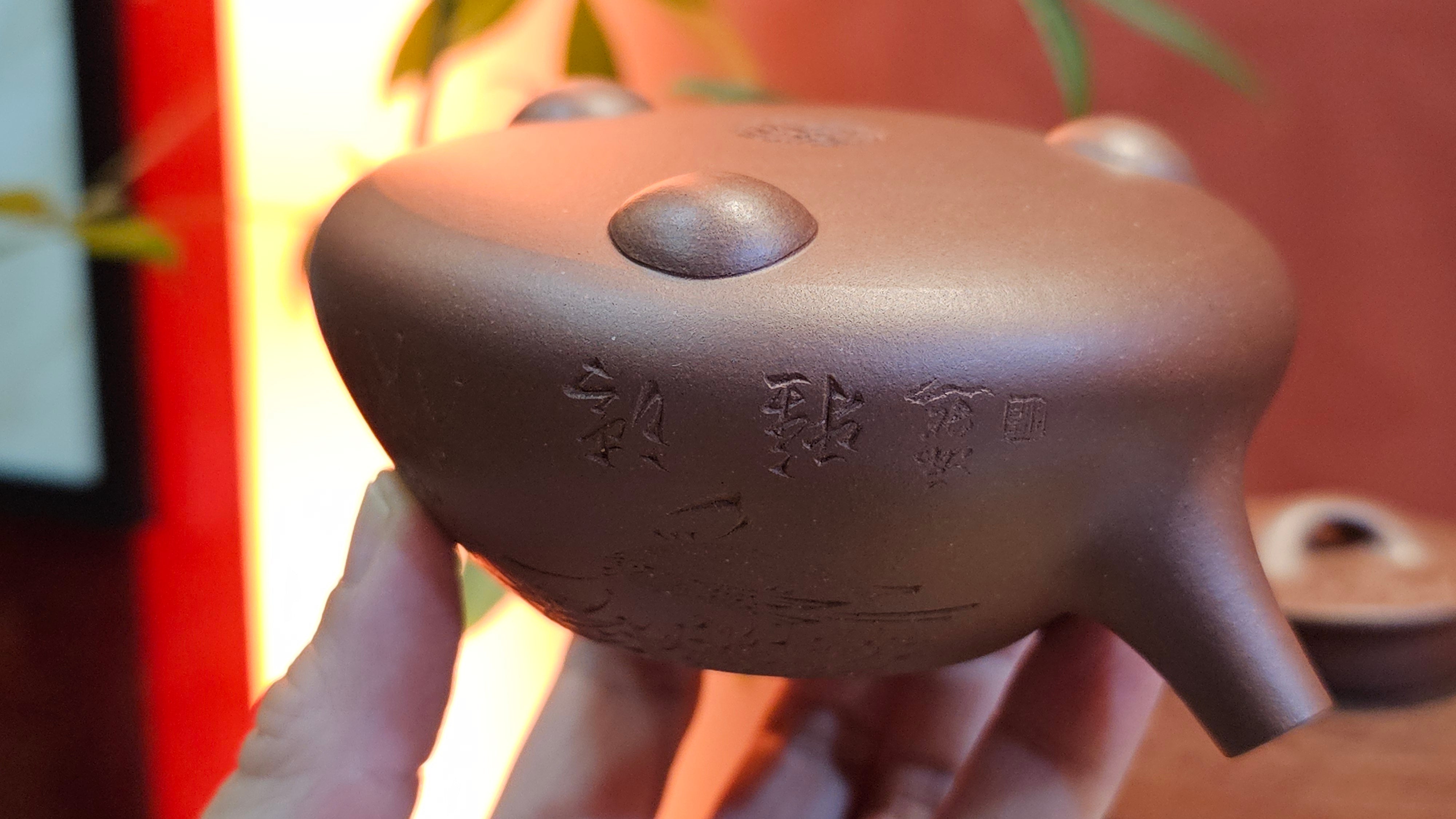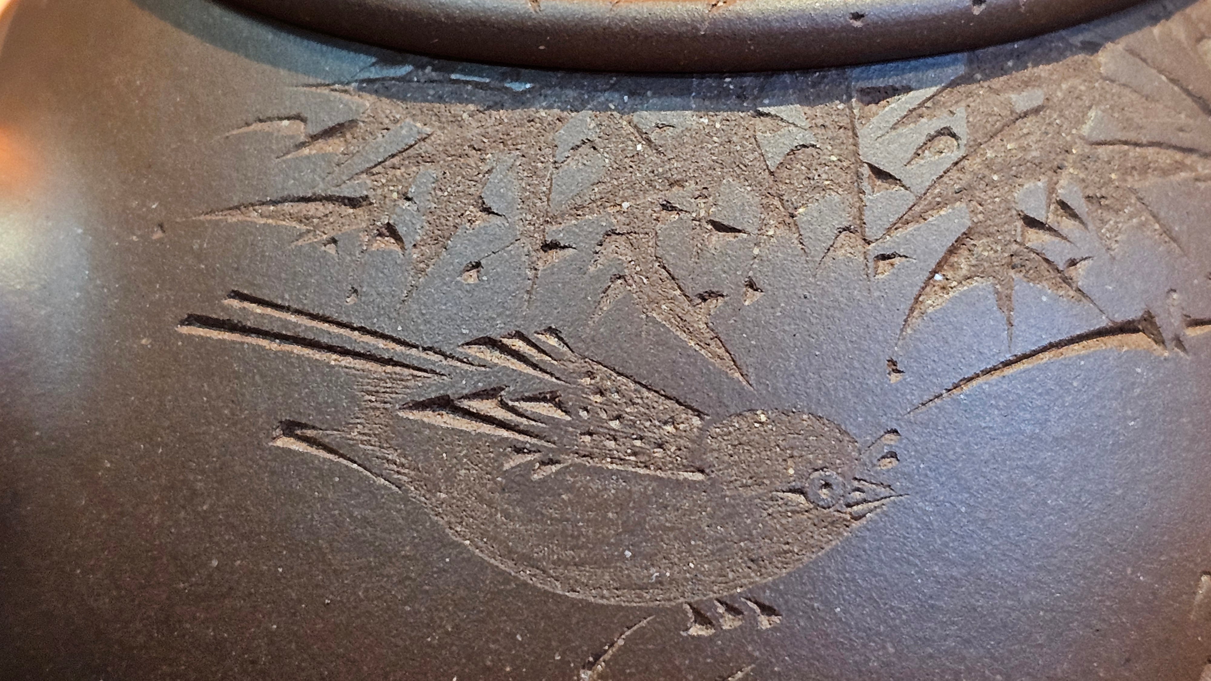 Jing Zhou Shi Piao 景舟石瓢 with exquisite! Robin Engraving 相思鸟刻绘, 271.3ml, DiCaoQing ZiNi 底槽青紫泥, by our Collaborative Craftsman Chen Fa Chu 陈法初 (pot) and Craftsman Yi Ran 亦然 (engraving)。