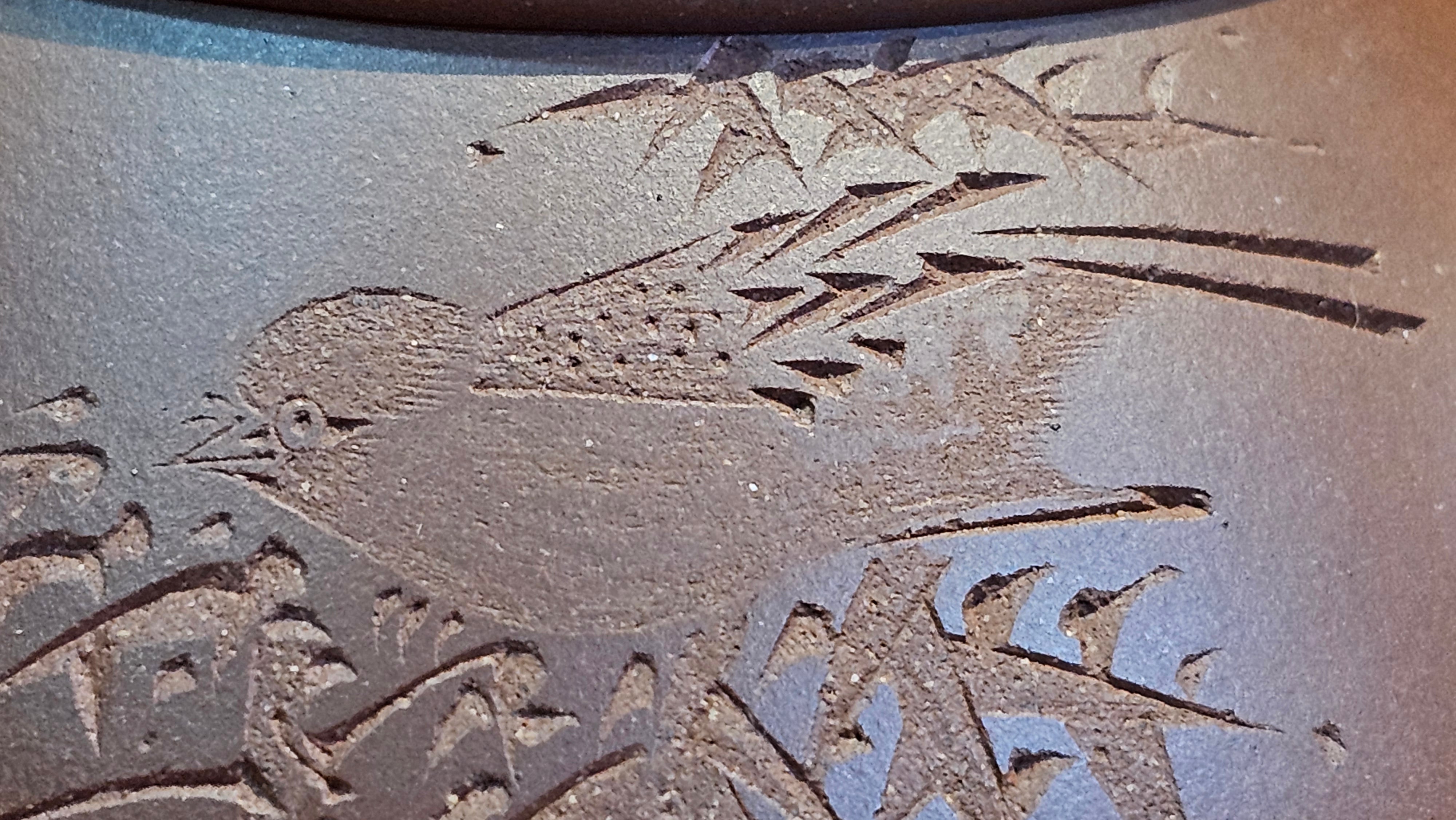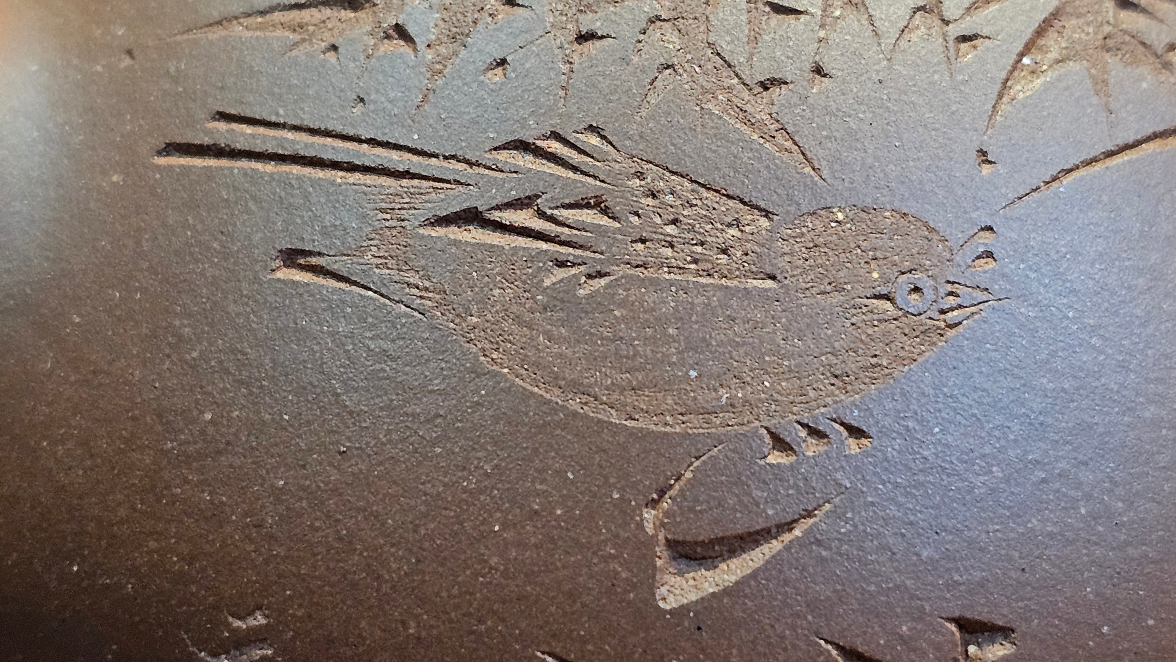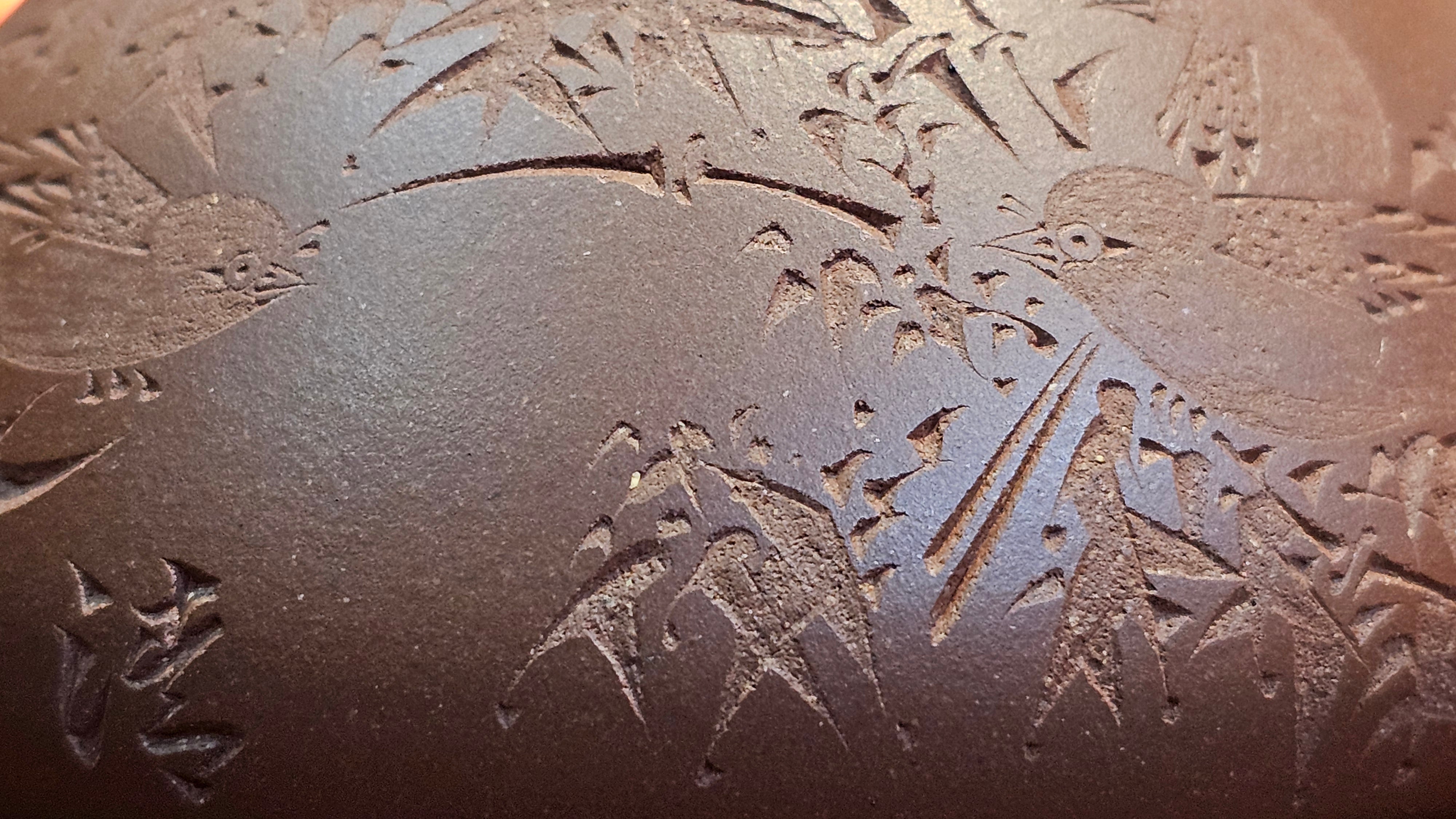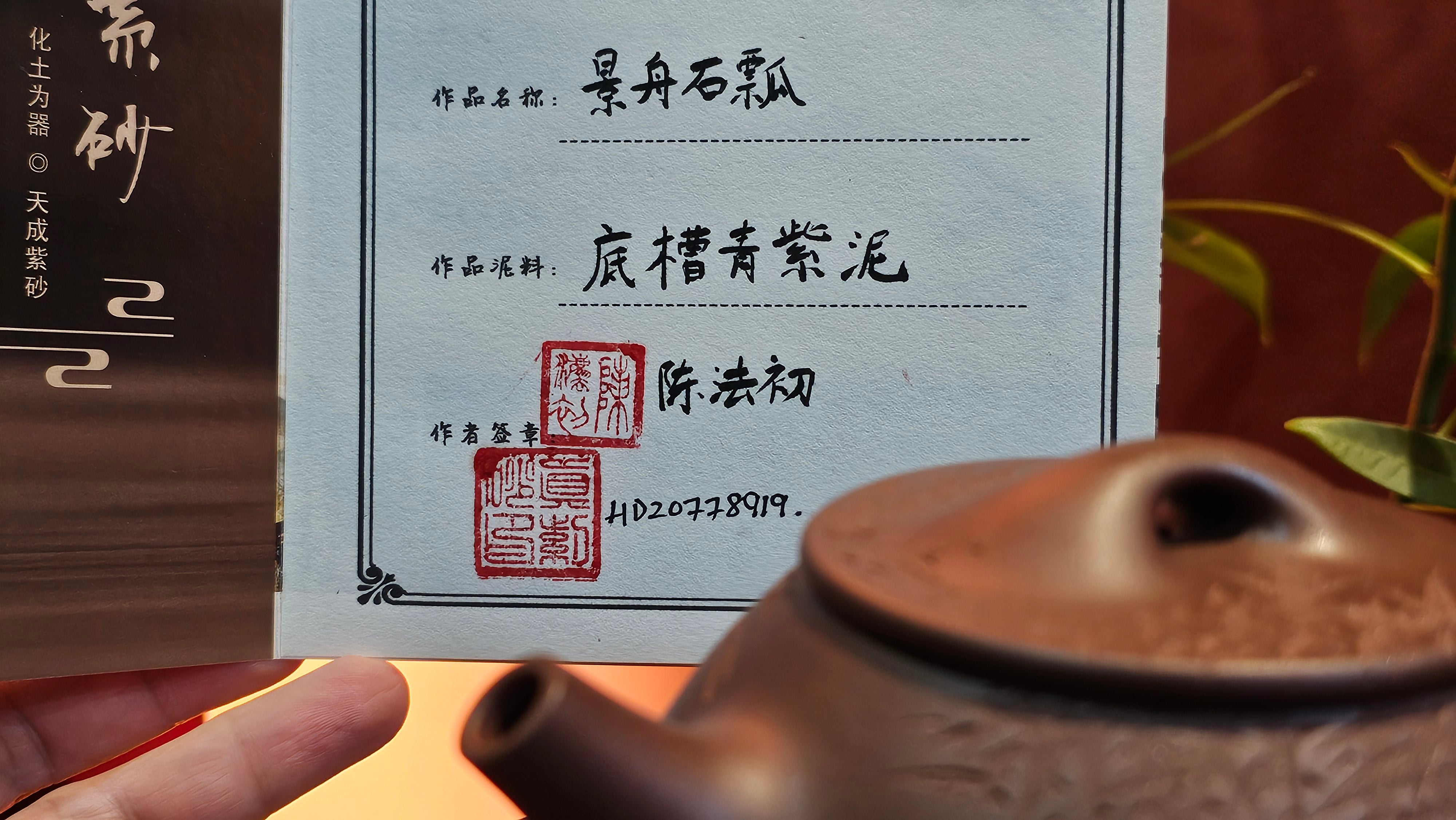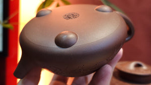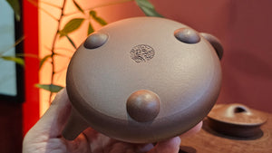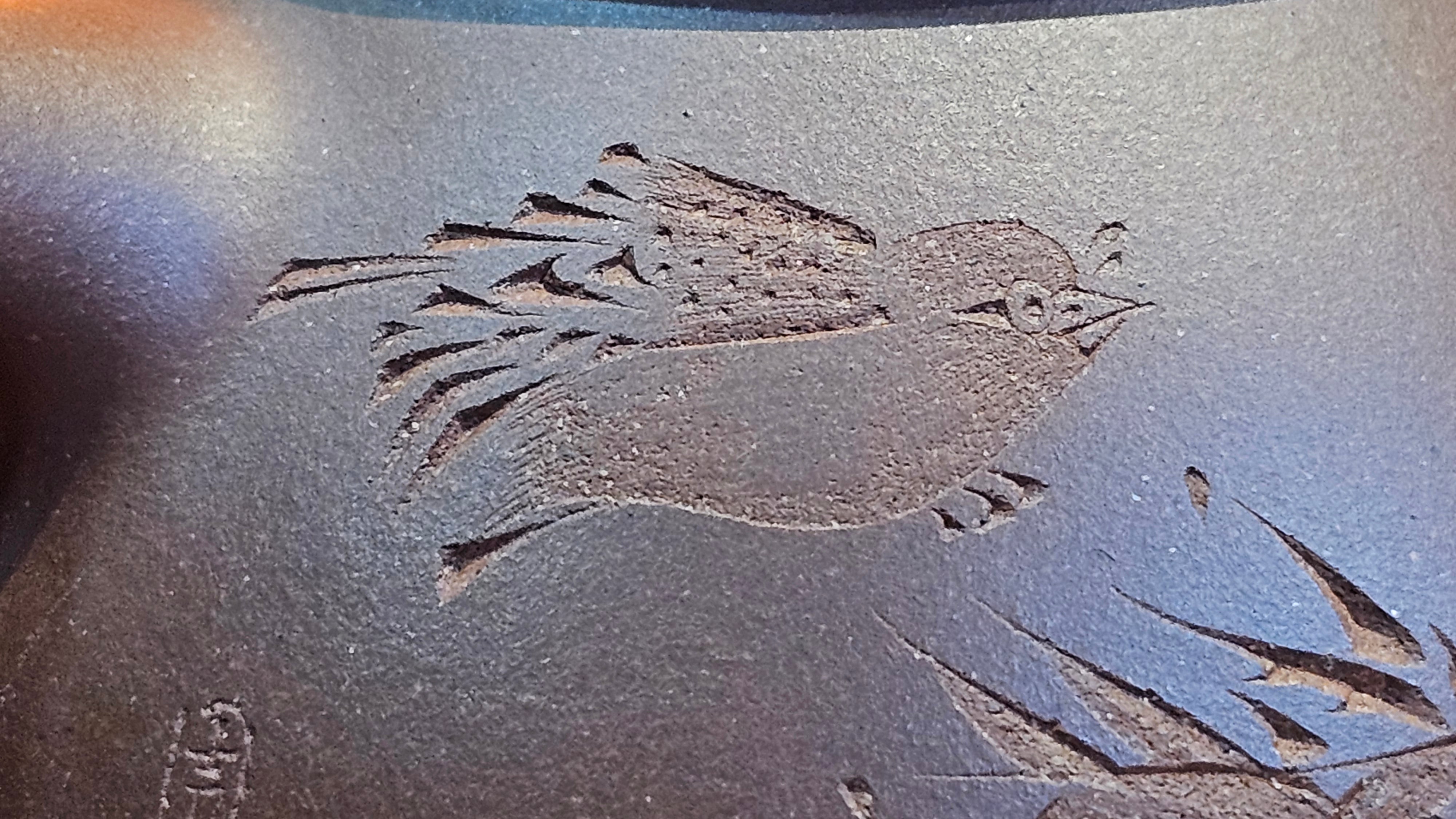 Jing Zhou Shi Piao 景舟石瓢 with exquisite! Robin Engraving 相思鸟刻绘, 271.3ml, DiCaoQing ZiNi 底槽青紫泥, by our Collaborative Craftsman Chen Fa Chu 陈法初 (pot) and Craftsman Yi Ran 亦然 (engraving)。