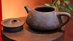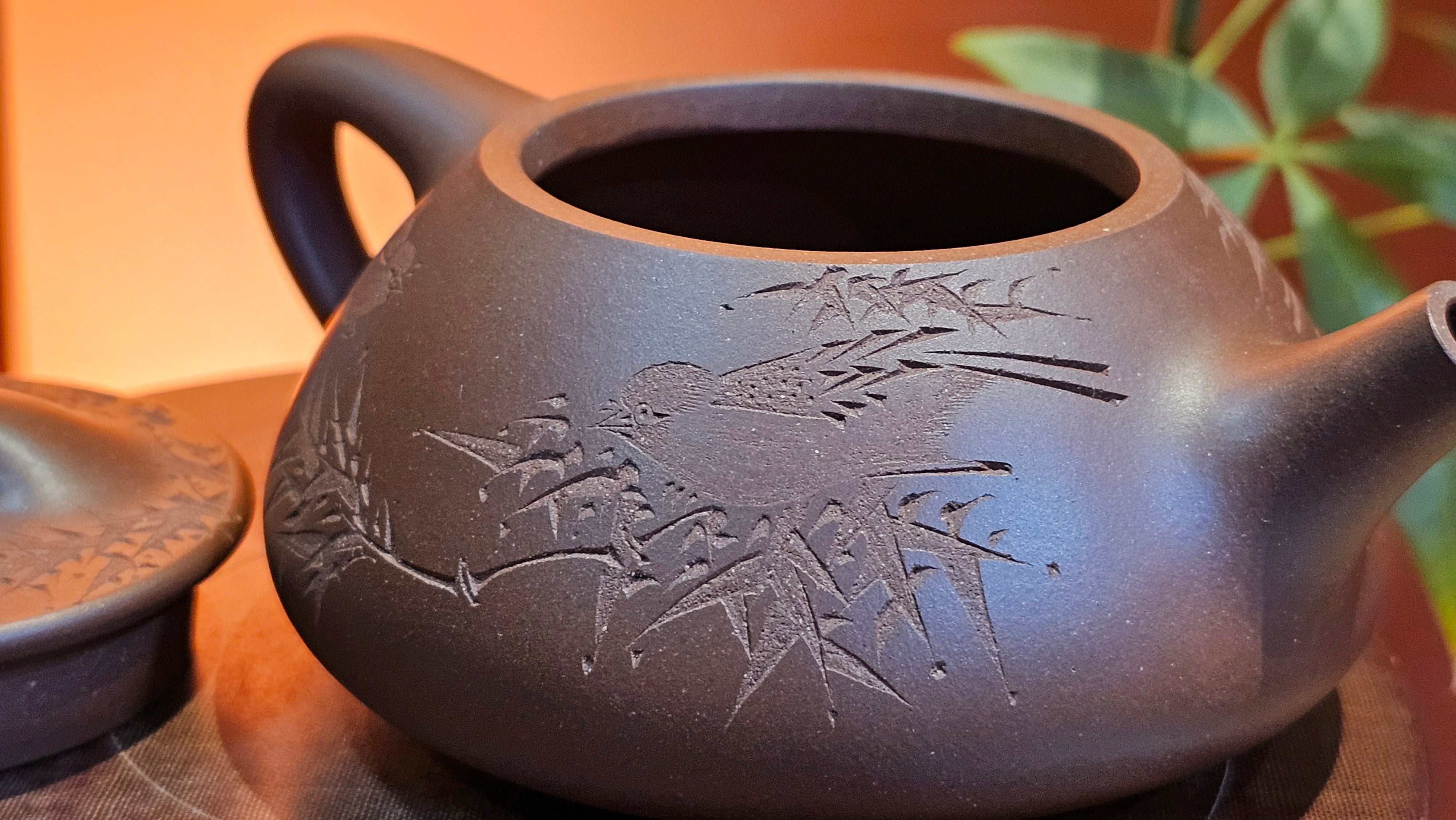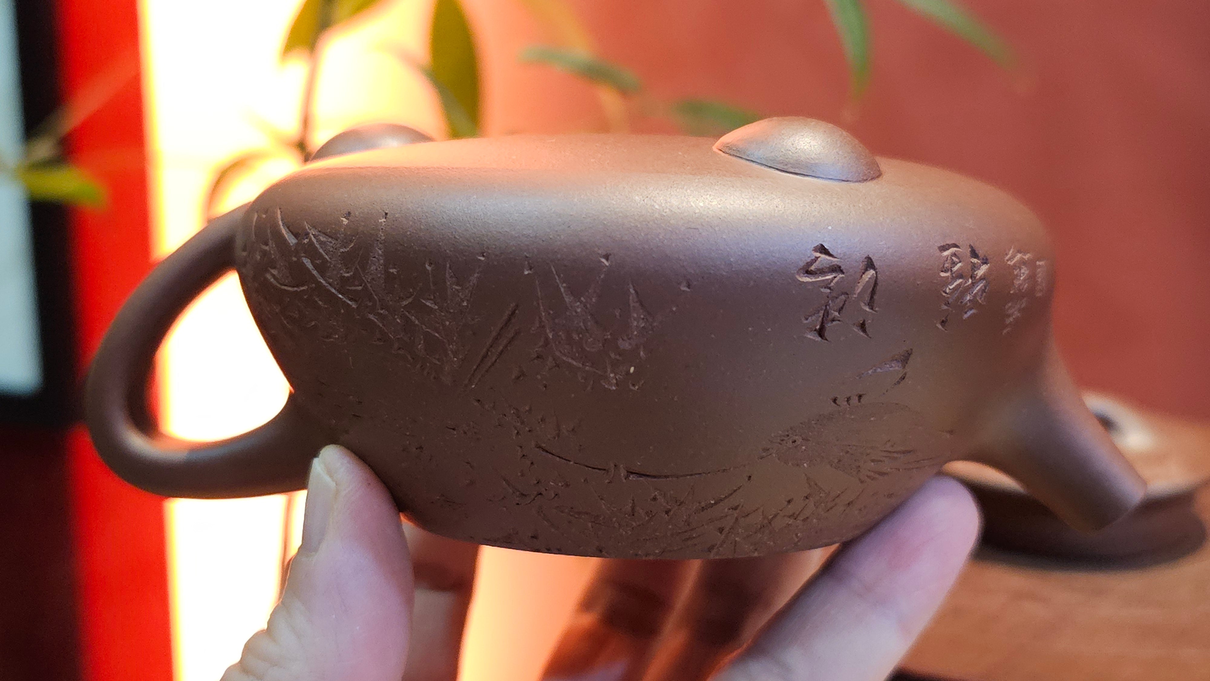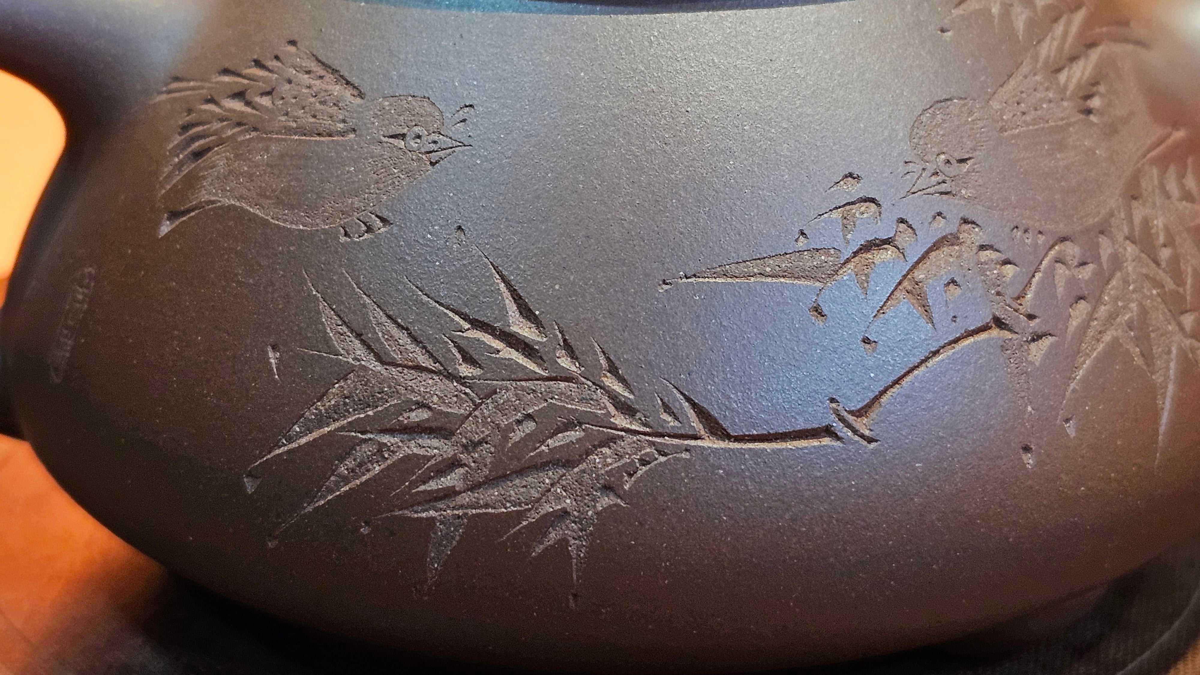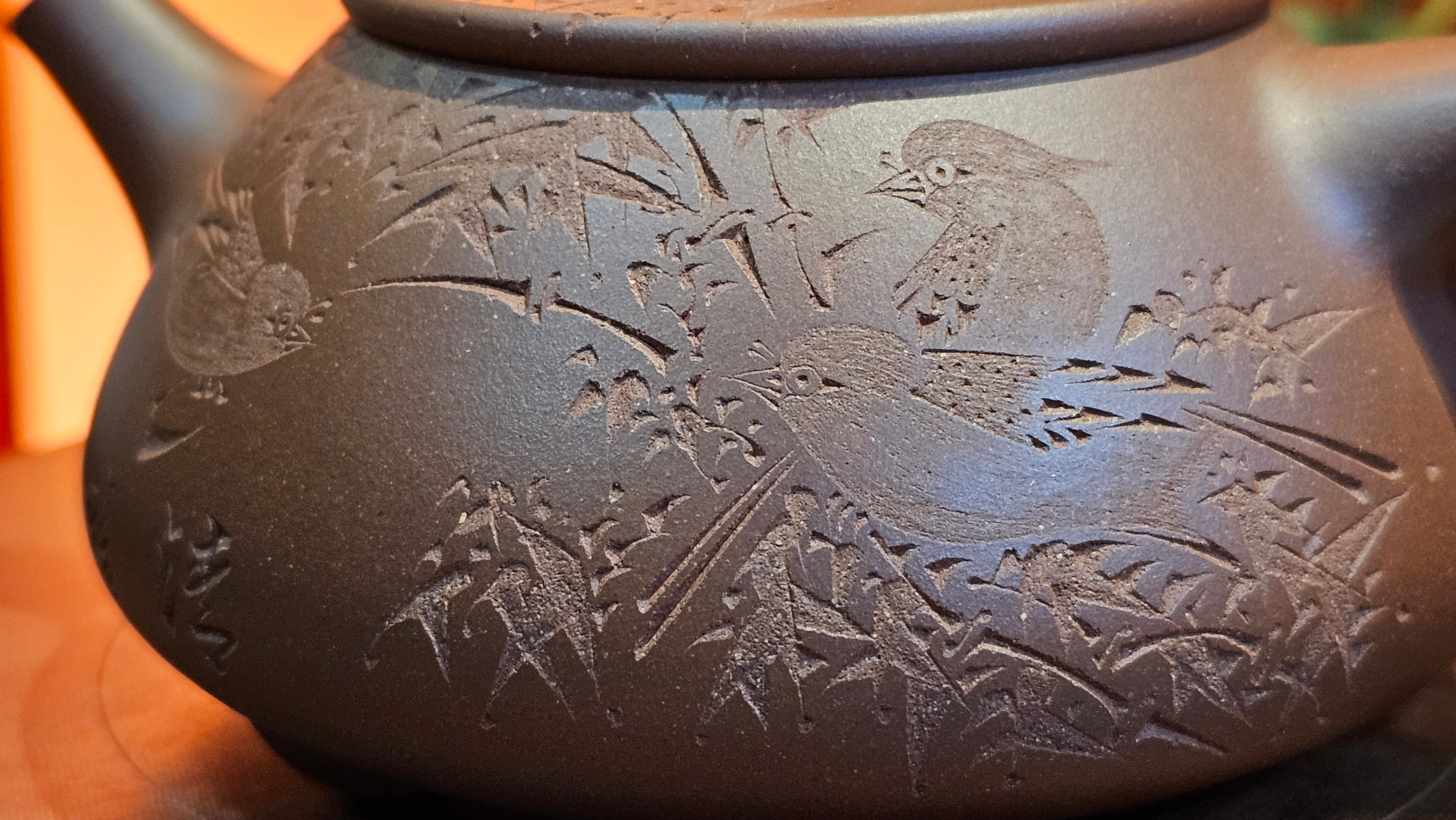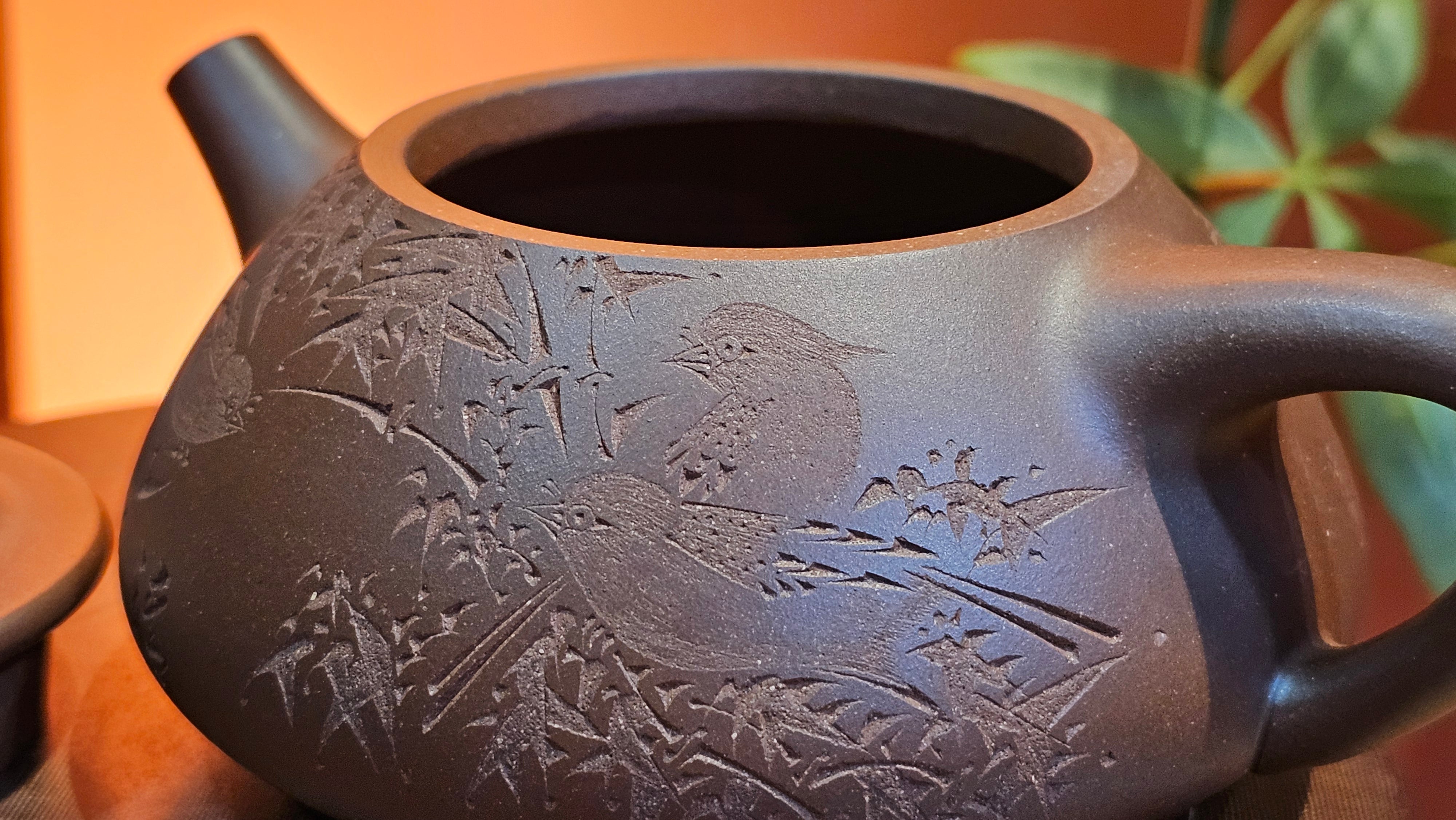 Outstanding workmanship and appearance . A wonderful addition to my prevous purchases and an enhancement to my tea experience . Caligraphy , artistry , poem , and the Hei Zi Ni clay , make every session quite pleasant !!