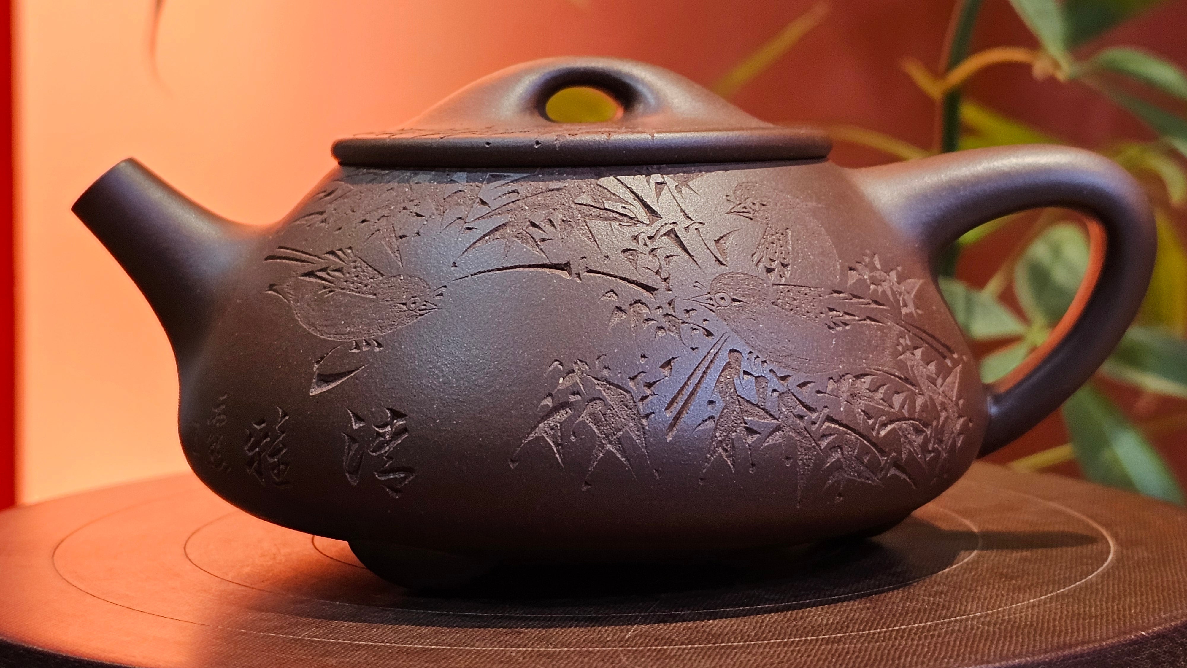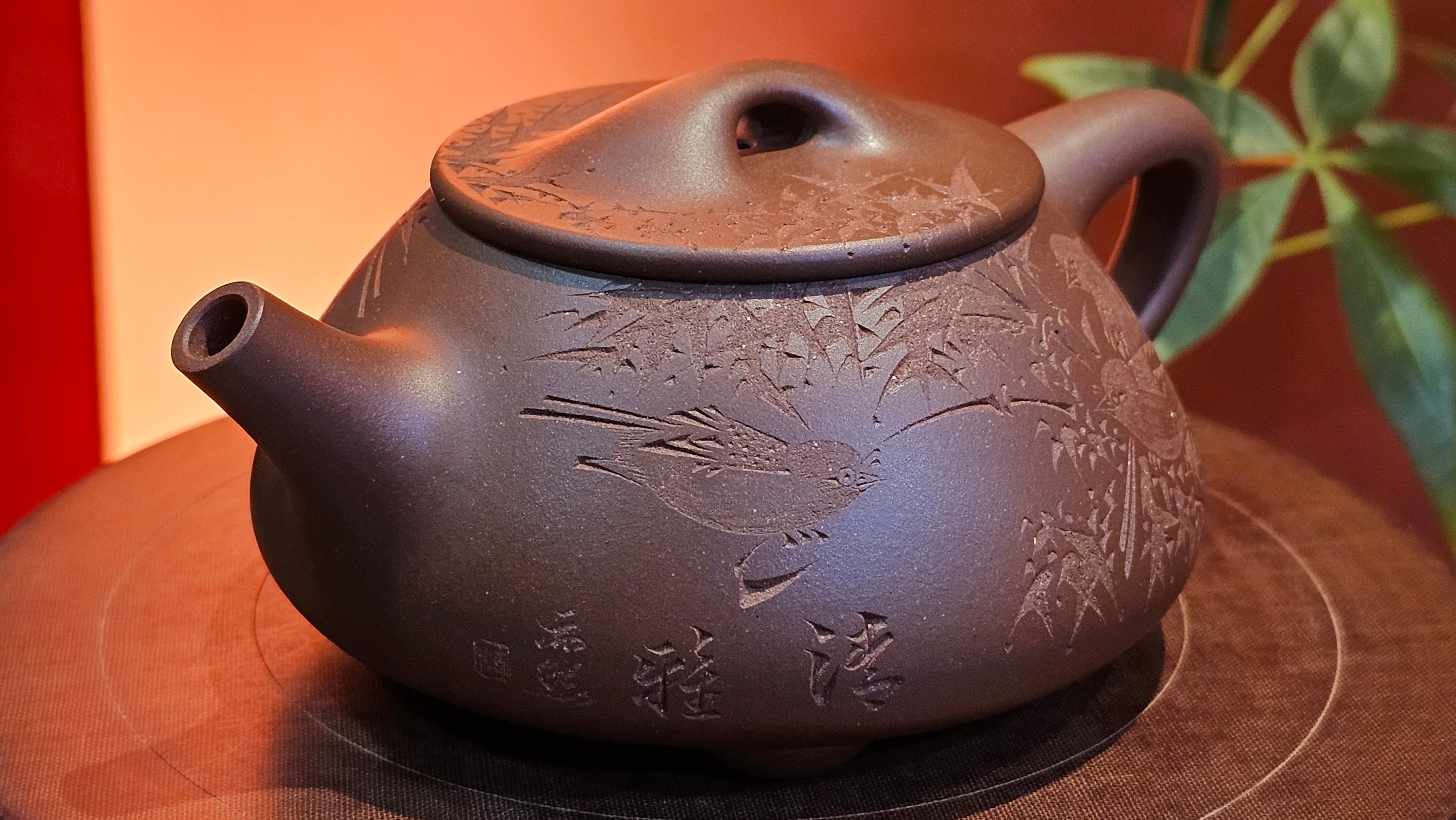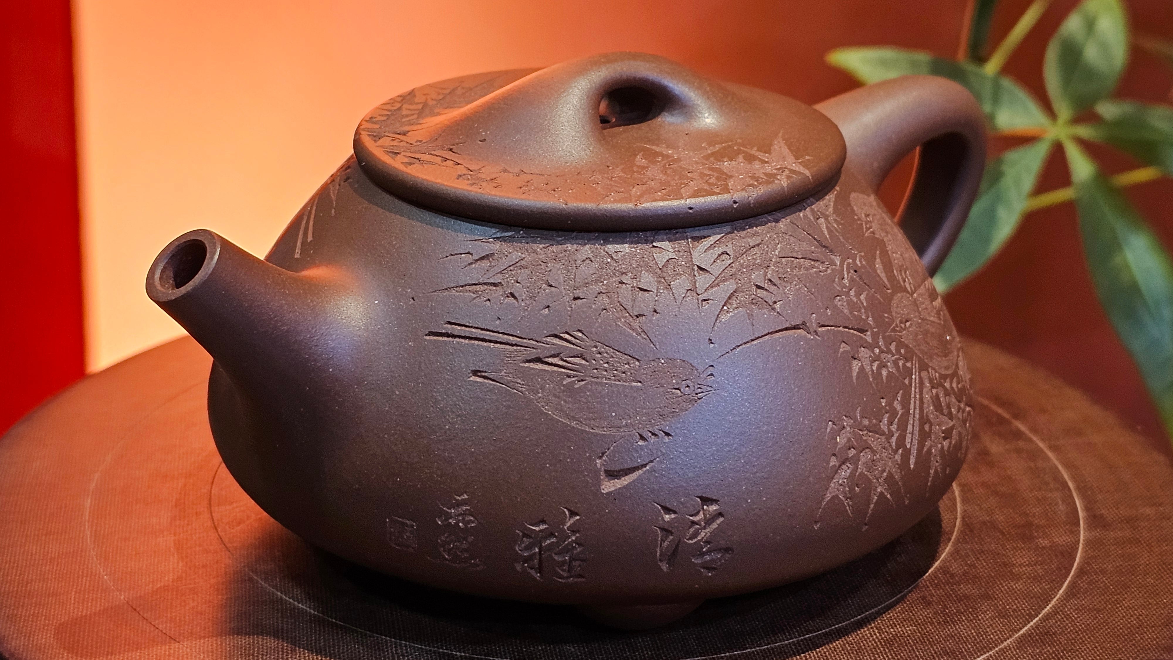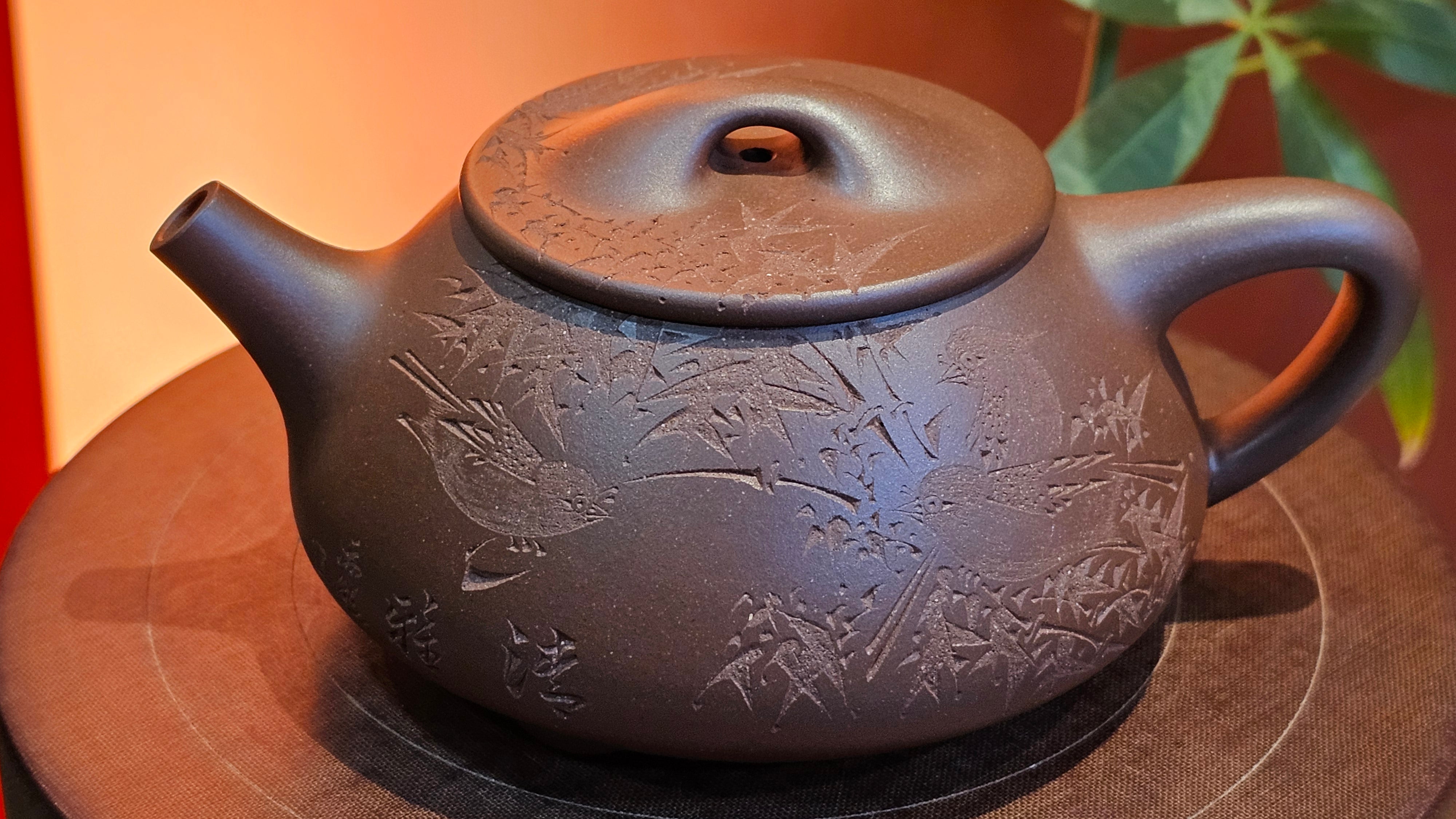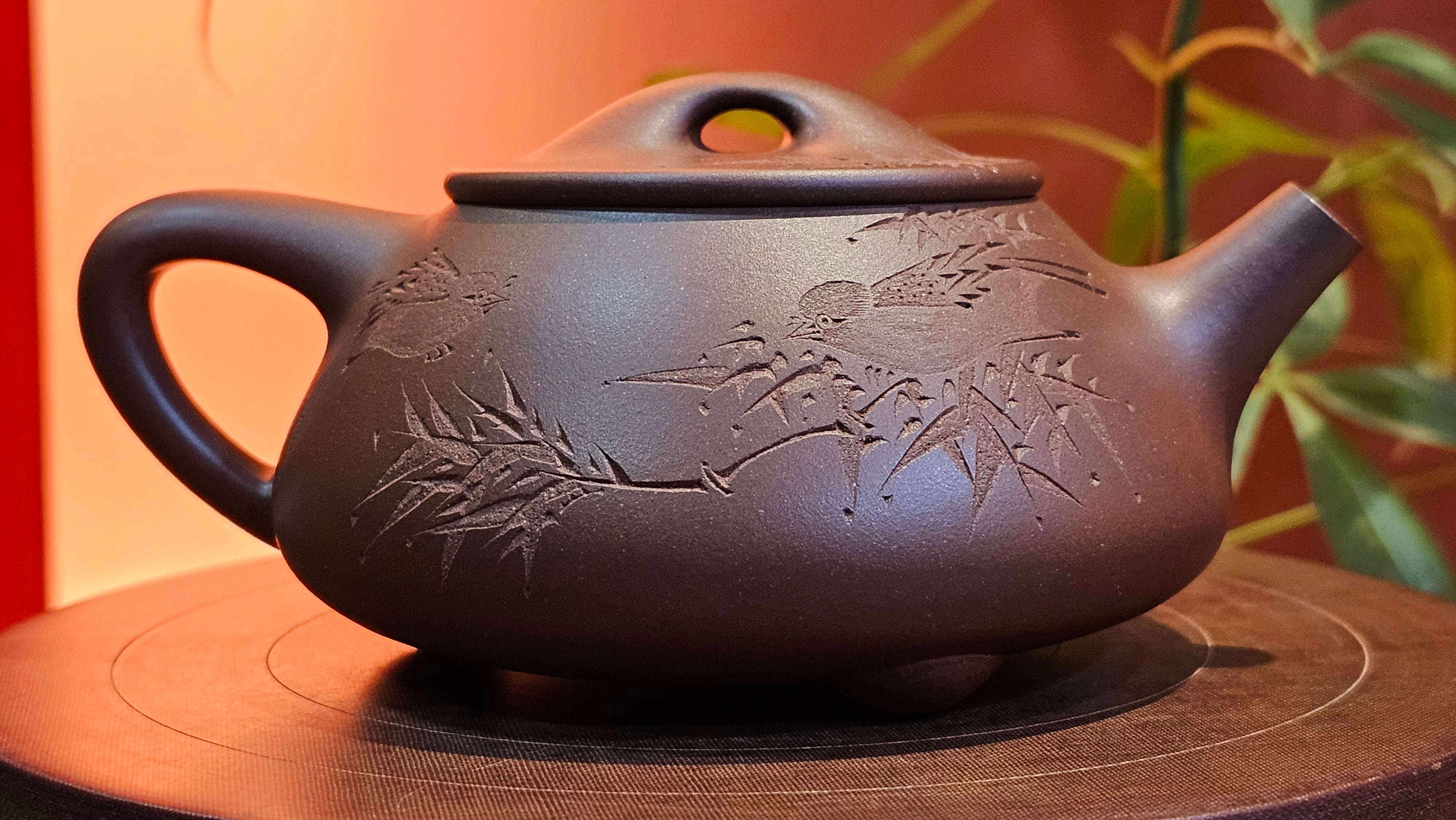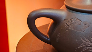 Outstanding workmanship and appearance . A wonderful addition to my prevous purchases and an enhancement to my tea experience . Caligraphy , artistry , poem , and the Hei Zi Ni clay , make every session quite pleasant !!