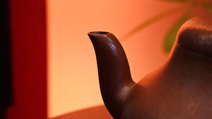 Also notice how he crafted the spout's circumferential clay wall as thin as possible.  You want a quick pour out, you want a small volume pot for that gungfu steeping for your costliest Oolong and Yan Cha, you want a wide lumen and opening for the spout: hence the spout's wall cannot be thick, or else the spout would look unbecomingly stubby, unsightly and oversized to match the pot's body.  The only way to achieve this is to have the Craftsman diligently and crafting a thin yet sturdy wall.  Yes, so as to achieve the widest spout lumen and opening for that fast pour out.  If the clay wall is thicker, you can't have a wide spout opening or else the whole spout would appear too thick and unsightly.
