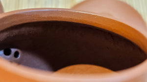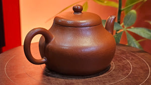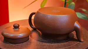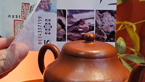 Note on our TRUE Fully-Handmade Zhu Ni pots from RealZiSha: NOT those thick-/irregular-thickness-walled ones which are actually fake "Fully-handmade ZhuNi pots" utilising the cheating new technology: "车一刀 Che Yi Dao": Such ZhuNi pots utilizing Che Yi Dao process, have been sprouting up in the market since early 2022. Che Yi Dao involves a swivelling-rotational cutter that goes around a roughly-finished ZhuNi pot to cut the outer surface into a perfect shape. This cutter obliviates the need of accomplished skill of a true Fully-Handmaking Craftsman. Obviously, Che Yi Dao also absolves the need of a skilled FHM Craftsman to 1)pound the slab into a careful thin-slab, 2)paddle-pat the slab into a uniform shape purely manually.