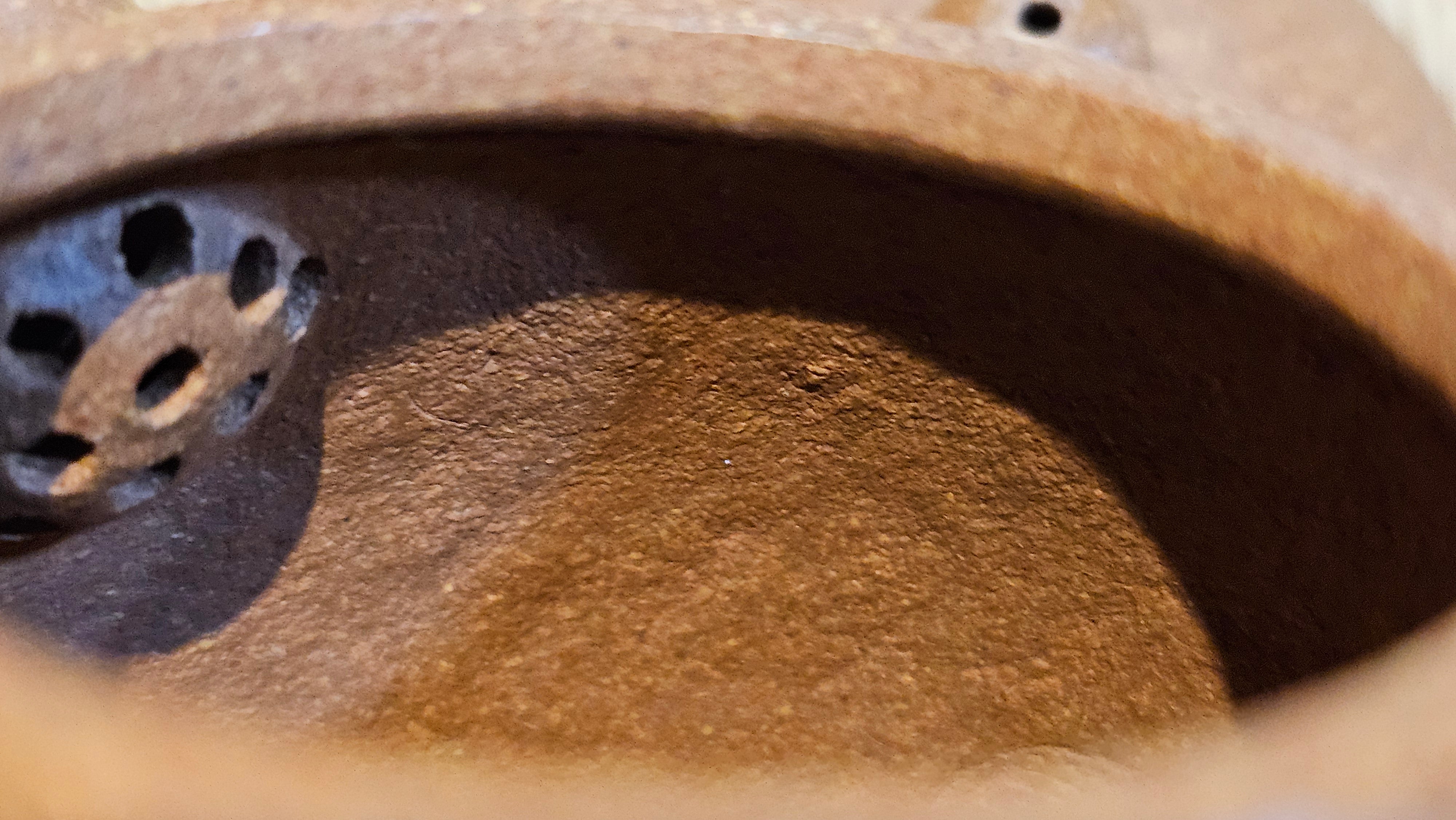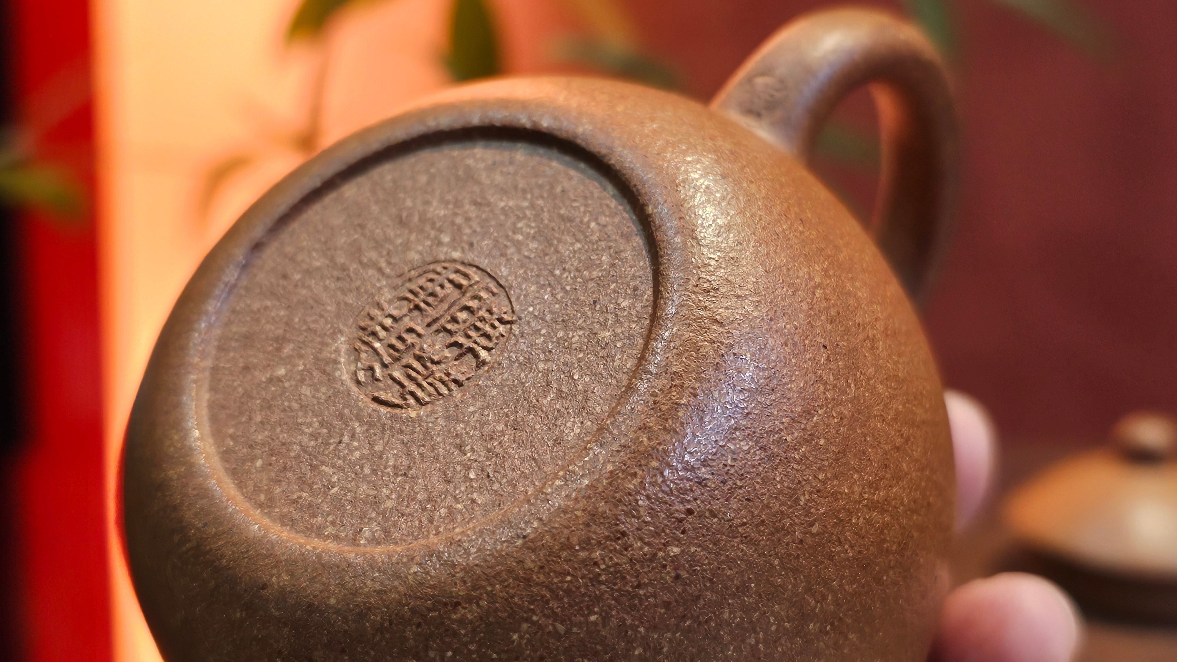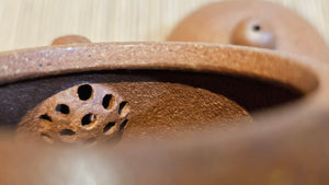 Craftsman Chen also conscientiously sculpted a 手推内球孔 Hand-Pushed Spherical Filter to increase the number of filter holes for a solid and fast pour of tea out, working with the largish diameter spout; and with better catching of tea leaves at the bottom fast while allowing tea to flow out from the upper holes.