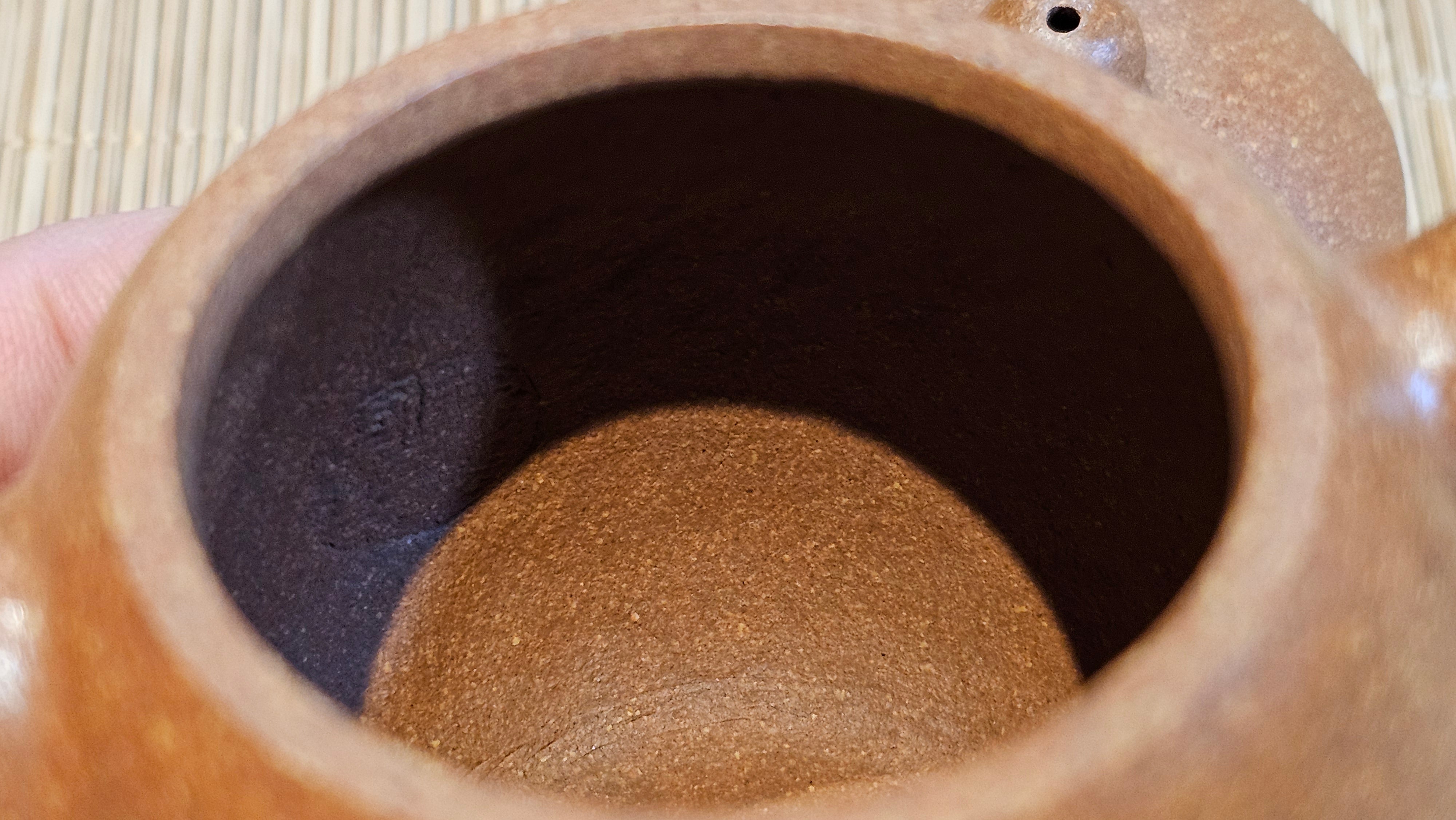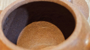 Chen Hua Jun is very familiar with Jiang Po Ni, both Red and Yellow, and here, he brings forth this Long Dan 龙蛋。 Jiang Po Ni is a combination of Hong Ni, Zi Ni and Lü Ni. Both Hong (Red) Jiang Po Ni and Huang (Yellow) Jiang Po Ni are both relatively sandy/grainy, with the characteristic ORANGEY-RED HUE. Both Hong Jiang Po Ni and Huang Jiang Po Ni contain the combination of HongNi, LüNi and ZiNi. Hong Jiang Po Ni has comparatively more HongNi within, while Huang Jiang Po Ni has a higher percentage of ZiNi and LüNi within. JiangPoNi is amazingly porous. Huang Jiang Po Ni is one of the most amazing unadulterated ZiSha clay with amazing Patina formation through use. It is very rewarding to use Huang Jiang Po Ni, both for its amazing Patina formation and its excellent pairings with both Sheng and Shu Pu Er.