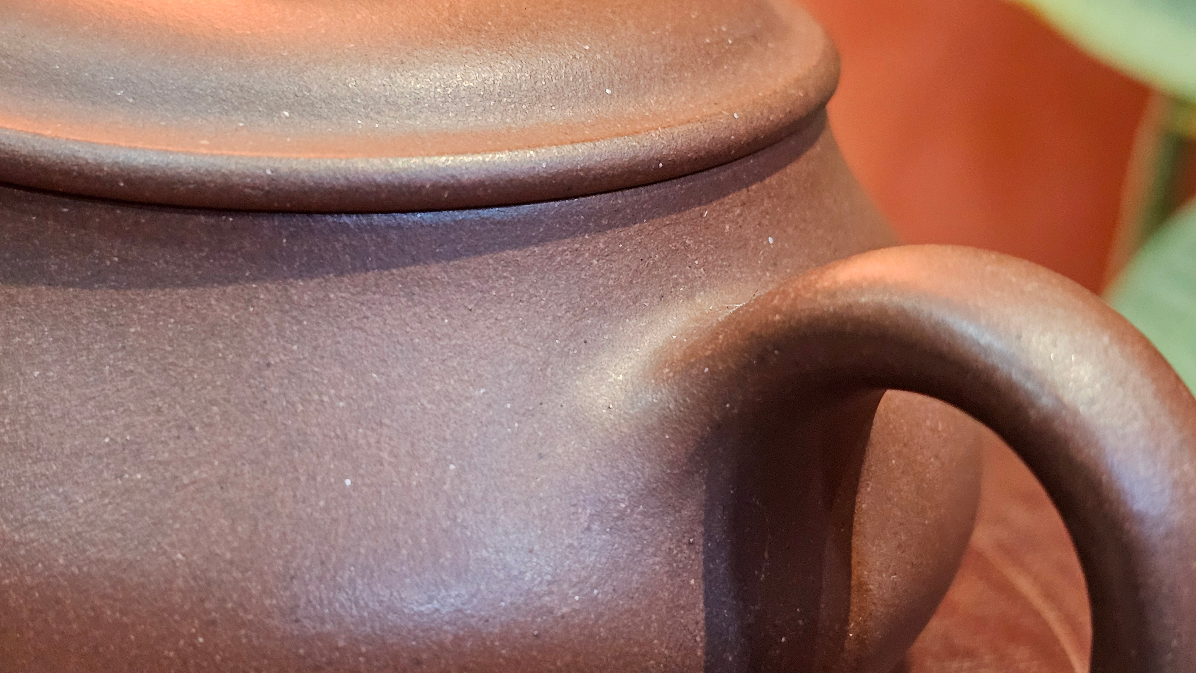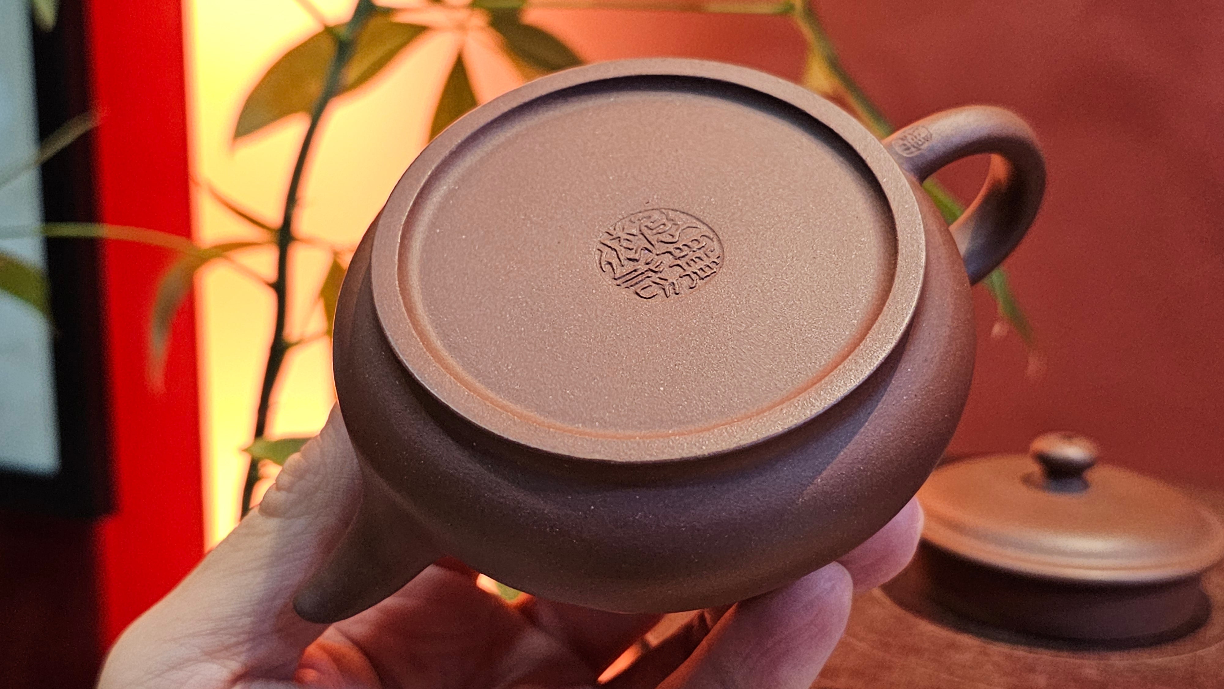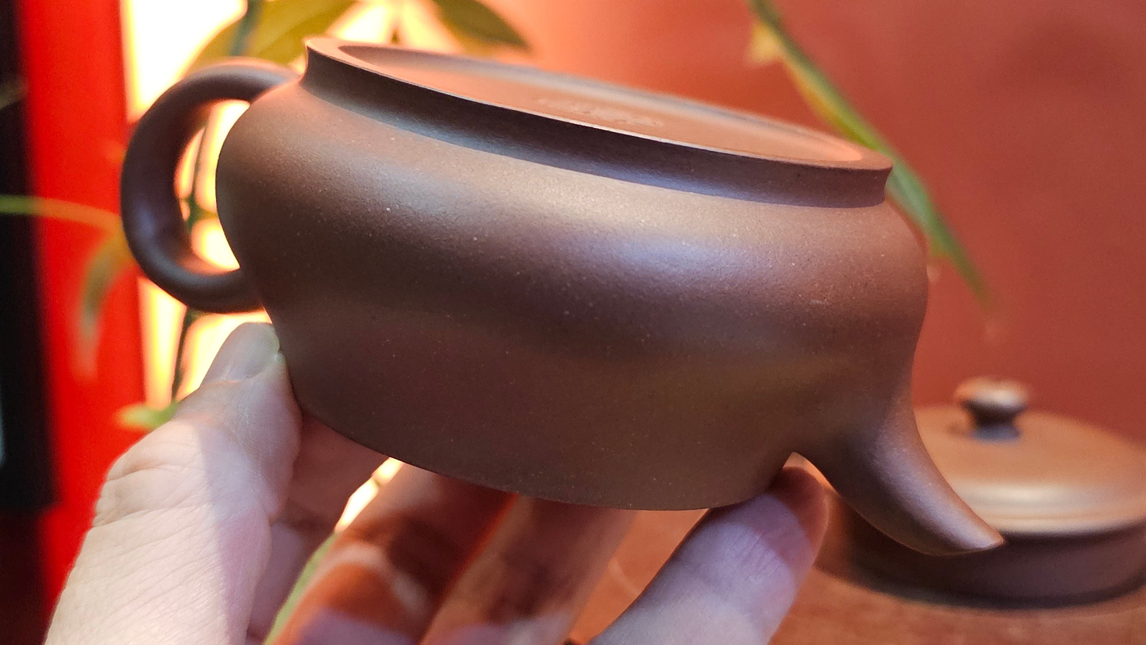 Ming Lu first of all, 1)exudes the Aura of Chinese Orientalism, secondly 2)has a wide opening for extreme EASE of introducing tea leaves and washing after steeping, 3)has a sharp-ish spout for decisive cutting of flow, and 4)has a slightly raised lid that stores a column of air above the tea water level when the lid is closed, so that during the initial first moment of pour with that few degrees of tilt, tea water flows out decisively and easily right from the start. 5) It also has a raised circular base with the protruding circular foot so that it is easier for you to lower your hand and introduce your index finger into the handle without your middle finger knuckle hitting the tea table. This raised foot also makes the pot seems larger than its volume suggests, giving a bigger presence on your 禅意十足 Zen tea table.
