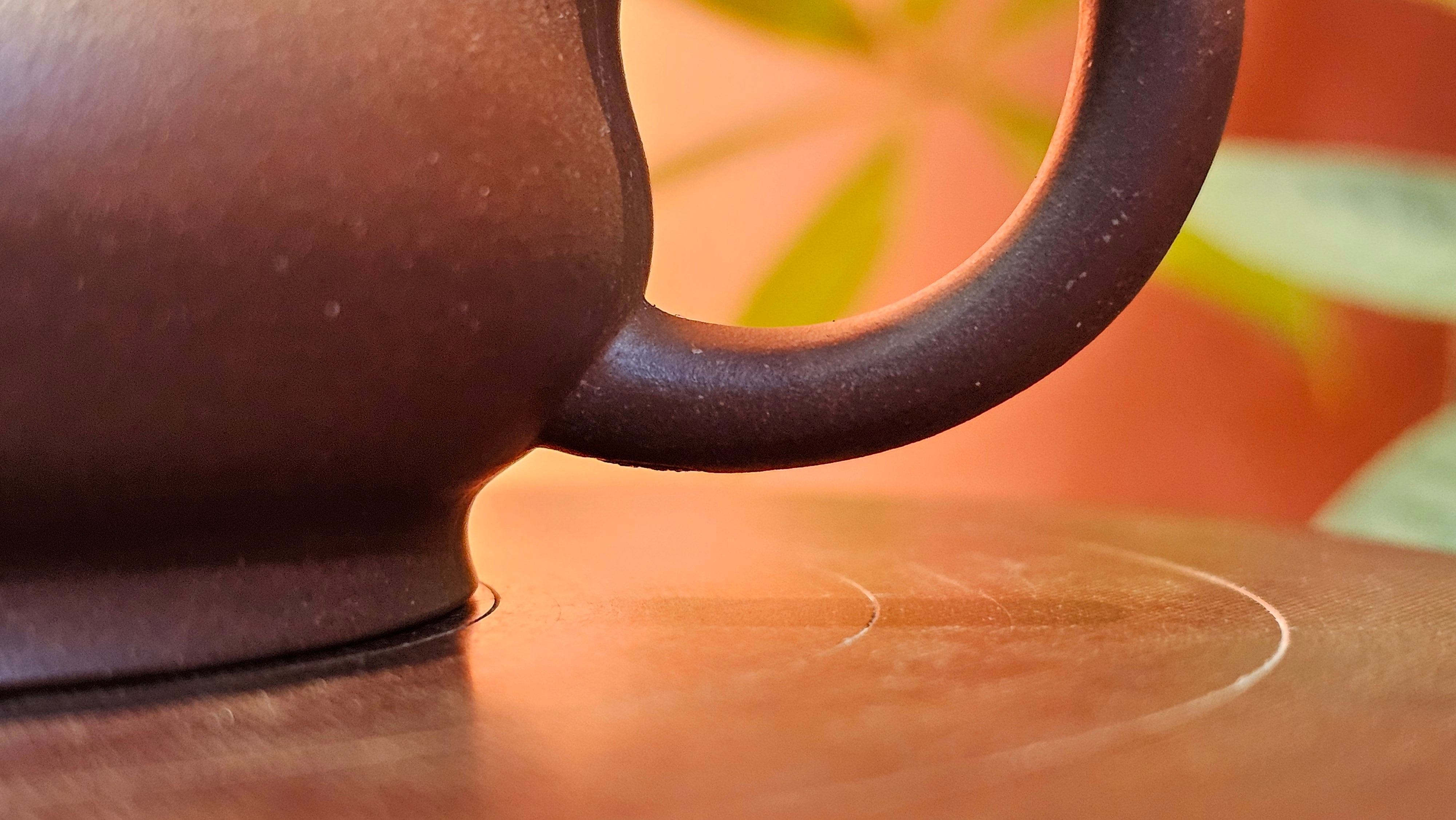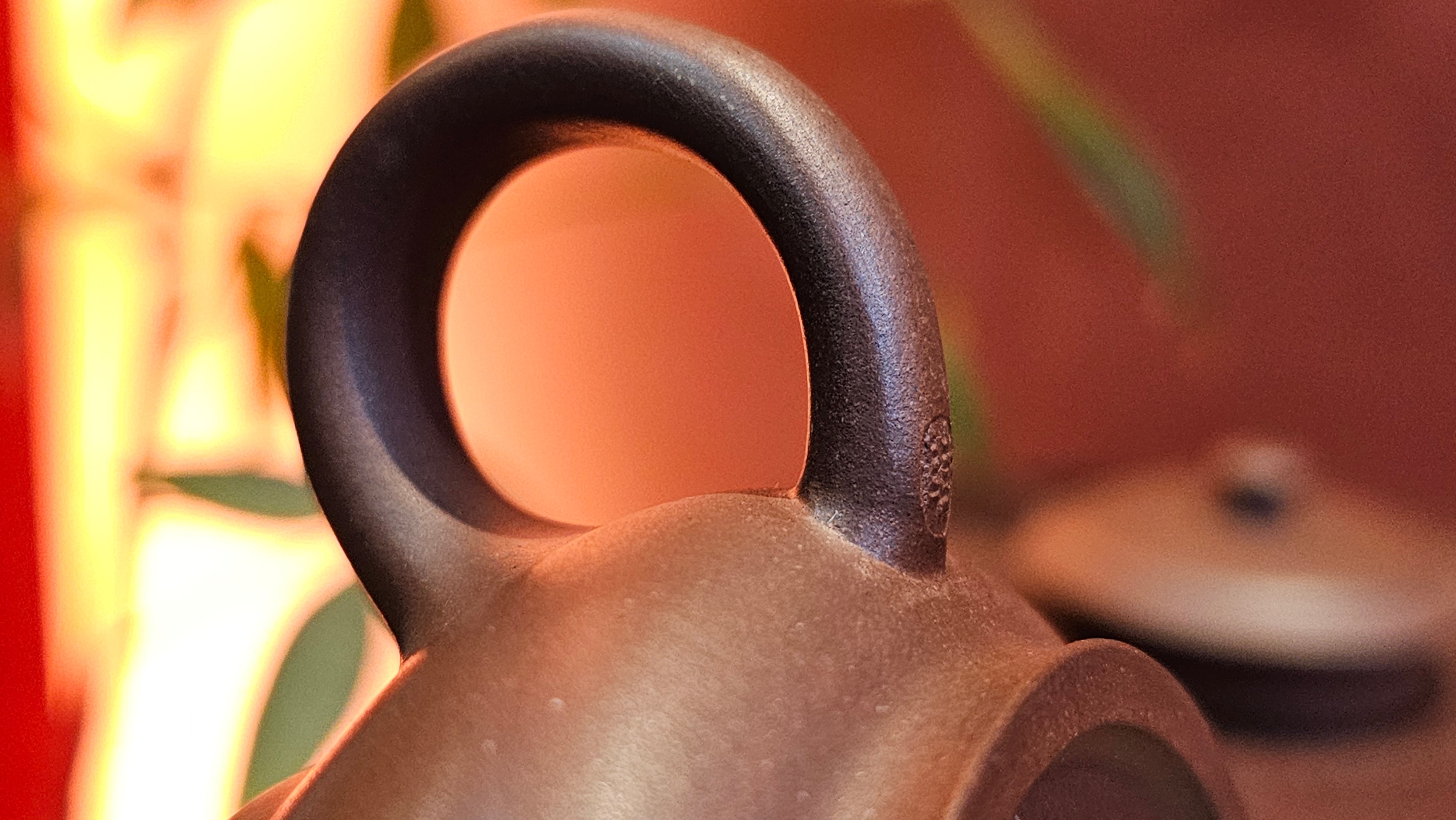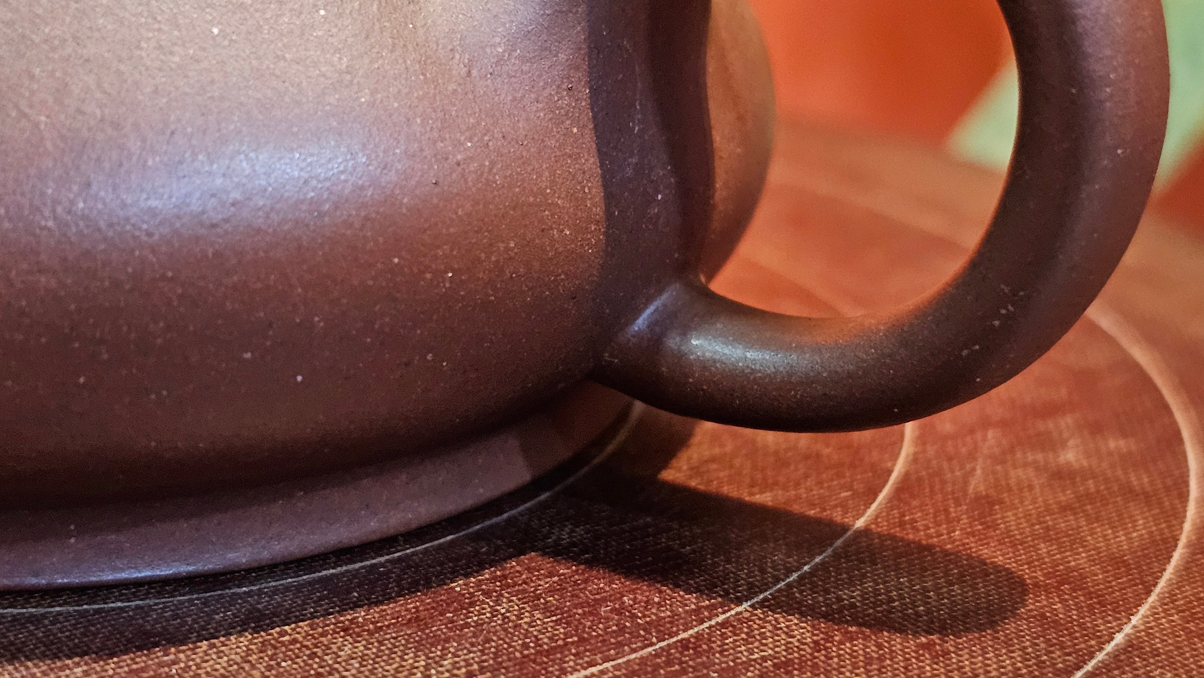 Ming Lu first of all, 1)exudes the Aura of Chinese Orientalism, secondly 2)has a wide opening for extreme EASE of introducing tea leaves and washing after steeping, 3)has a sharp-ish spout for decisive cutting of flow, and 4)has a slightly raised lid that stores a column of air above the tea water level when the lid is closed, so that during the initial first moment of pour with that few degrees of tilt, tea water flows out decisively and easily right from the start. 5) It also has a raised circular base with the protruding circular foot so that it is easier for you to lower your hand and introduce your index finger into the handle without your middle finger knuckle hitting the tea table. This raised foot also makes the pot seems larger than its volume suggests, giving a bigger presence on your 禅意十足 Zen tea table.