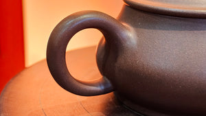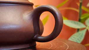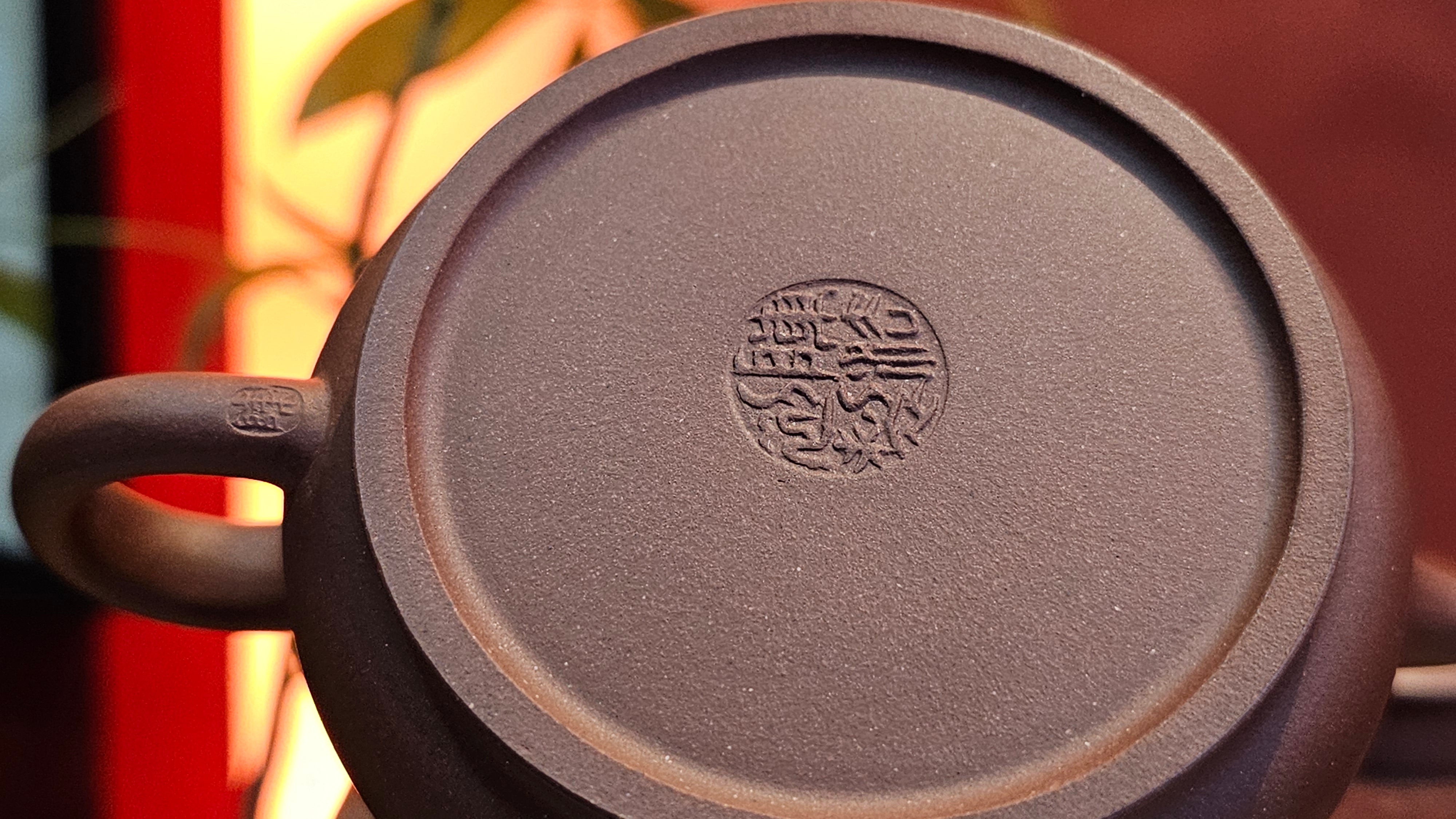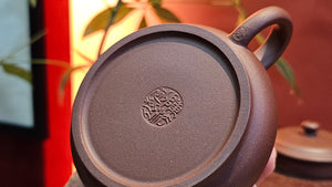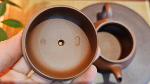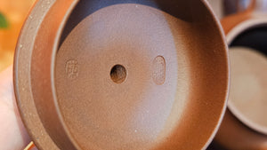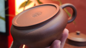 The lines and detailing speak of Craftsman Chen Fa Chu's EXTREME CARE AND TIME taken to craft each part, each pot. Hold one, hold up one, swing the work around. Carefully examine his Fully-Handmade work. Look at it from afar, from near, and it will grow on you, with fine detailing with MUCH THOUGHT on each part, with MUCH TIME spent on every part, section. Because this is what Fully-Handmade ZiSha Art should be, and HOW FULLY-HANDMADE ZISHA ART is so different from and light years ahead of the ubiquitous jigger-machined pots and half-handmade pots masquerading under the sales tagline of "fully-handmade zisha" pots. These latter JM/HHM pots are made in what we call 流水线 a.k.a. 'Factory-Line operation' whereby the main pot body after being jigger-machined or coming off from the mould, is passed to the next worker who fits on the spout, and subsequently this second worker will pass the pot on to another worker who will in turn fit on the handle. Continuing so, the pressed lid is likewise passed to another worker who fit on the lid knob. EACH WORKER has NO IDEA what the other one is doing, and they are always working on fixed time lines stated by the boss. For example, the worker being "passed the baton" a pot with the spout just fixed onto the body by his colleague, will only focus on fixing on the handle, with nil to little regard to WHETHER THE HANDLE fixed on will be cohesive with the spout. Each worker has NO idea of HOW THE FINAL POT WILL LOOK LIKE. Beyond poor craftsmanship and clay, the result of such processes are ugly pots with poor cohesiveness which experienced Artists, Craftsmen and collectors will tell from a metre away. Experienced people in us, do not need to pick up a pot to check whether it is fully-handmade or made of zisha, we can tell from a metre away just by looking at the pot.