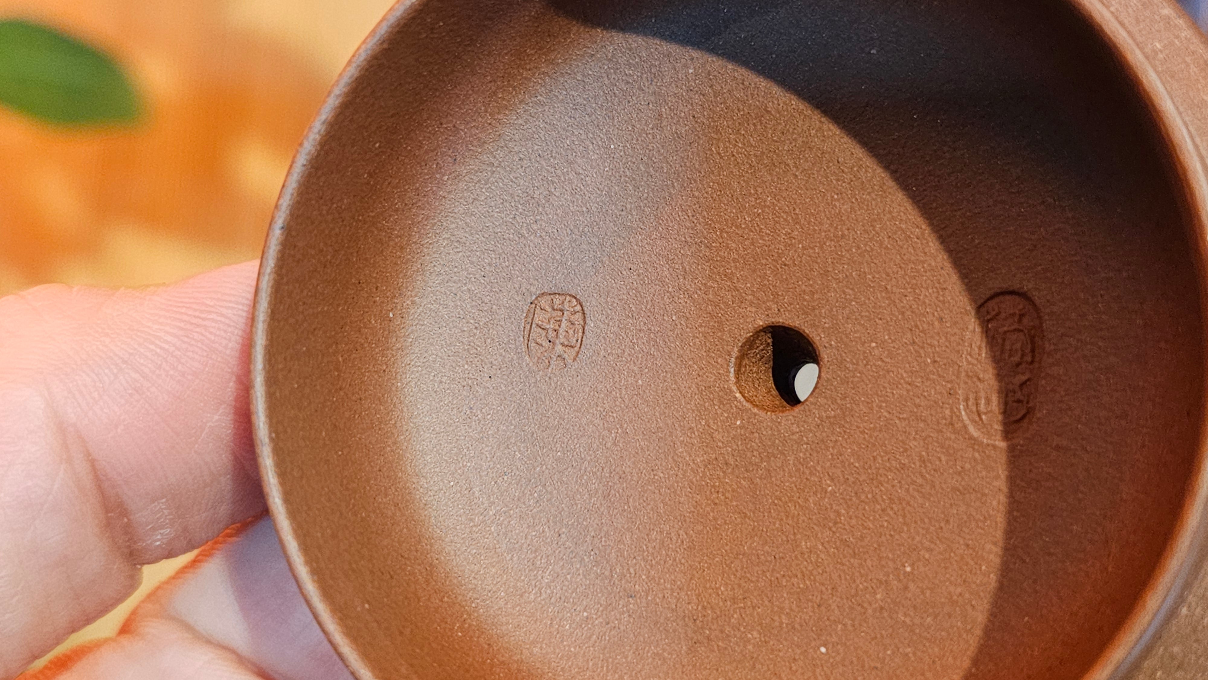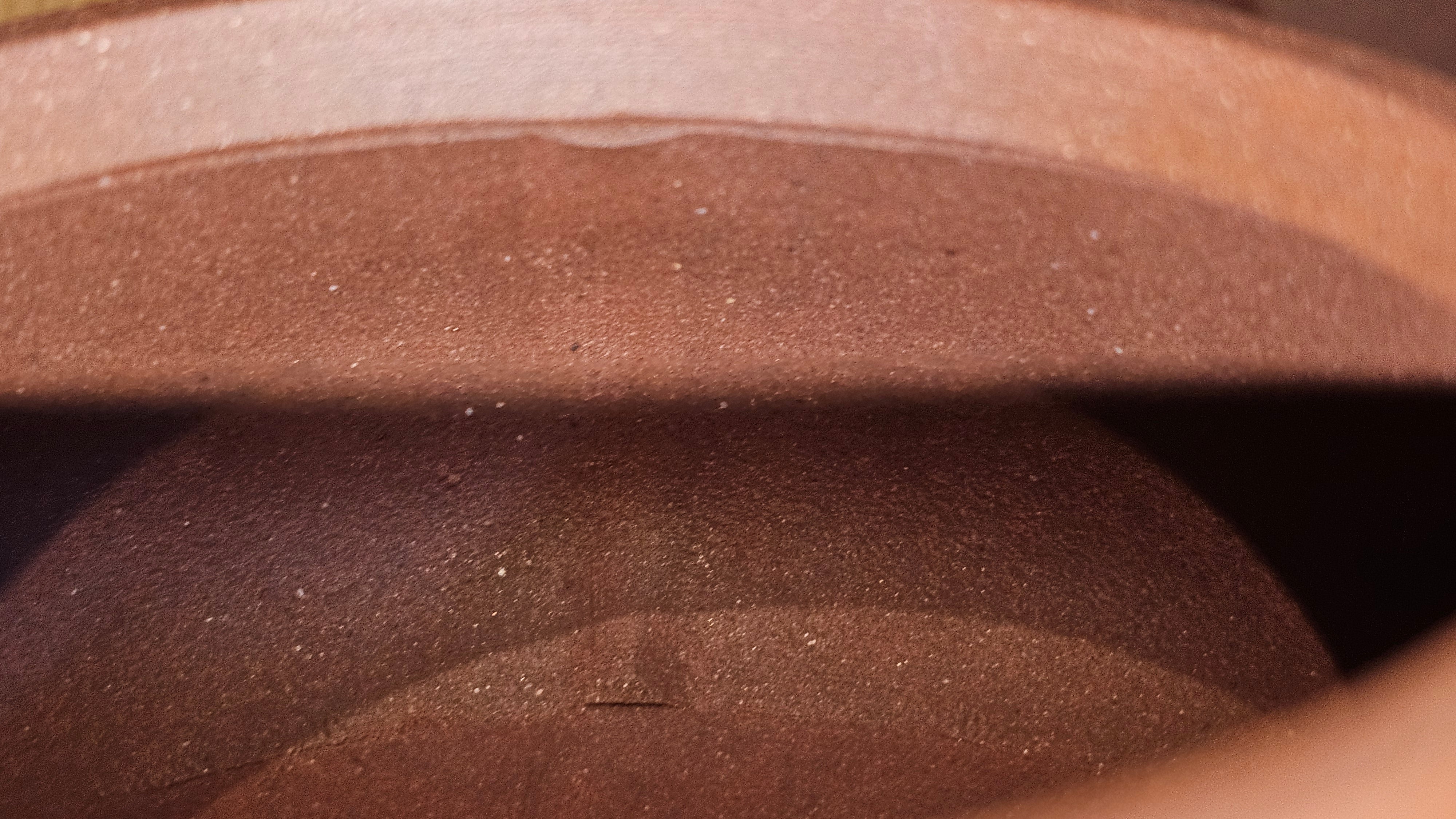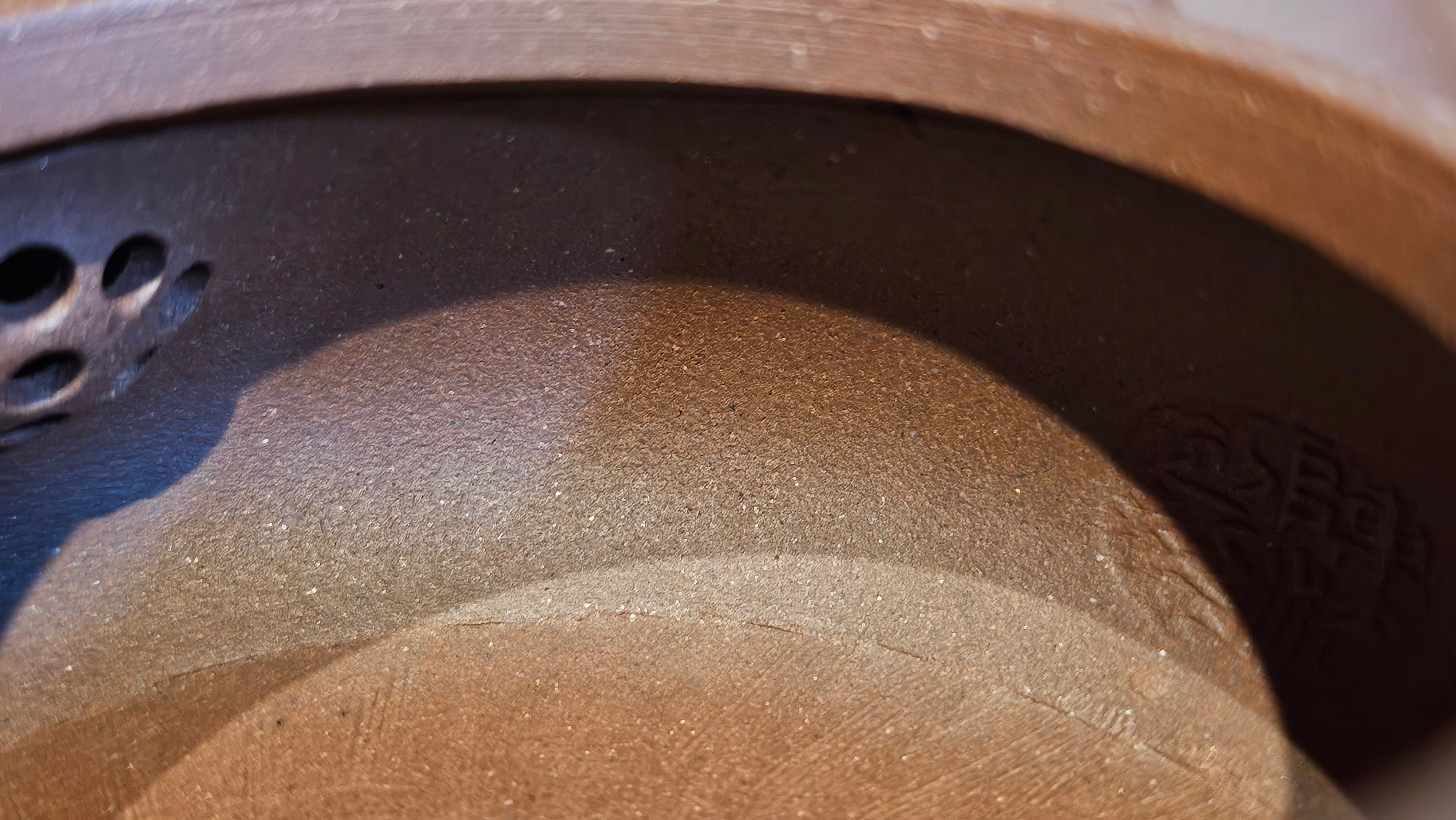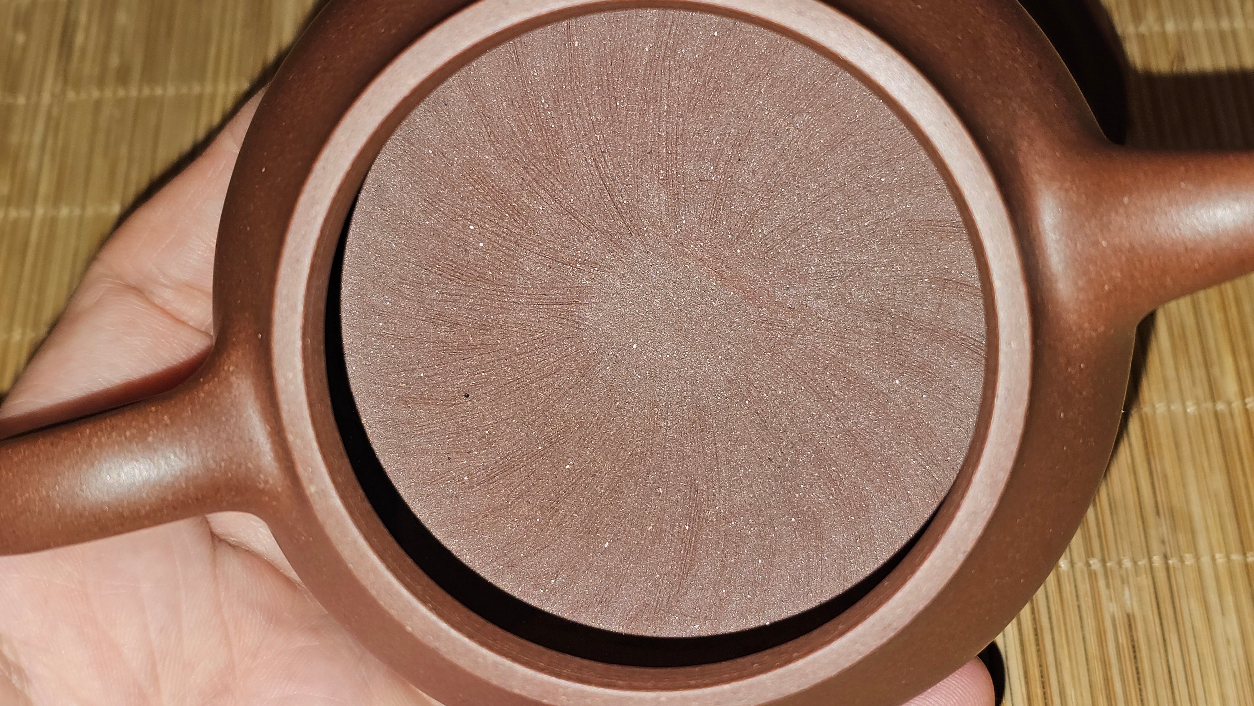 Here, Craftsman Chen specially took his time and dedication to craft in a hand-pushed in filter, due to the small base of the spout. His previous Ming Lu's of 220ml, does not need a hand-pushed in filter, but here, being made at ~170ml: the spout HAS to be made proportionally SMALLER. This resulted in the base of spout being smaller.