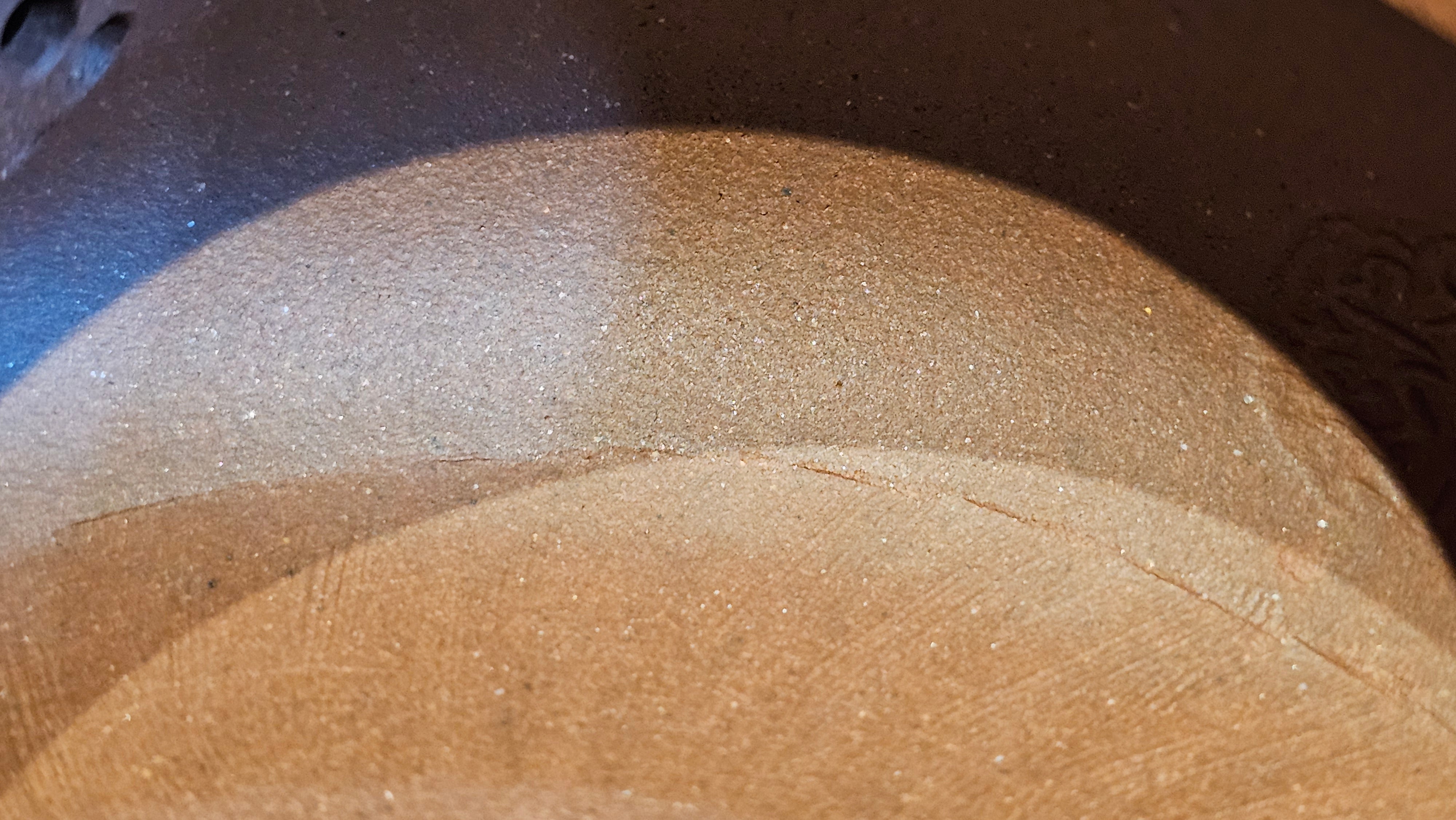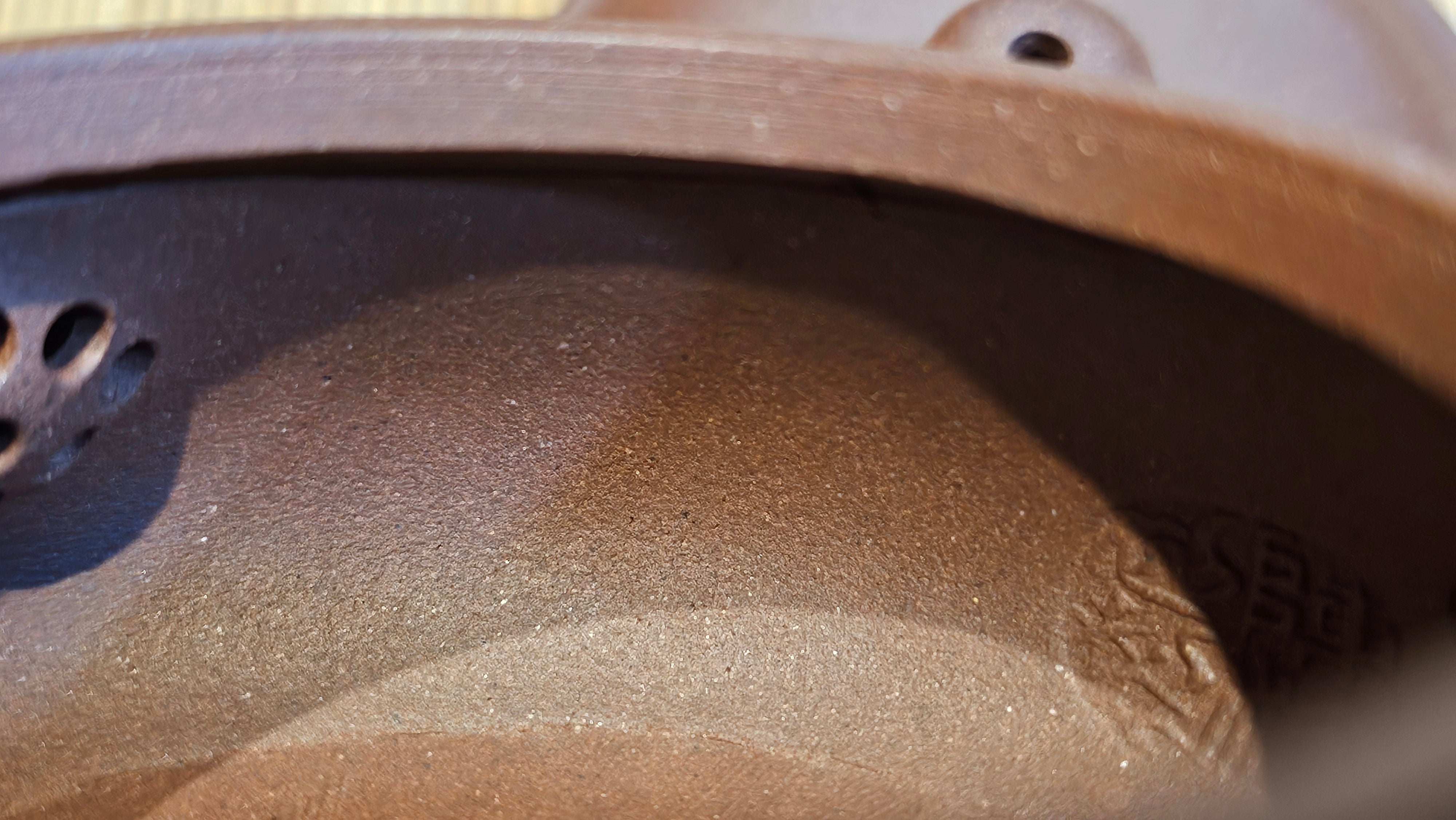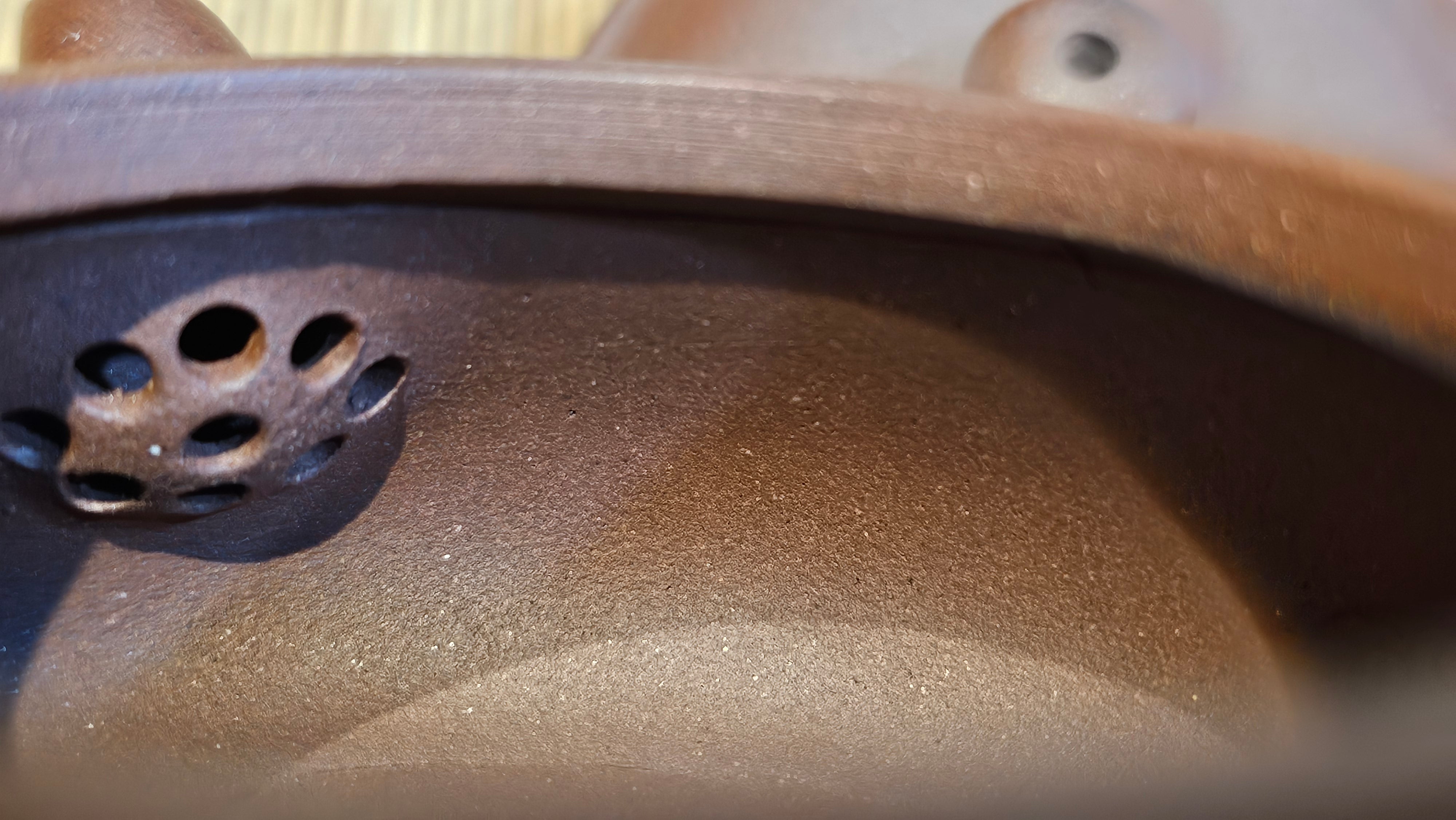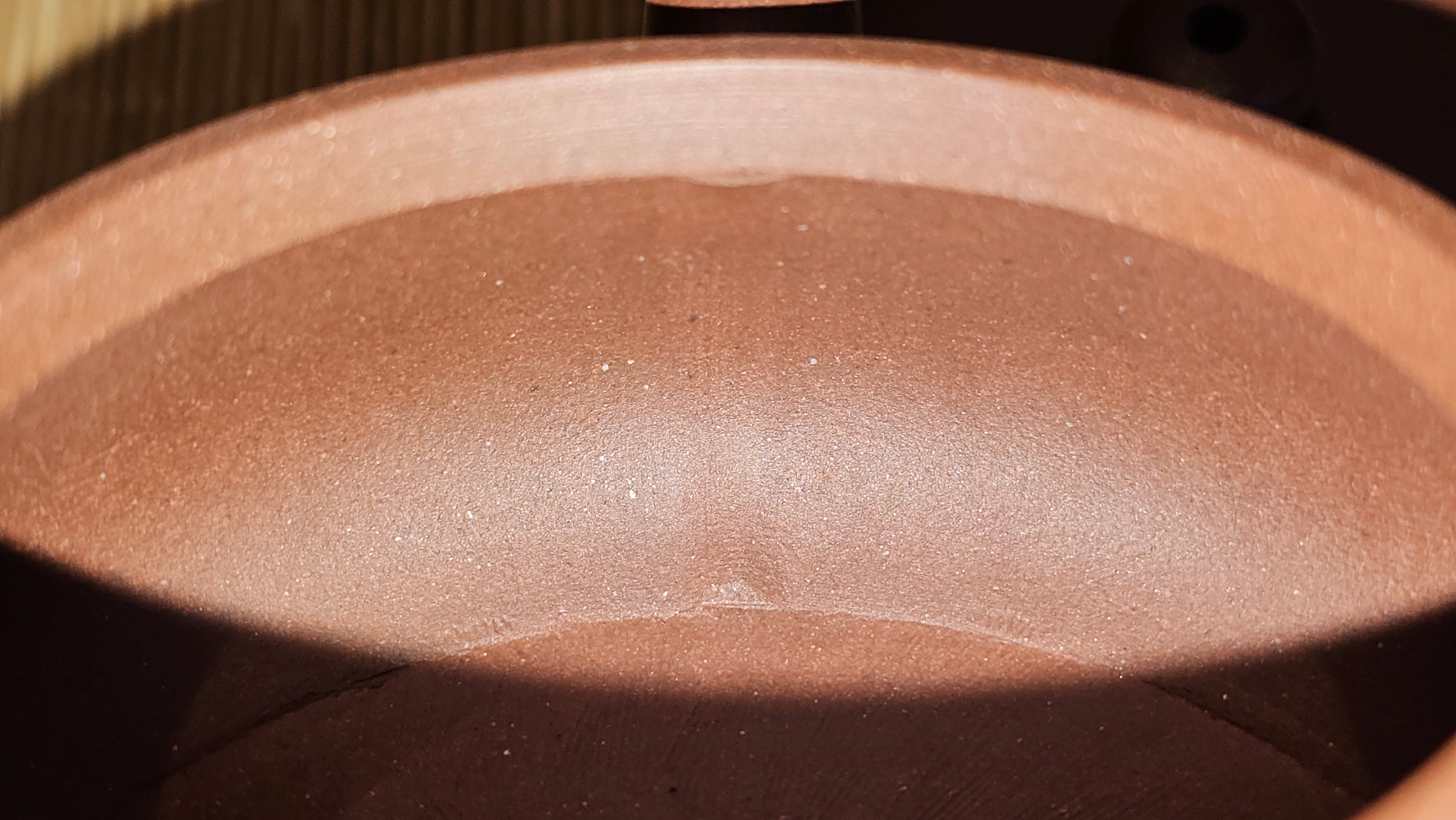 Here, Craftsman Chen specially took his time and dedication to craft in a hand-pushed in filter, due to the small base of the spout. His previous Ming Lu's of 220ml, does not need a hand-pushed in filter, but here, being made at ~170ml: the spout HAS to be made proportionally SMALLER. This resulted in the base of spout being smaller.