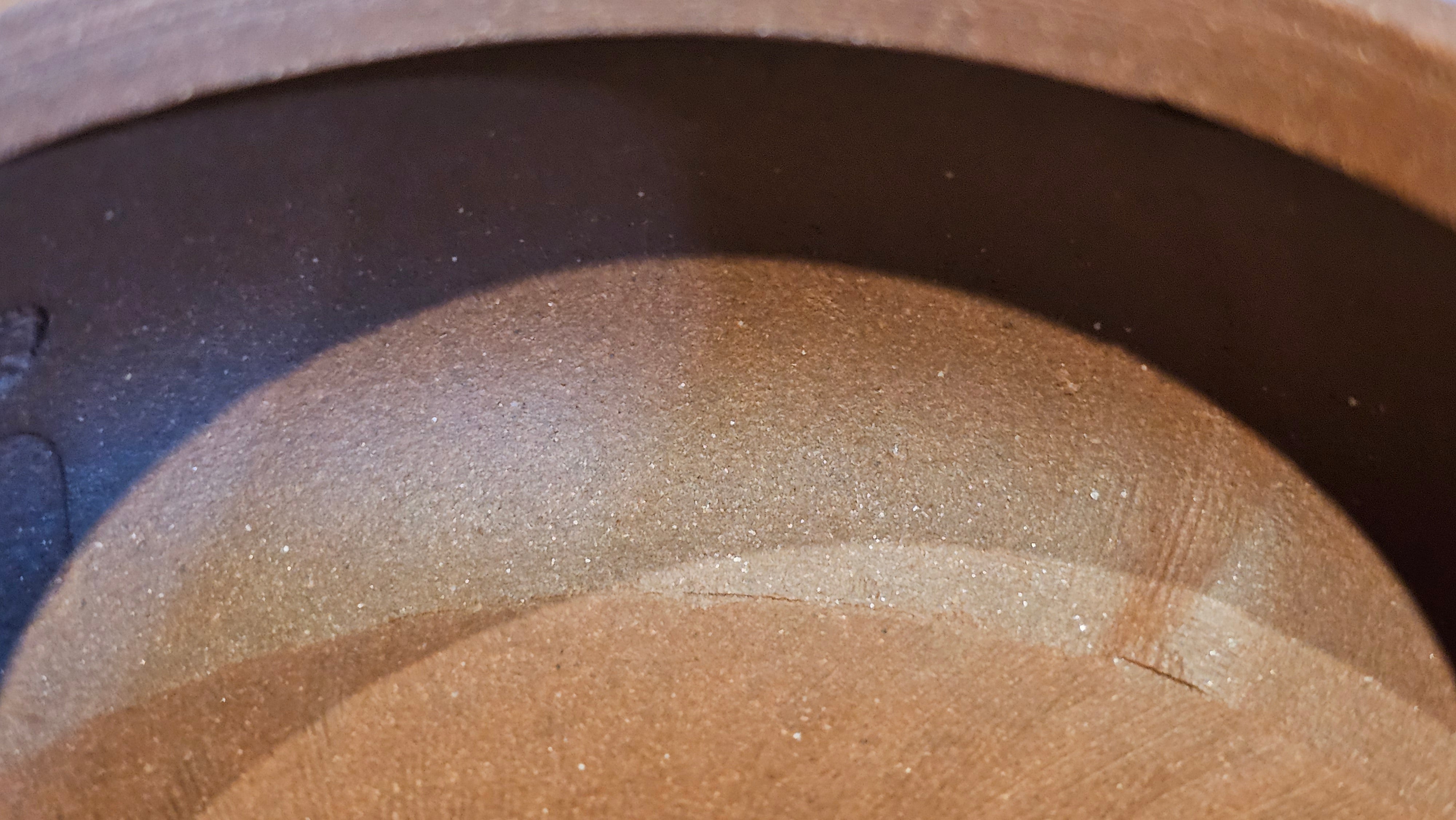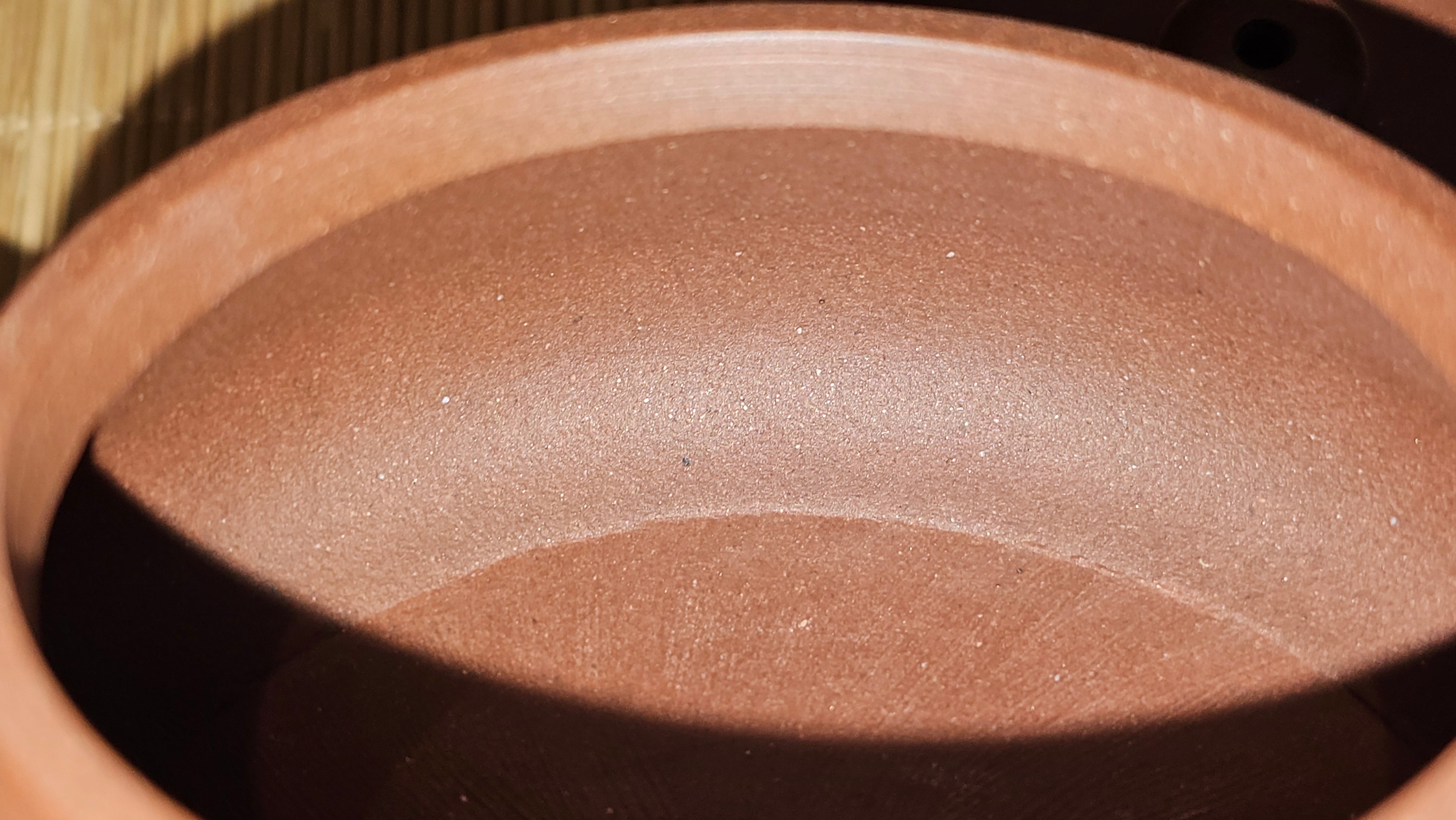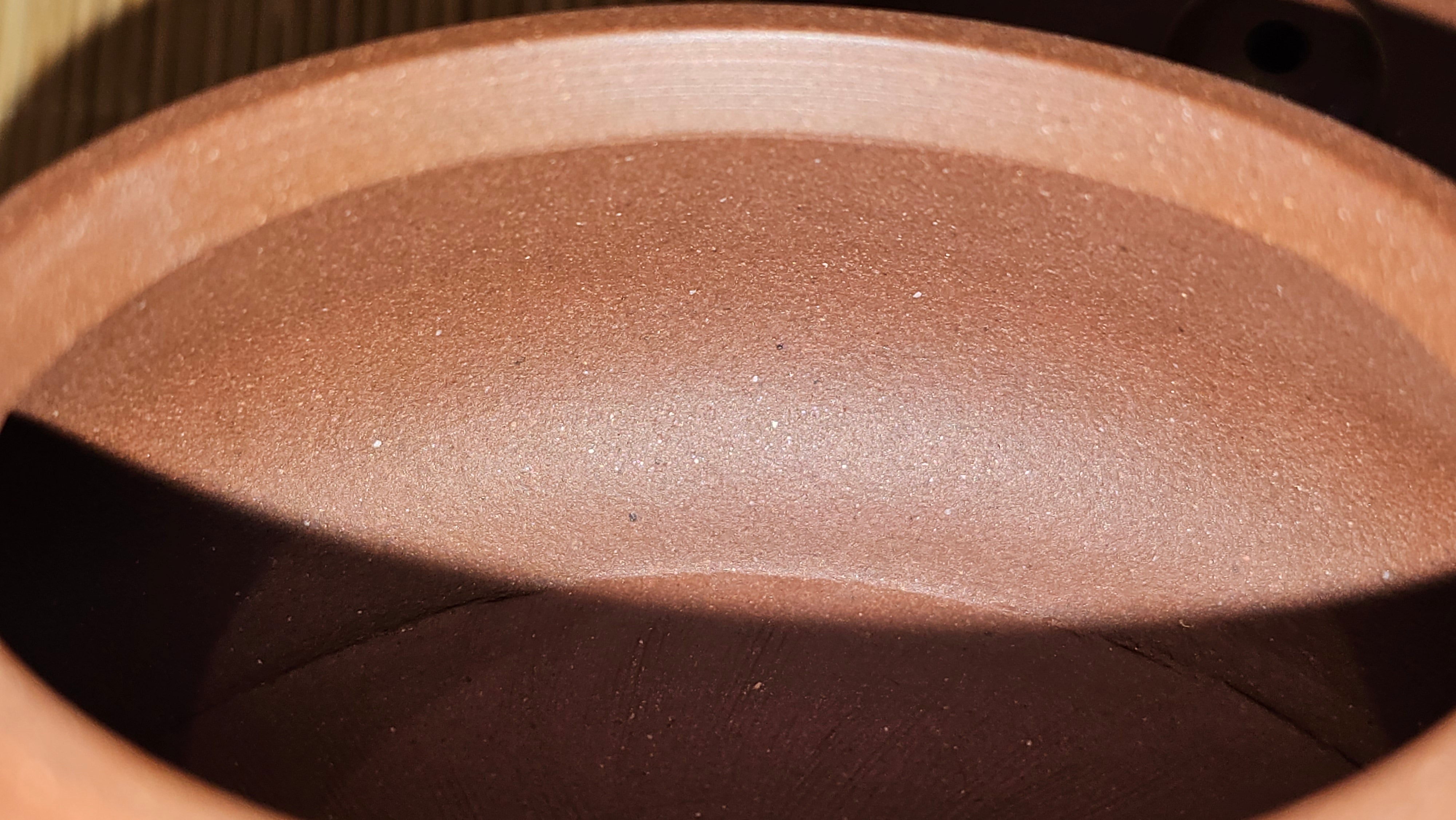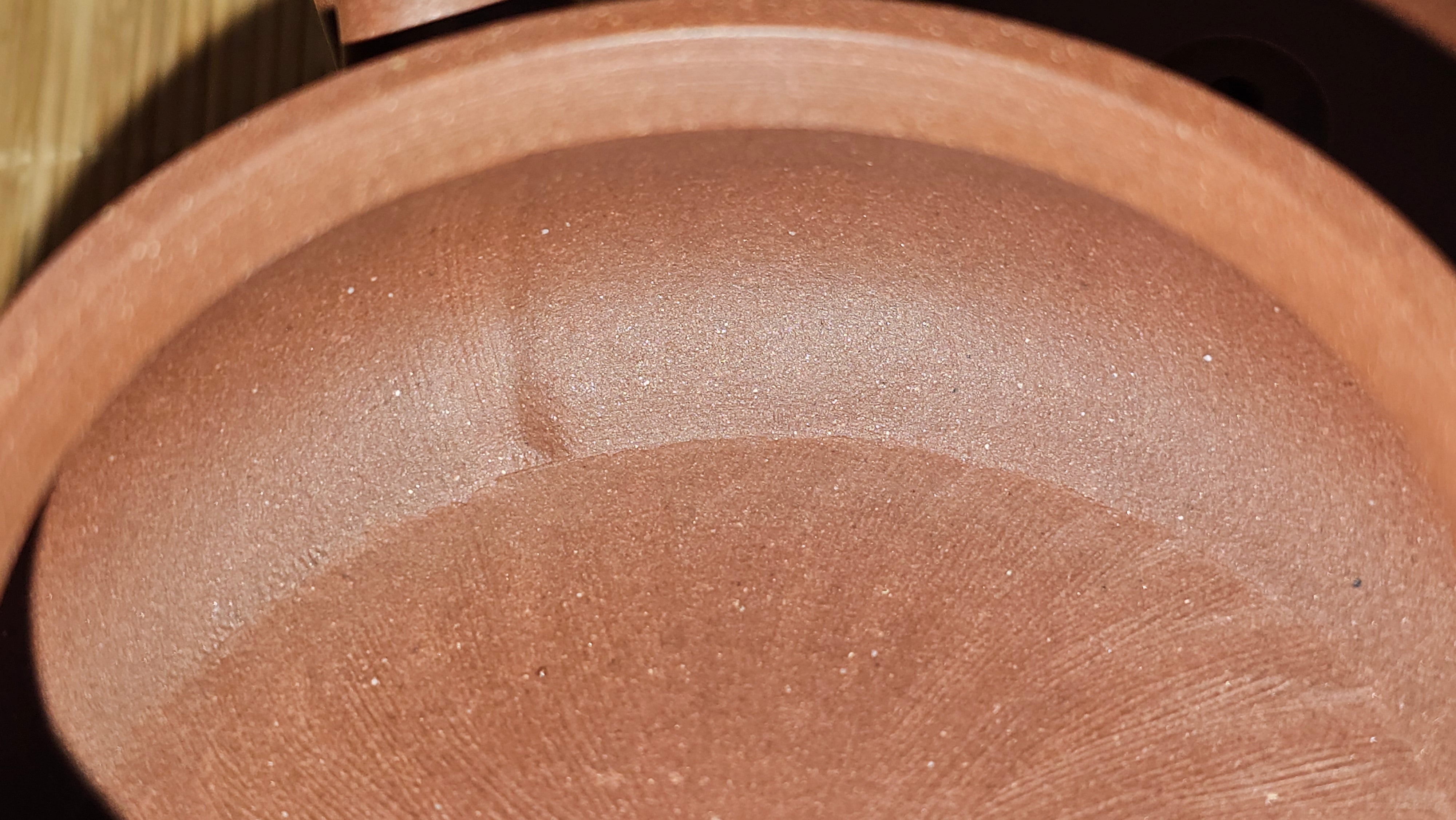 Here, Craftsman Chen specially took his time and dedication to craft in a hand-pushed in filter, due to the small base of the spout. His previous Ming Lu's of 220ml, does not need a hand-pushed in filter, but here, being made at ~170ml: the spout HAS to be made proportionally SMALLER. This resulted in the base of spout being smaller.