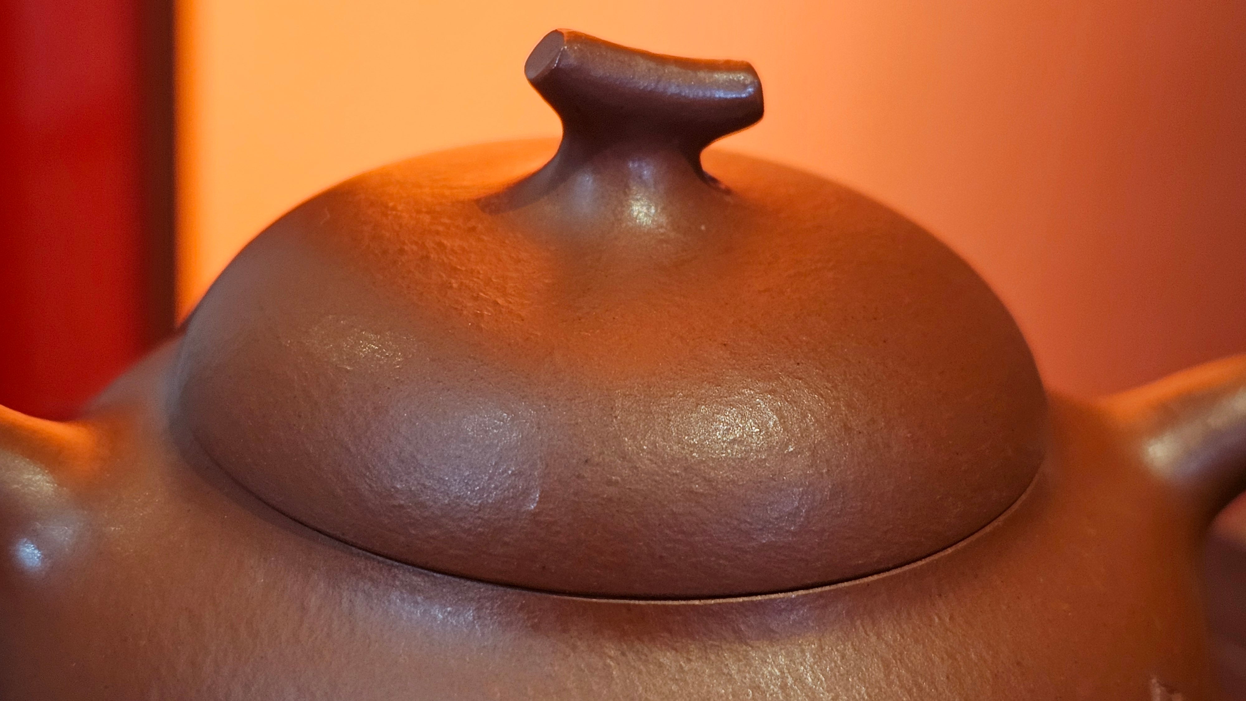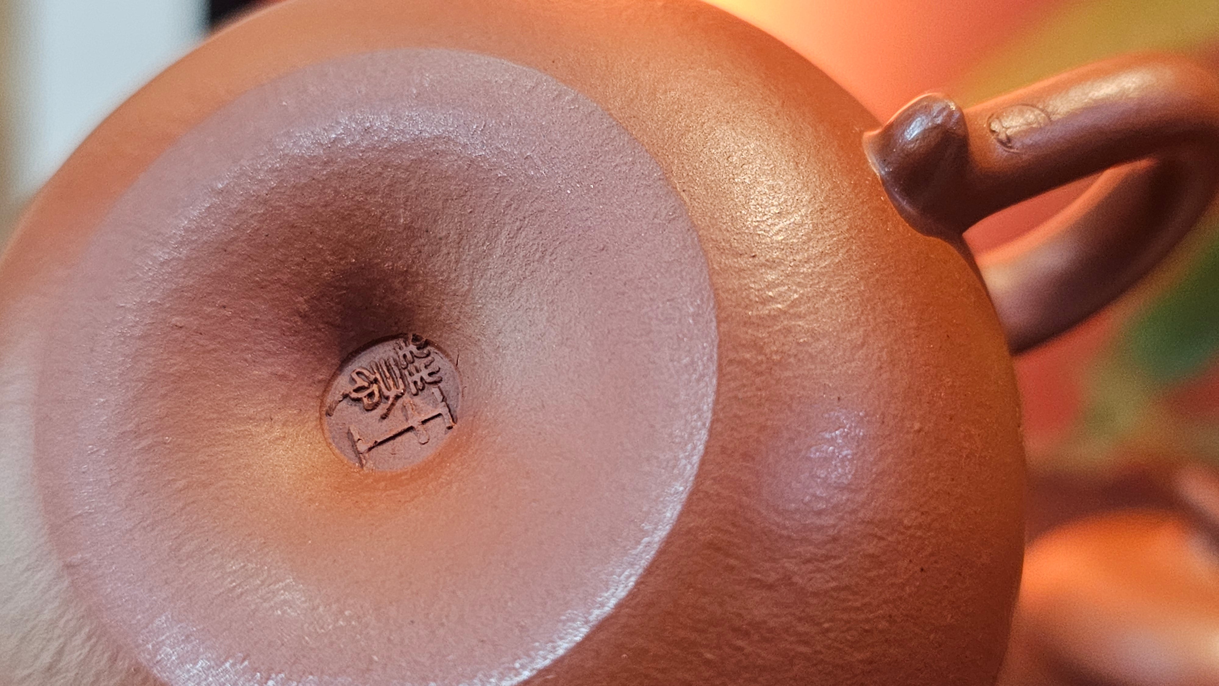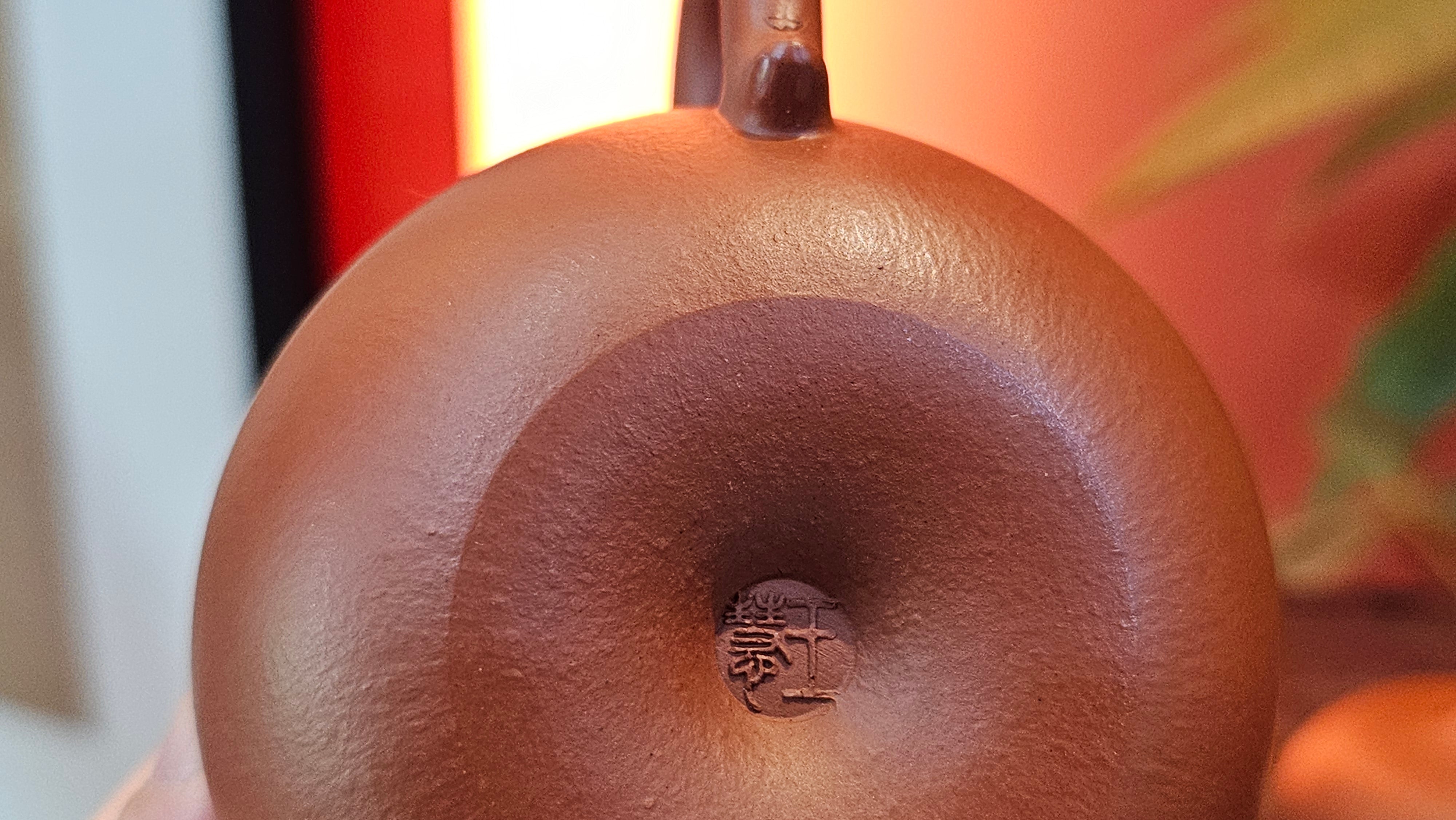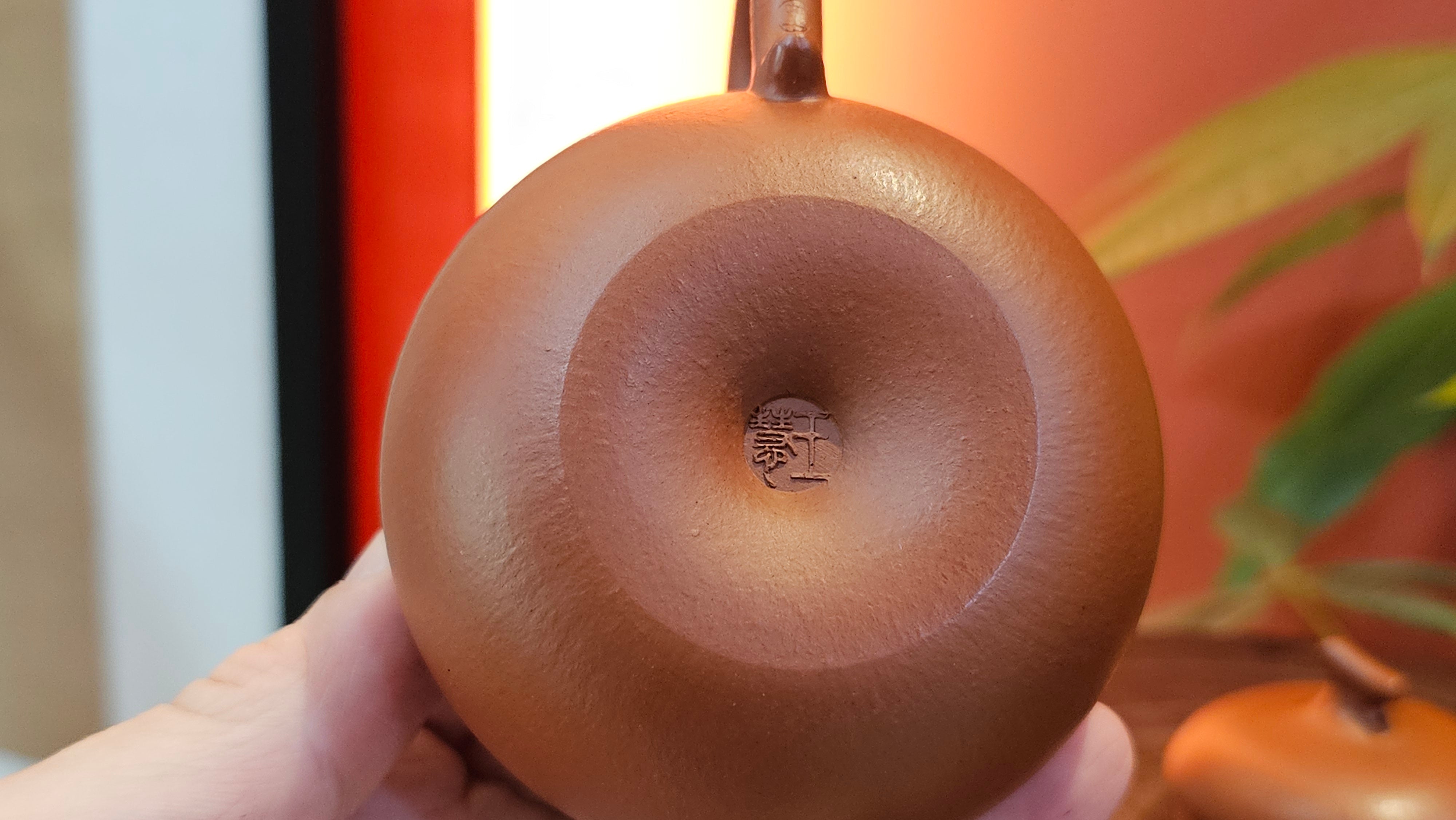 Very adorable model specially chosen by Craftsman Wang Hui! AMAZING powerful jet pour and quick emptying. Delightfully minimalistic ornate, resembling the Qie Gua fruit we consume in China, and she painstakingly worked in the exquisite lid knob! Seemingly simple, but upon closer inspection, the work of Craftsman Wang Hui is perceivable: