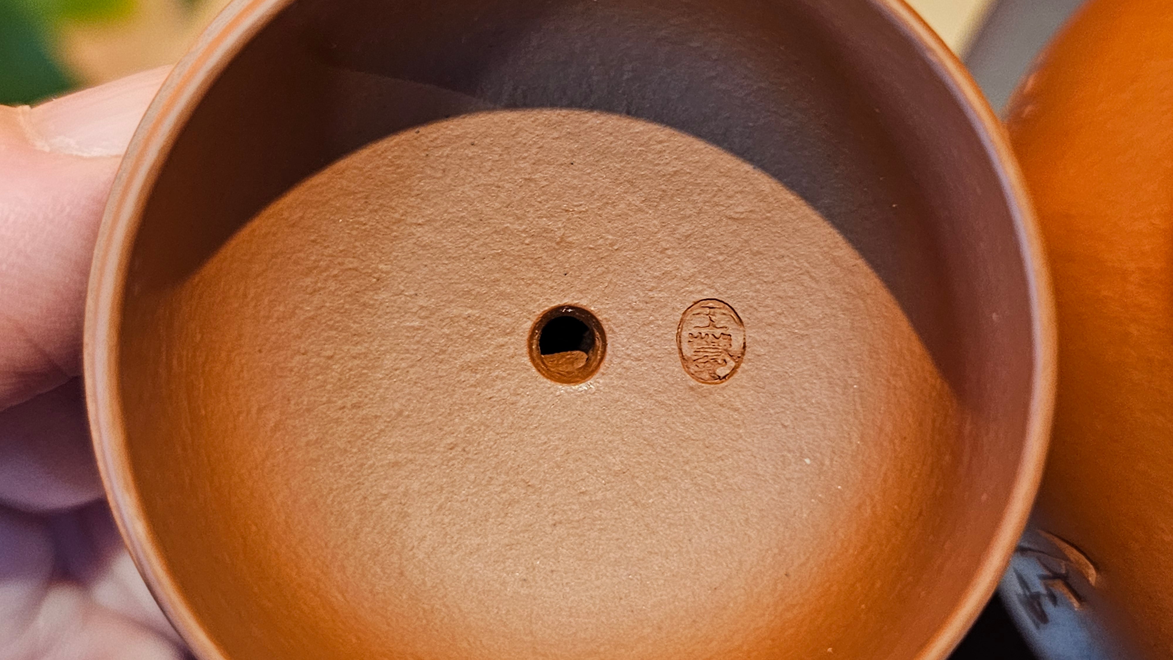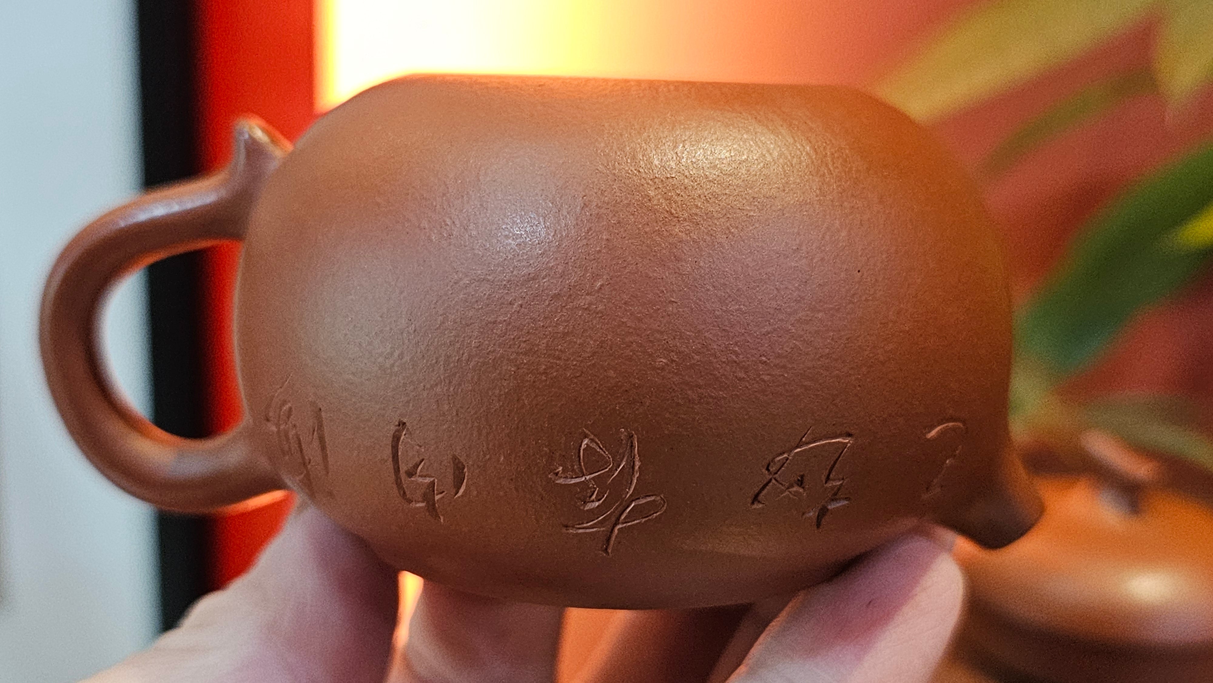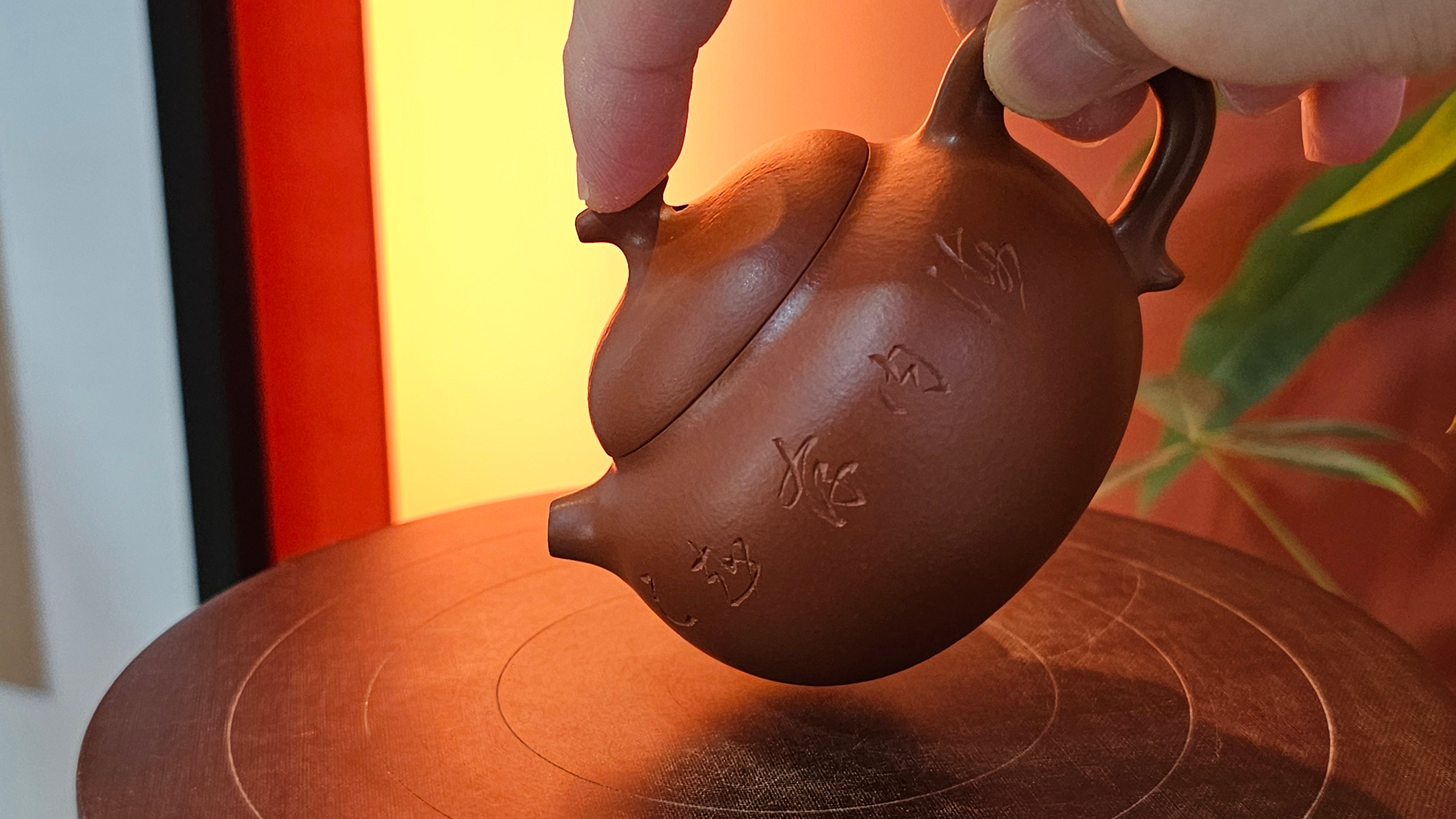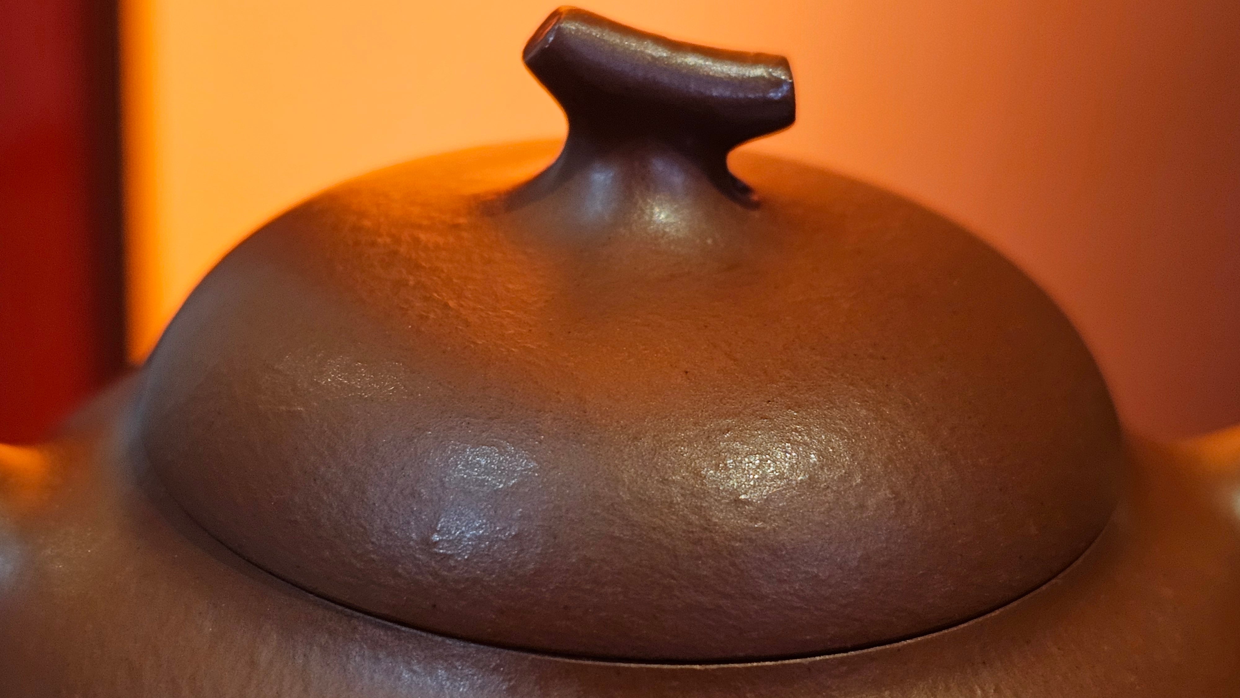 Very adorable model specially chosen by Craftsman Wang Hui! AMAZING powerful jet pour and quick emptying. Delightfully minimalistic ornate, resembling the Qie Gua fruit we consume in China, and she painstakingly worked in the exquisite lid knob! Seemingly simple, but upon closer inspection, the work of Craftsman Wang Hui is perceivable: