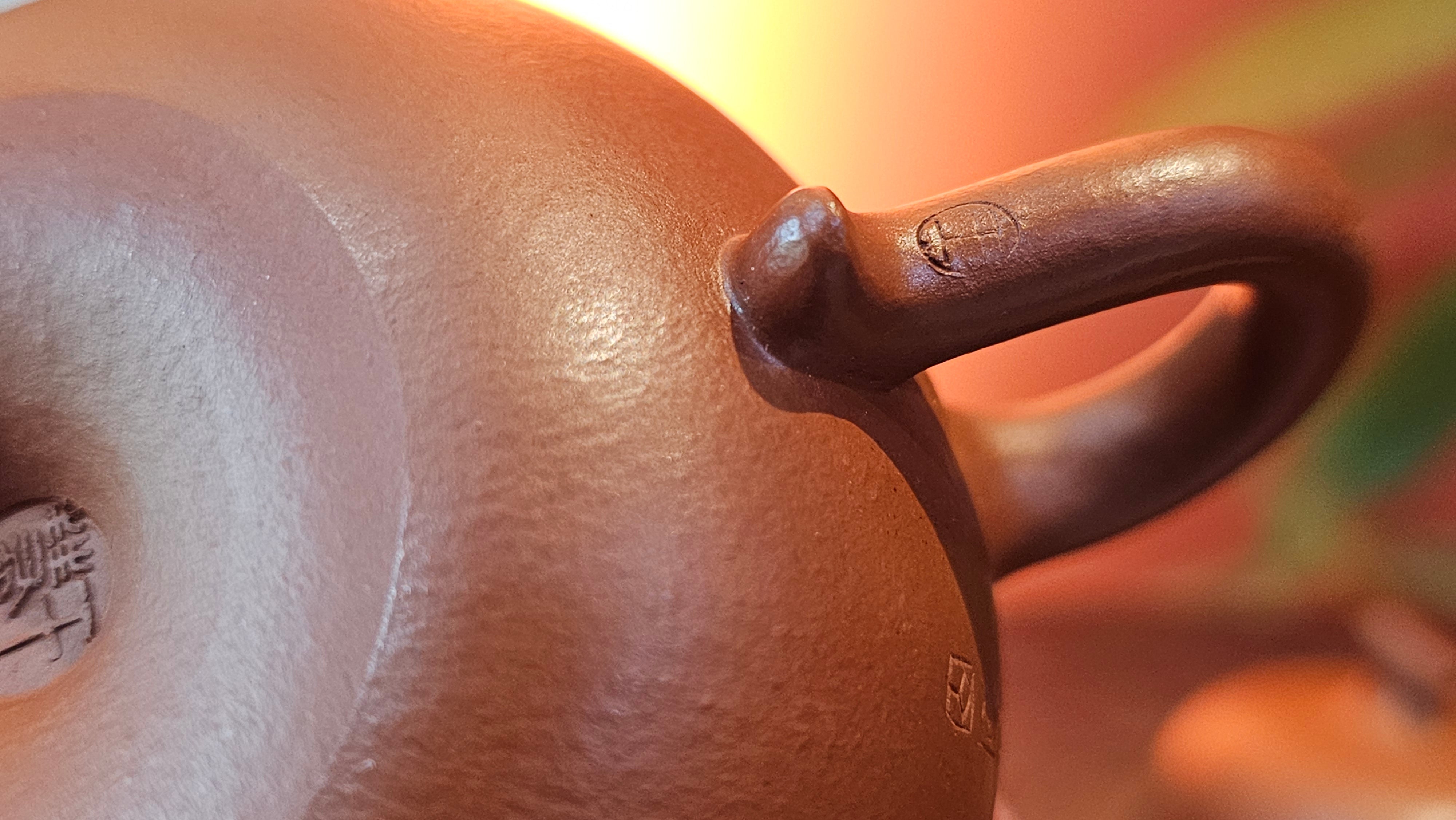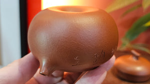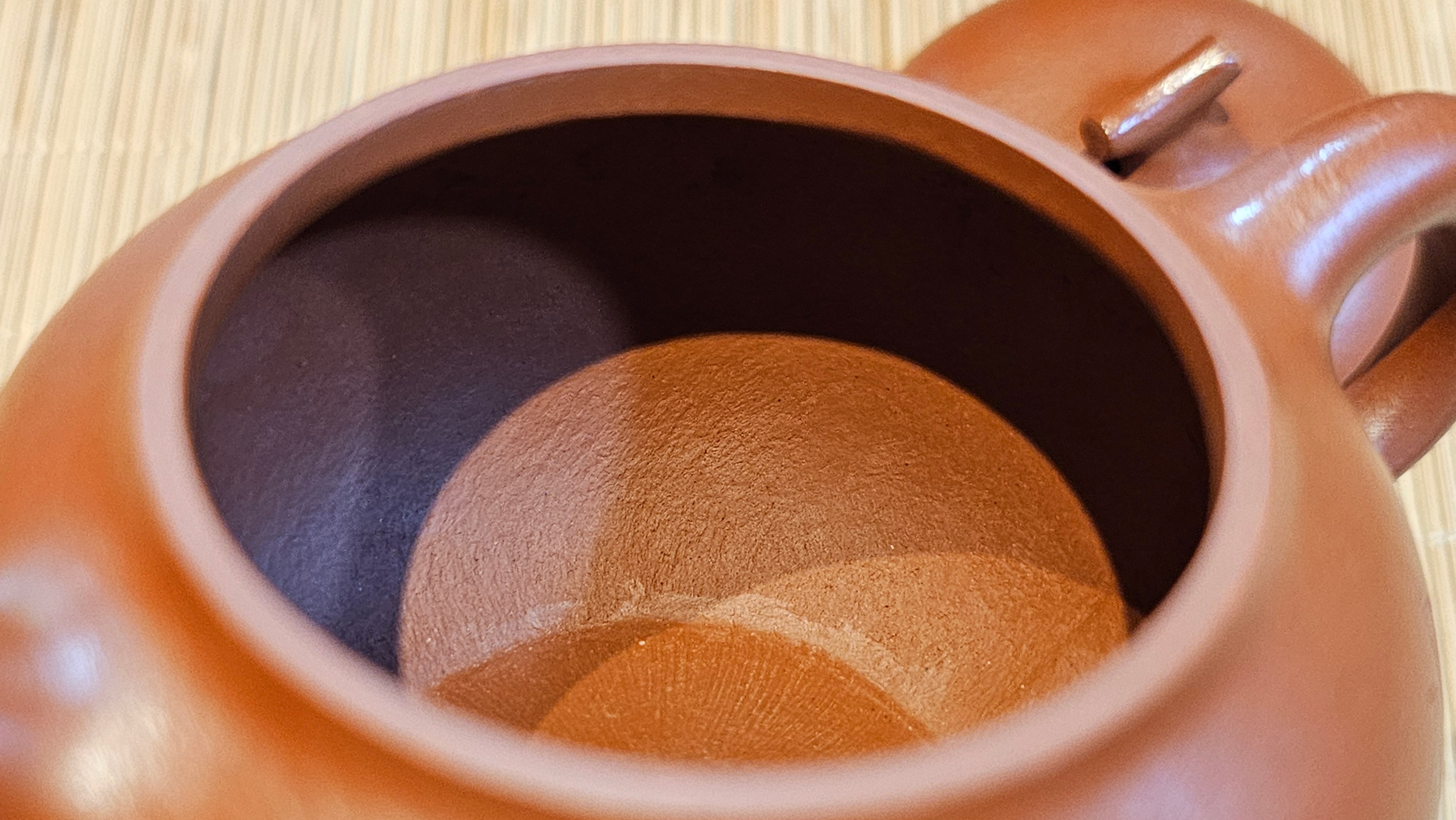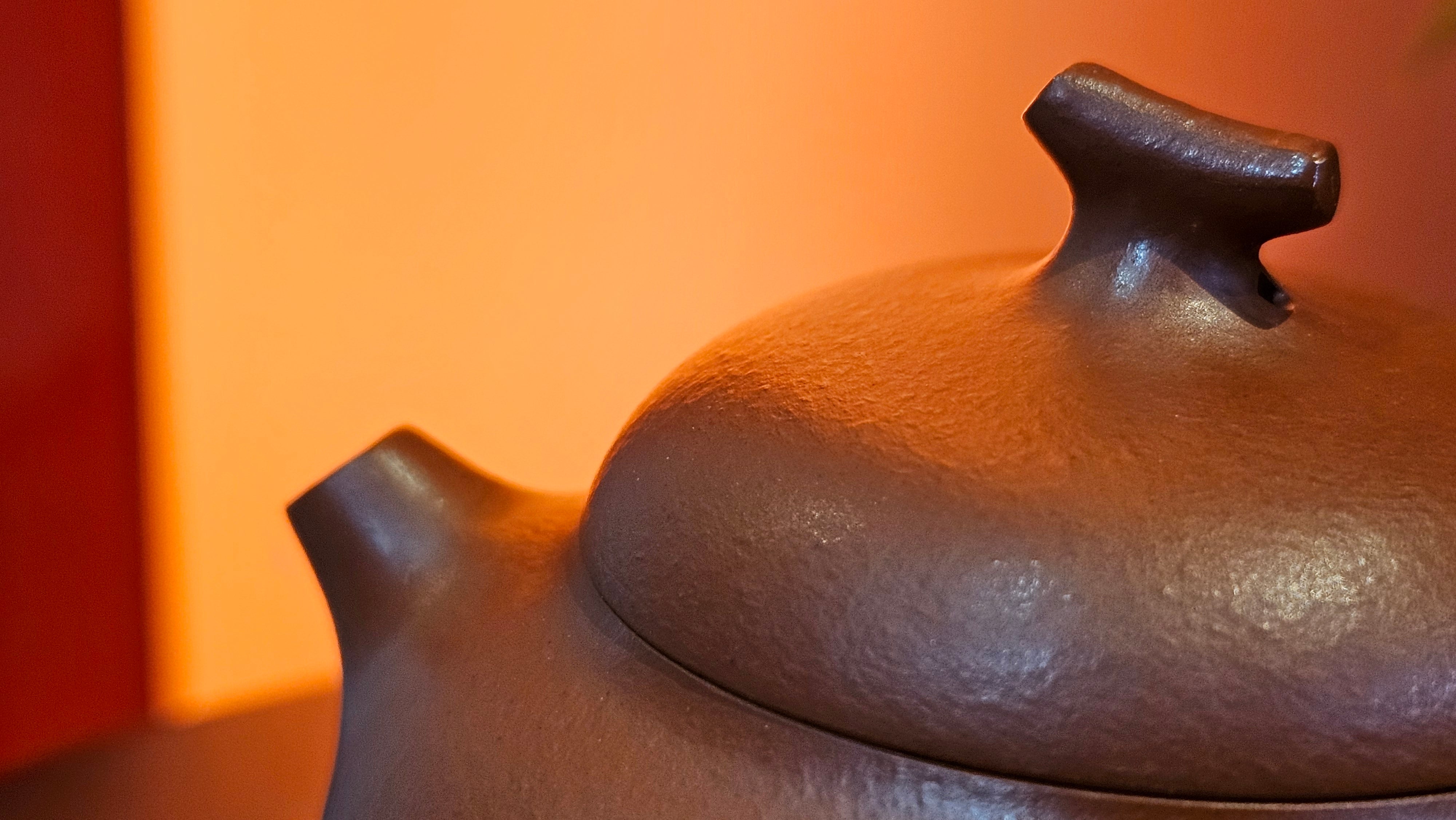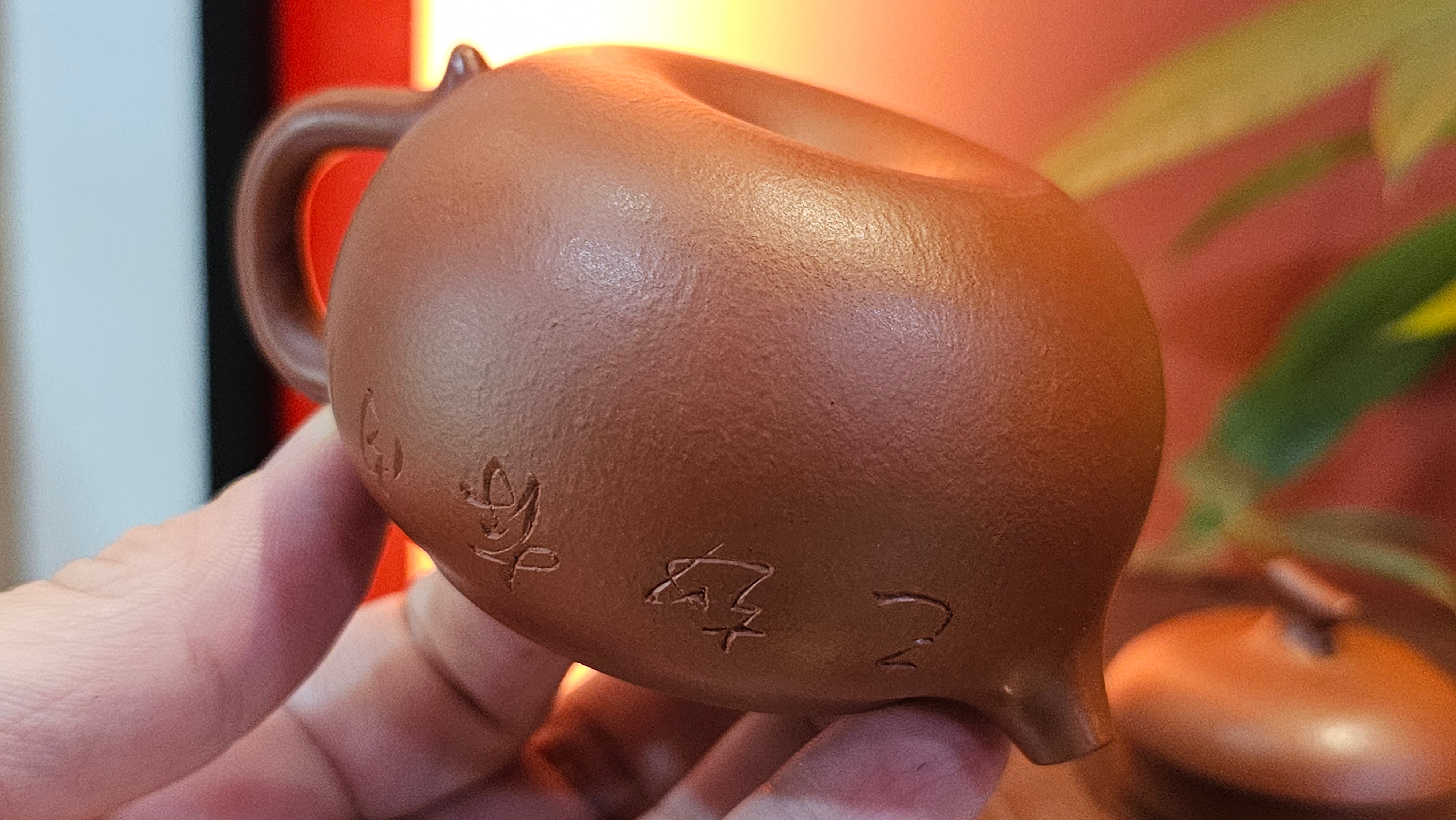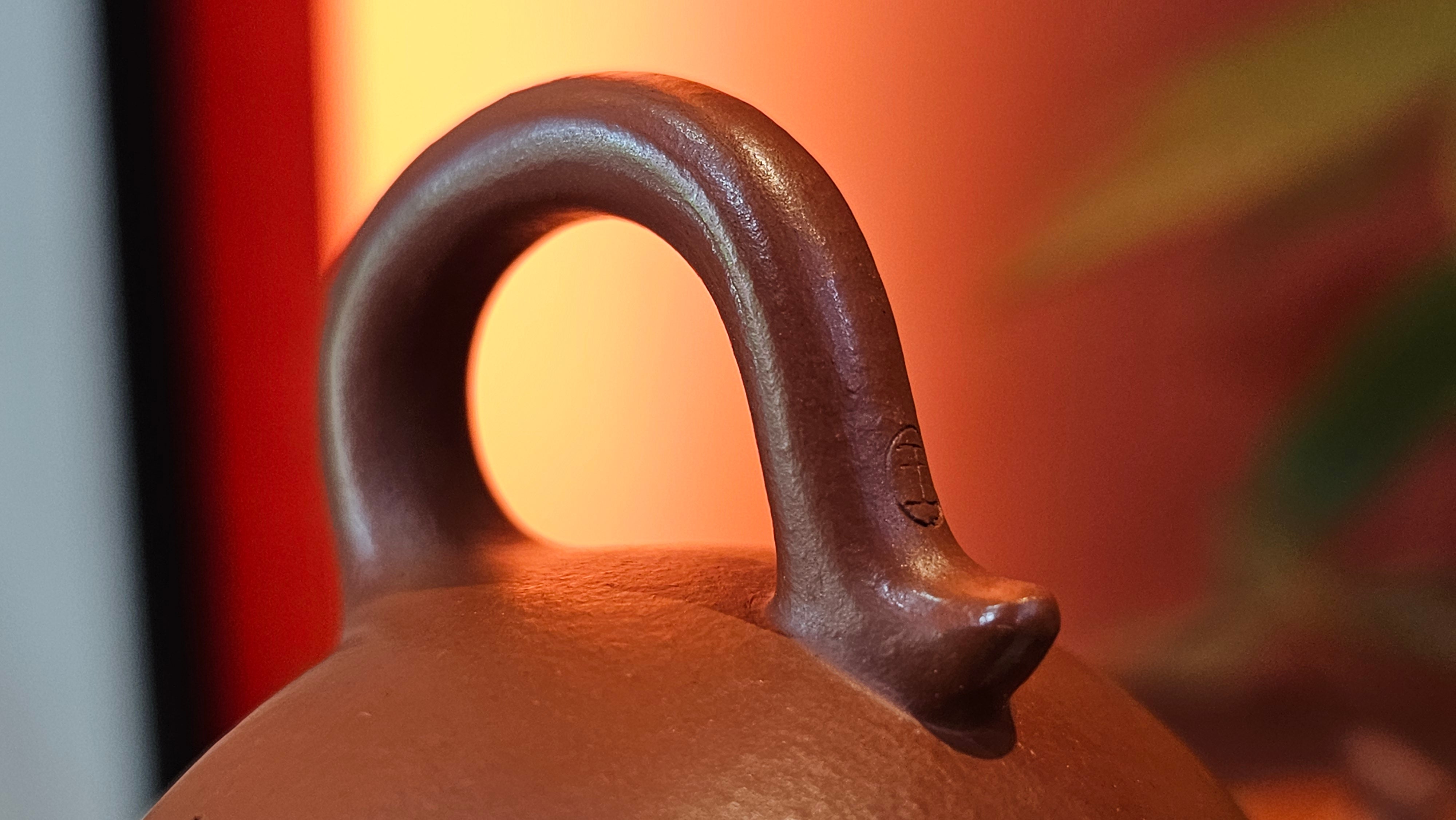 Very adorable model specially chosen by Craftsman Wang Hui! AMAZING powerful jet pour and quick emptying. Delightfully minimalistic ornate, resembling the Qie Gua fruit we consume in China, and she painstakingly worked in the exquisite lid knob! Seemingly simple, but upon closer inspection, the work of Craftsman Wang Hui is perceivable: