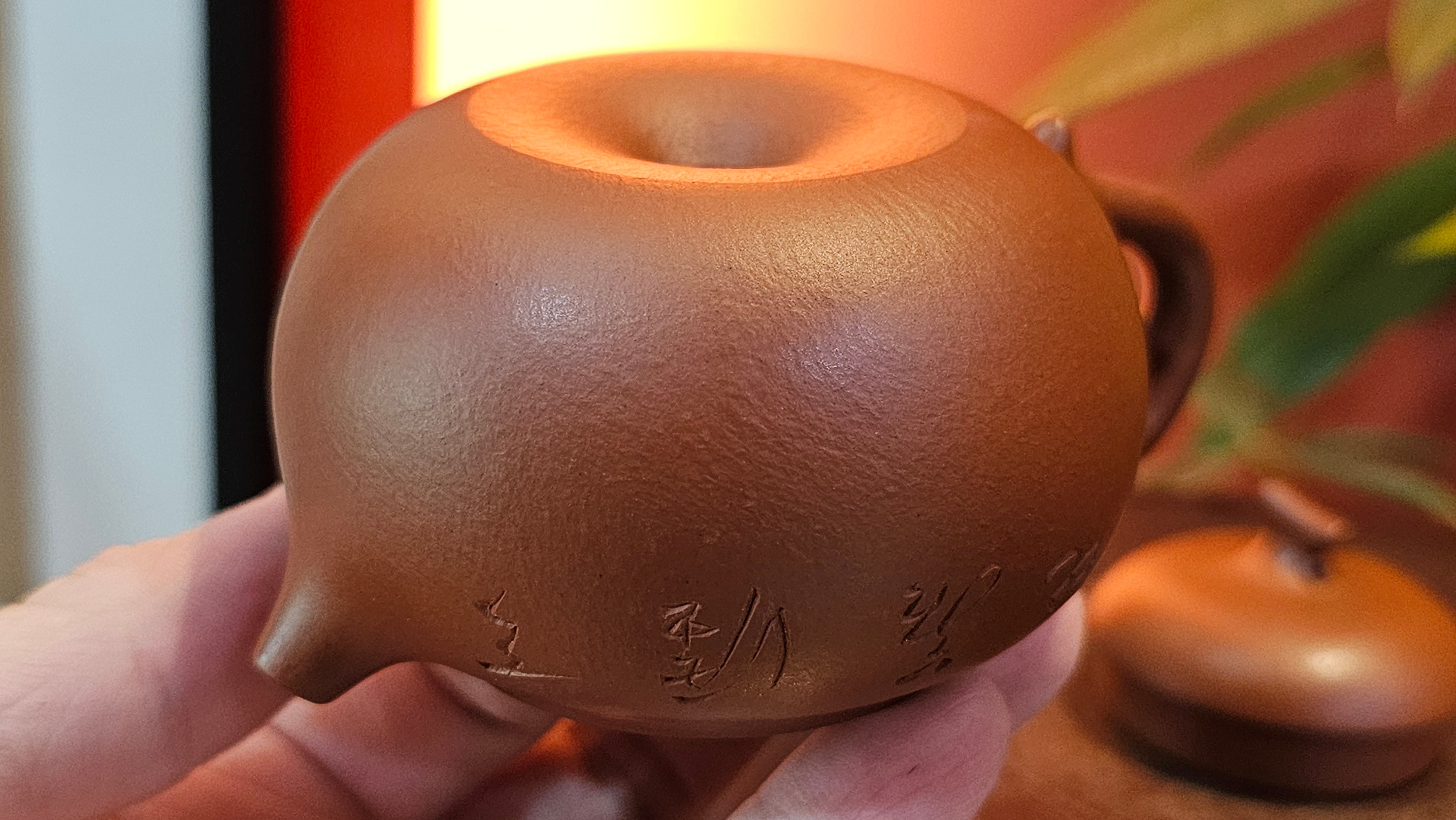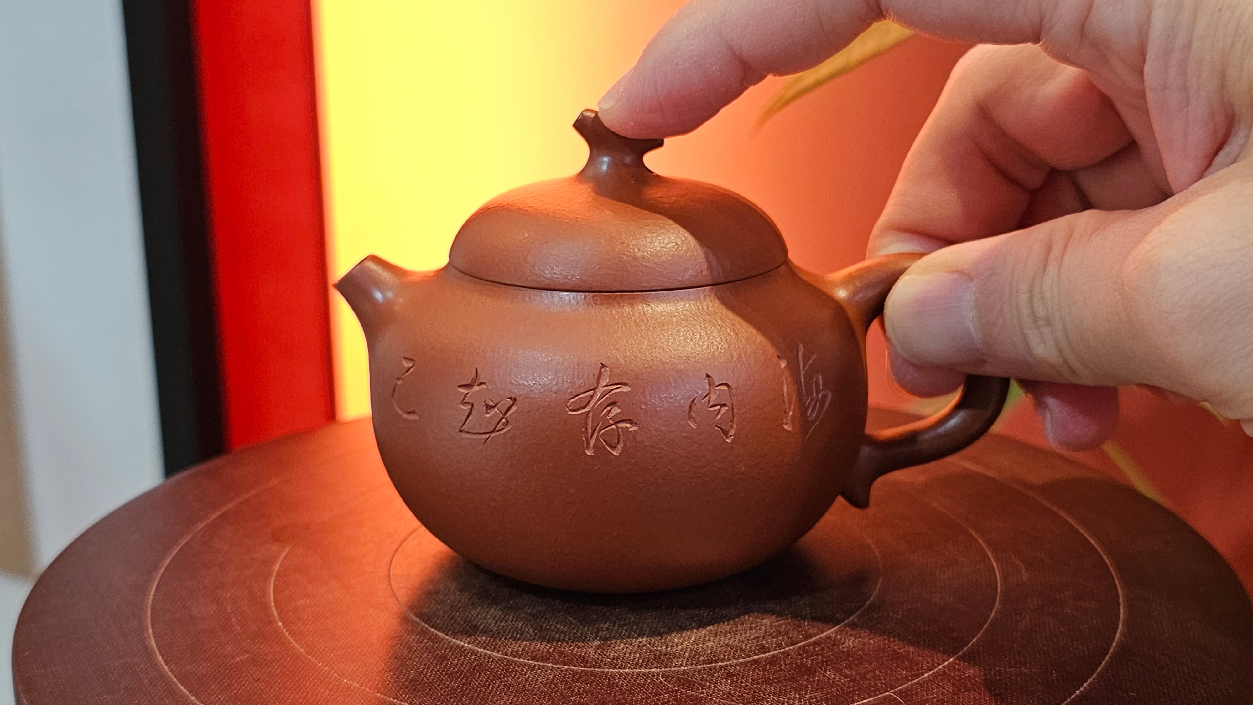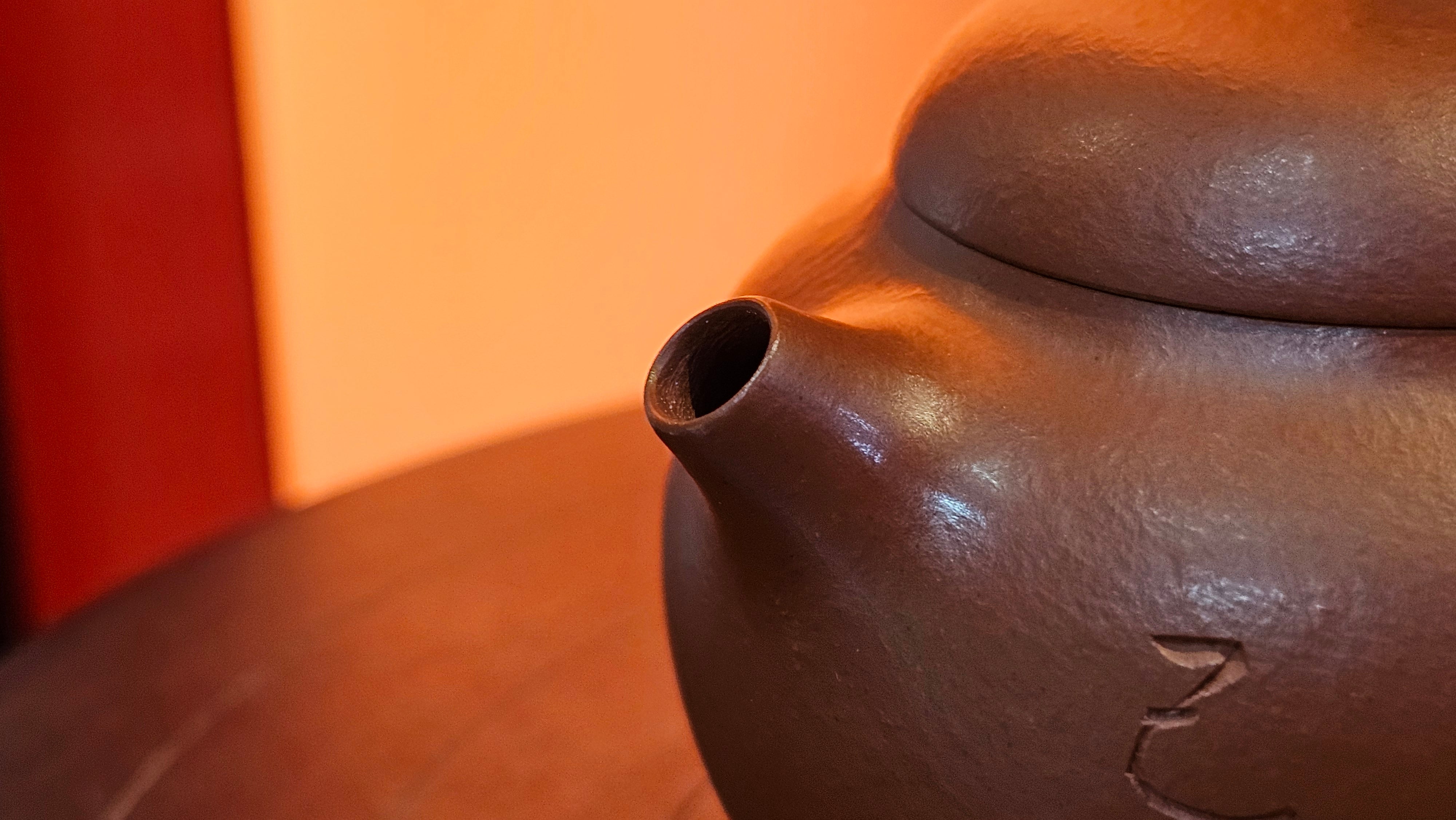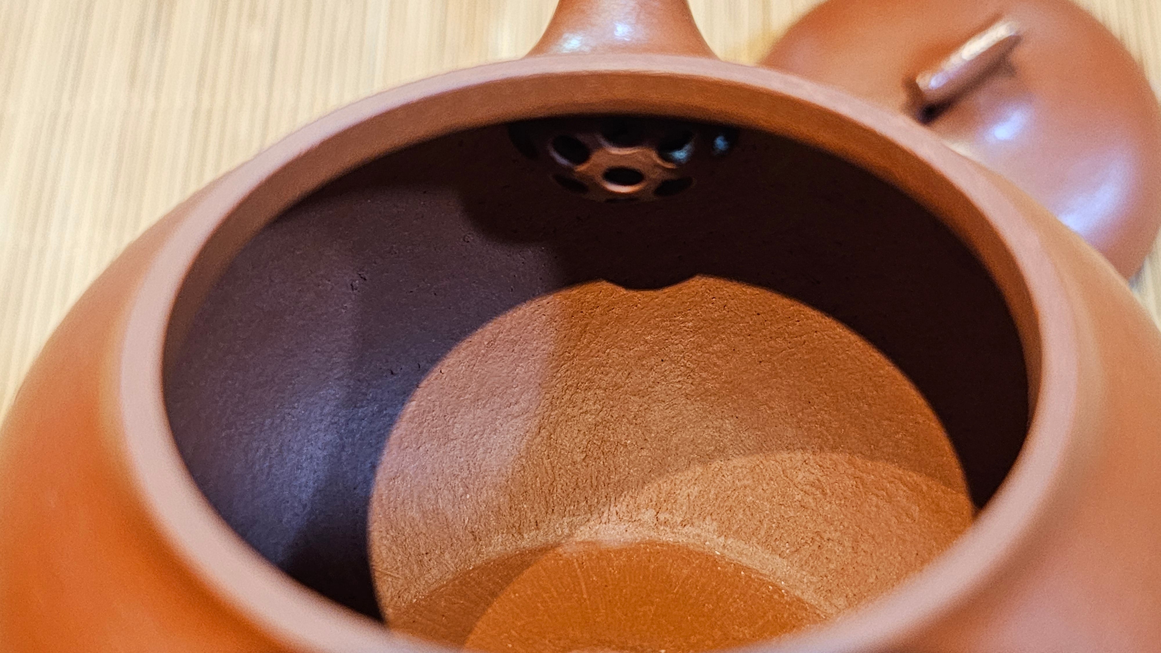 Very adorable model specially chosen by Craftsman Wang Hui! AMAZING powerful jet pour and quick emptying. Delightfully minimalistic ornate, resembling the Qie Gua fruit we consume in China, and she painstakingly worked in the exquisite lid knob! Seemingly simple, but upon closer inspection, the work of Craftsman Wang Hui is perceivable:
