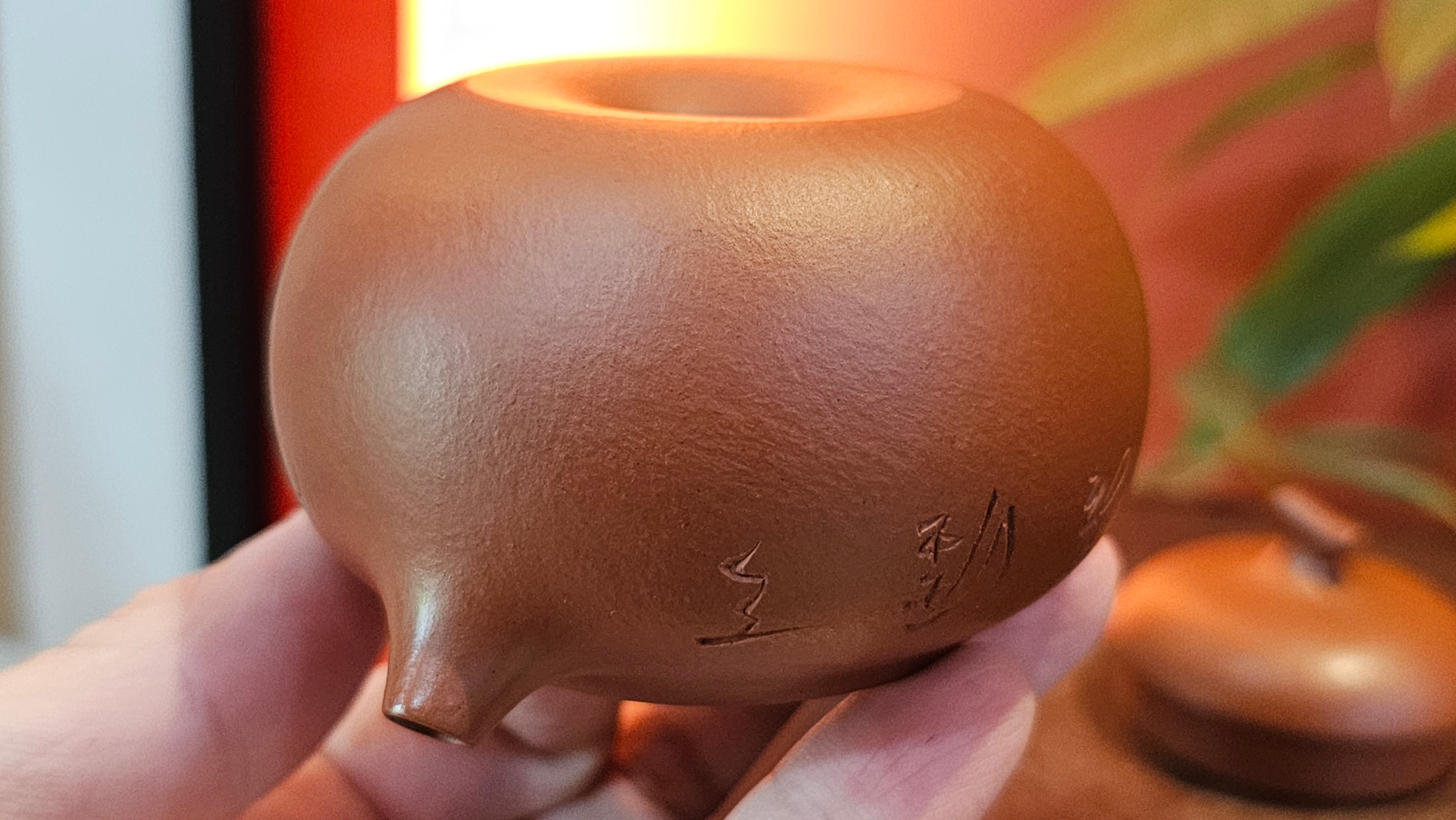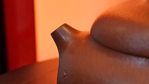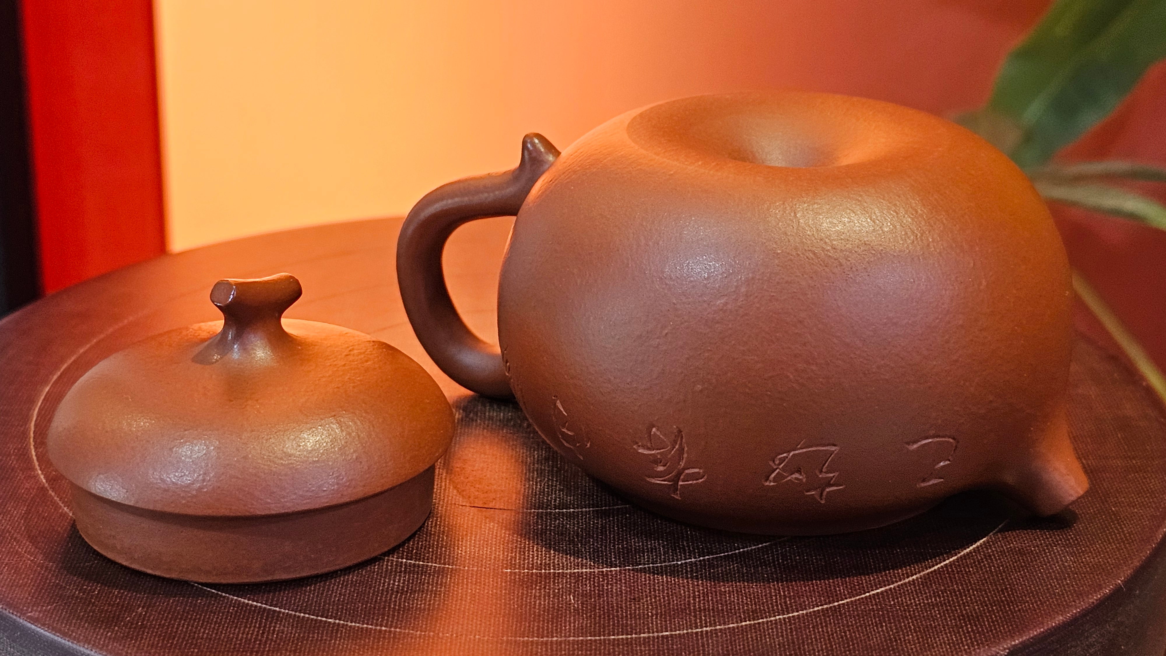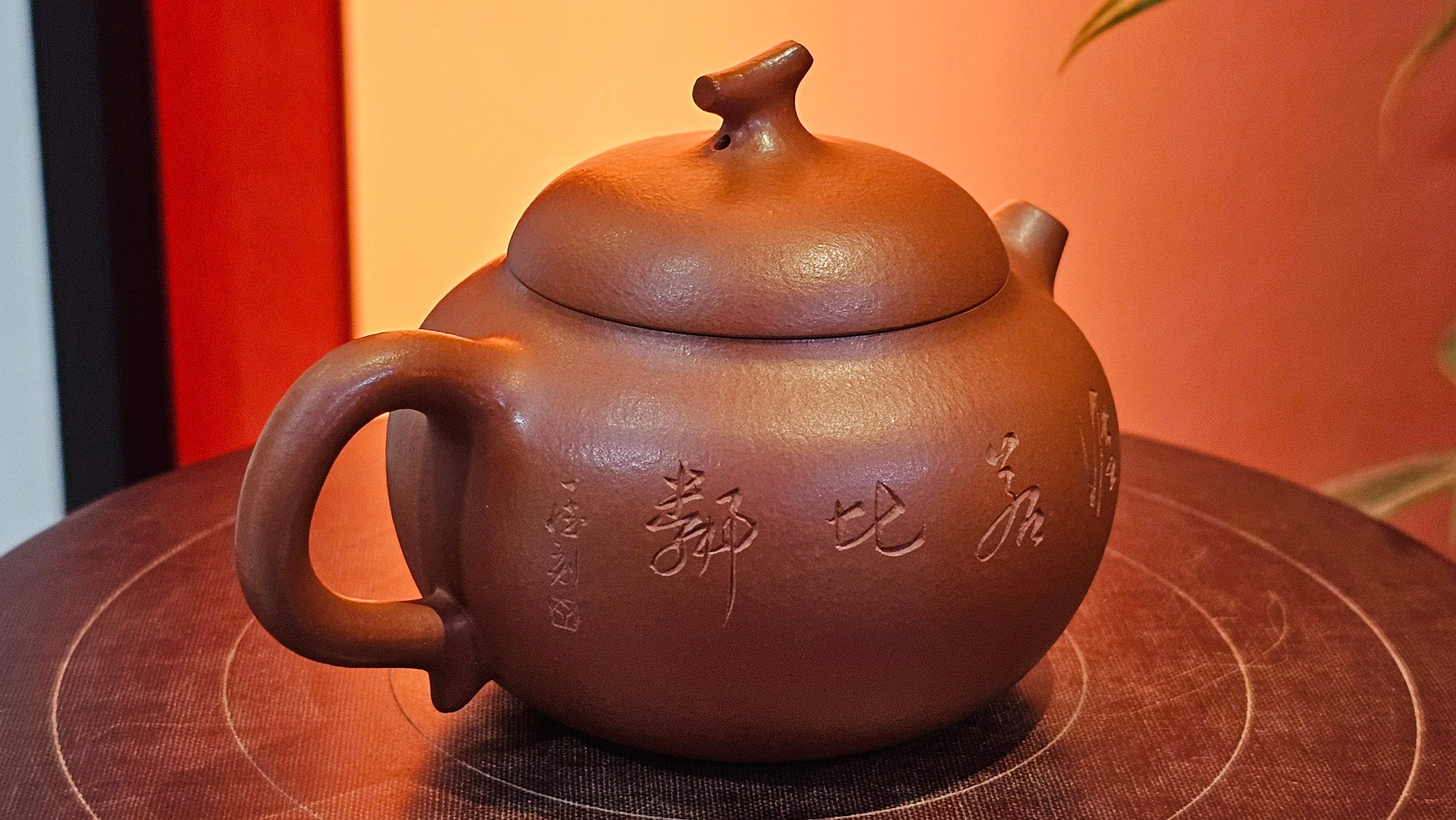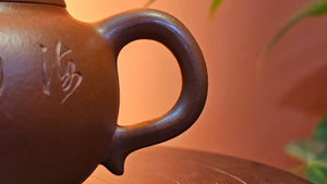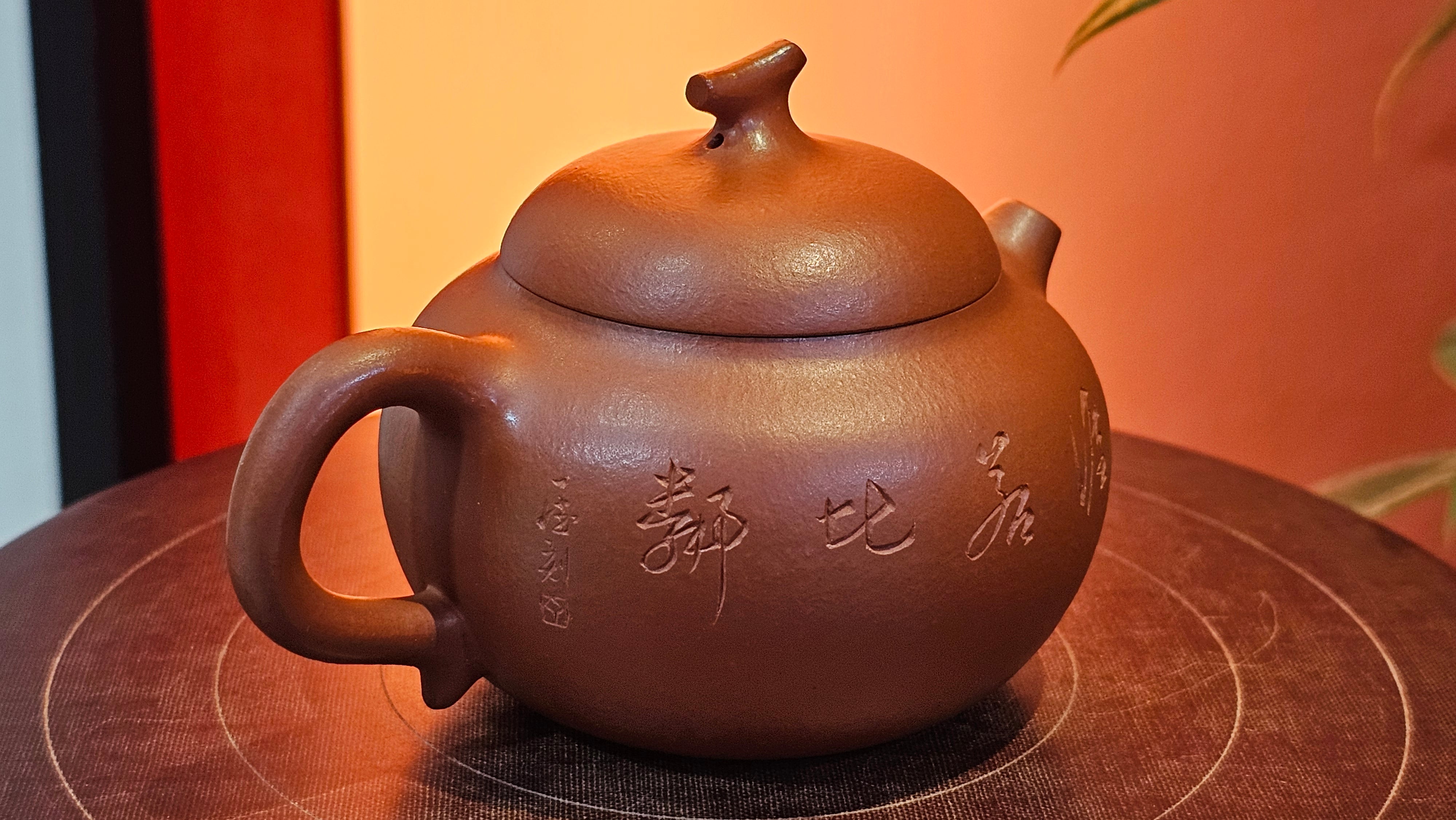 Very adorable model specially chosen by Craftsman Wang Hui! AMAZING powerful jet pour and quick emptying. Delightfully minimalistic ornate, resembling the Qie Gua fruit we consume in China, and she painstakingly worked in the exquisite lid knob! Seemingly simple, but upon closer inspection, the work of Craftsman Wang Hui is perceivable: