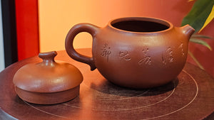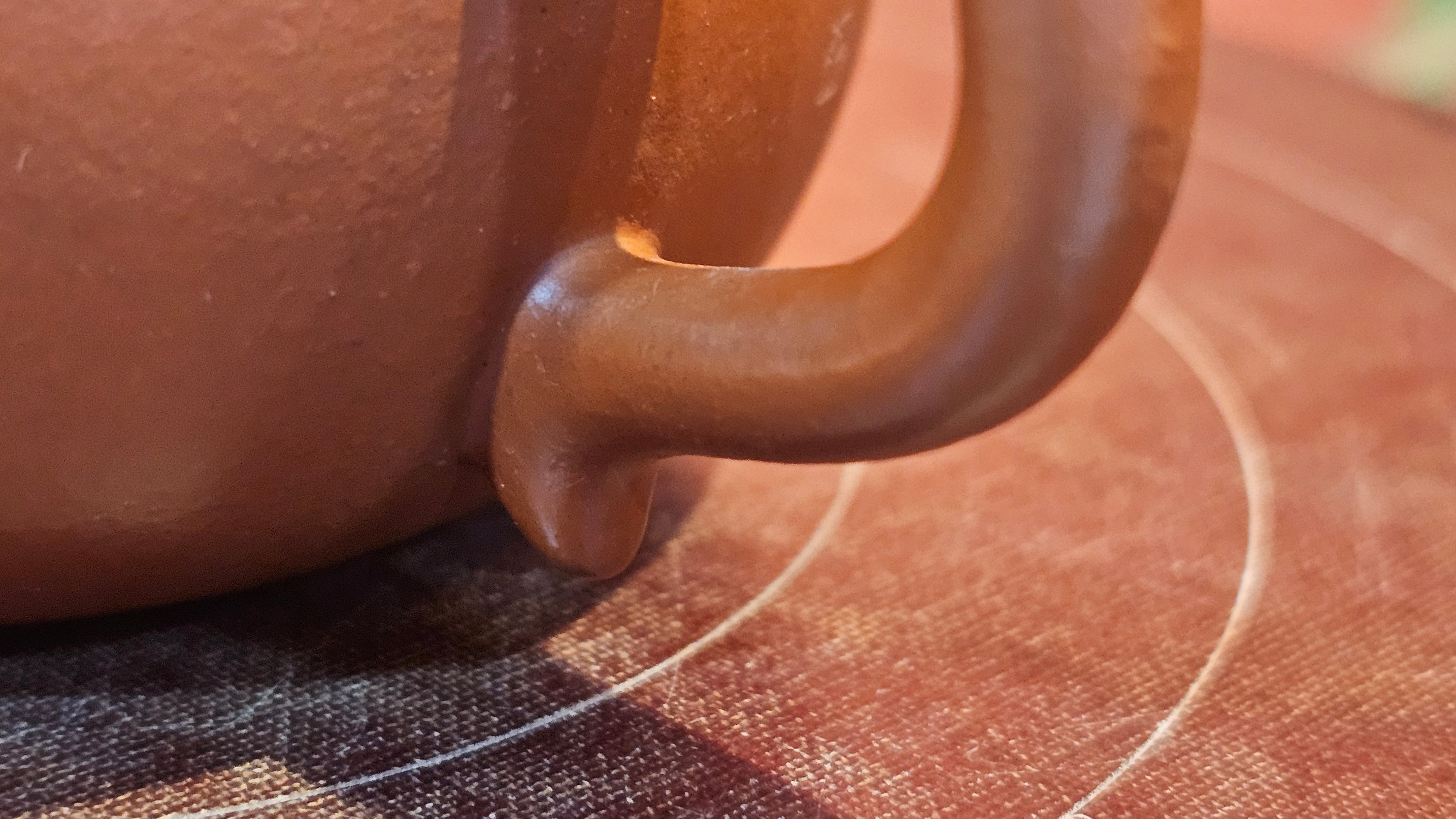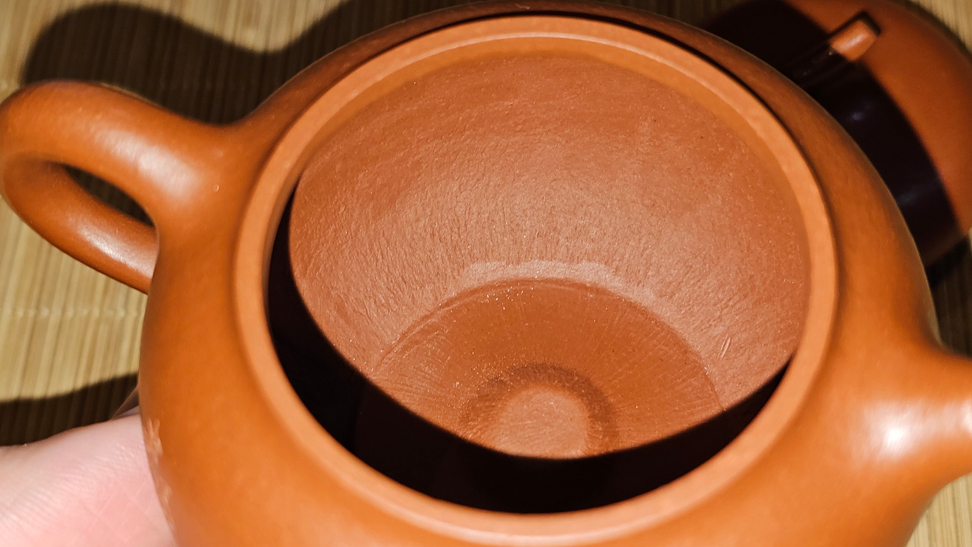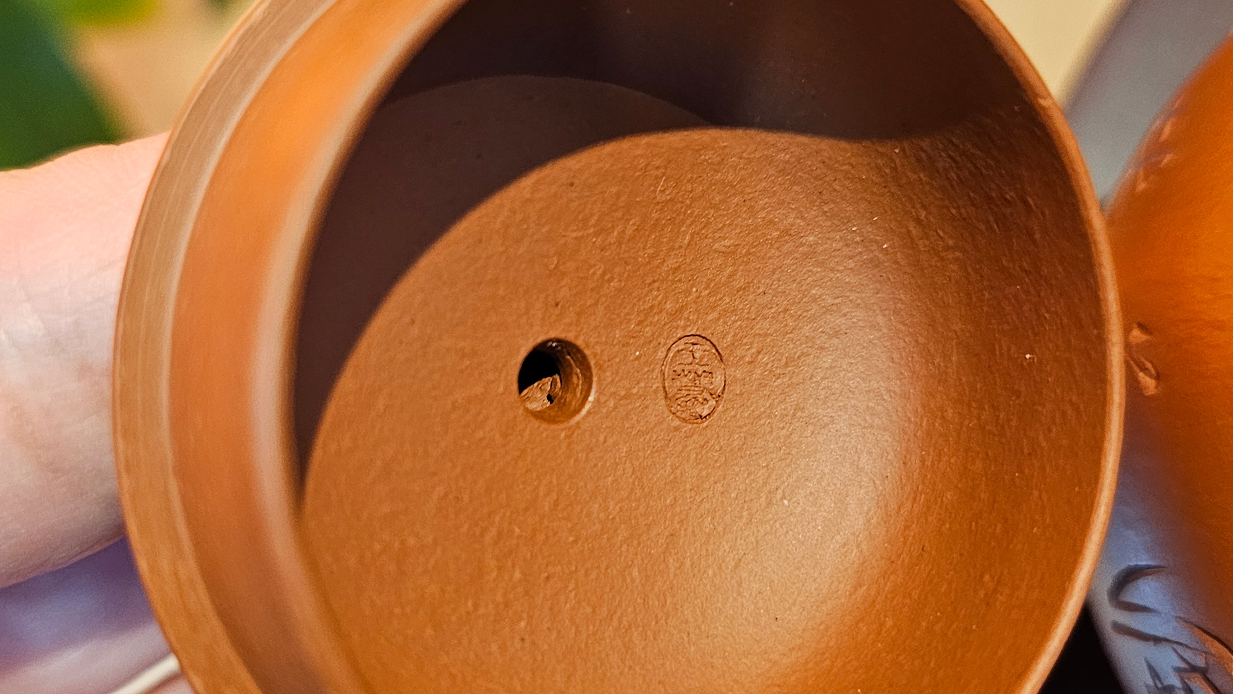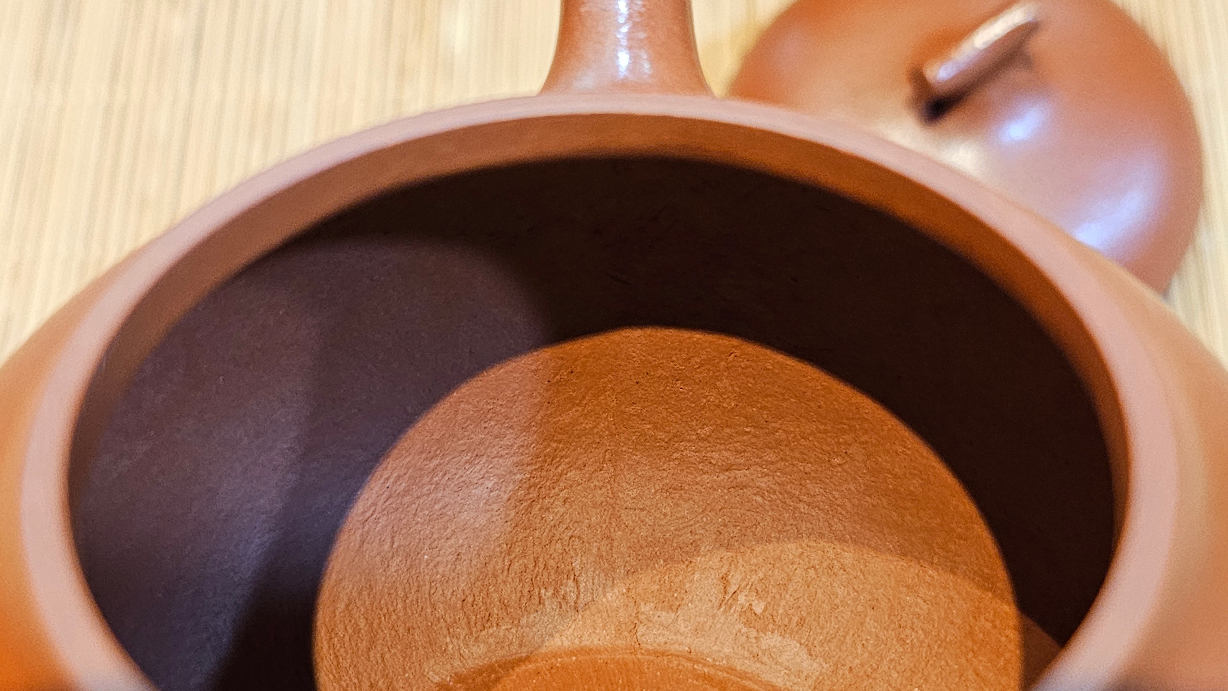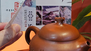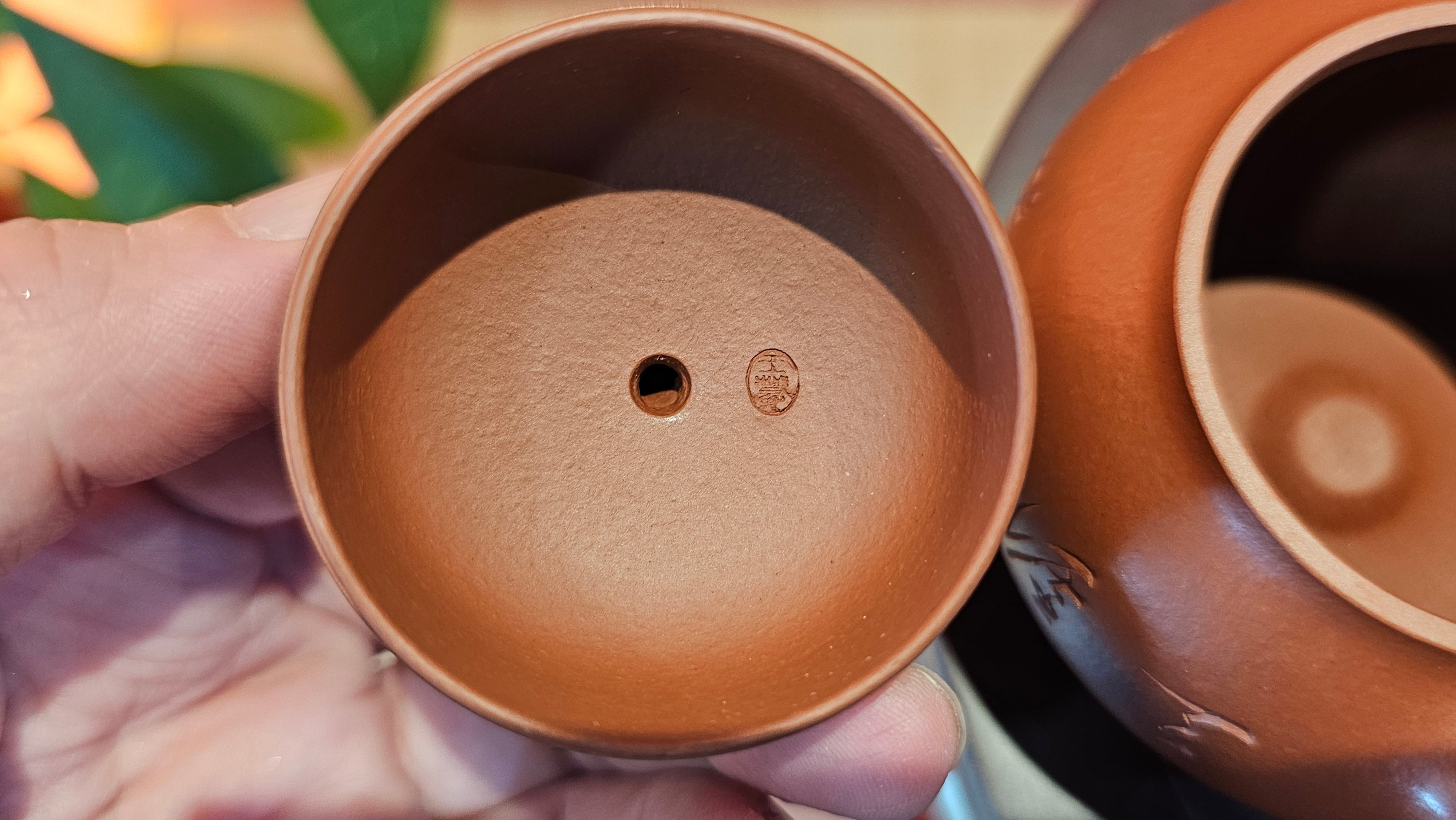 Note on our TRUE Fully-Handmade Zhu Ni pots from RealZiSha: NOT those thick-/irregular-thickness-walled ones which are actually fake "Fully-handmade ZhuNi pots" utilising the cheating new technology: "车一刀 Che Yi Dao": Such ZhuNi pots utilizing Che Yi Dao process, have been sprouting up in the market since early 2022. Che Yi Dao involves a swivelling-rotational cutter that goes around a roughly-finished ZhuNi pot to cut the outer surface into a perfect shape. This cutter obliviates the need of accomplished skill of a true Fully-Handmaking Craftsman. Obviously, Che Yi Dao also absolves the need of a skilled FHM Craftsman to 1)pound the slab into a careful thin-slab, 2)paddle-pat the slab into a uniform shape purely manually.