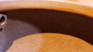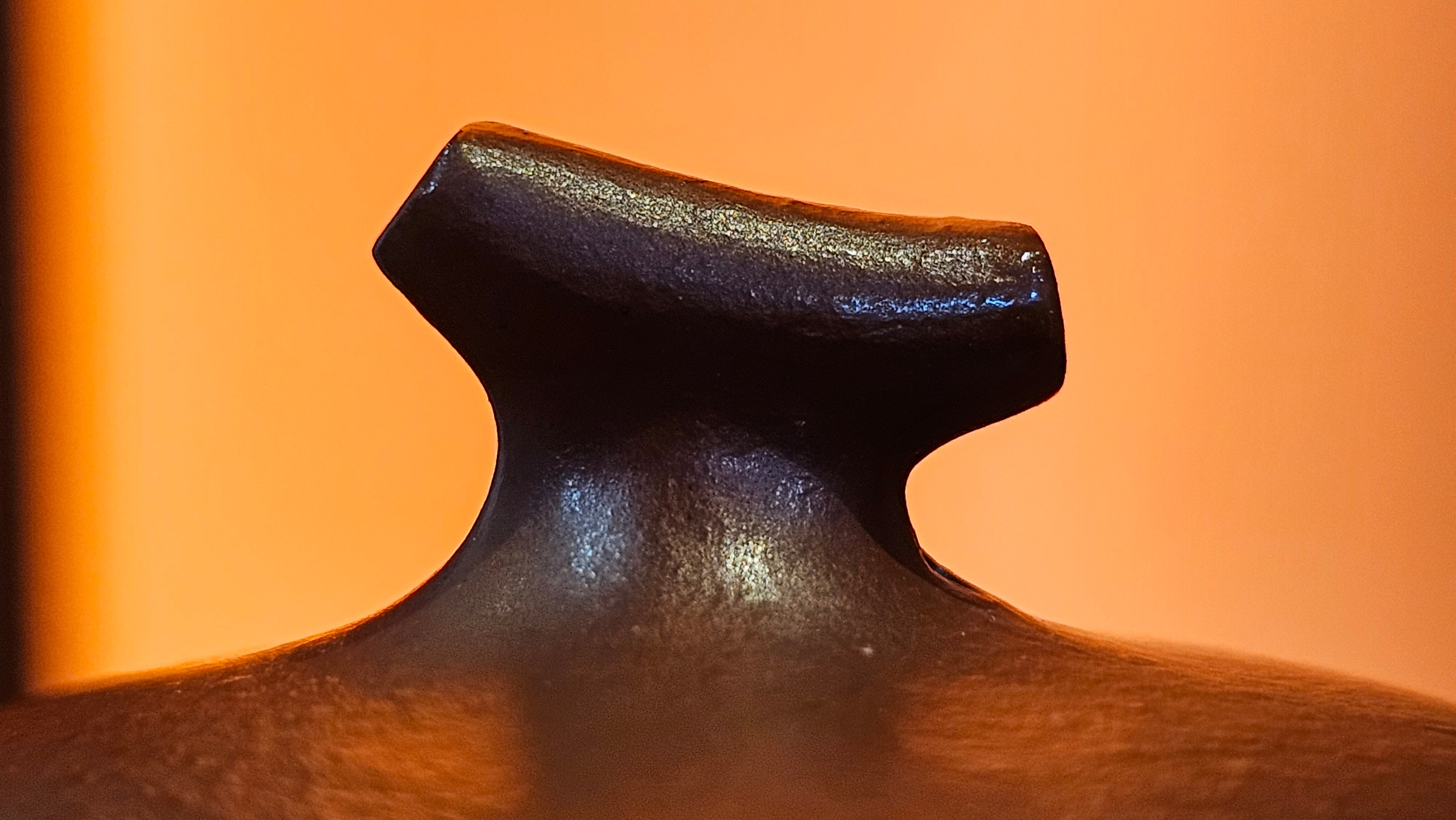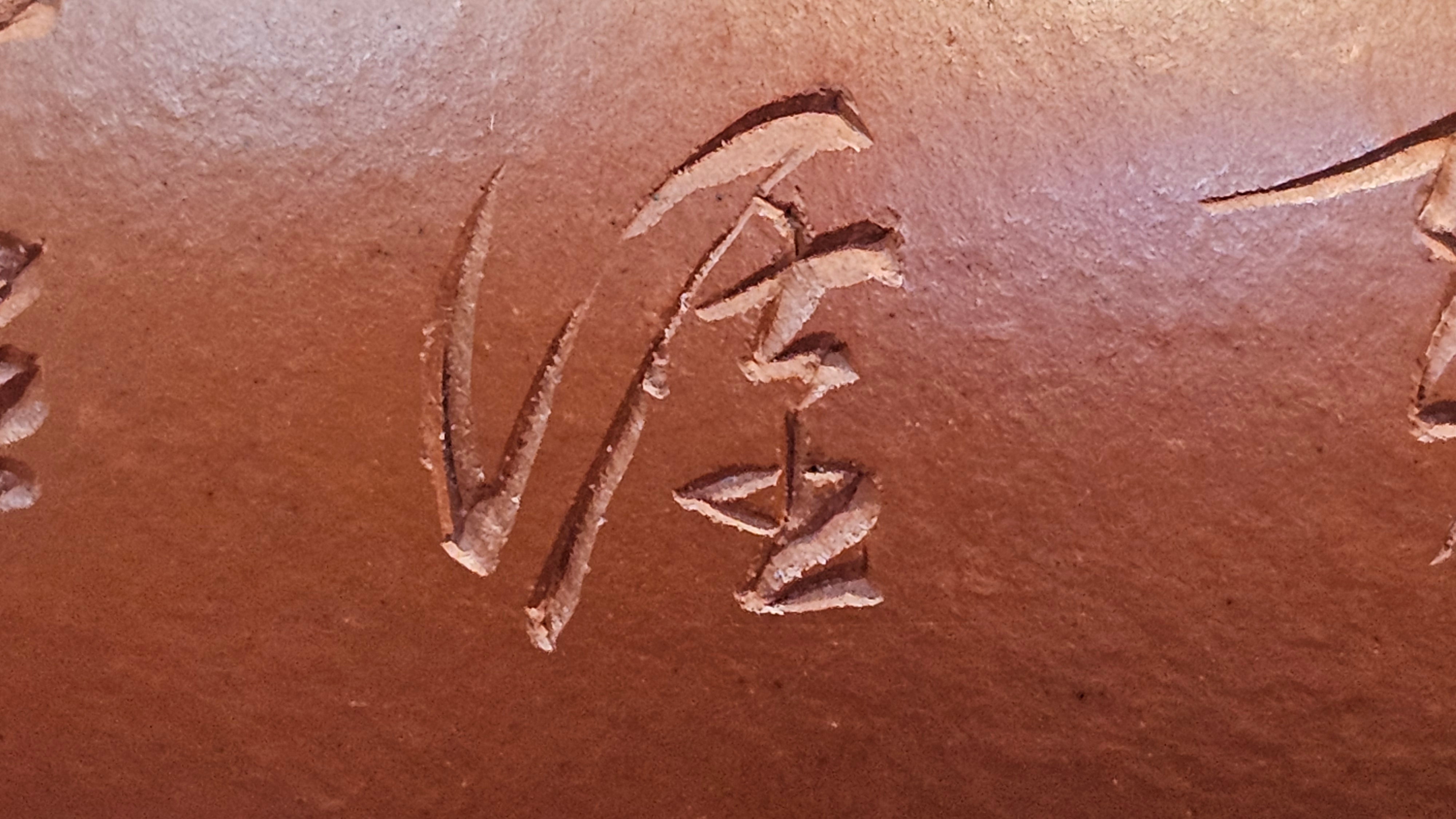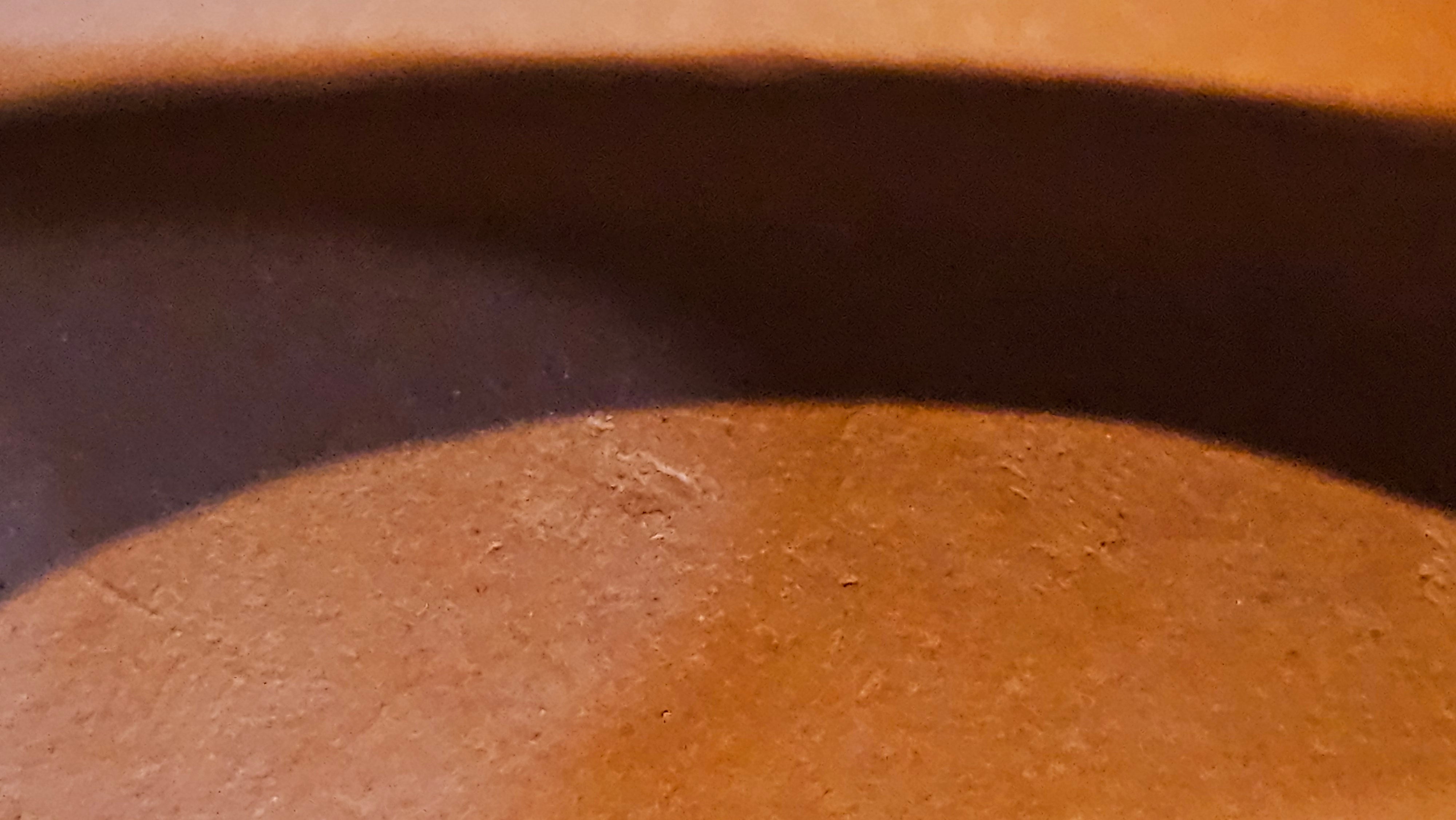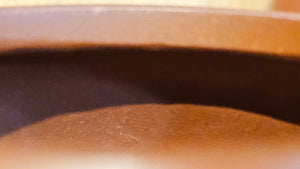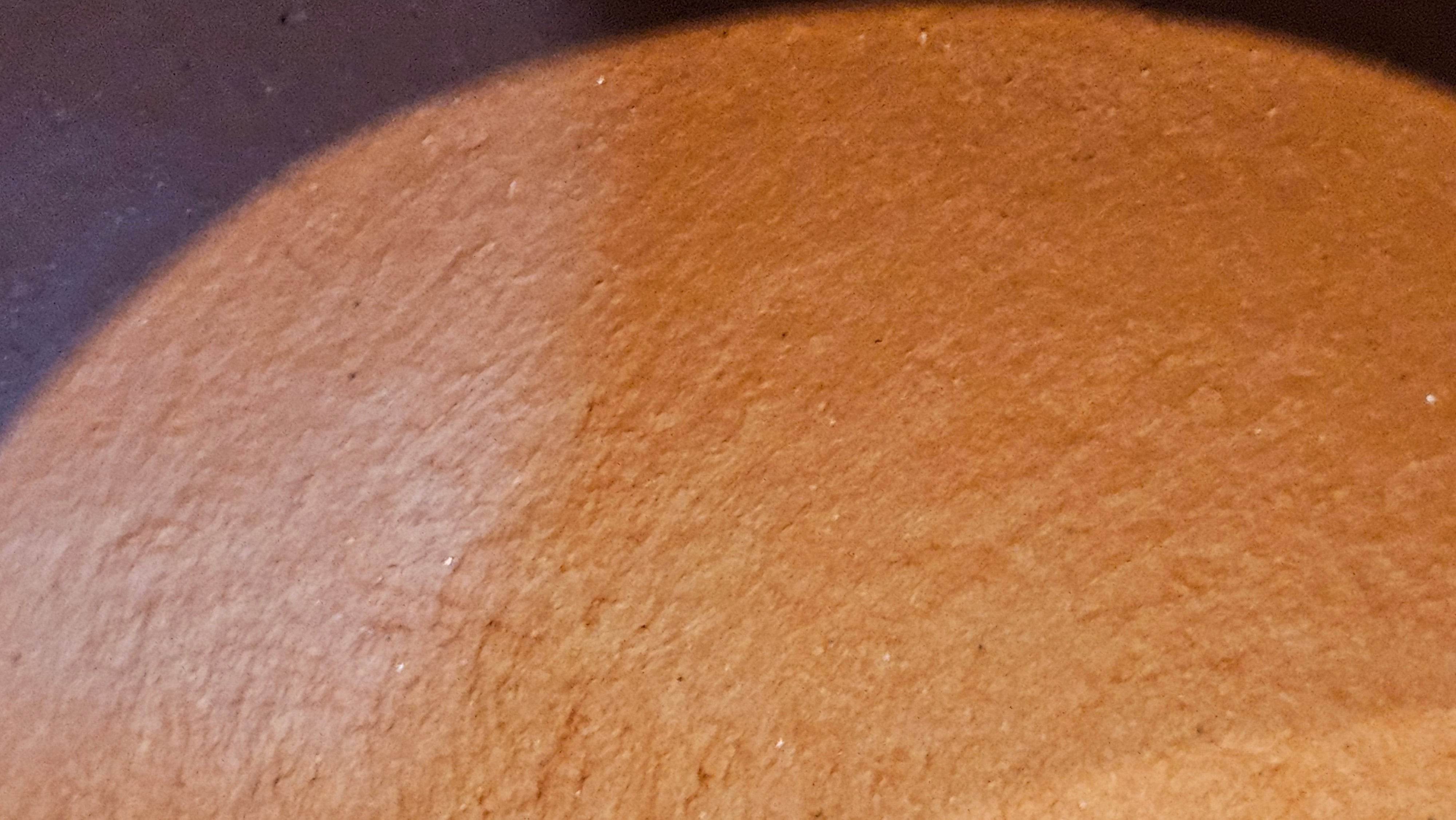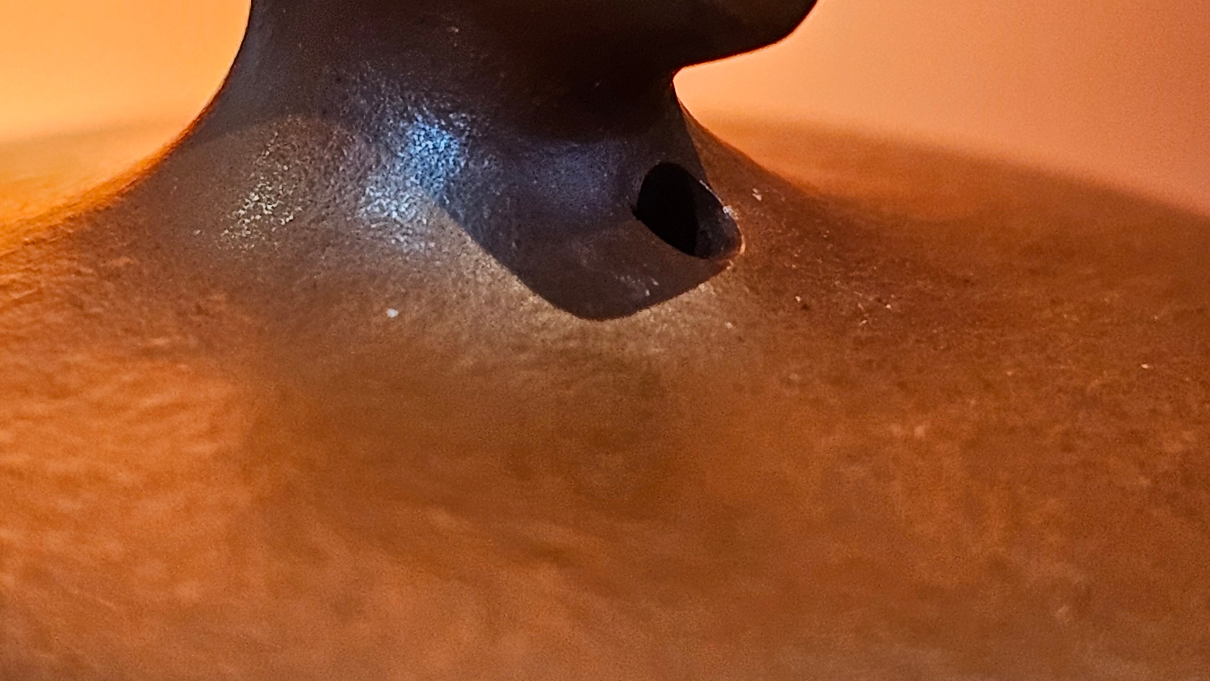 In the photos of the inner walls: you may see the faint finger pulp imprints on the upper aspect of the inner walls 360degrees all round. These are the imprints of the fingers of the Craftsman :-), as he/she places the finger(s) within as the he/she pats the paddle from the outside during the shaping of the main holding body.
