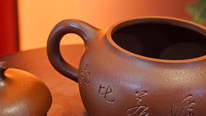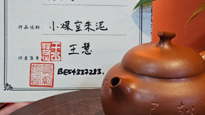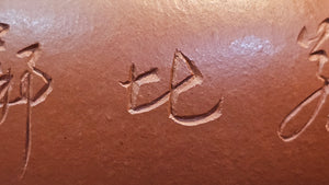 This is Xiao Mei Yao Zhu Ni, as we all know, with the highest shrinkage together with Zhao Zhuang Zhu Ni compared to all other ZiSha types. Failure rates are high. Unpredictability of the clay edges and joints, due to this high shrinkage is scary to say the least. With this minimalistic and detailed XiaoMeiYao ZhuNi work, Wang Hui is able to craft at most NINE pieces per month, of which ONLY SIX would be successful. She appreciates all the kindness for her hard work.