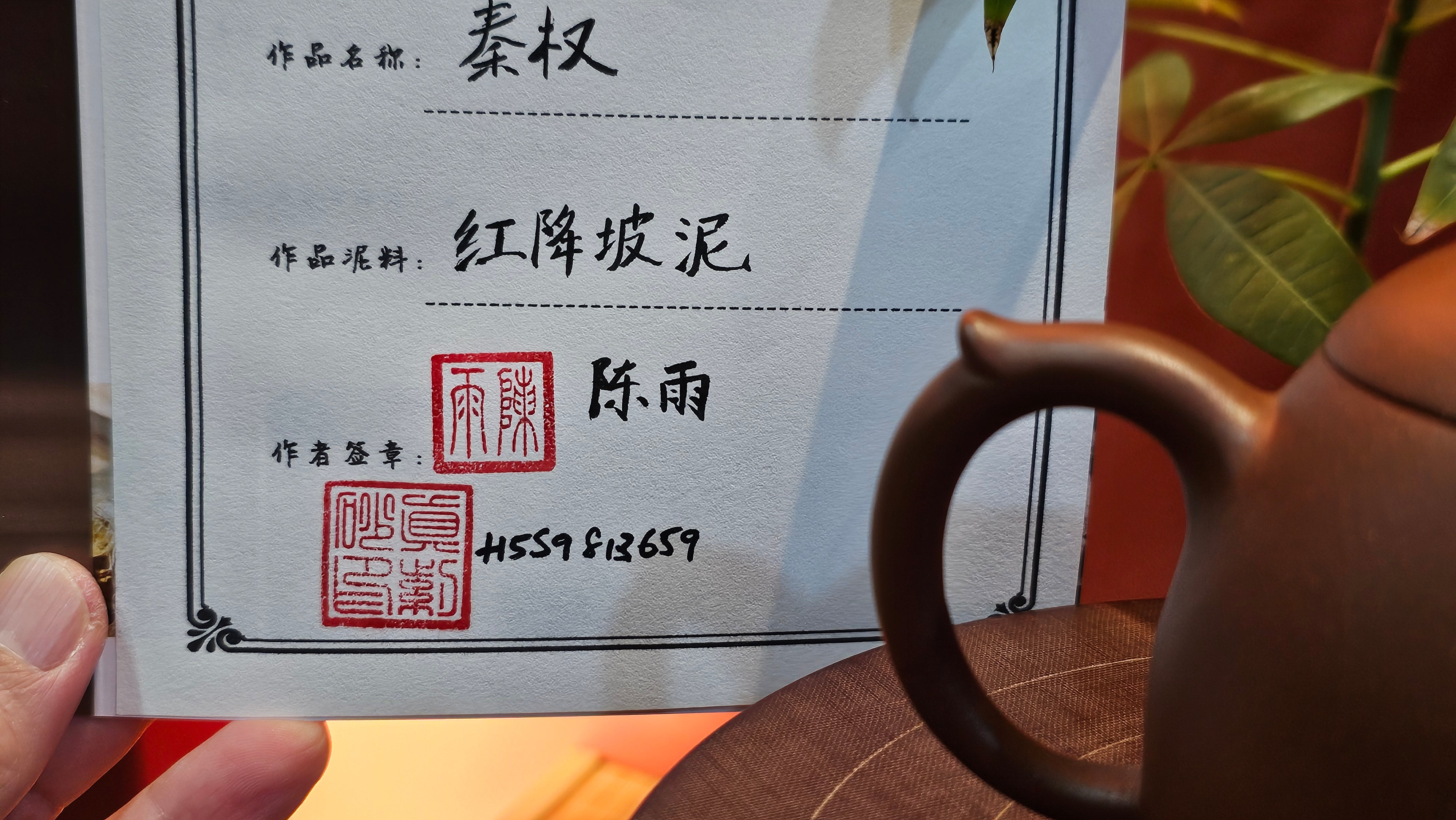 Qin Quan 秦权, 185.0ml, Hong Jiang Po Ni 红降坡泥, by our Collaborative Craftsman Chen Yu 陈雨。