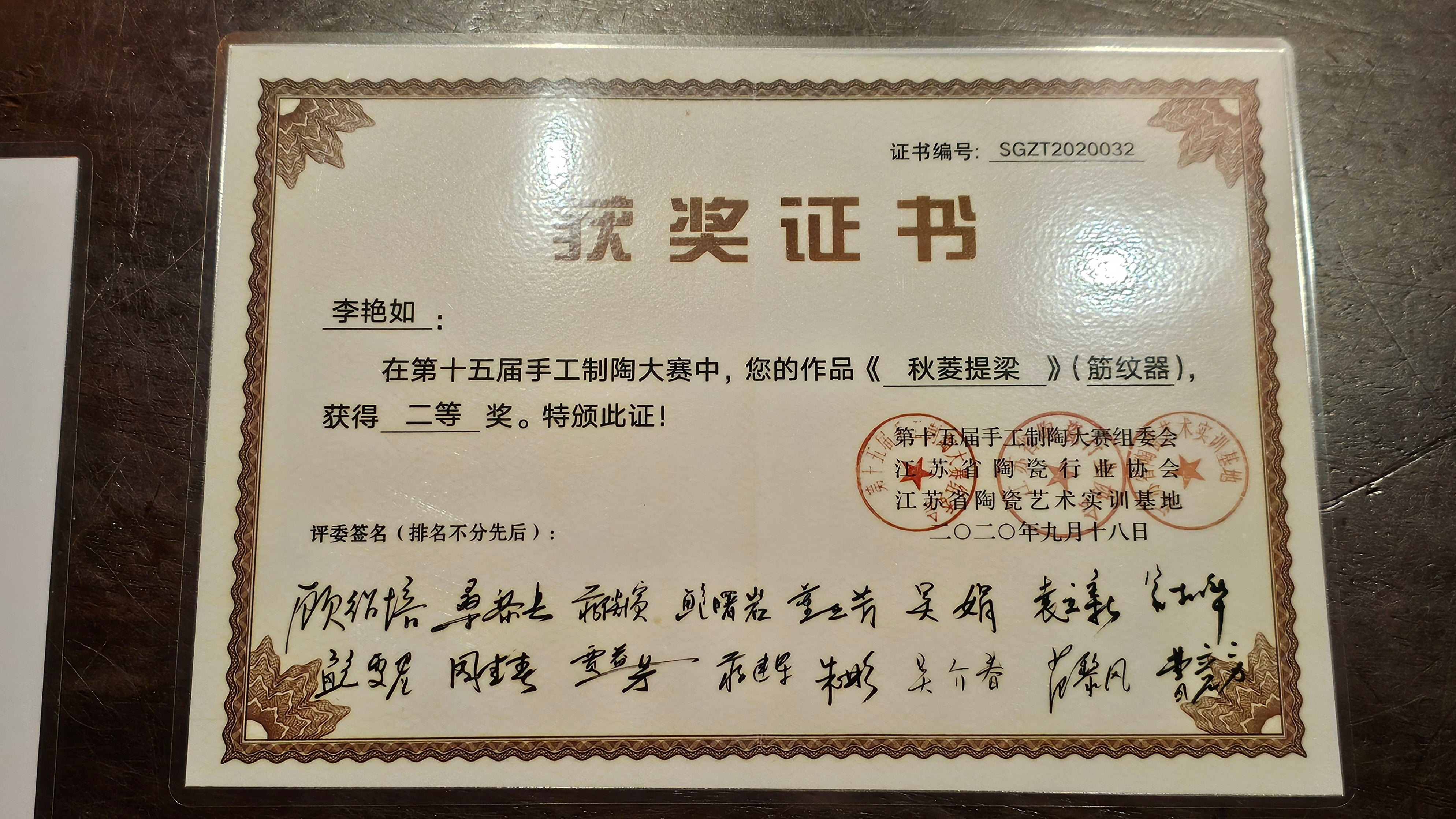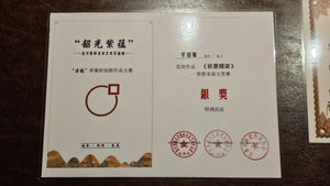 "Qiu Ling Ti Liang" ALSO WENT ON TO WIN the Silver Medal at the prestigious Fang Yuan Bei Zi Sha Design & Creation Grand Competition ~ 方圆杯紫砂创新作品大赛 in the same year!  A DOUBLE WINNER, two Prestigious ZiSha and Ceramic Art Grand Competitions!