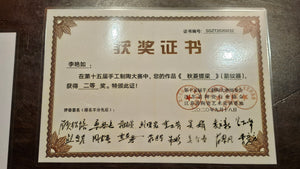 Master Li is strong and very kind at heart and she is willing to, proudly and humbly, engage you her proud patron, to keep this work at only $1690. She also provides for you the laminated copy of the Design Award!!!for your safekeeping, to go along with her signed certificate for you!