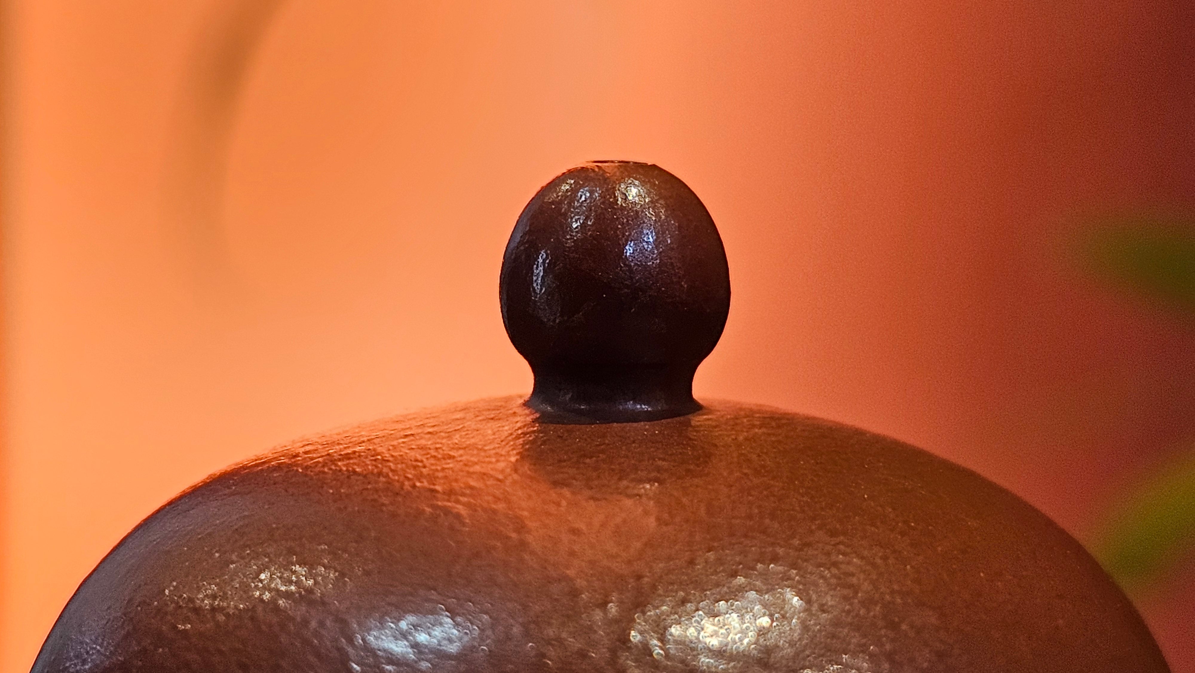 Craftsman Wang Hui had also conscientiously sculpted a 手推内球孔 Hand-Pushed Spherical Filter to increase the number of filter holes for a solid and fast pour of tea out, working with the largish diameter spout; and with better catching of tea leaves at the bottom fast while allowing tea to flow out from the upper holes.