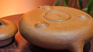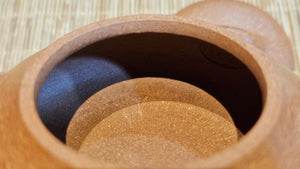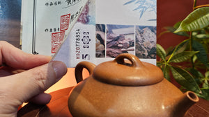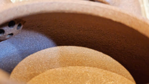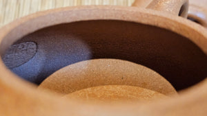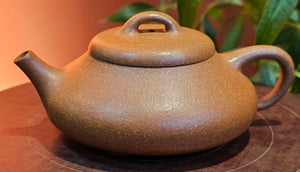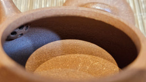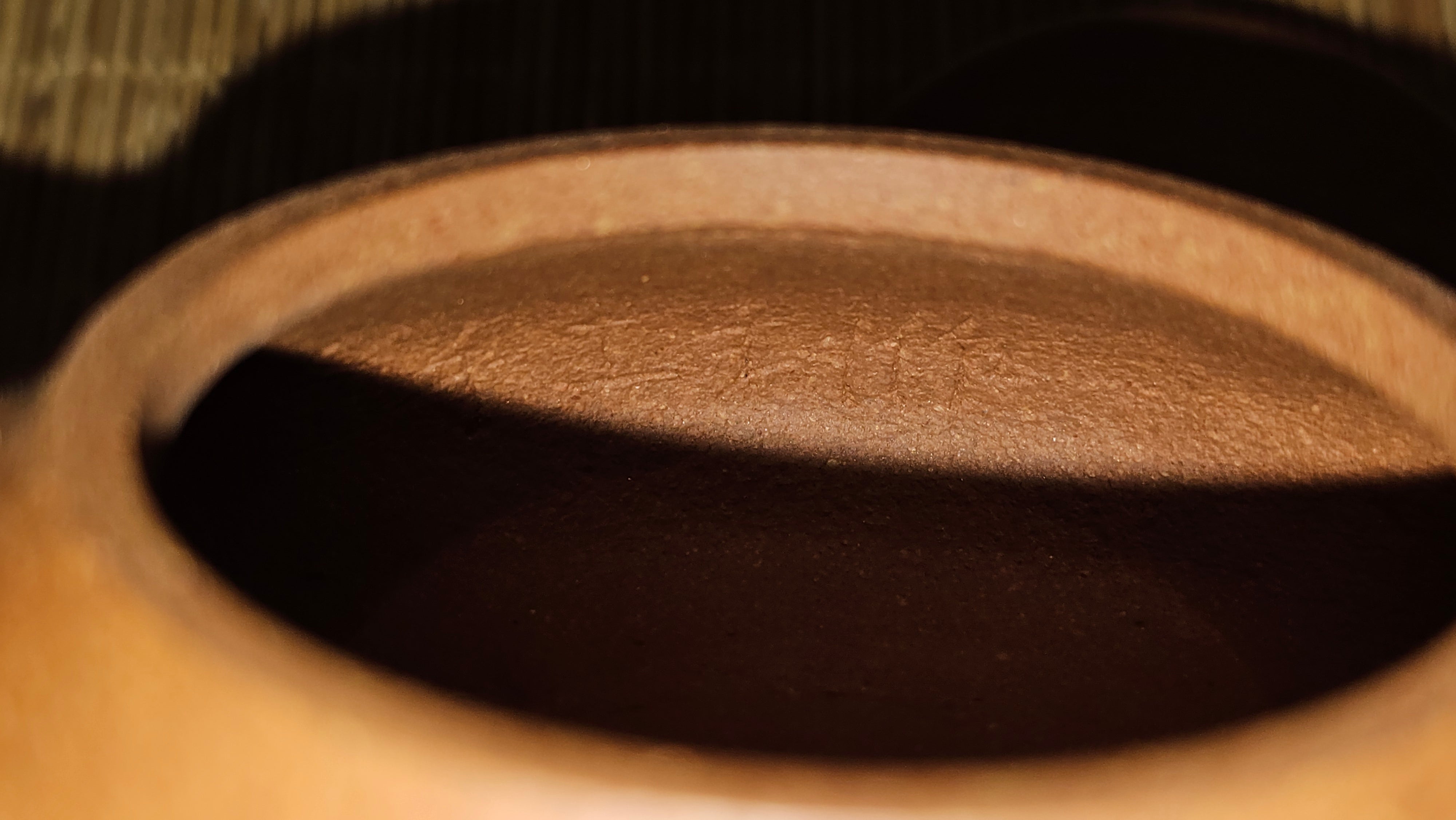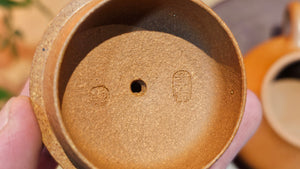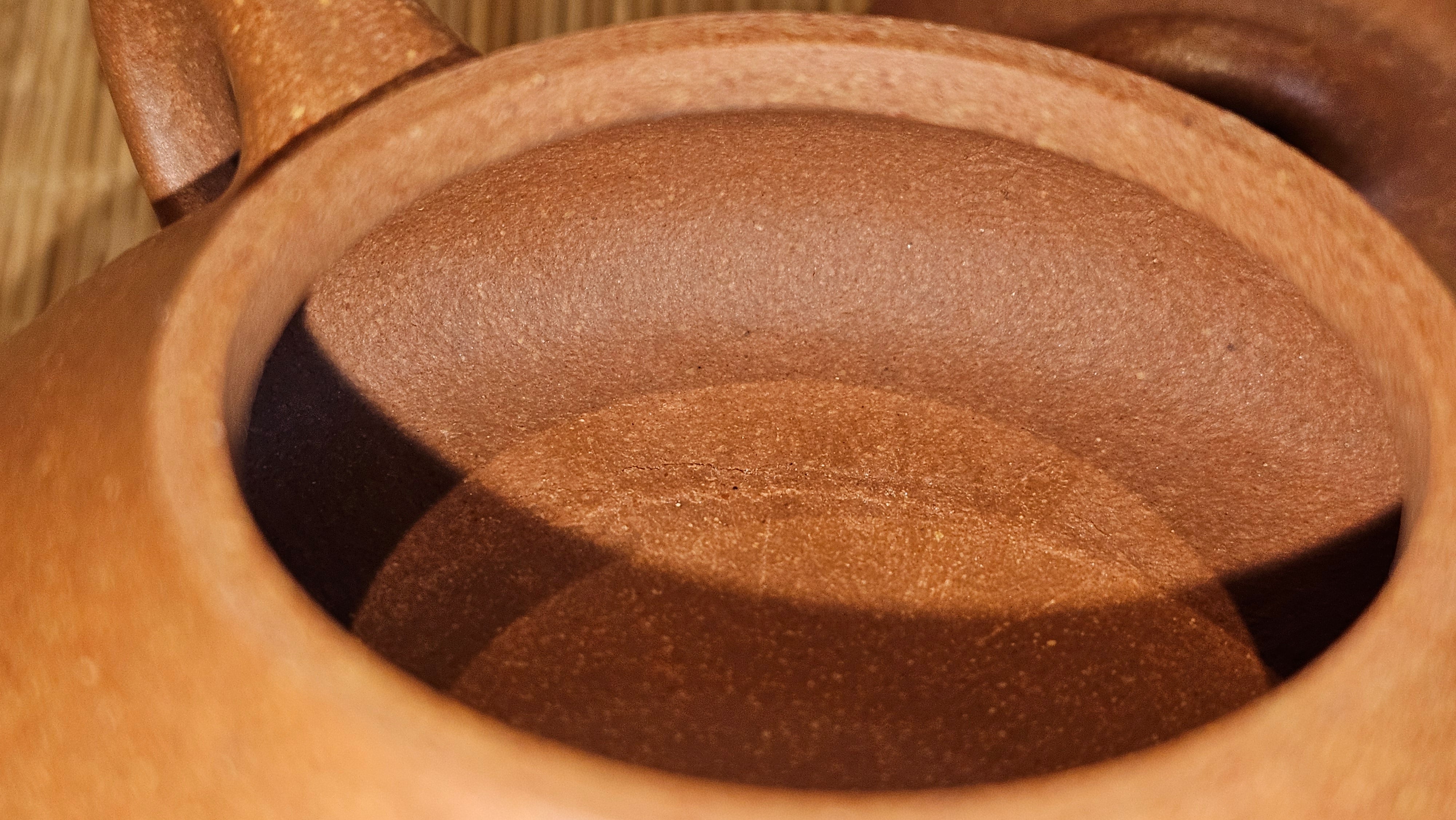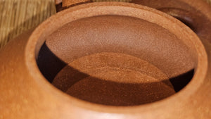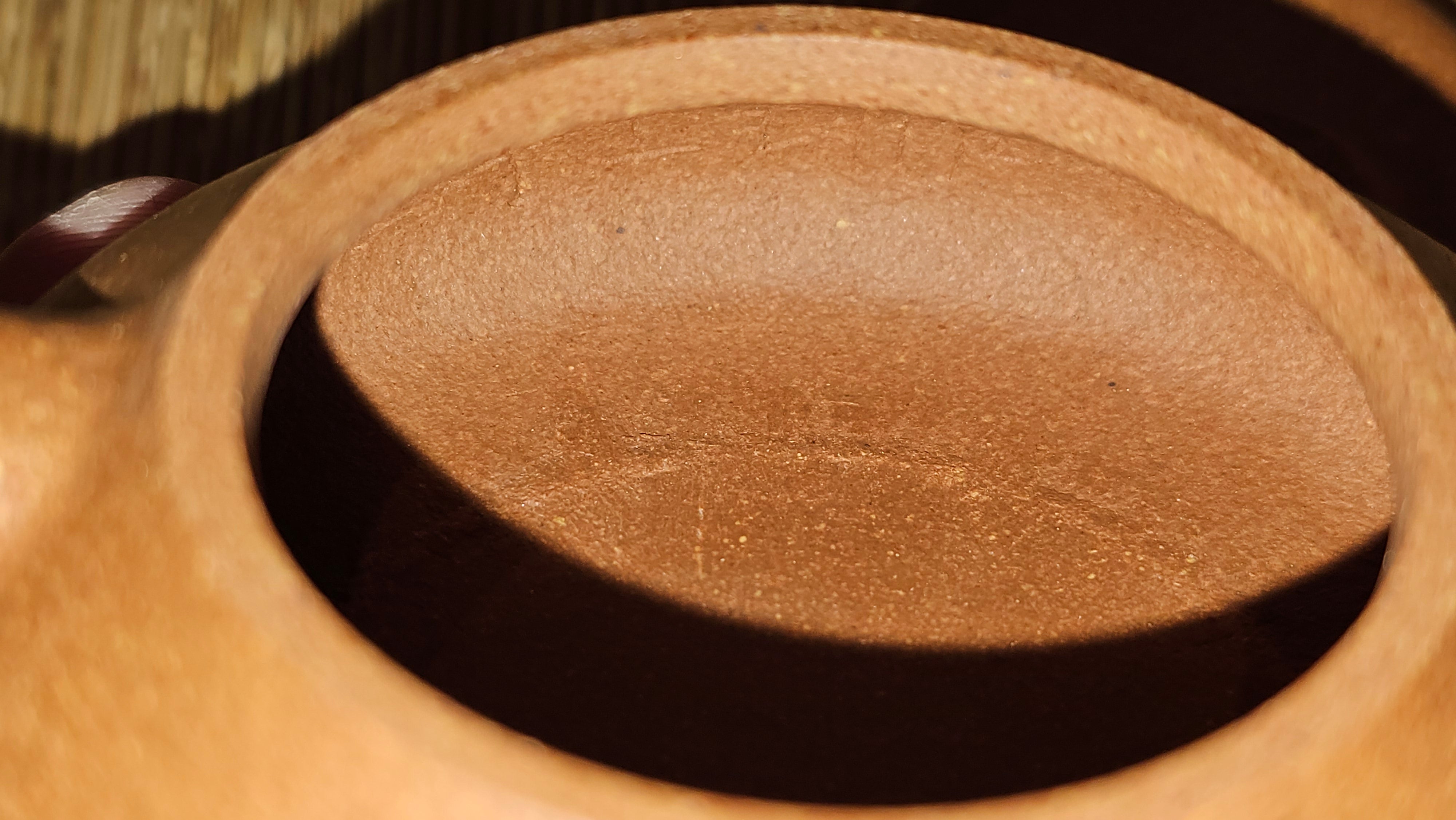 Chen Hua Jun is very familiar with Jiang Po Ni, both Red and Yellow, and here, he brings forth this Long Dan 龙蛋。 Jiang Po Ni is a combination of Hong Ni, Zi Ni and Lü Ni. Both Hong (Red) Jiang Po Ni and Huang (Yellow) Jiang Po Ni are both relatively sandy/grainy, with the characteristic ORANGEY-RED HUE. Both Hong Jiang Po Ni and Huang Jiang Po Ni contain the combination of HongNi, LüNi and ZiNi. Hong Jiang Po Ni has comparatively more HongNi within, while Huang Jiang Po Ni has a higher percentage of ZiNi and LüNi within. JiangPoNi is amazingly porous. Huang Jiang Po Ni is one of the most amazing unadulterated ZiSha clay with amazing Patina formation through use. It is very rewarding to use Huang Jiang Po Ni, both for its amazing Patina formation and its excellent pairings with both Sheng and Shu Pu Er.