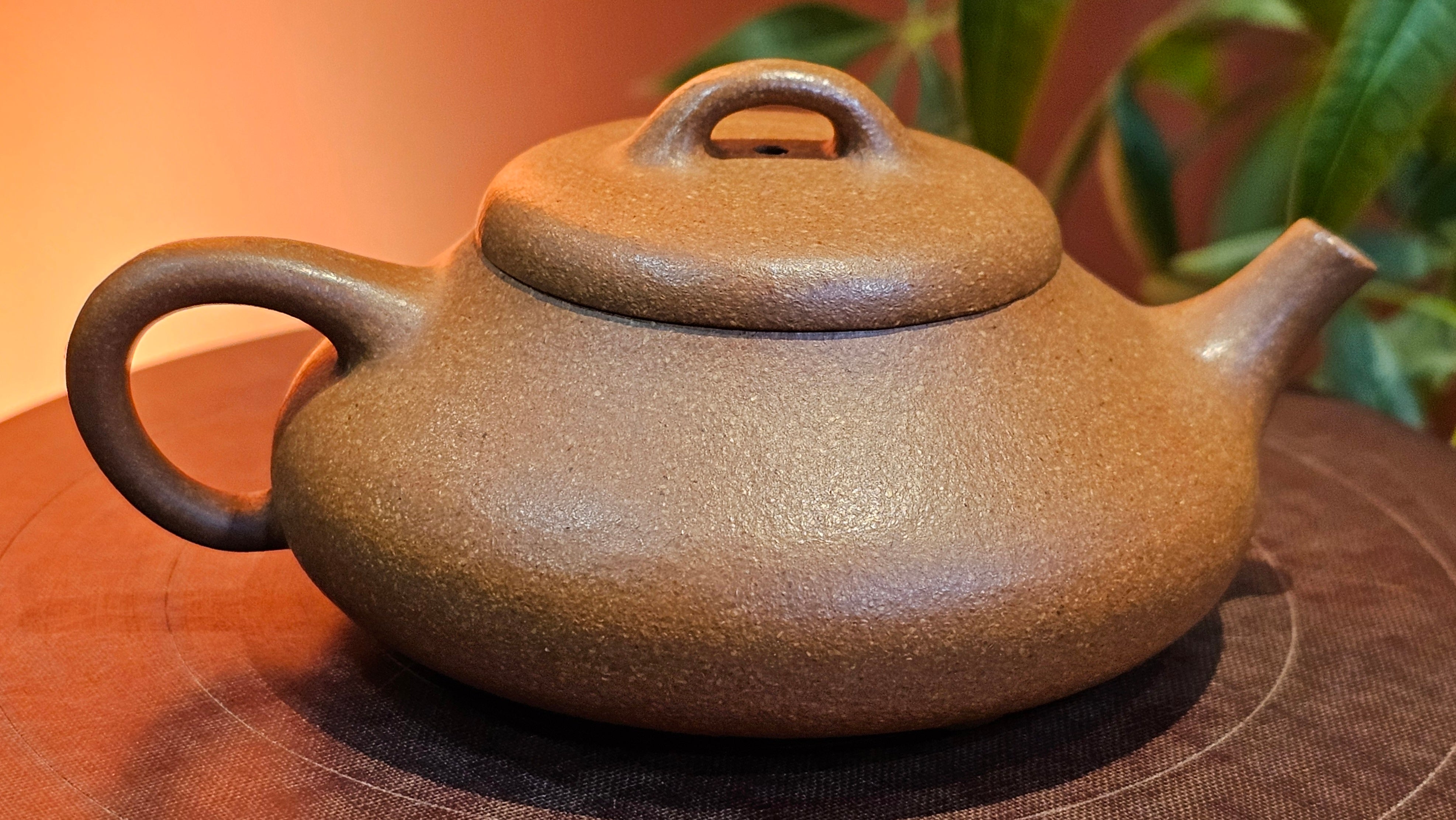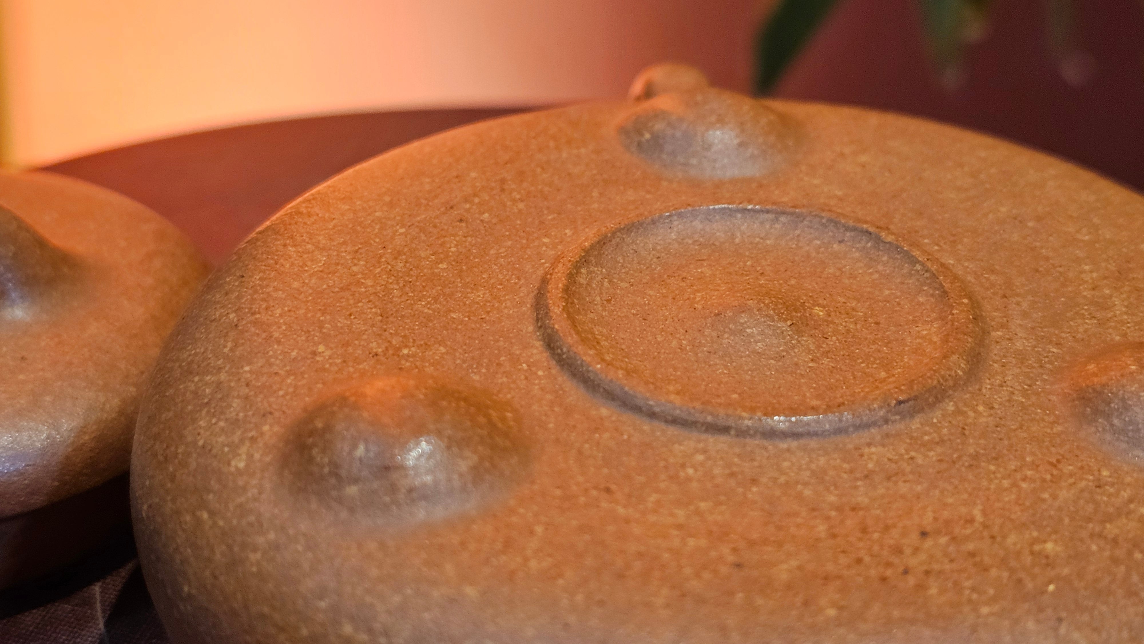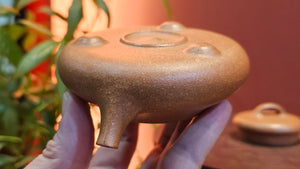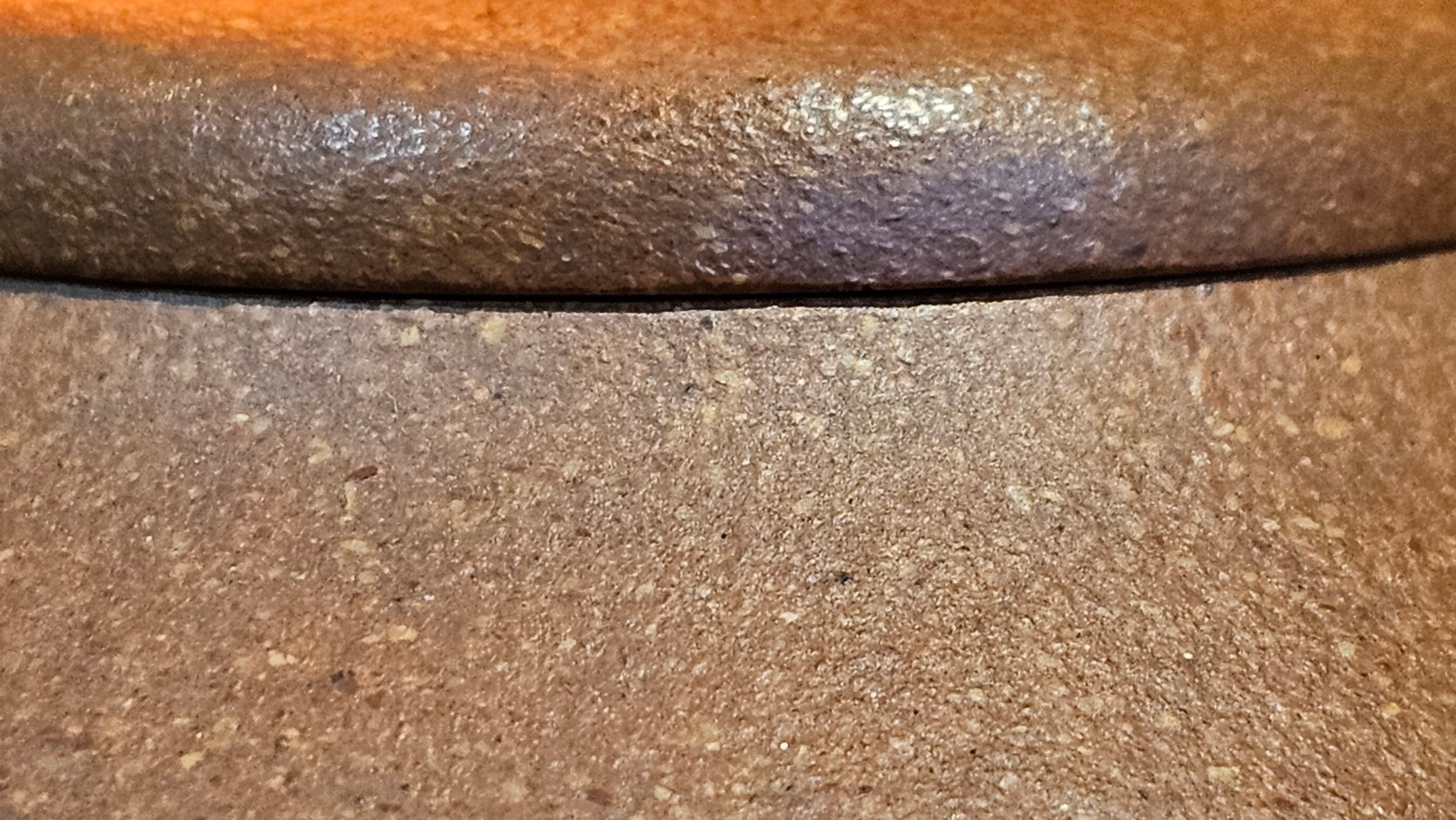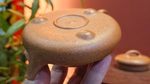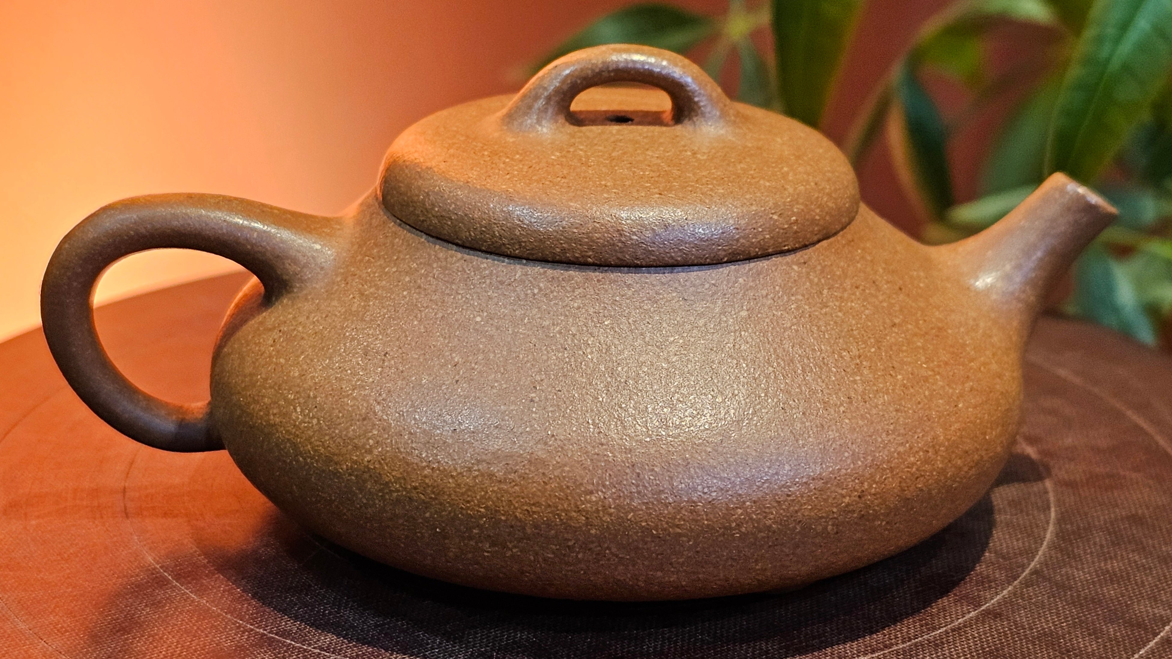 Chen Hua Jun is very familiar with Jiang Po Ni, both Red and Yellow, and here, he brings forth this Long Dan 龙蛋。 Jiang Po Ni is a combination of Hong Ni, Zi Ni and Lü Ni. Both Hong (Red) Jiang Po Ni and Huang (Yellow) Jiang Po Ni are both relatively sandy/grainy, with the characteristic ORANGEY-RED HUE. Both Hong Jiang Po Ni and Huang Jiang Po Ni contain the combination of HongNi, LüNi and ZiNi. Hong Jiang Po Ni has comparatively more HongNi within, while Huang Jiang Po Ni has a higher percentage of ZiNi and LüNi within. JiangPoNi is amazingly porous. Huang Jiang Po Ni is one of the most amazing unadulterated ZiSha clay with amazing Patina formation through use. It is very rewarding to use Huang Jiang Po Ni, both for its amazing Patina formation and its excellent pairings with both Sheng and Shu Pu Er.