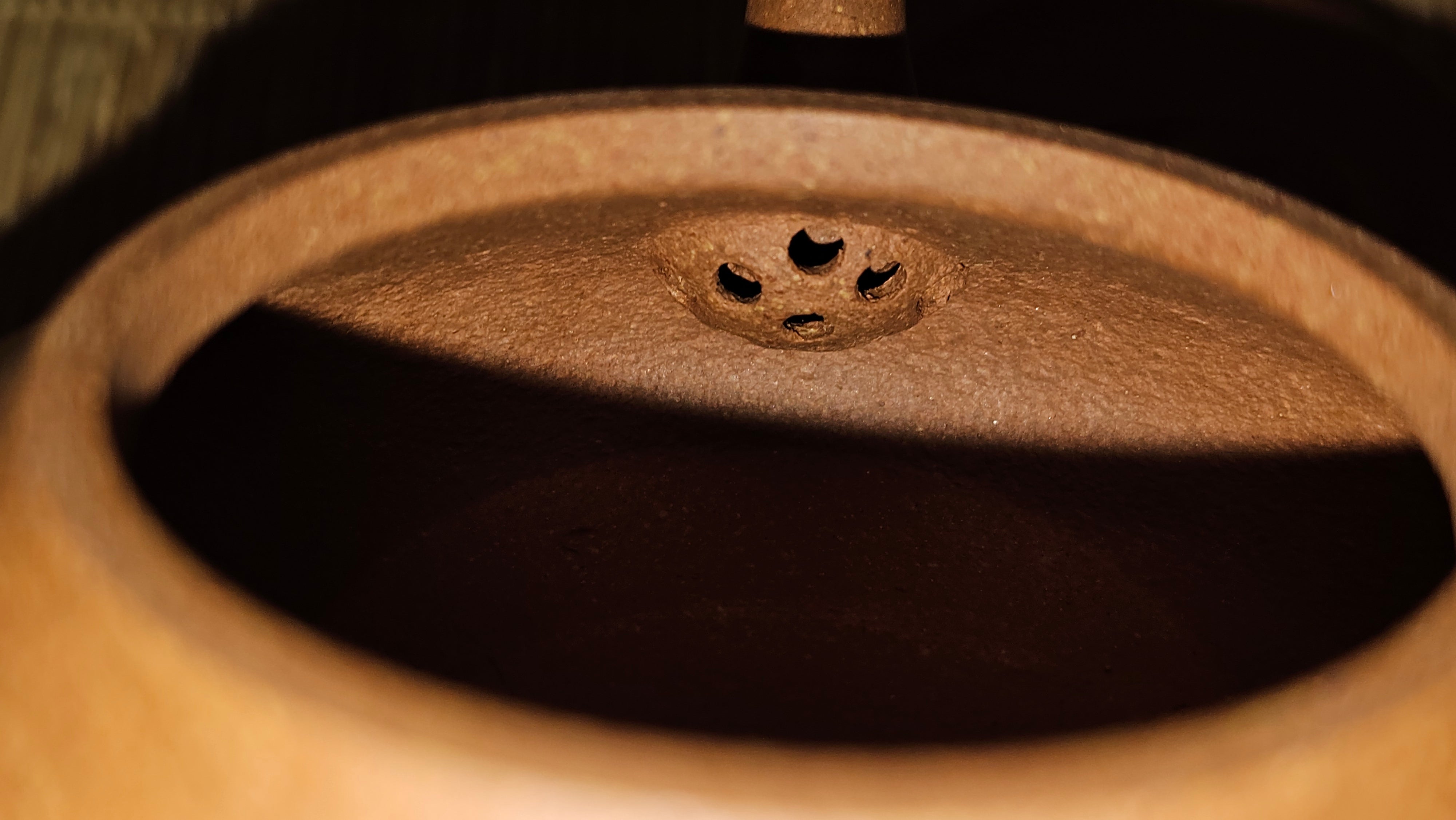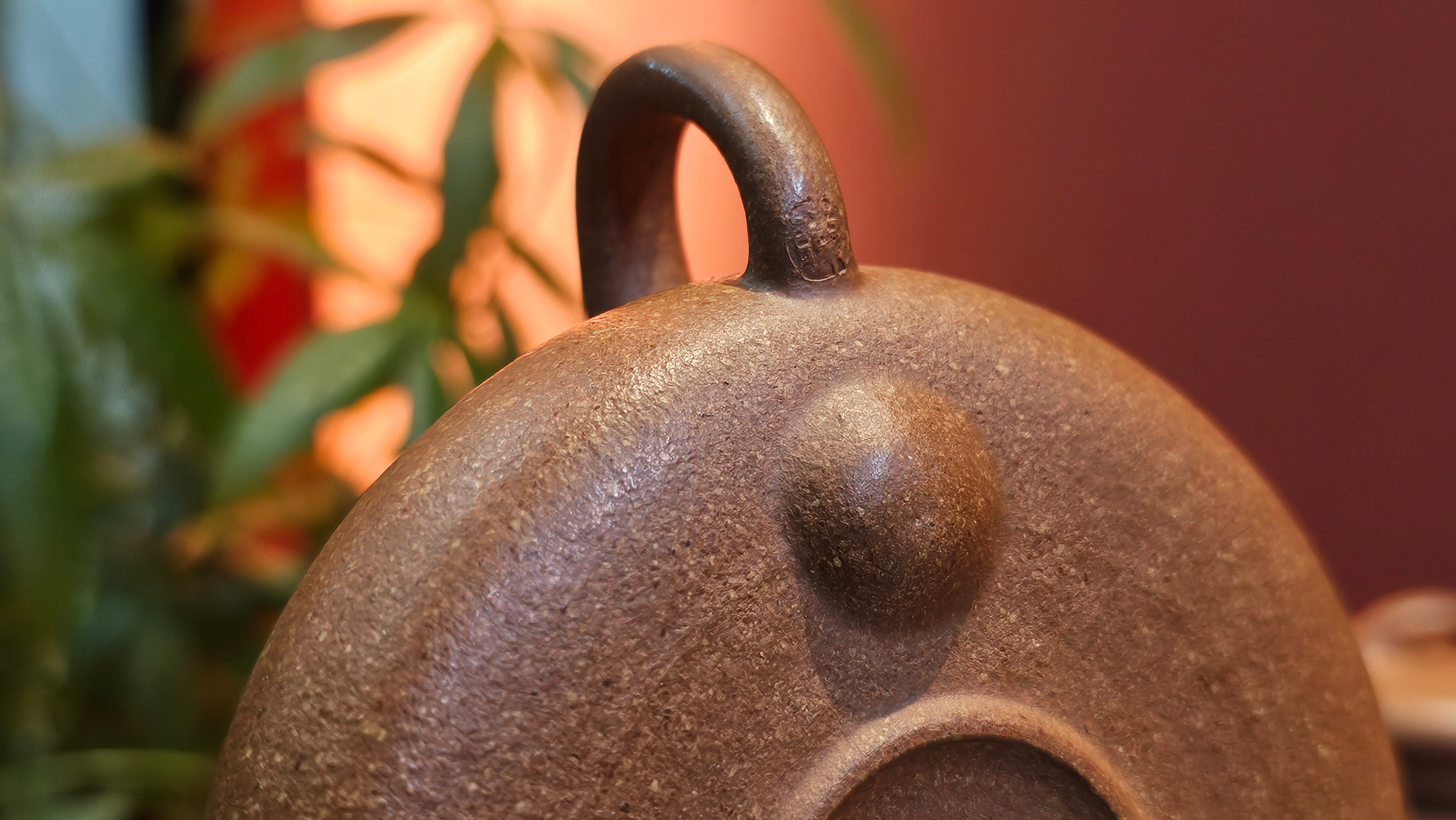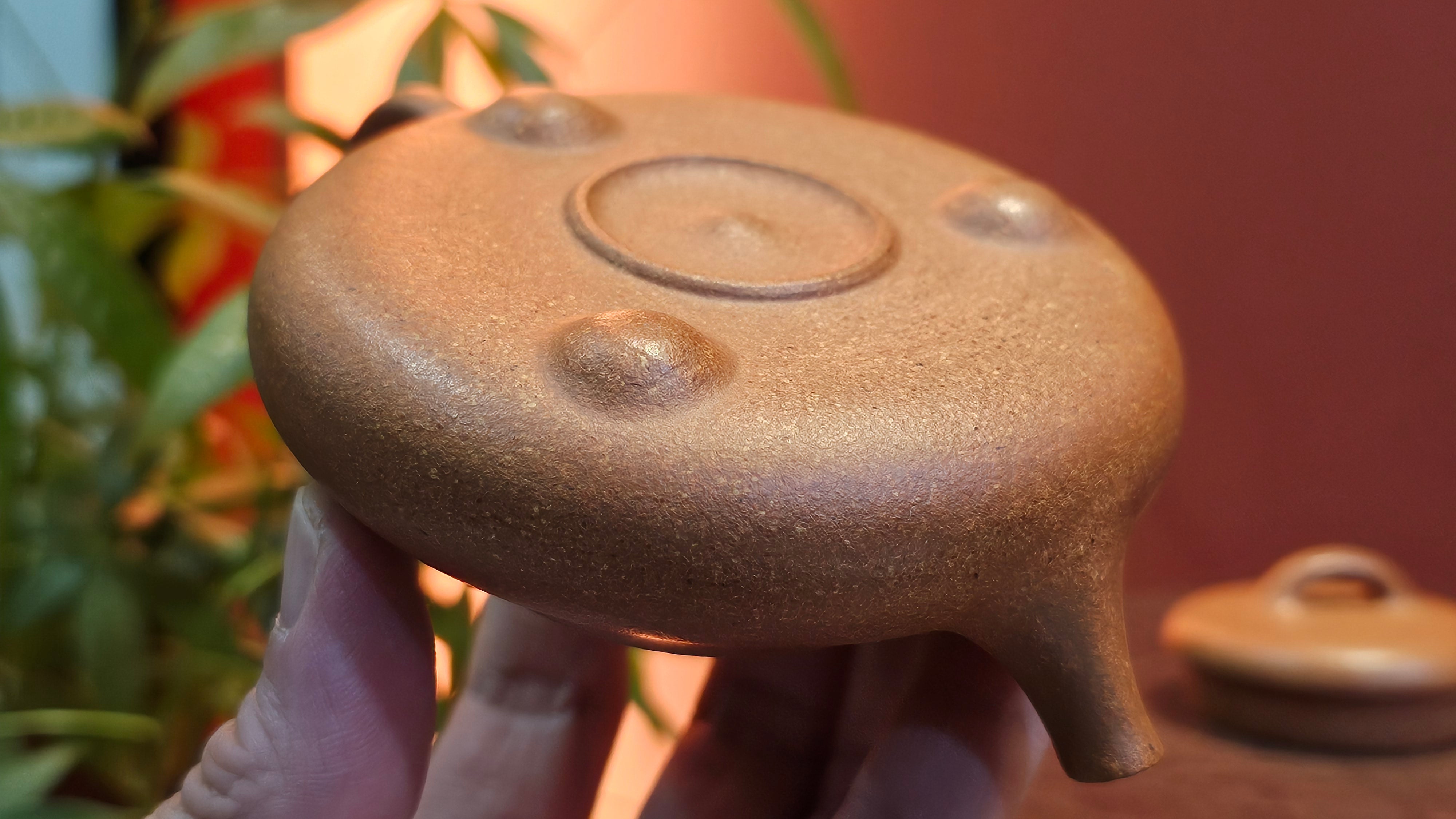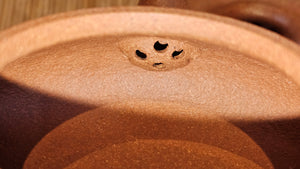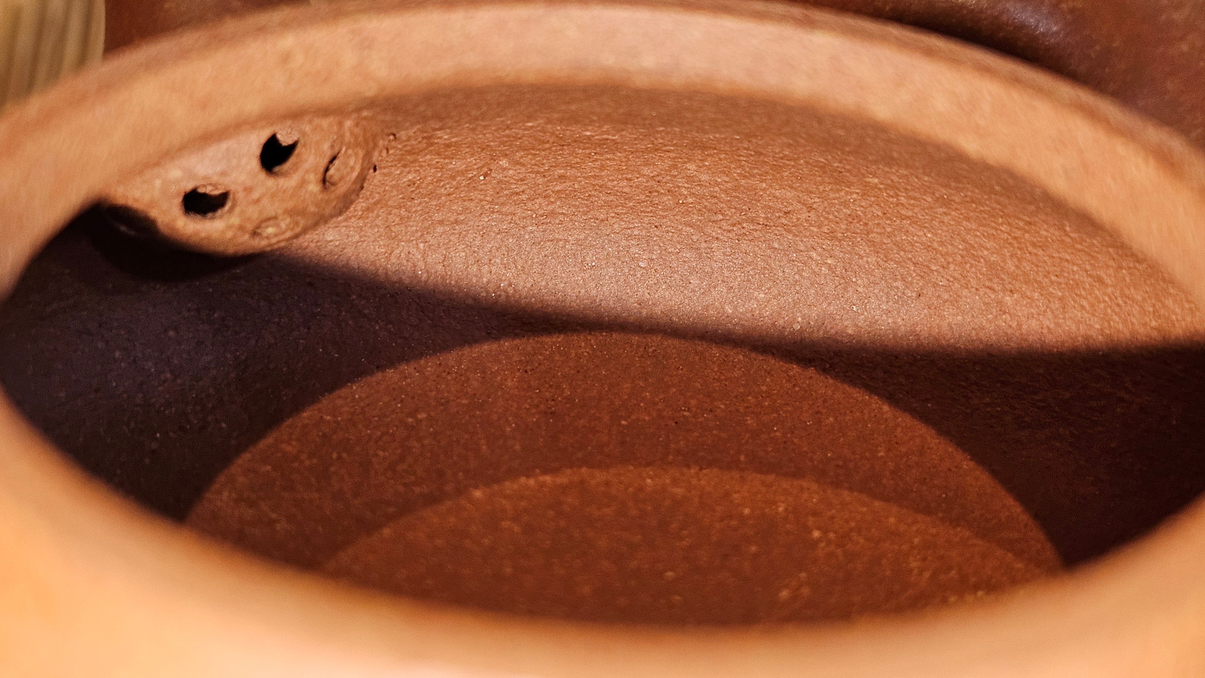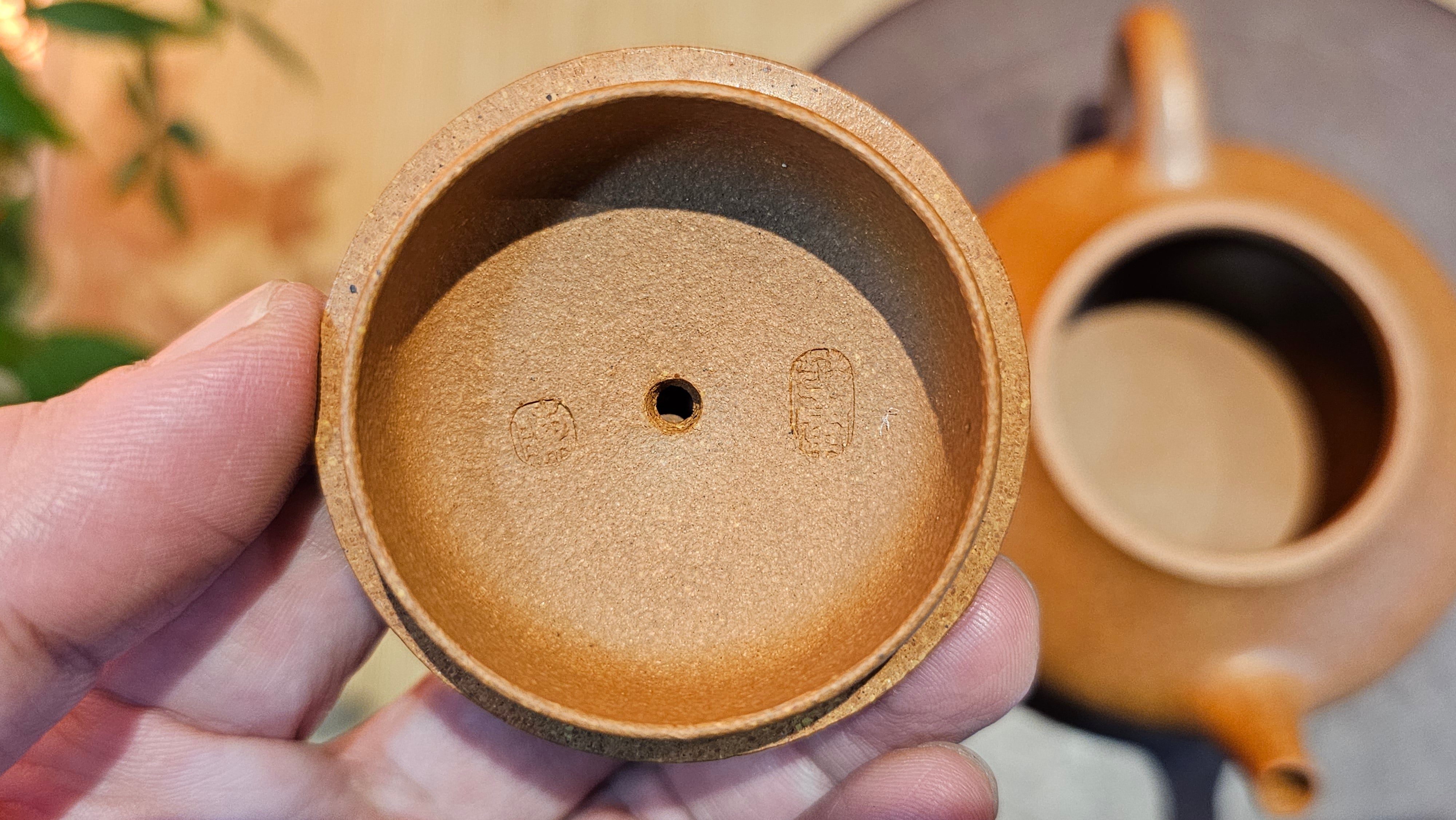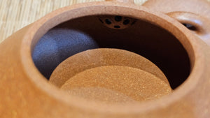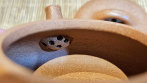 Craftsman Chen also conscientiously sculpted a 手推内球孔 Hand-Pushed Spherical Filter to increase the number of filter holes for a solid and fast pour of tea out, working with the largish diameter spout; and with better catching of tea leaves at the bottom fast while allowing tea to flow out from the upper holes.