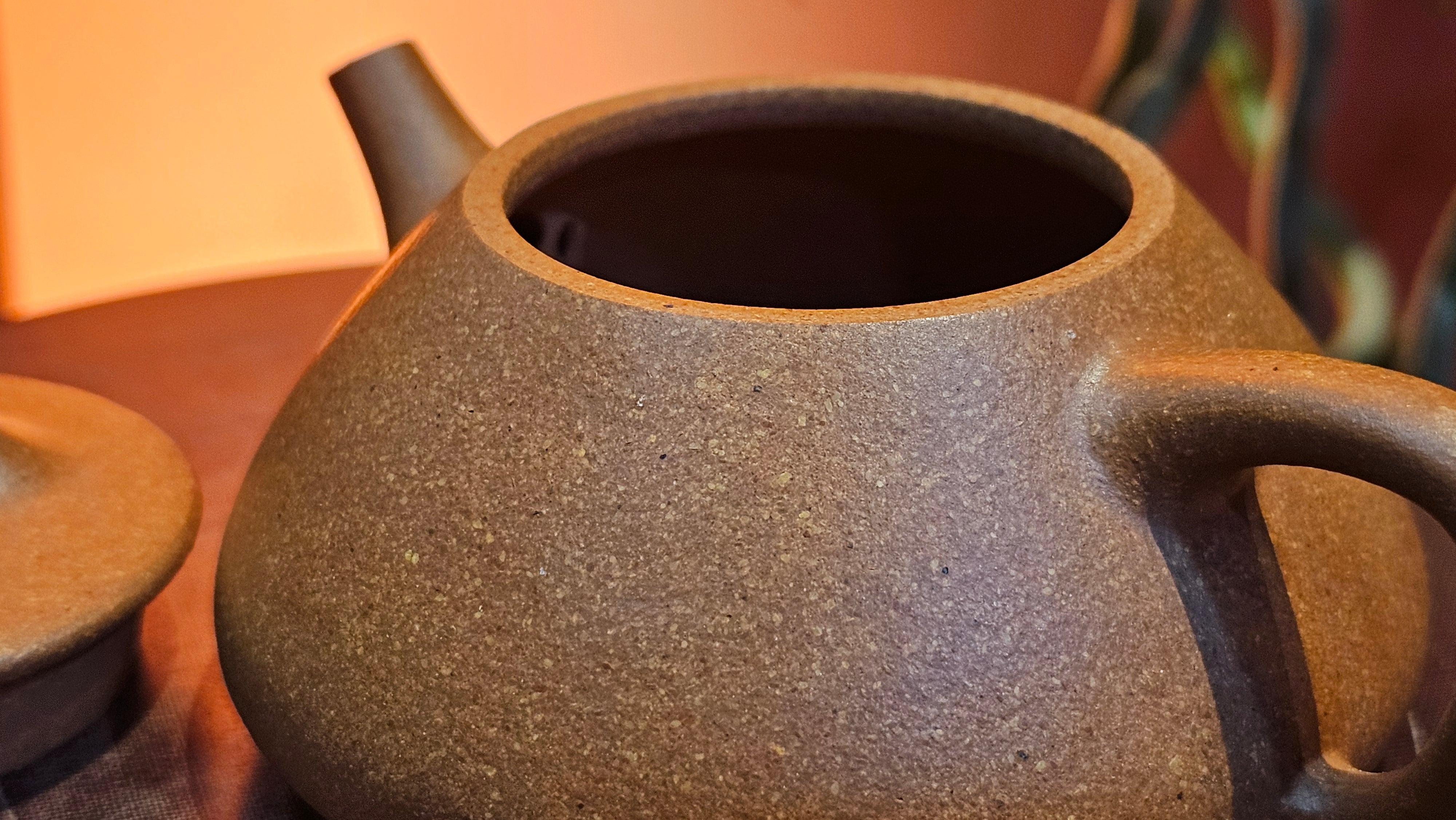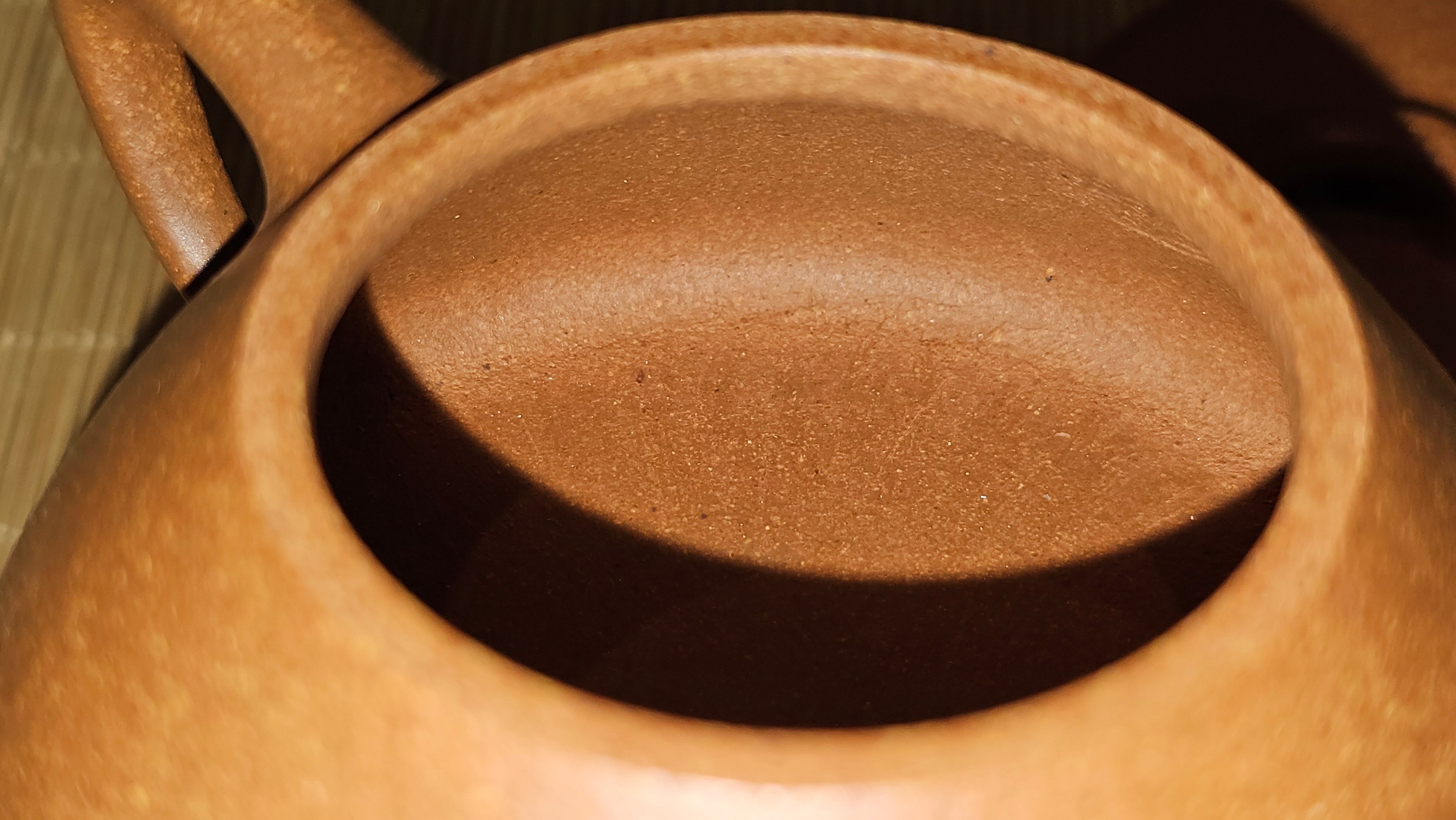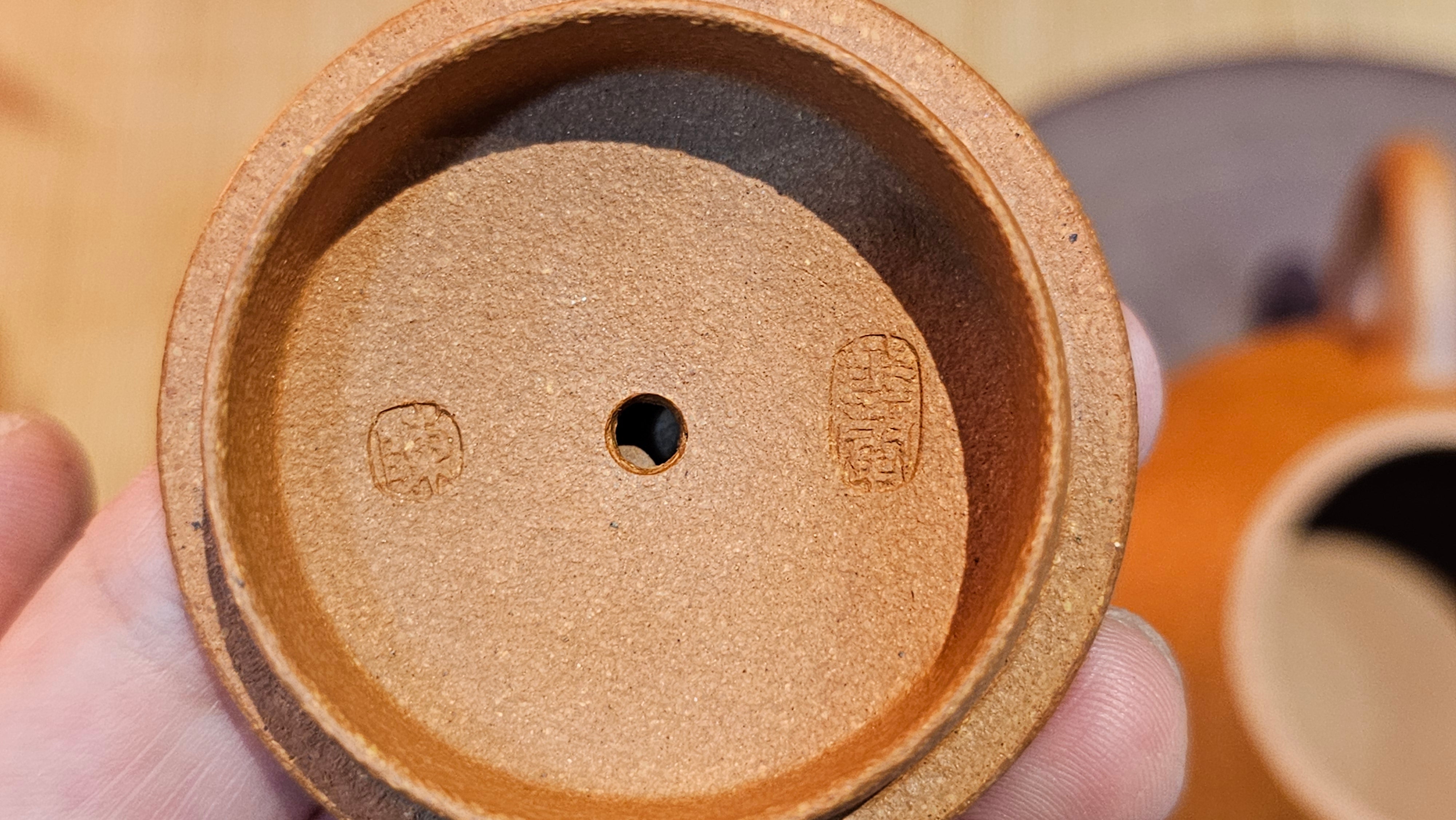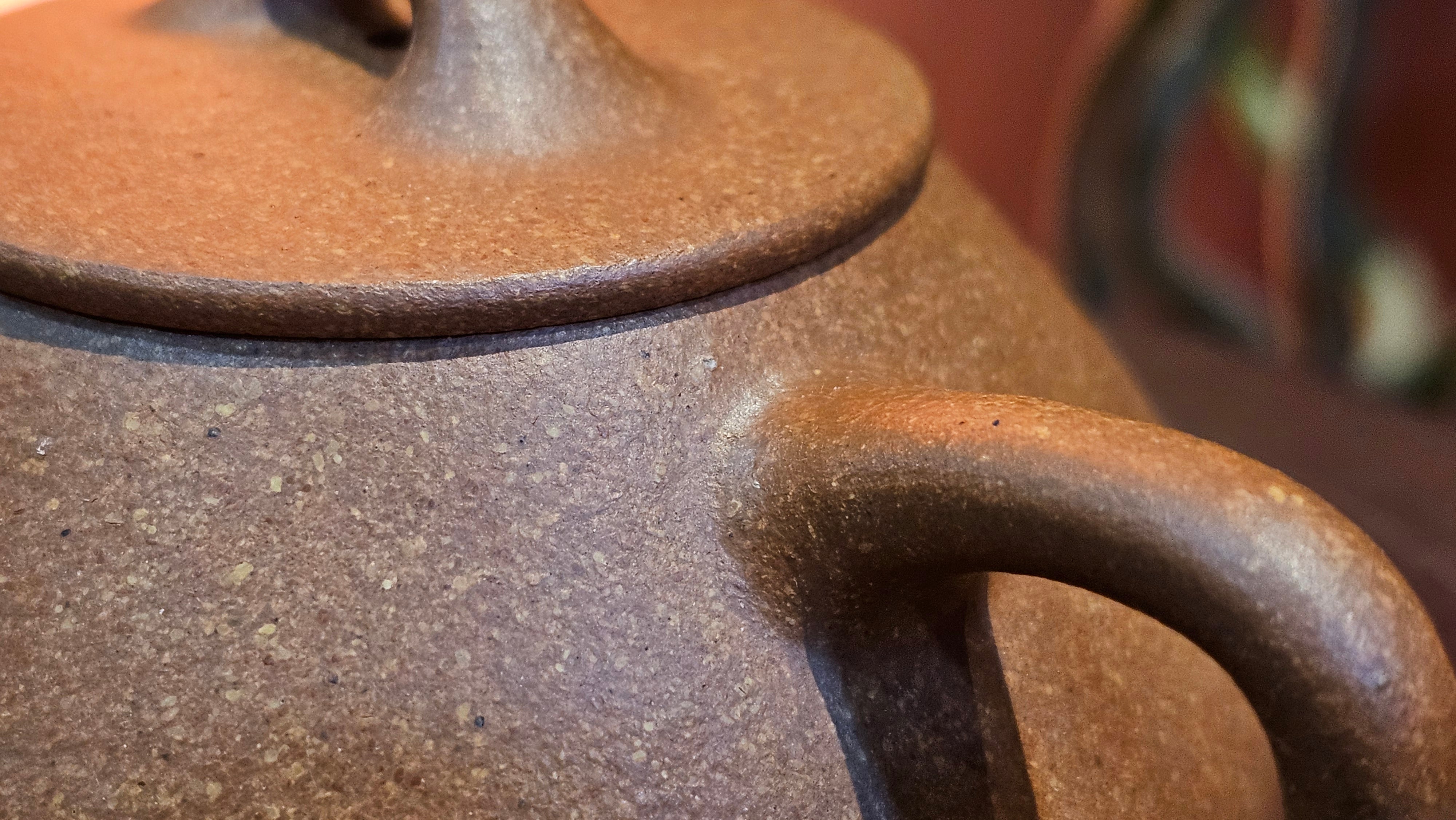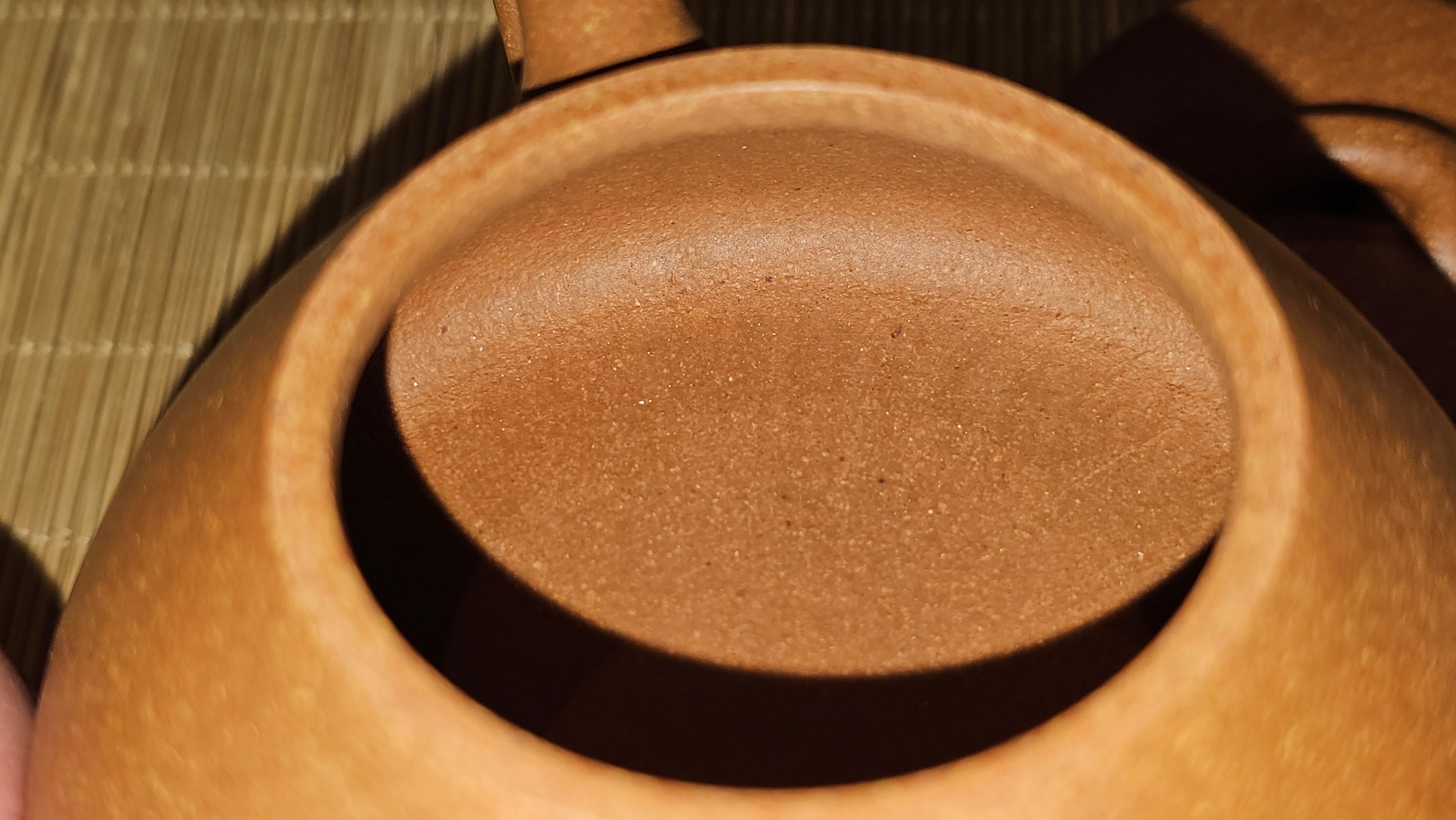 Chen Hua Jun is very familiar with Jiang Po Ni, both Red and Yellow, and here, he brings forth this Long Dan 龙蛋。 Jiang Po Ni is a combination of Hong Ni, Zi Ni and Lü Ni. Both Hong (Red) Jiang Po Ni and Huang (Yellow) Jiang Po Ni are both relatively sandy/grainy, with the characteristic ORANGEY-RED HUE. Both Hong Jiang Po Ni and Huang Jiang Po Ni contain the combination of HongNi, LüNi and ZiNi. Hong Jiang Po Ni has comparatively more HongNi within, while Huang Jiang Po Ni has a higher percentage of ZiNi and LüNi within. JiangPoNi is amazingly porous. Huang Jiang Po Ni is one of the most amazing unadulterated ZiSha clay with amazing Patina formation through use. It is very rewarding to use Huang Jiang Po Ni, both for its amazing Patina formation and its excellent pairings with both Sheng and Shu Pu Er.