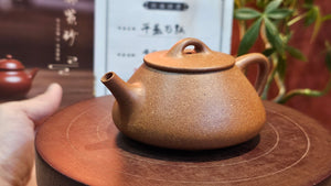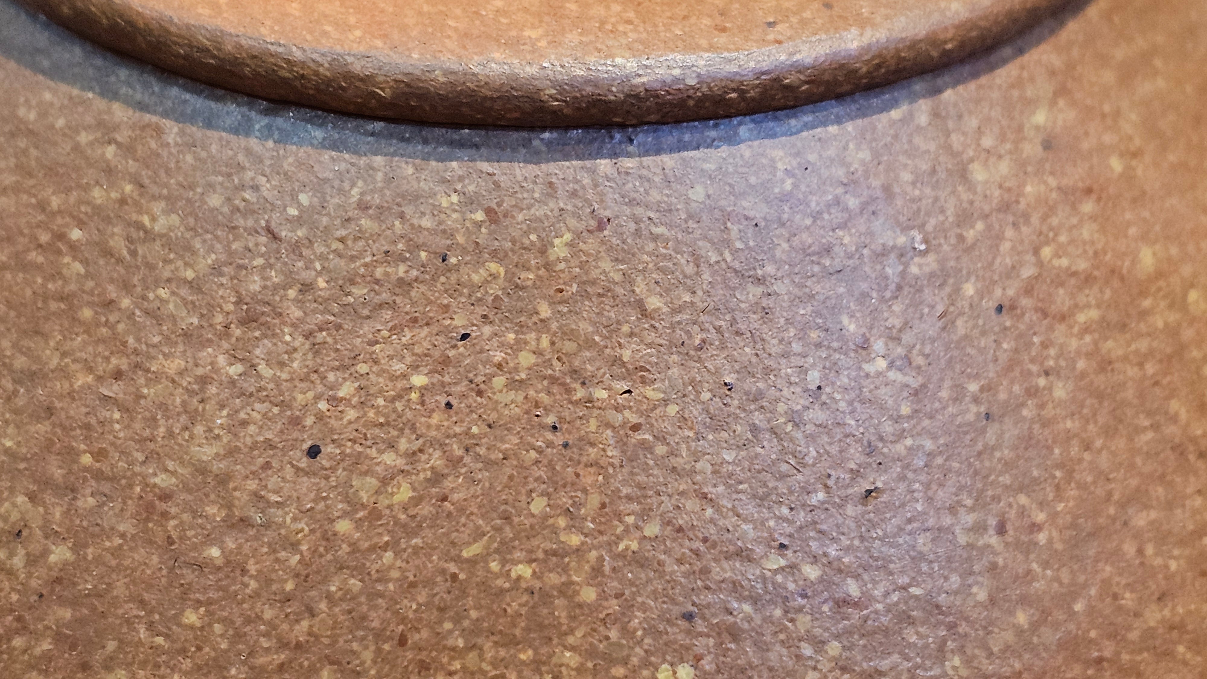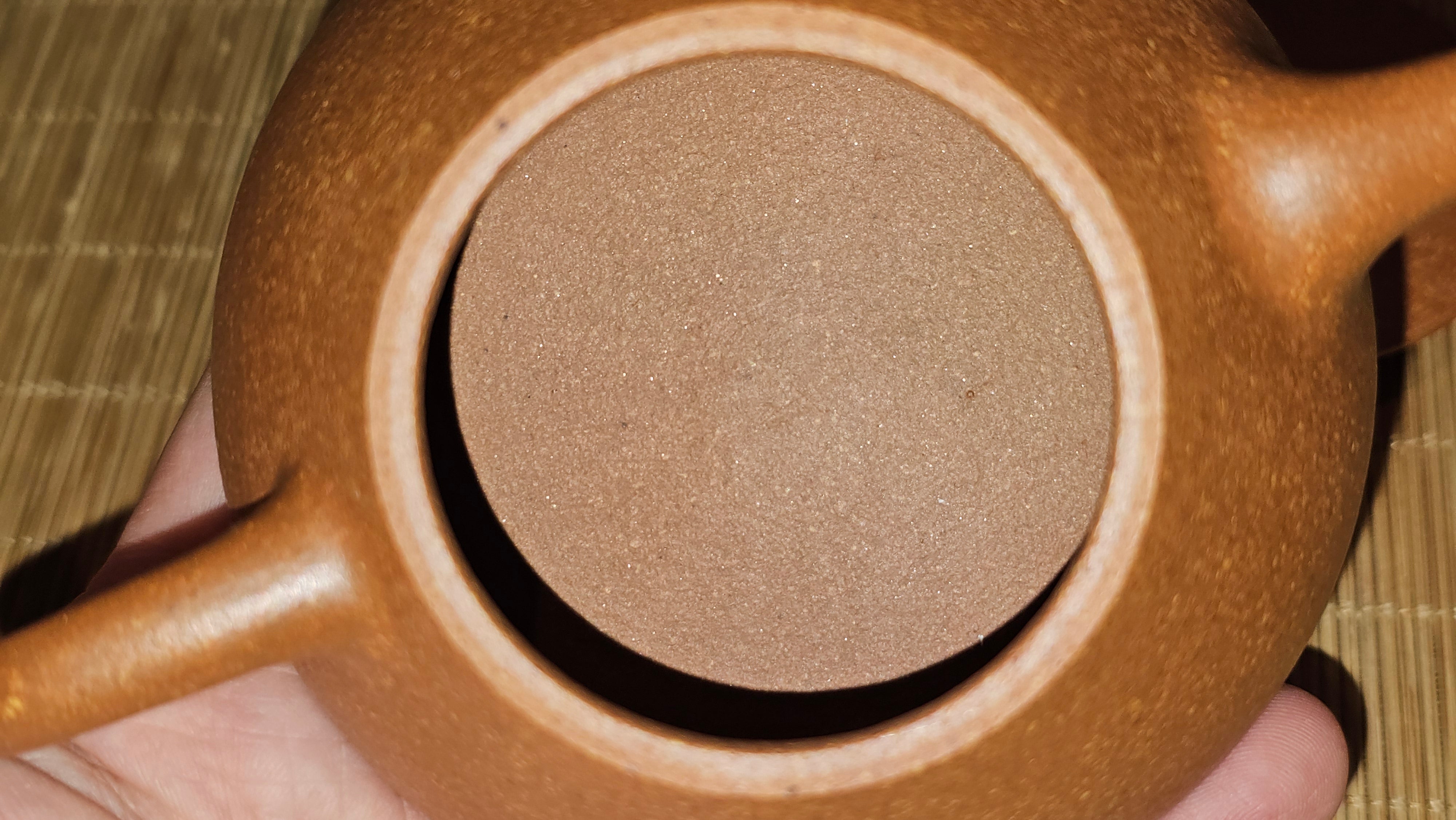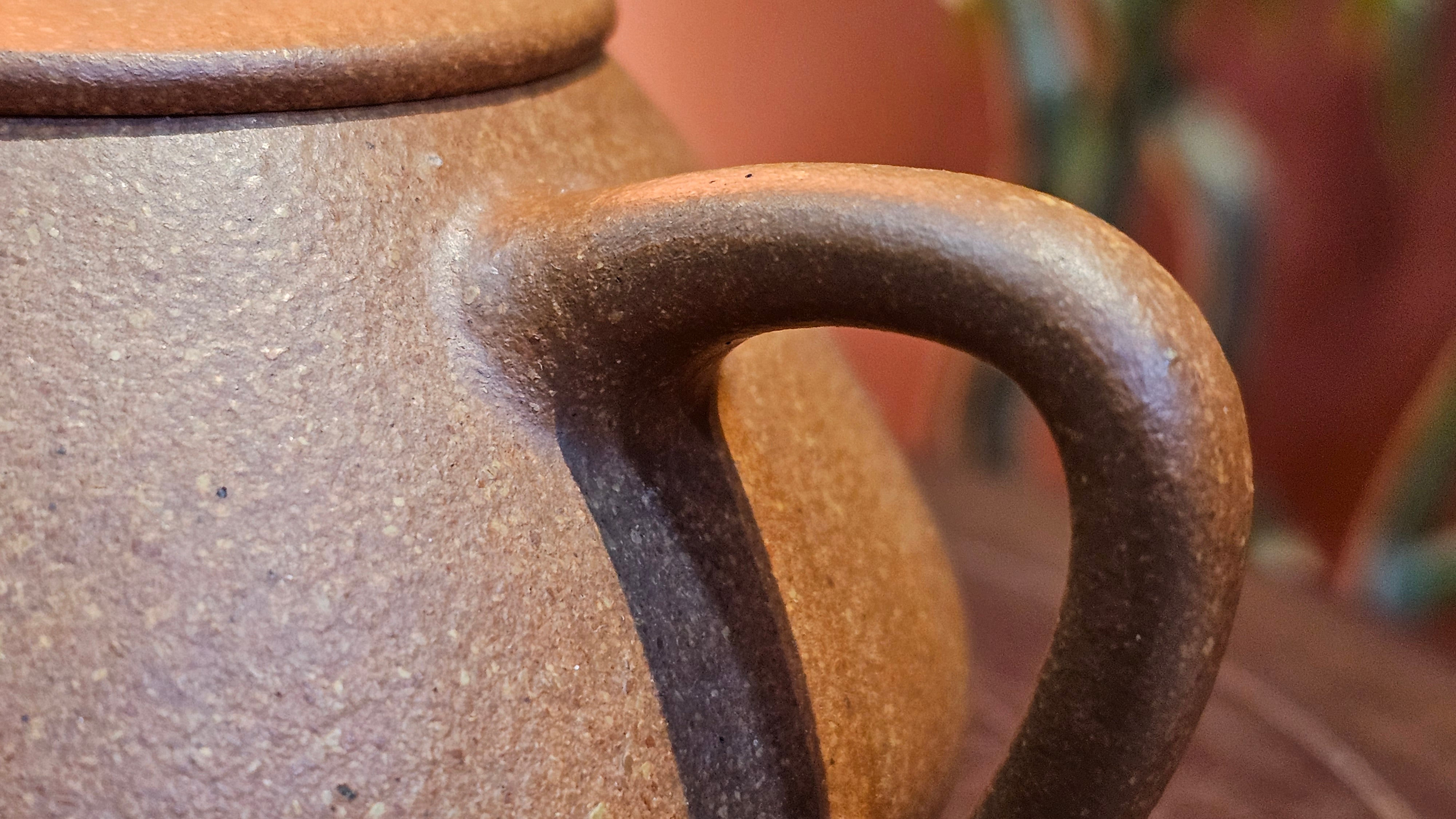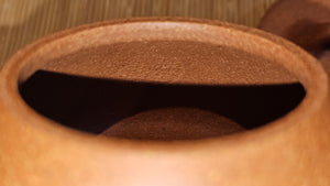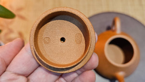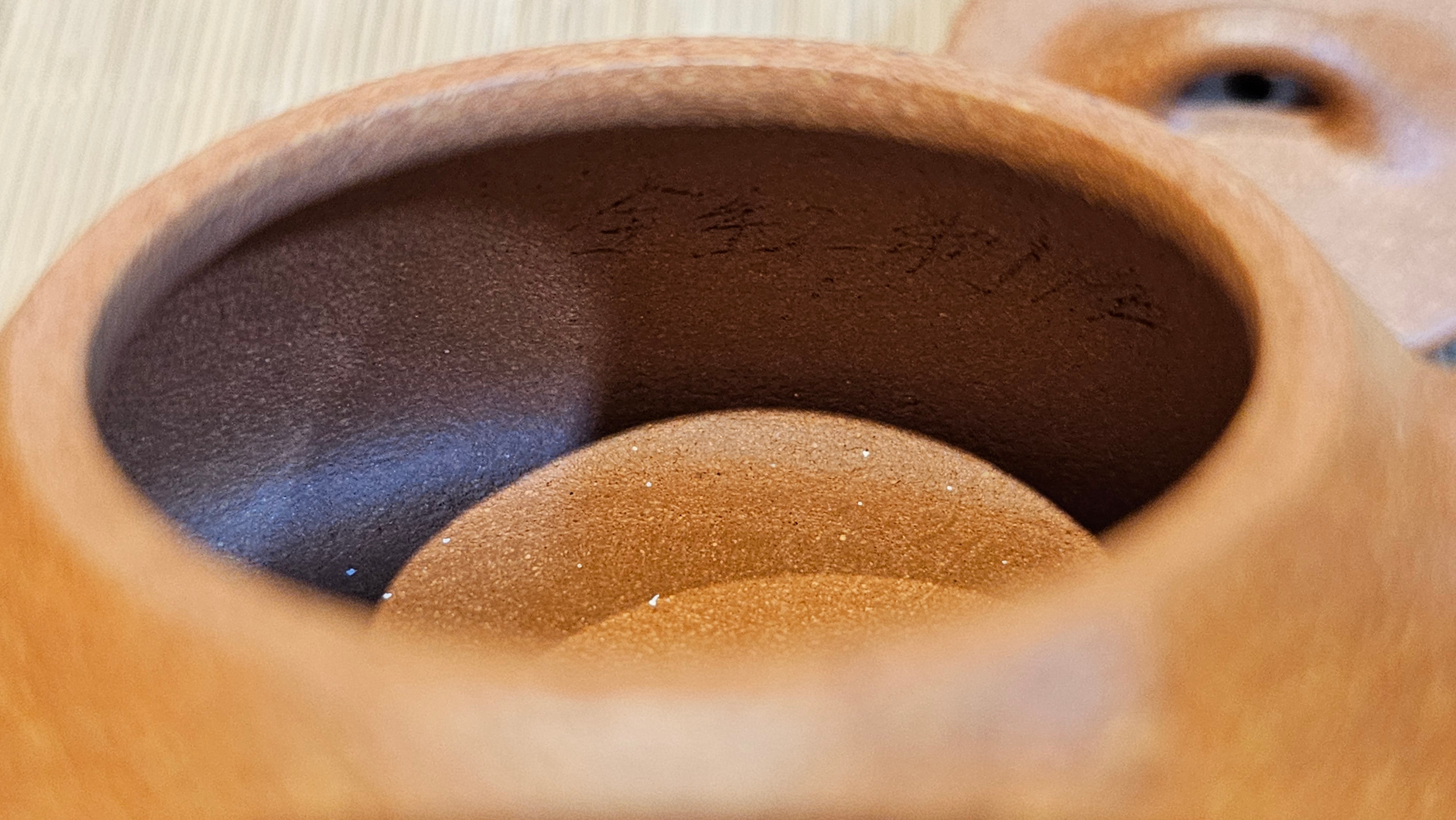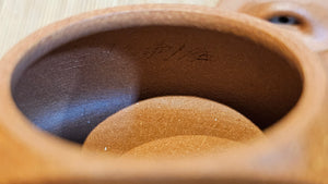 Chen Hua Jun is very familiar with Jiang Po Ni, both Red and Yellow, and here, he brings forth this Long Dan 龙蛋。 Jiang Po Ni is a combination of Hong Ni, Zi Ni and Lü Ni. Both Hong (Red) Jiang Po Ni and Huang (Yellow) Jiang Po Ni are both relatively sandy/grainy, with the characteristic ORANGEY-RED HUE. Both Hong Jiang Po Ni and Huang Jiang Po Ni contain the combination of HongNi, LüNi and ZiNi. Hong Jiang Po Ni has comparatively more HongNi within, while Huang Jiang Po Ni has a higher percentage of ZiNi and LüNi within. JiangPoNi is amazingly porous. Huang Jiang Po Ni is one of the most amazing unadulterated ZiSha clay with amazing Patina formation through use. It is very rewarding to use Huang Jiang Po Ni, both for its amazing Patina formation and its excellent pairings with both Sheng and Shu Pu Er.