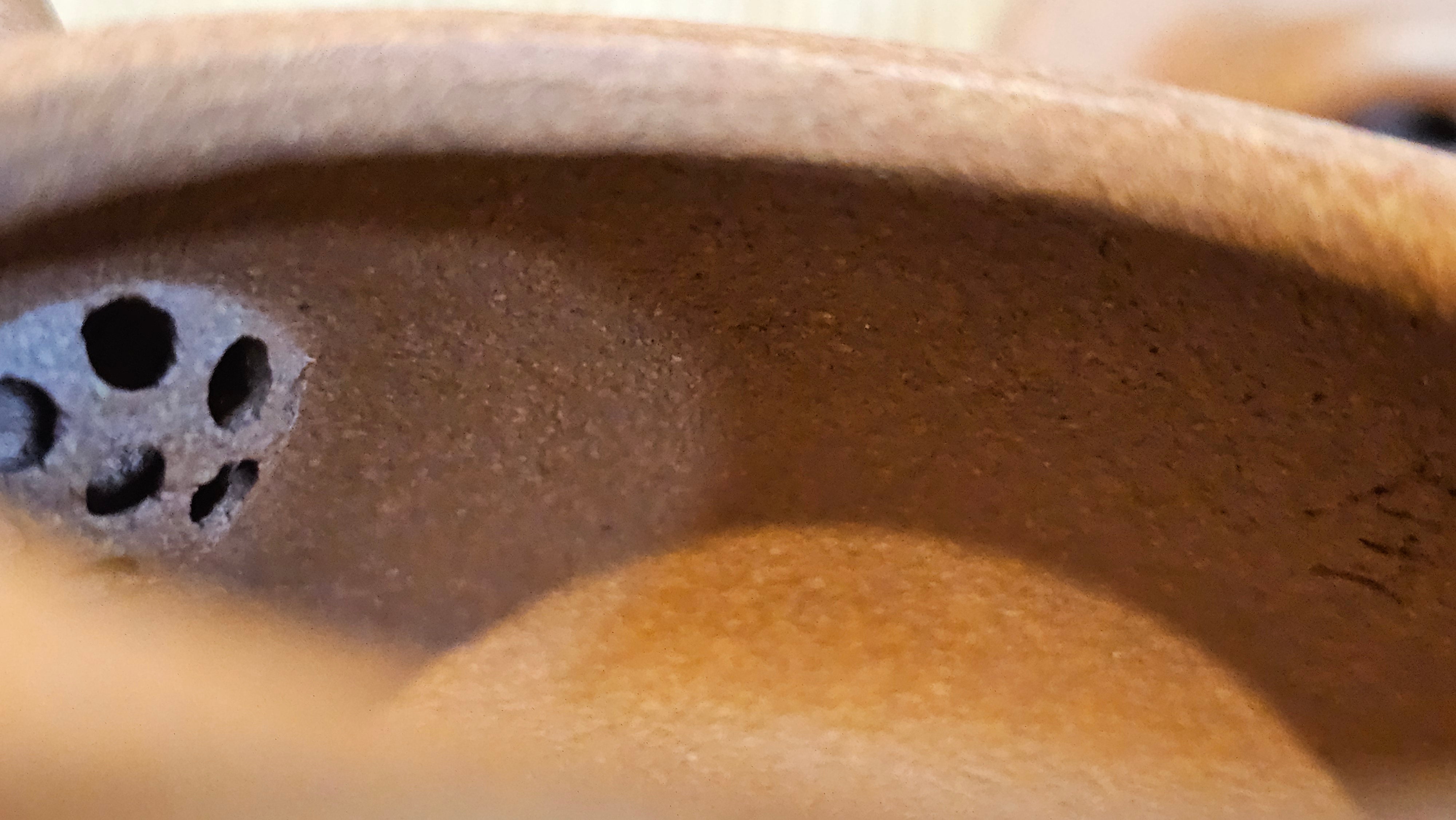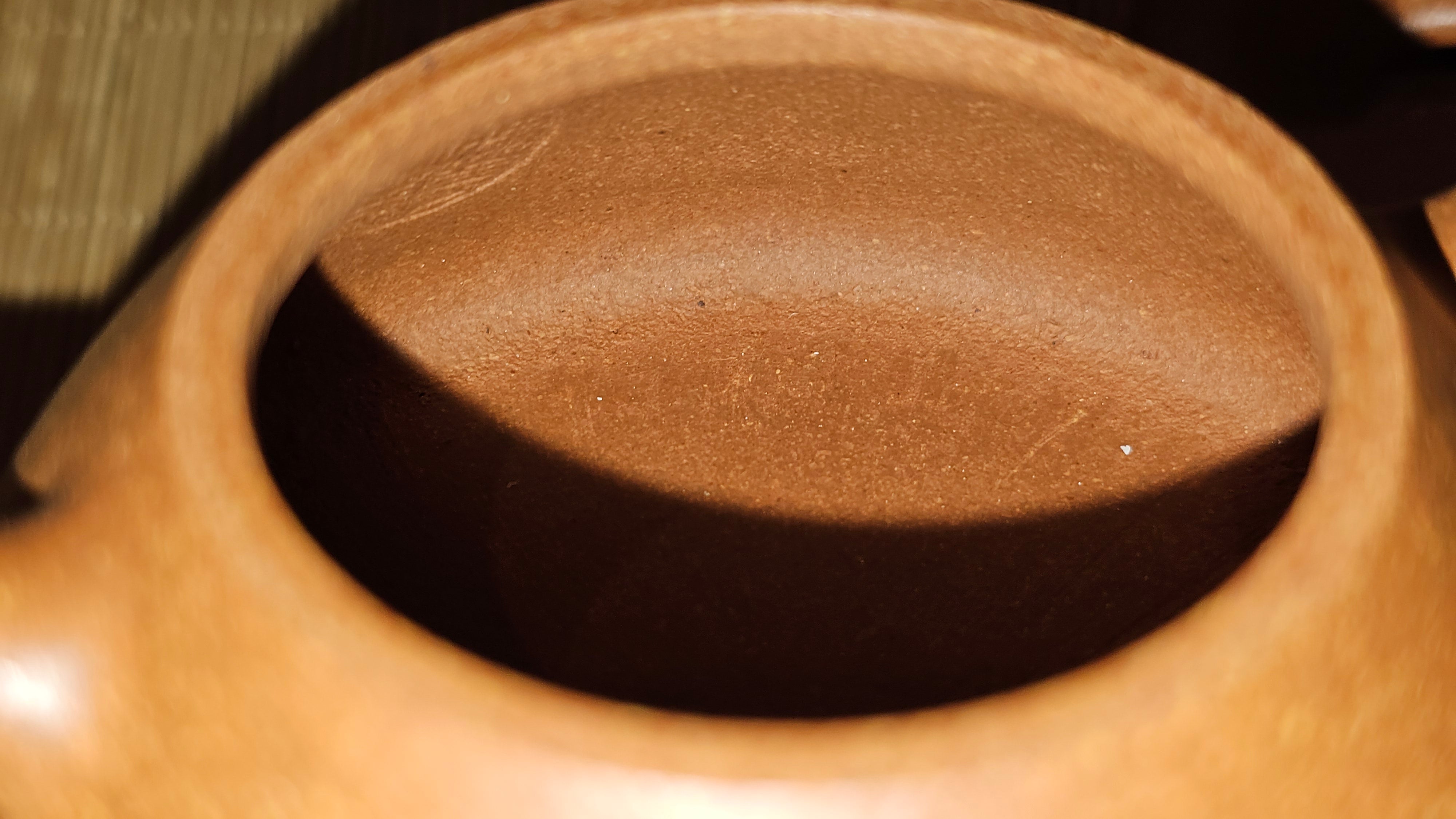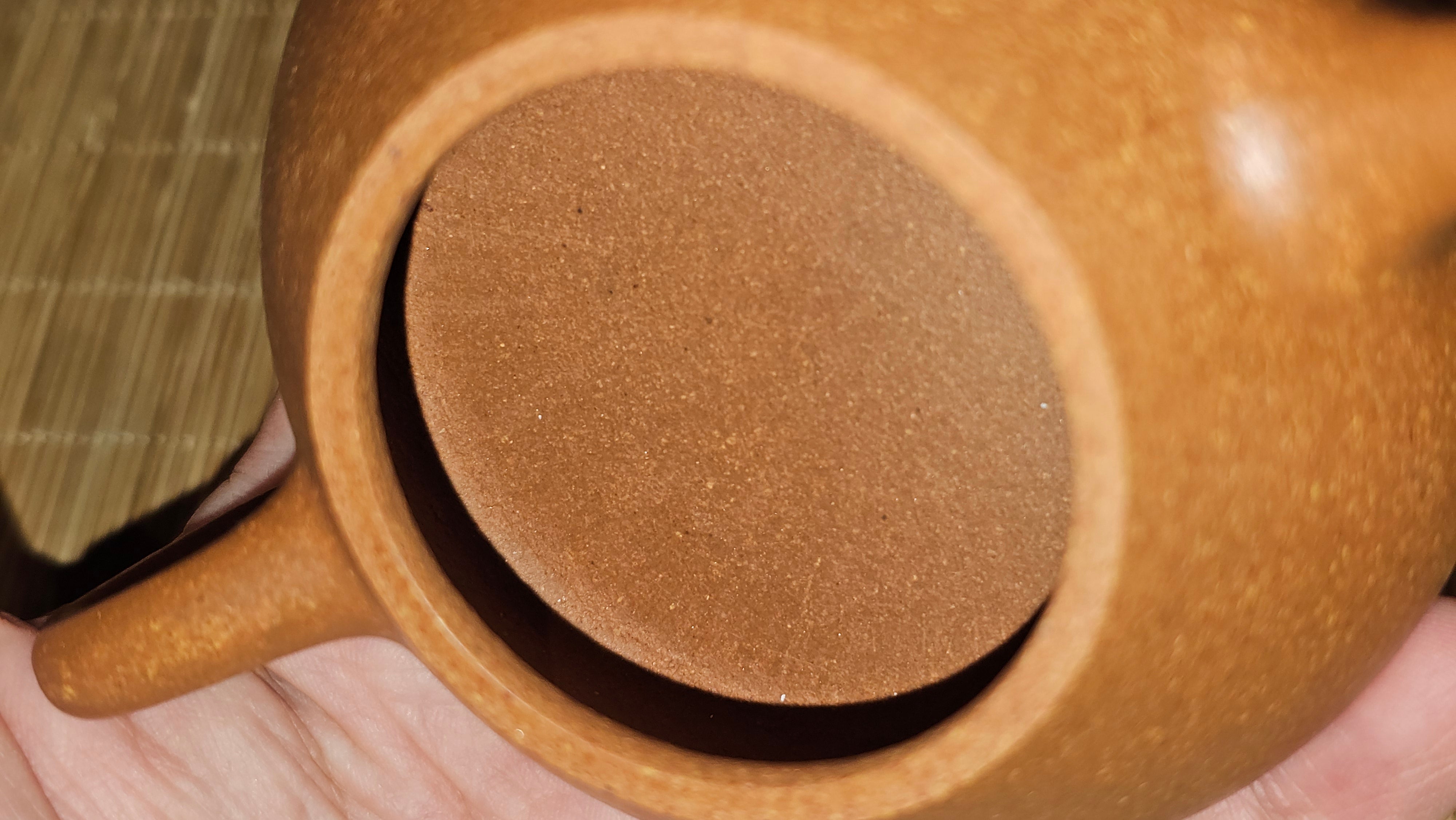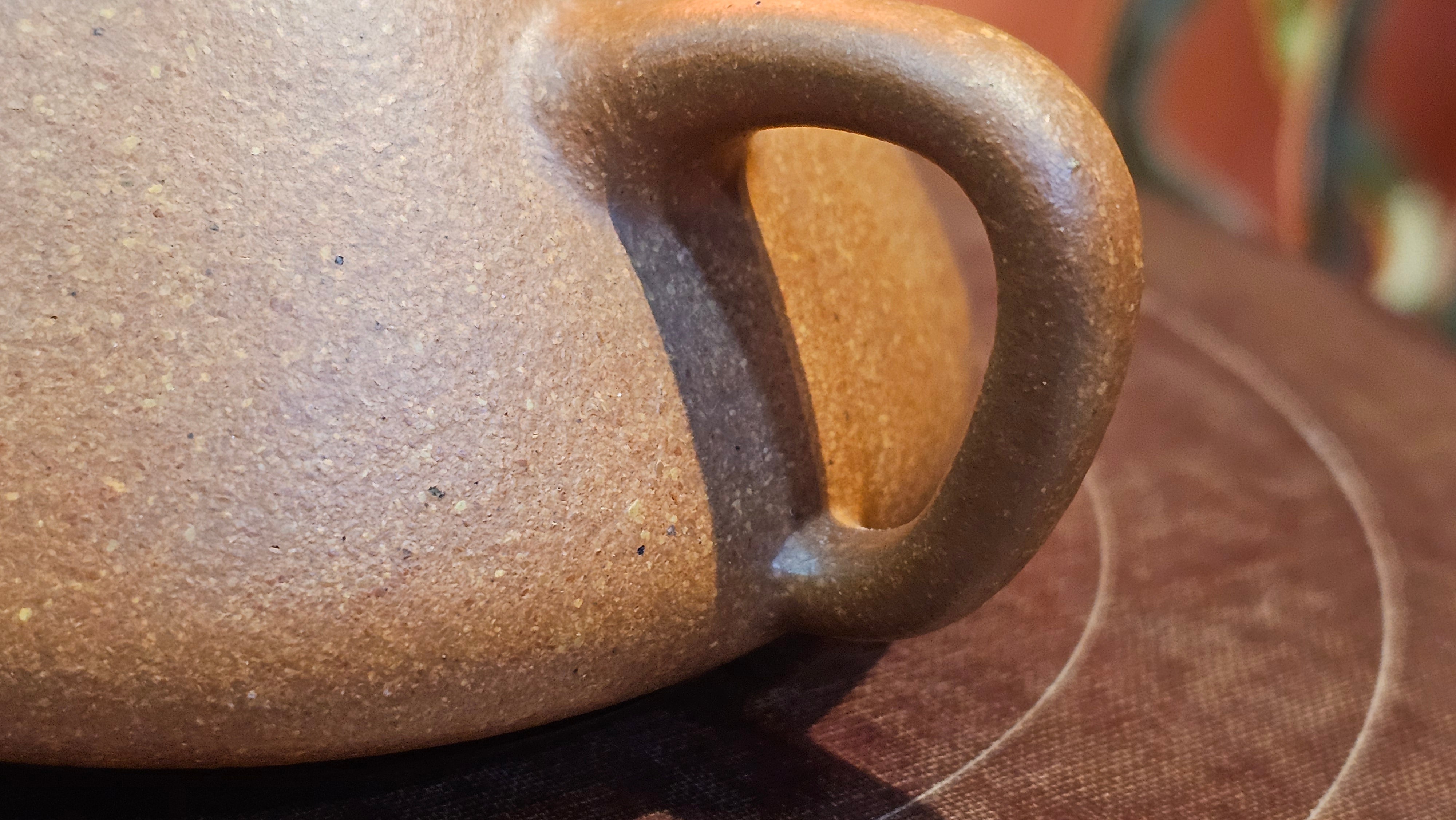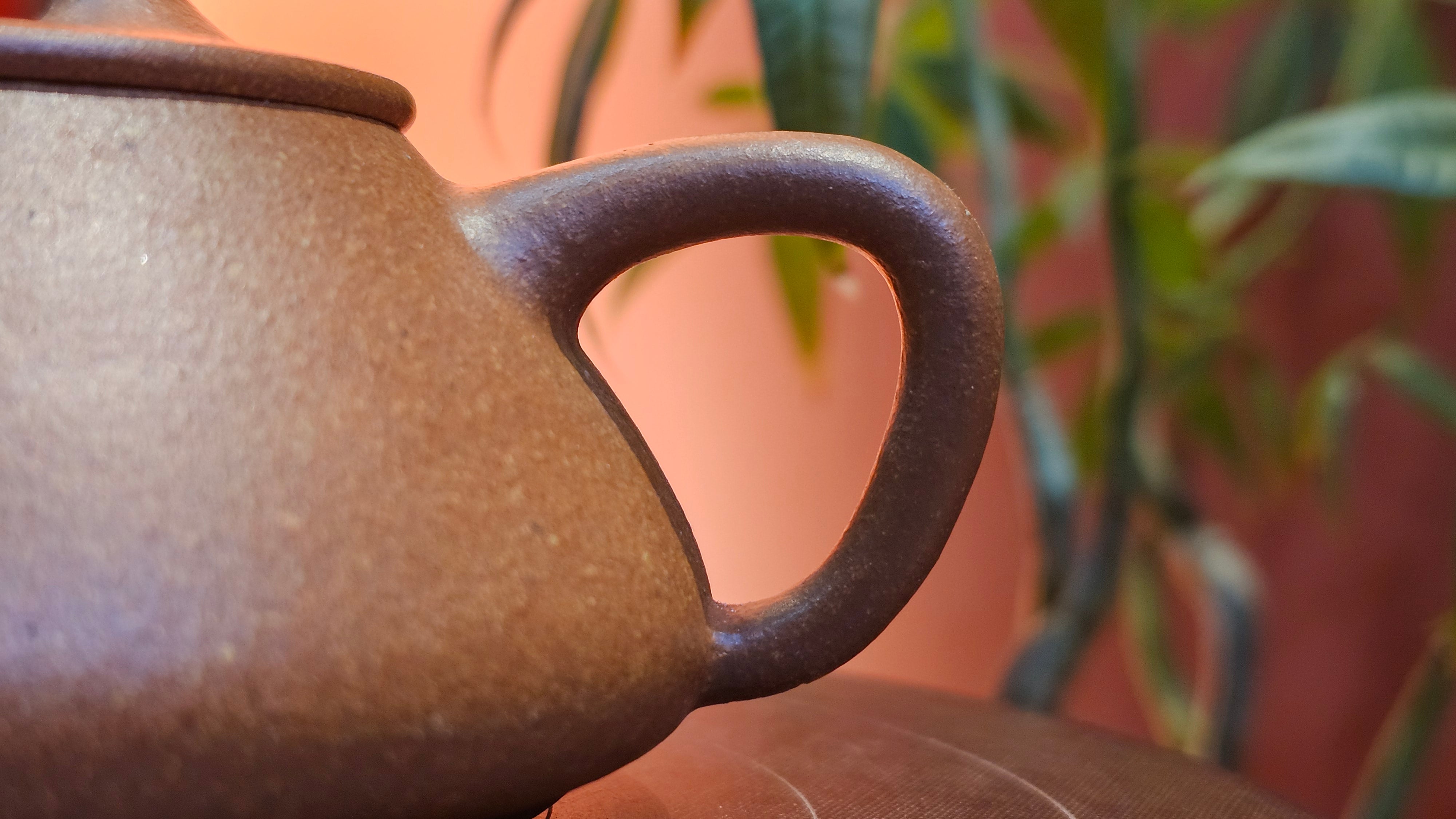 Chen Hua Jun is very familiar with Jiang Po Ni, both Red and Yellow, and here, he brings forth this Long Dan 龙蛋。 Jiang Po Ni is a combination of Hong Ni, Zi Ni and Lü Ni. Both Hong (Red) Jiang Po Ni and Huang (Yellow) Jiang Po Ni are both relatively sandy/grainy, with the characteristic ORANGEY-RED HUE. Both Hong Jiang Po Ni and Huang Jiang Po Ni contain the combination of HongNi, LüNi and ZiNi. Hong Jiang Po Ni has comparatively more HongNi within, while Huang Jiang Po Ni has a higher percentage of ZiNi and LüNi within. JiangPoNi is amazingly porous. Huang Jiang Po Ni is one of the most amazing unadulterated ZiSha clay with amazing Patina formation through use. It is very rewarding to use Huang Jiang Po Ni, both for its amazing Patina formation and its excellent pairings with both Sheng and Shu Pu Er.