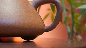 The lines and detailing speak of Craftsman Chen Hua Jun's EXTREME CARE AND TIME taken to craft each part, each pot. Hold one, hold up one, swing the work around. Carefully examine his Fully-Handmade work. Look at it from afar, from near, and it will grow on you, with fine detailing with MUCH THOUGHT on each part, with MUCH TIME spent on every part, section. Because this is what Fully-Handmade ZiSha Art should be, and HOW FULLY-HANDMADE ZISHA ART is so different from and light years ahead of the ubiquitous jigger-machined pots and half-handmade pots masquerading under the sales tagline of "fully-handmade zisha" pots. These latter JM/HHM pots are made in what we call 流水线 a.k.a. 'Factory-Line operation' whereby the main pot body after being jigger-machined or coming off from the mould, is passed to the next worker who fits on the spout, and subsequently this second worker will pass the pot on to another worker who will in turn fit on the handle. Continuing so, the pressed lid is likewise passed to another worker who fit on the lid knob. EACH WORKER has NO IDEA what the other one is doing, and they are always working on fixed time lines stated by the boss. For example, the worker being "passed the baton" a pot with the spout just fixed onto the body by his colleague, will only focus on fixing on the handle, with nil to little regard to WHETHER THE HANDLE fixed on will be cohesive with the spout. Each worker has NO idea of HOW THE FINAL POT WILL LOOK LIKE. Beyond poor craftsmanship and clay, the result of such processes are ugly pots with poor cohesiveness which experienced Artists, Craftsmen and collectors will tell from a metre away. Experienced people in us, do not need to pick up a pot to check whether it is fully-handmade or made of zisha, we can tell from a metre away just by looking at the pot.