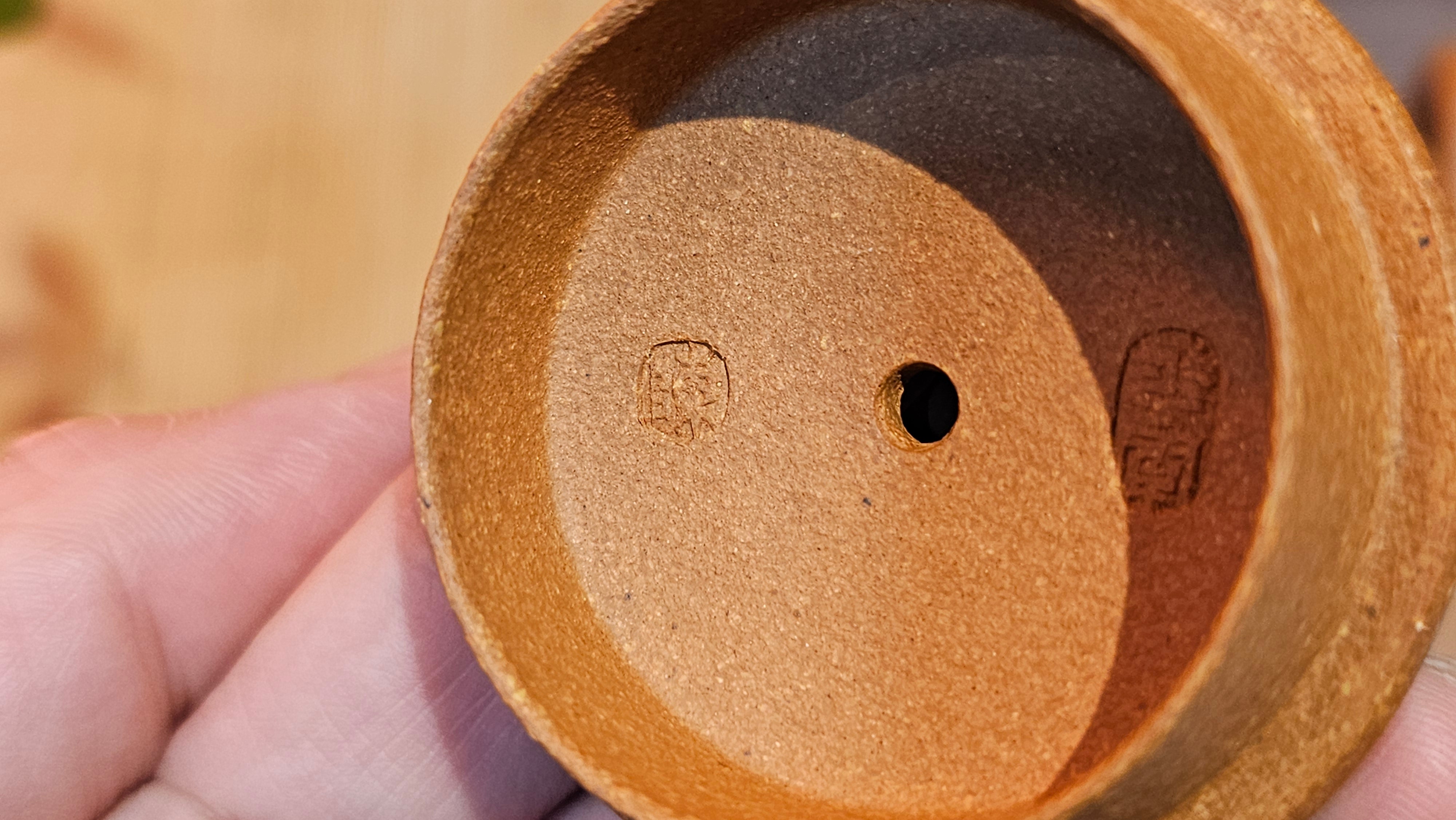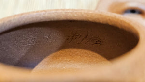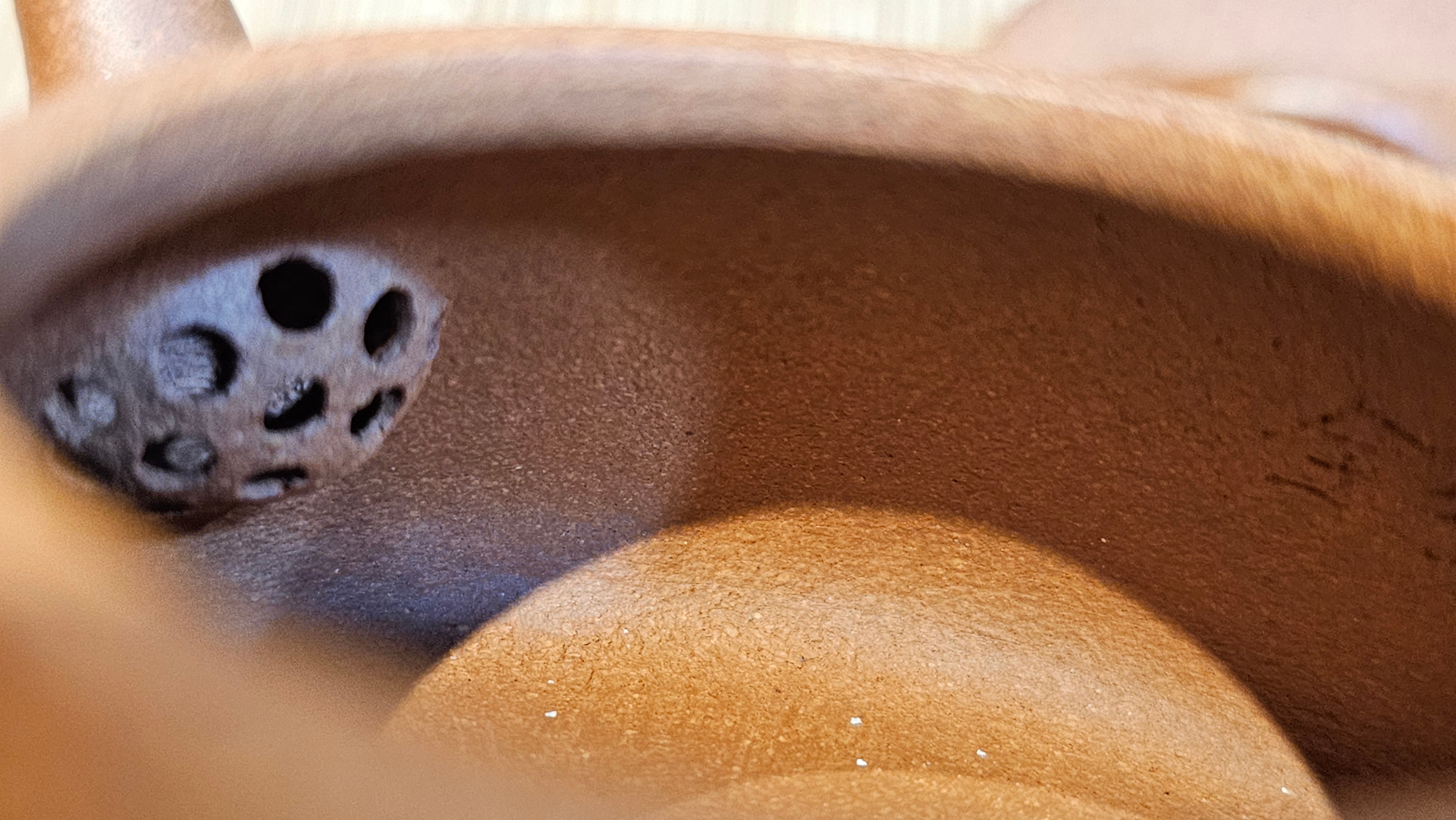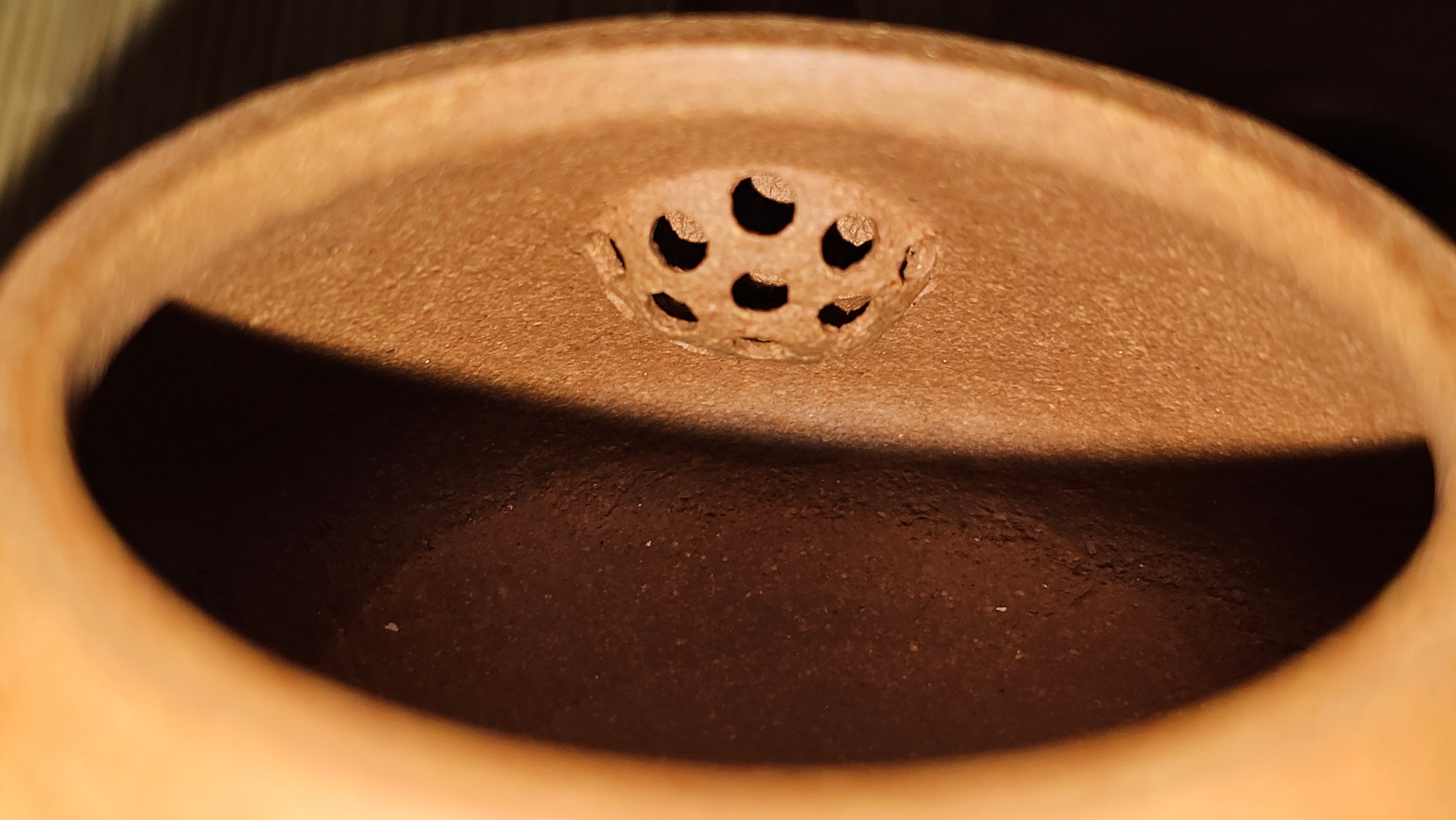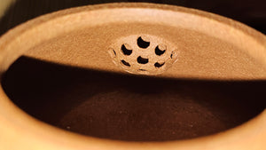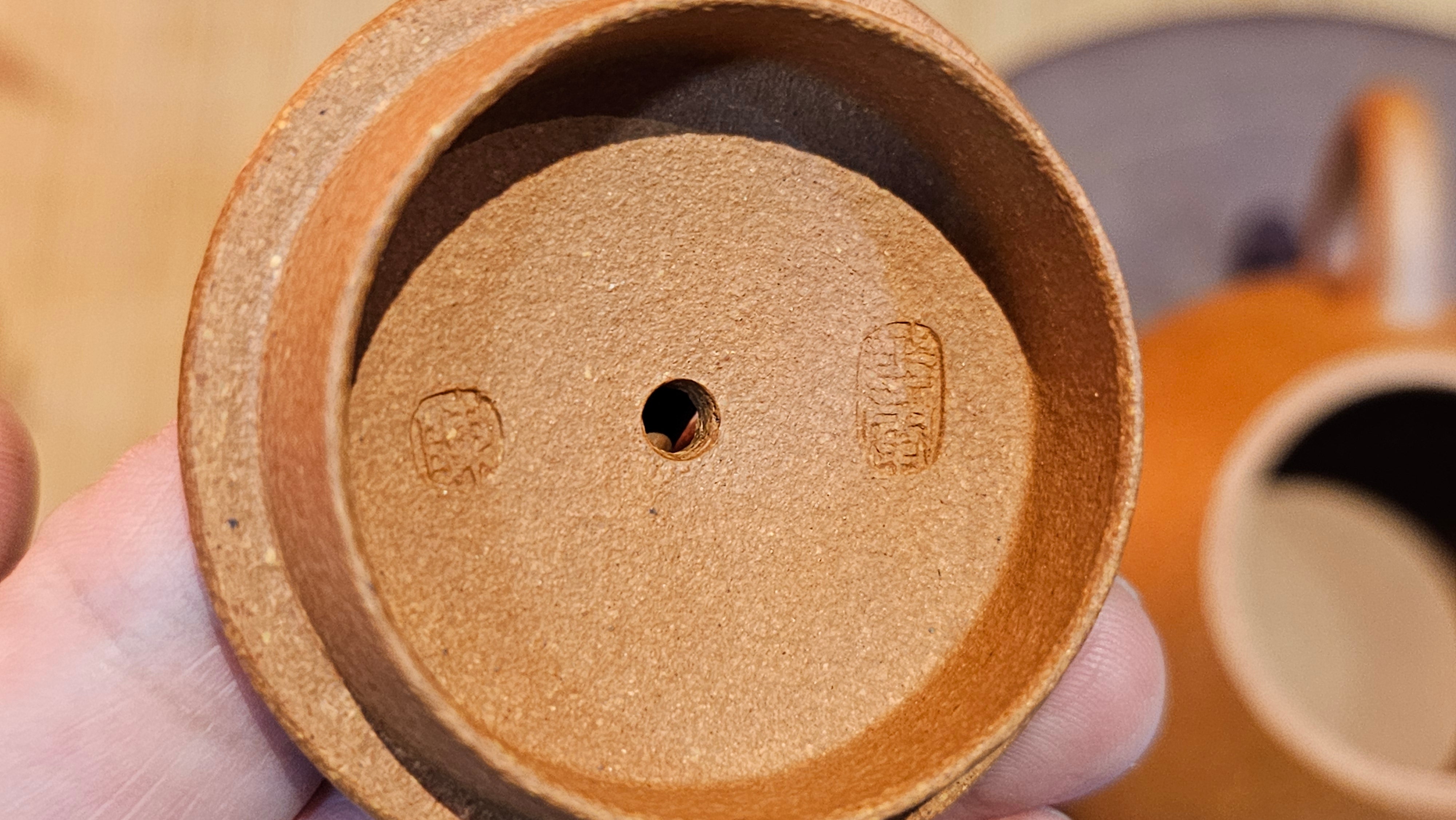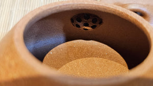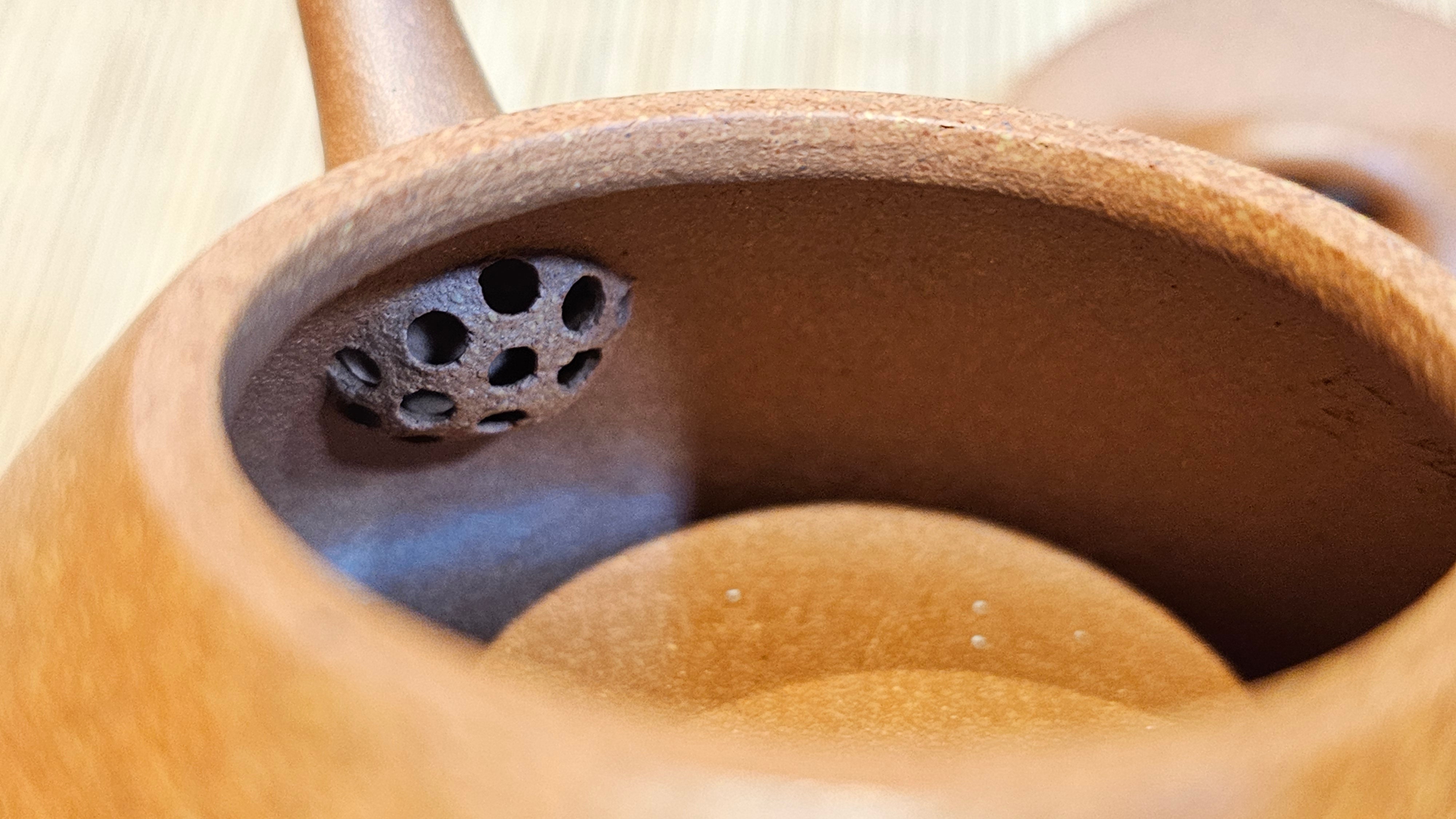 Craftsman Chen also conscientiously sculpted a 手推内球孔 Hand-Pushed Spherical Filter to increase the number of filter holes for a solid and fast pour of tea out, working with the largish diameter spout; and with better catching of tea leaves at the bottom fast while allowing tea to flow out from the upper holes.
