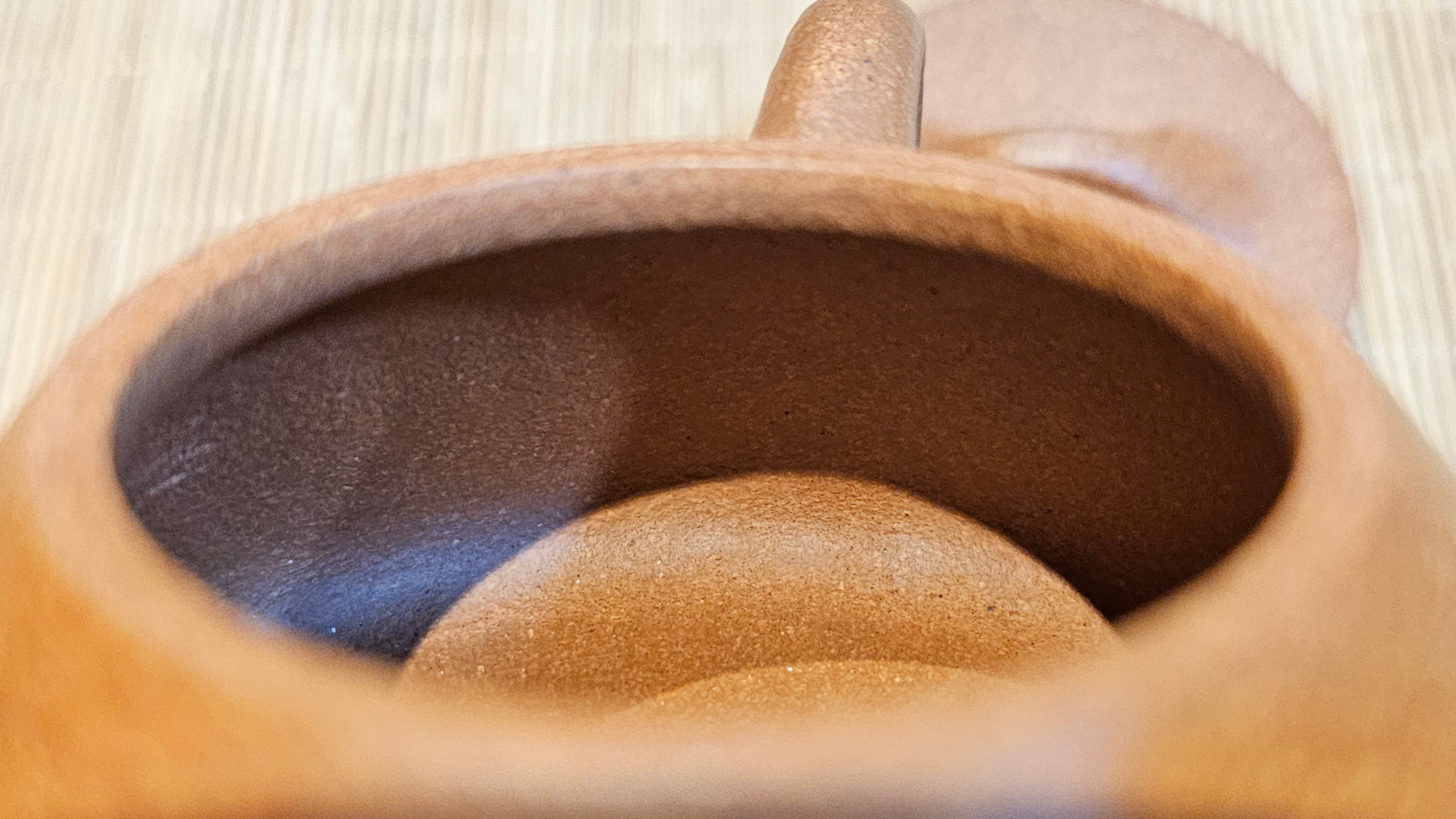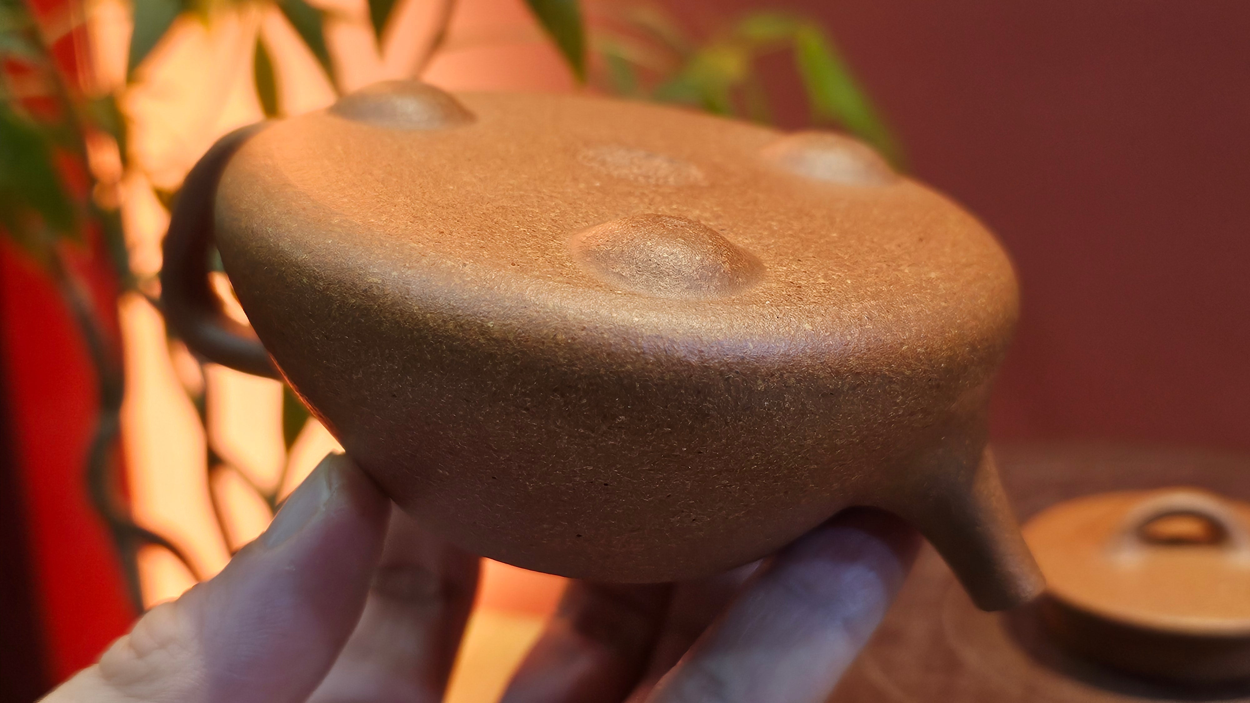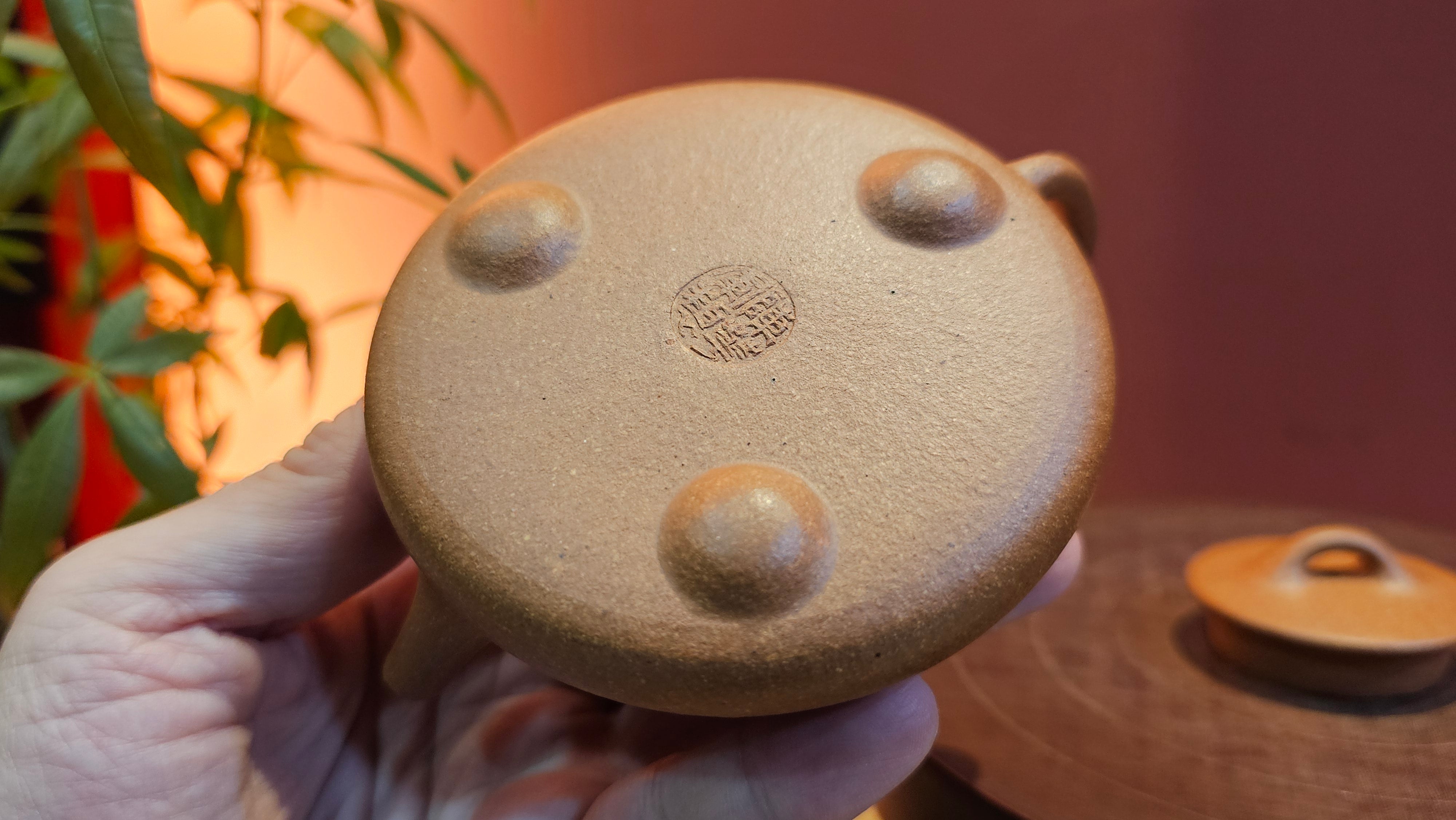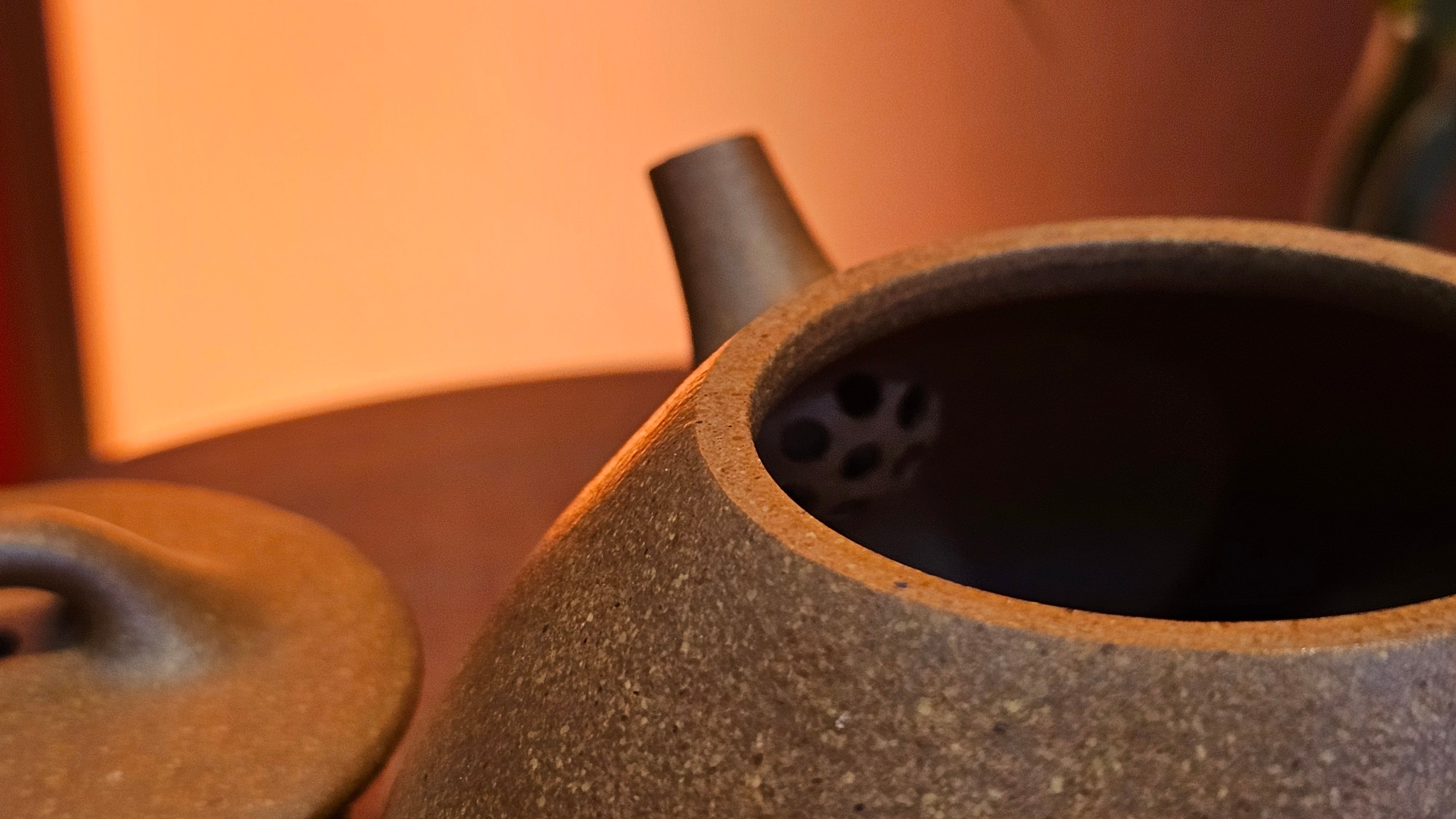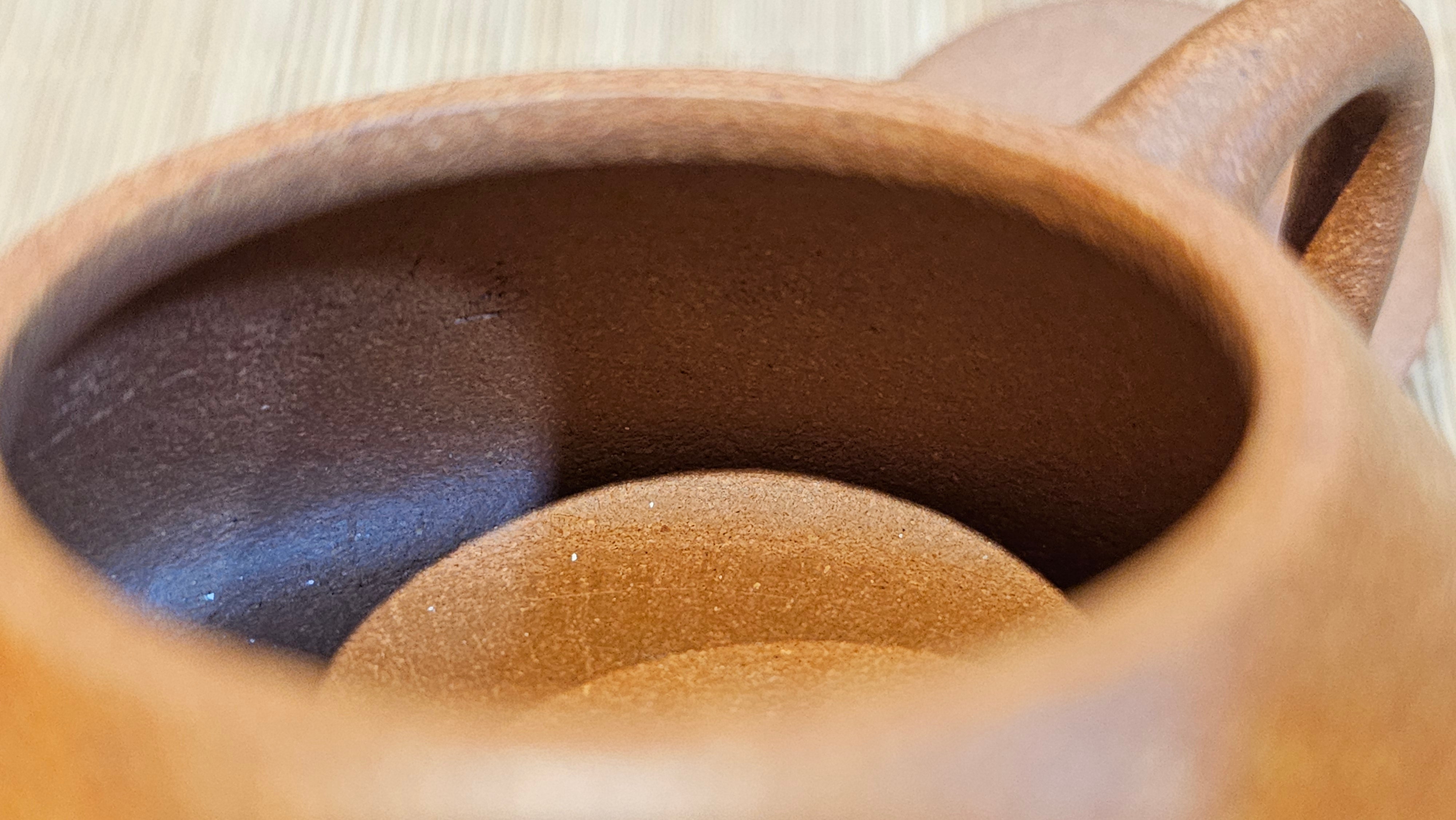 Craftsman Chen also conscientiously sculpted a 手推内球孔 Hand-Pushed Spherical Filter to increase the number of filter holes for a solid and fast pour of tea out, working with the largish diameter spout; and with better catching of tea leaves at the bottom fast while allowing tea to flow out from the upper holes.