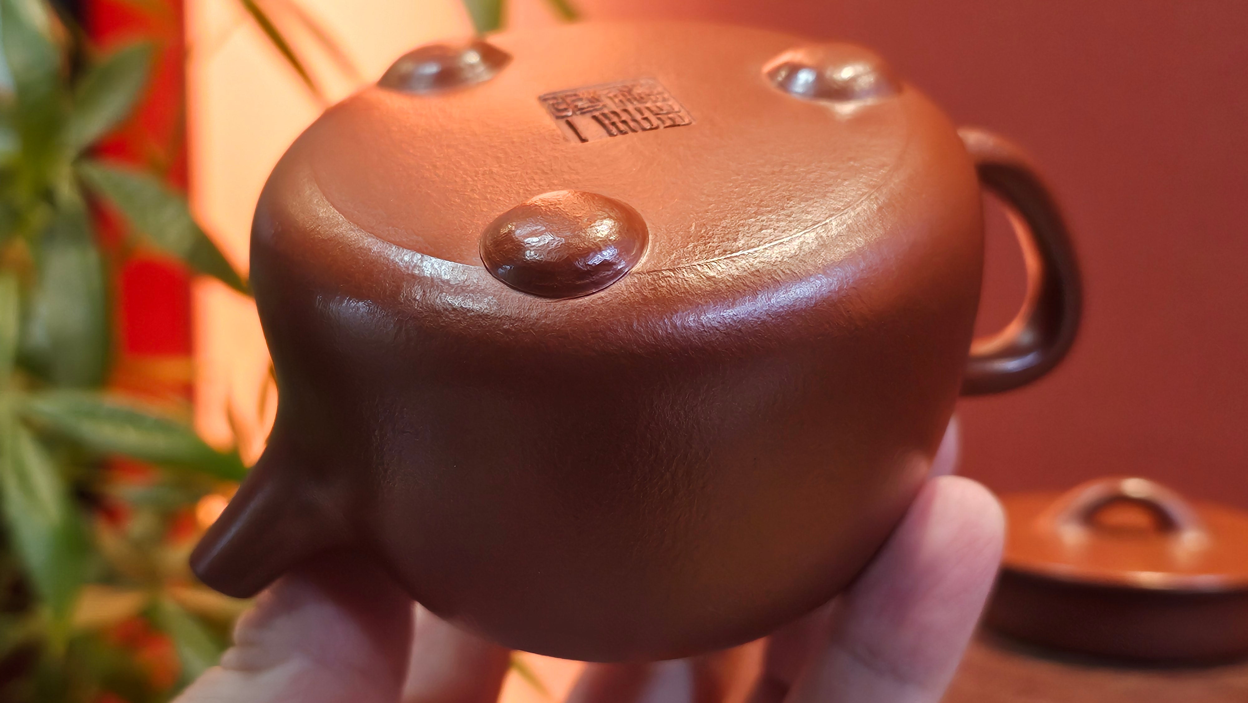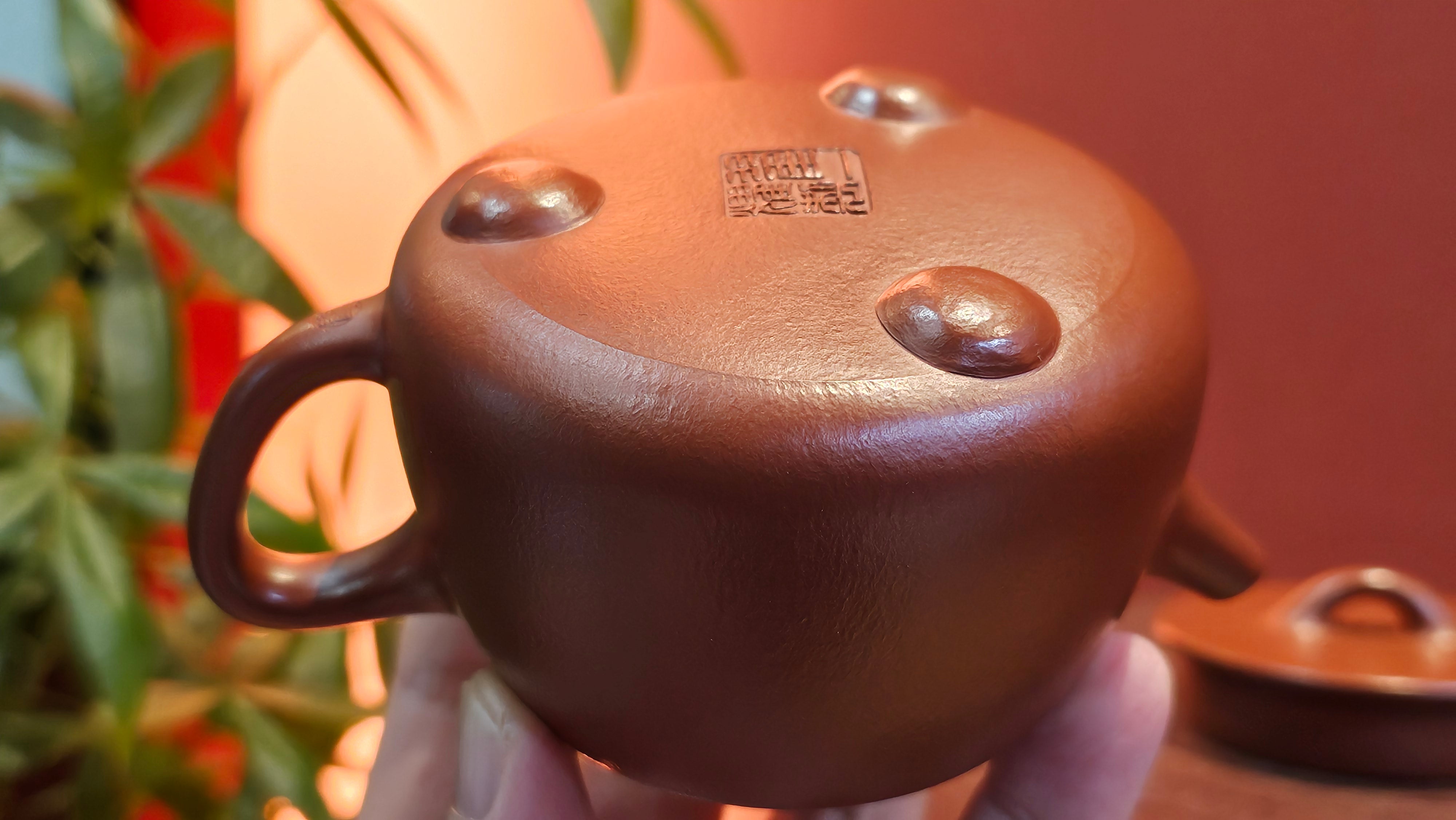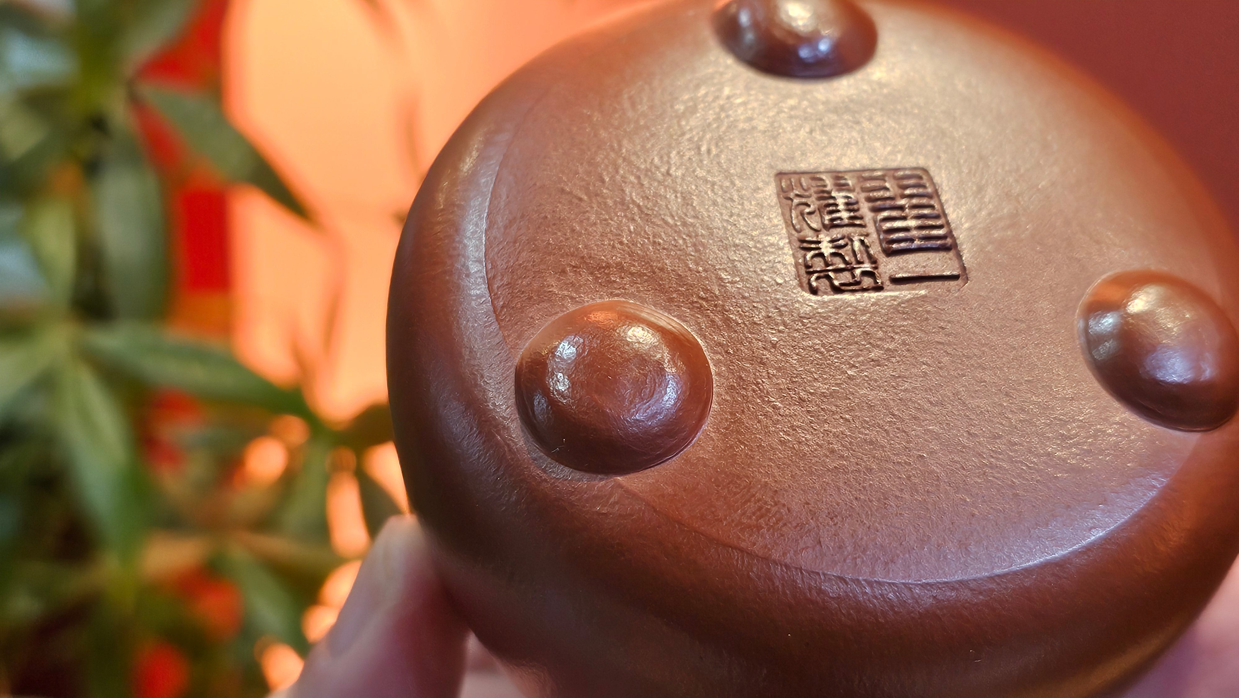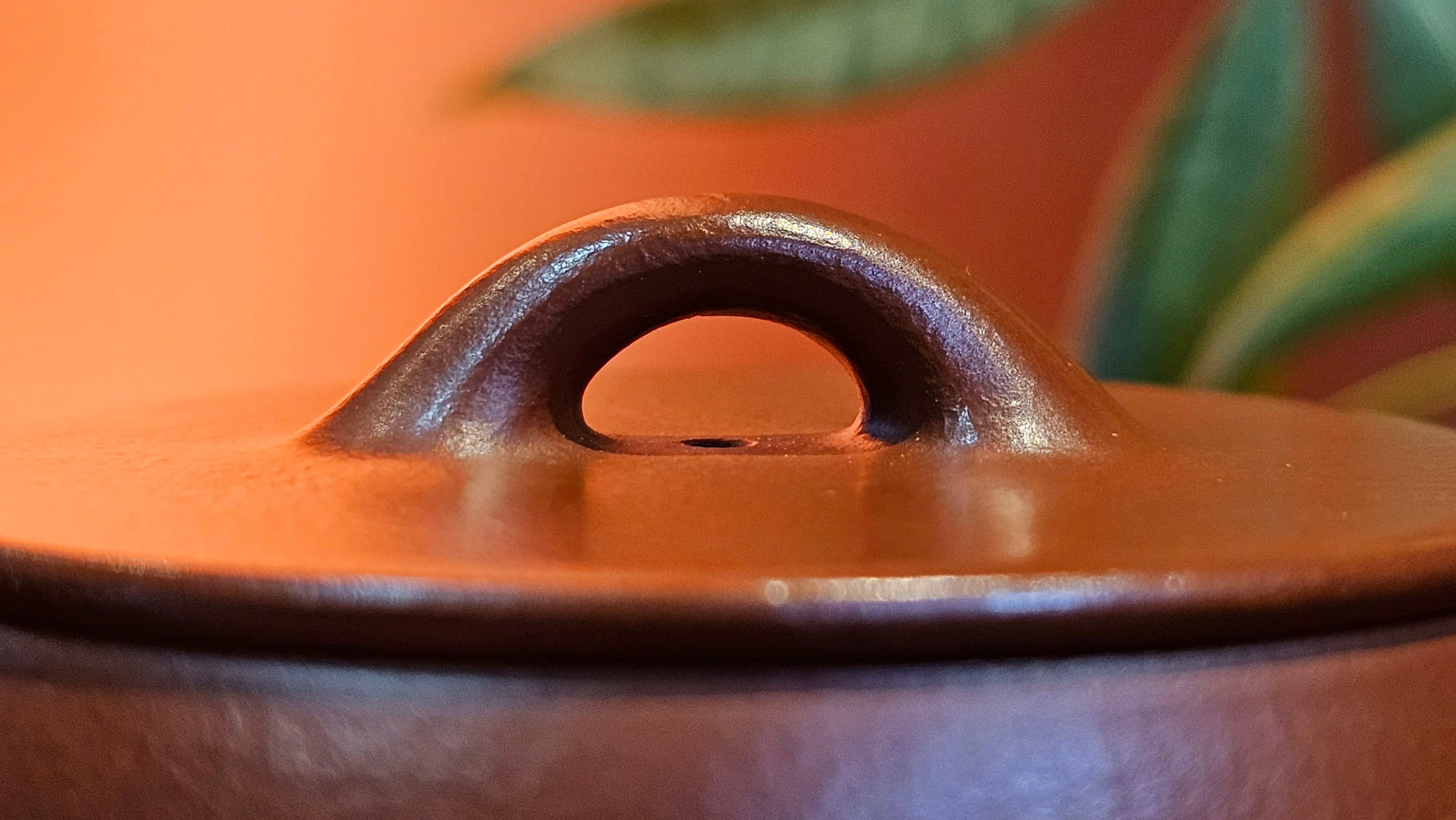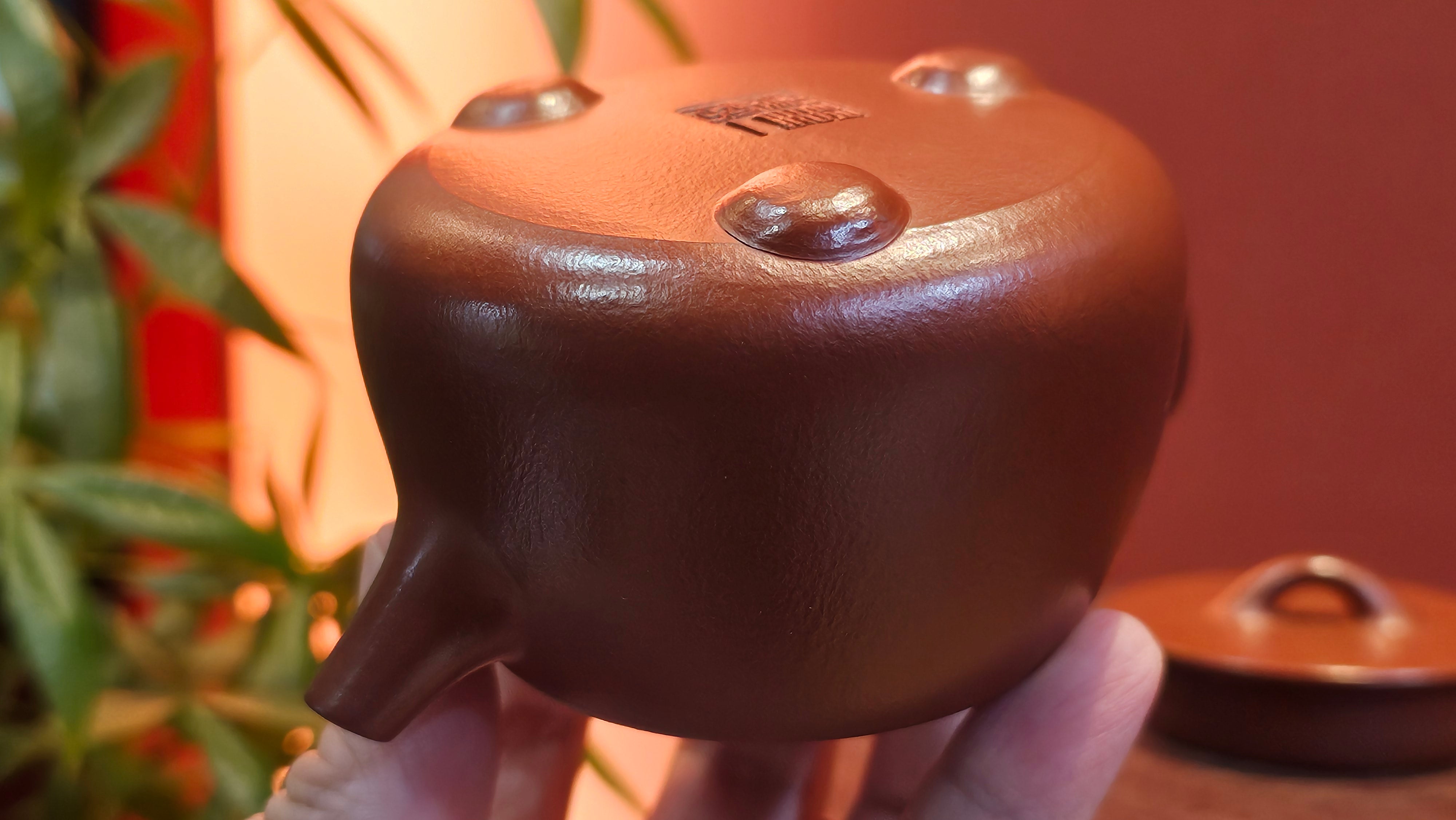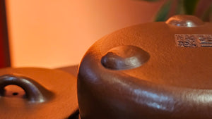 (Dear Friends, during the photo-taking process, five to six separate spotlights above and around, are used.  Looking at the photos, the collar-rim of the lid-body interface thus shows the various spotlights' reflection.  You will therefore see 2 to 3 scattered brighter spots around the collar-rim.  This will allay concerns from some friends, "is the rim-collar having any irregularity in circularity?".   This explanation of the usage of five to six overhead spotlights around, will allay this concern.  Yes, the rim-collars of all these ZiSha works crafted by our Craftsmen ARE REGULAR in CIRCULARITY :-D, and you can rest assured.  Thank you Friends.)