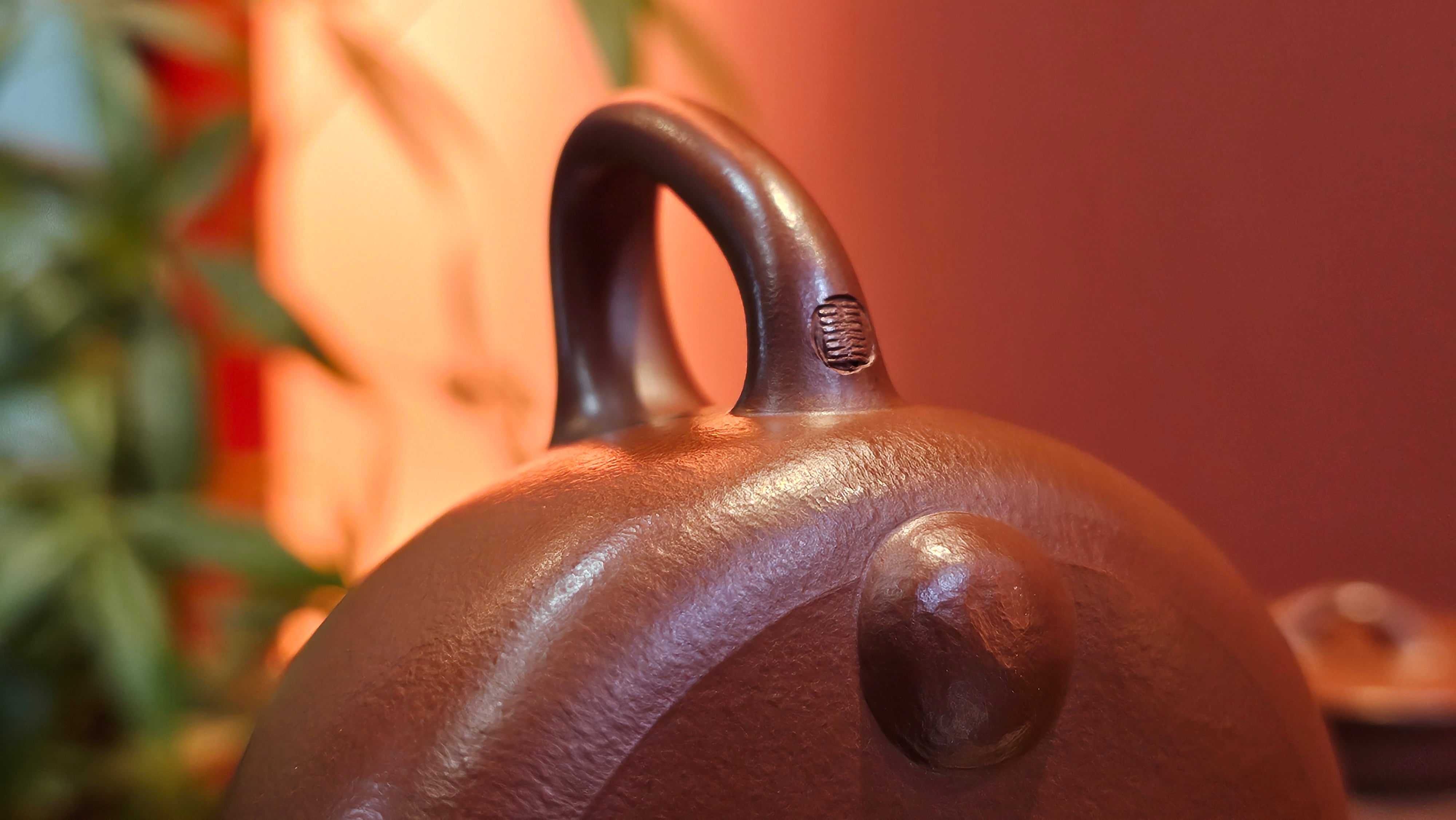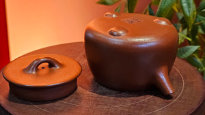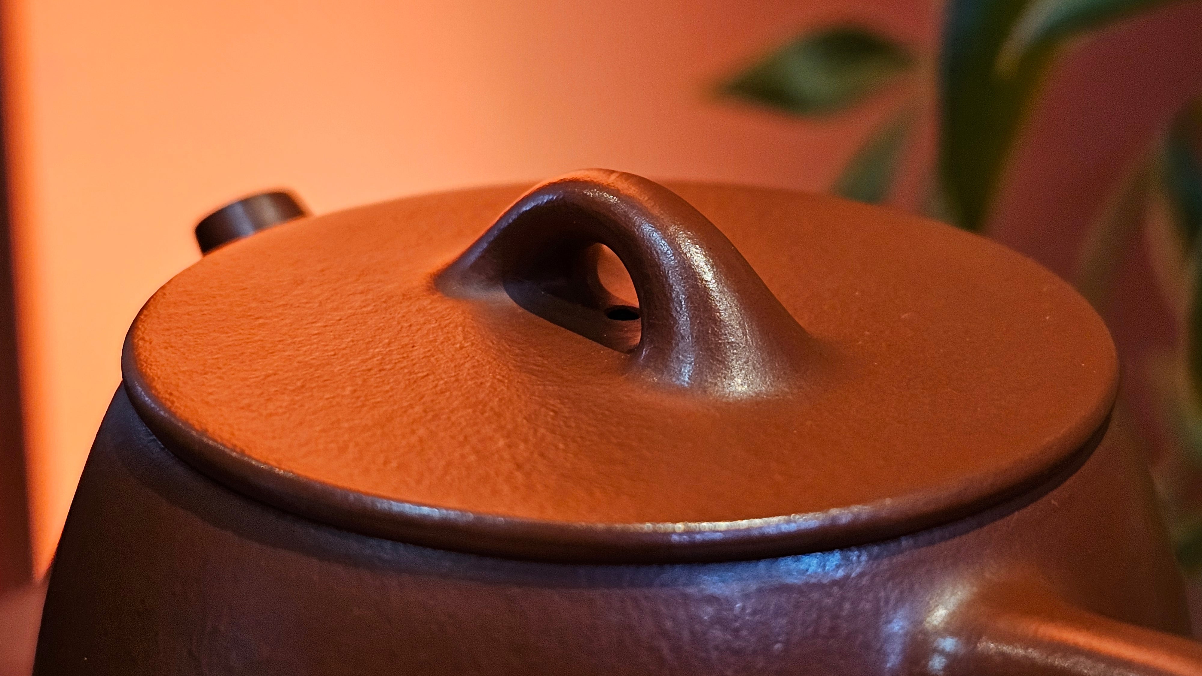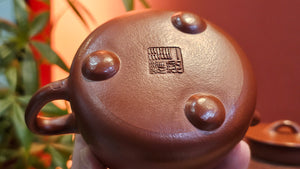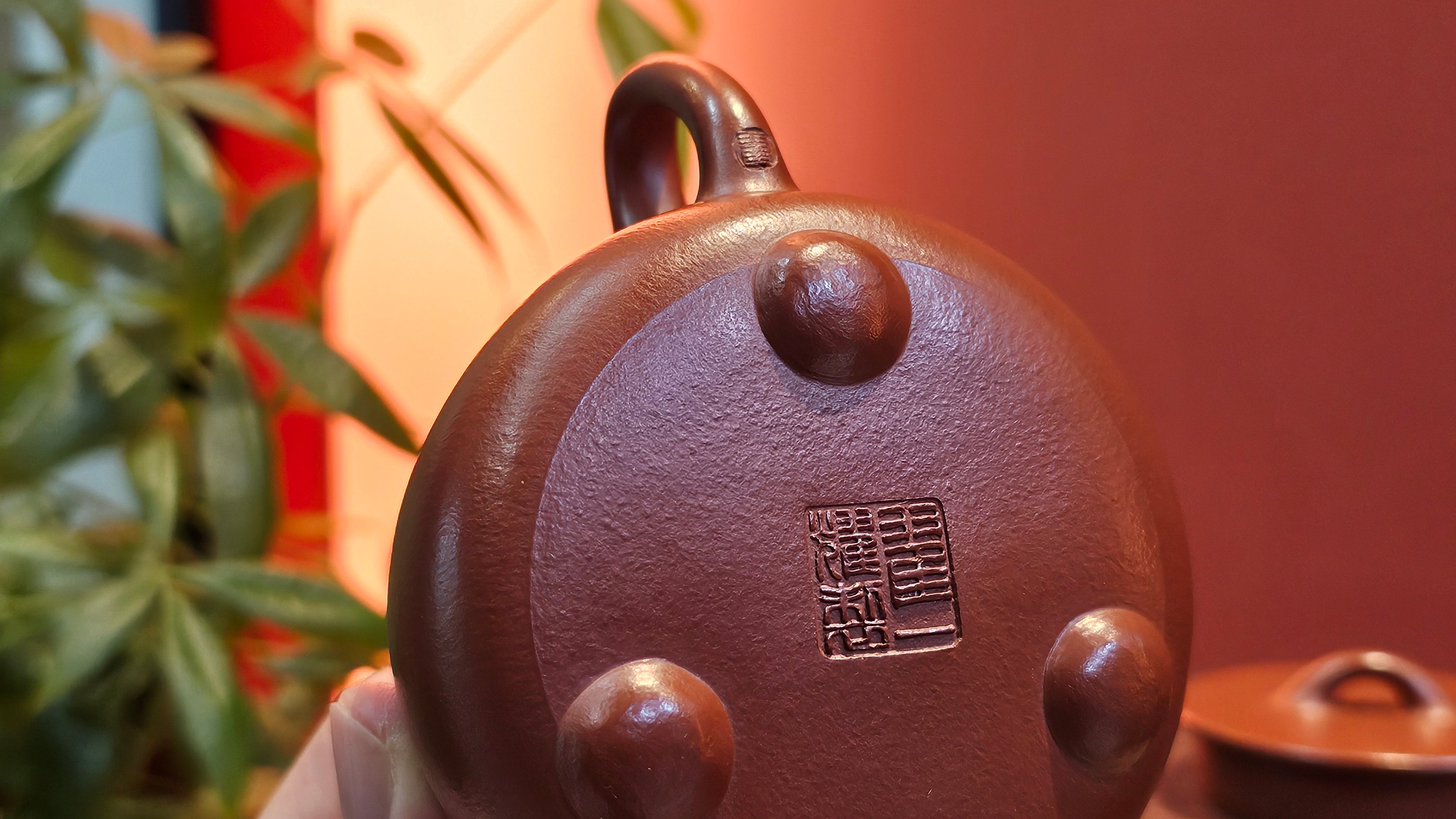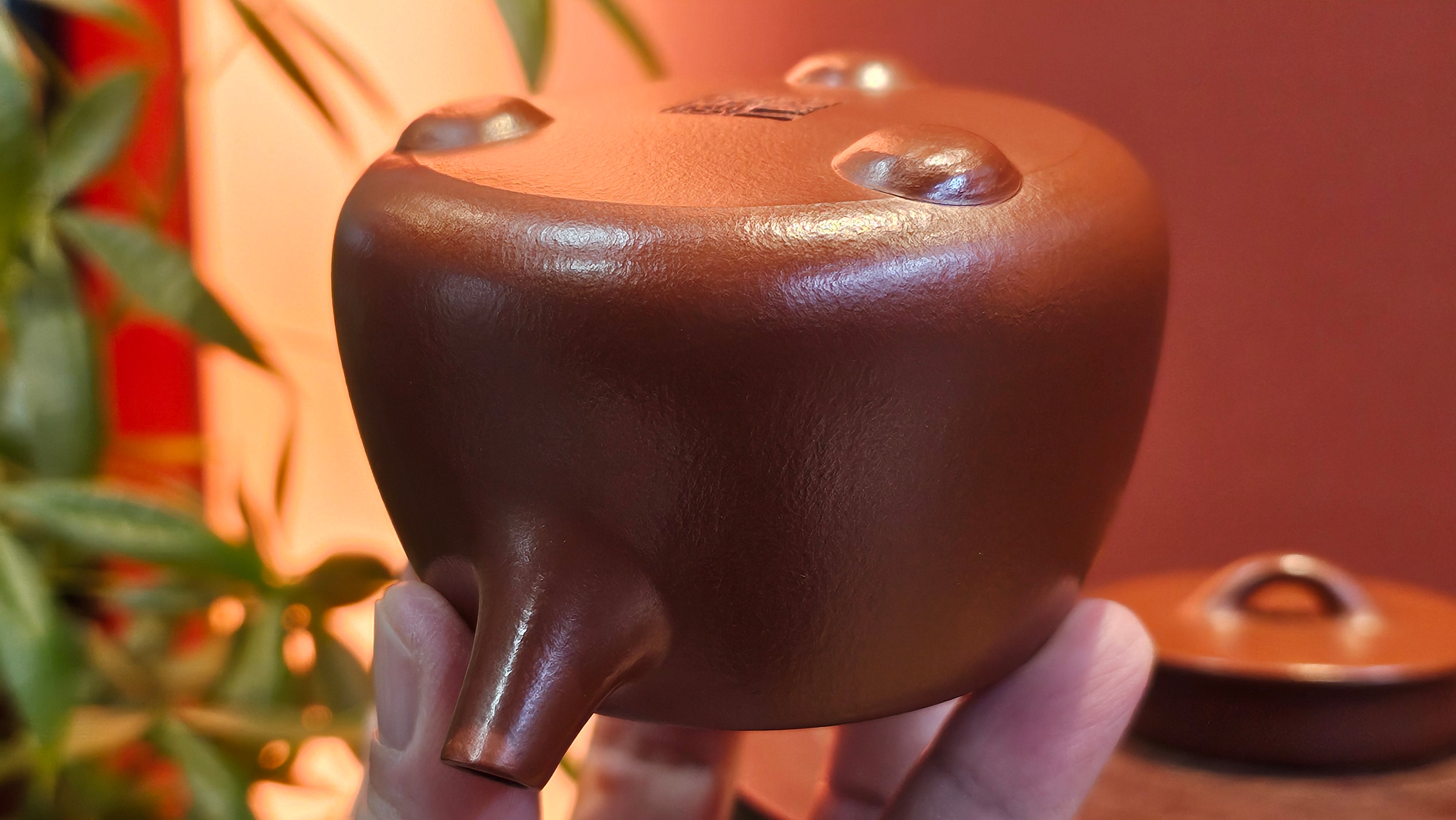 (Dear Friends, during the photo-taking process, five to six separate spotlights above and around, are used.  Looking at the photos, the collar-rim of the lid-body interface thus shows the various spotlights' reflection.  You will therefore see 2 to 3 scattered brighter spots around the collar-rim.  This will allay concerns from some friends, "is the rim-collar having any irregularity in circularity?".   This explanation of the usage of five to six overhead spotlights around, will allay this concern.  Yes, the rim-collars of all these ZiSha works crafted by our Craftsmen ARE REGULAR in CIRCULARITY :-D, and you can rest assured.  Thank you Friends.)