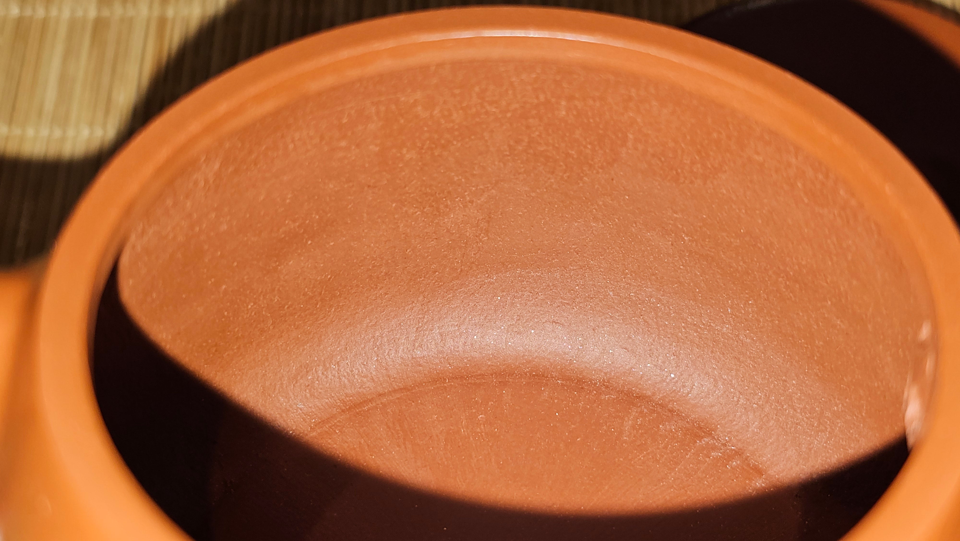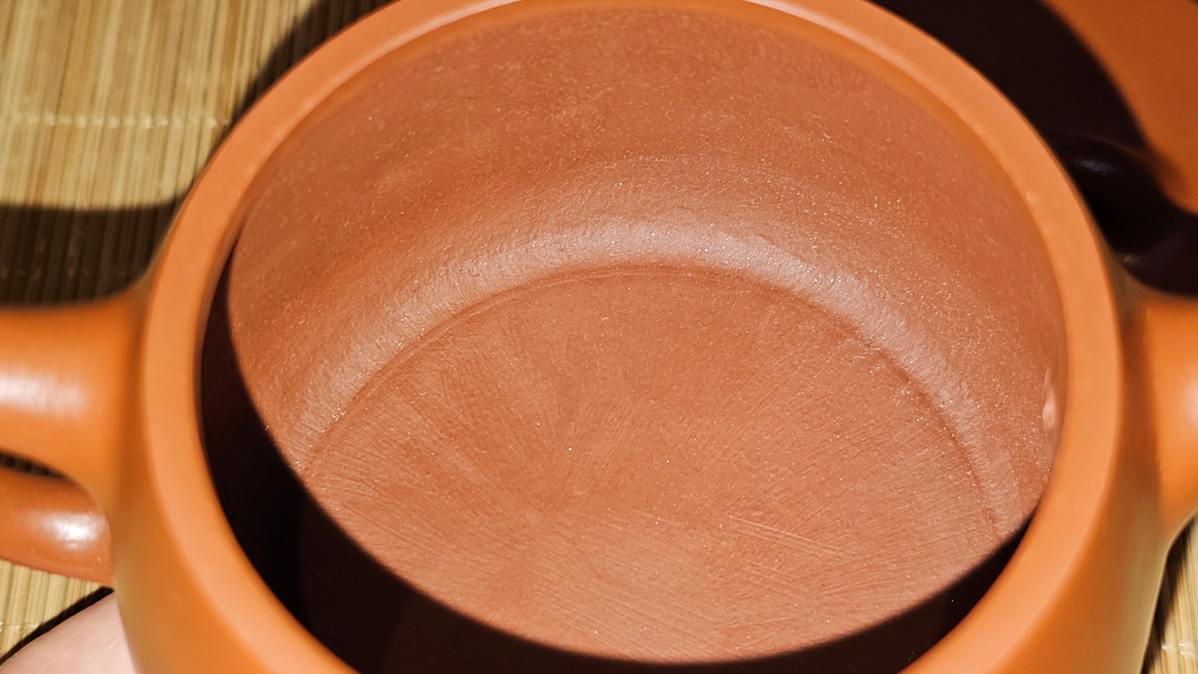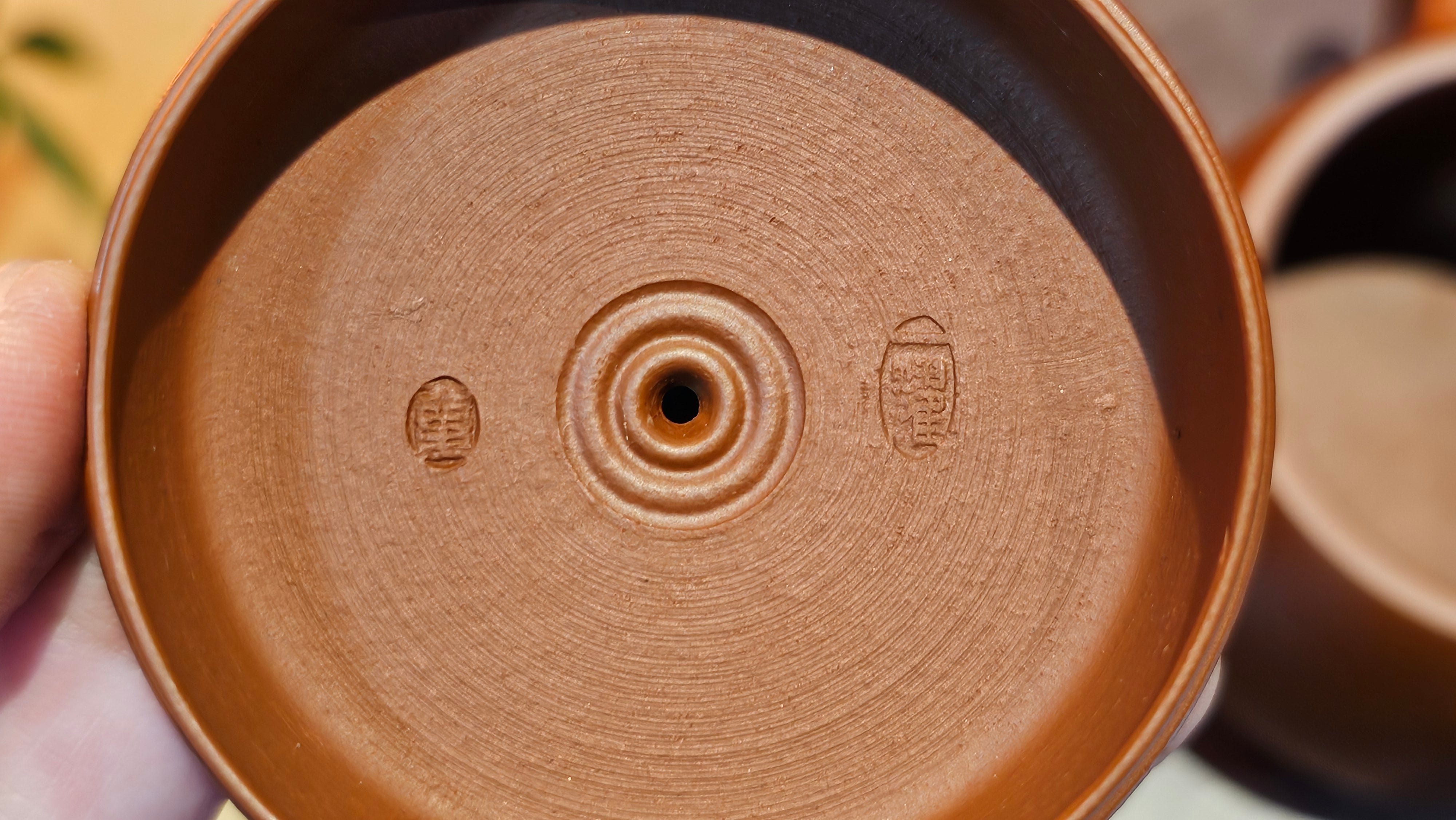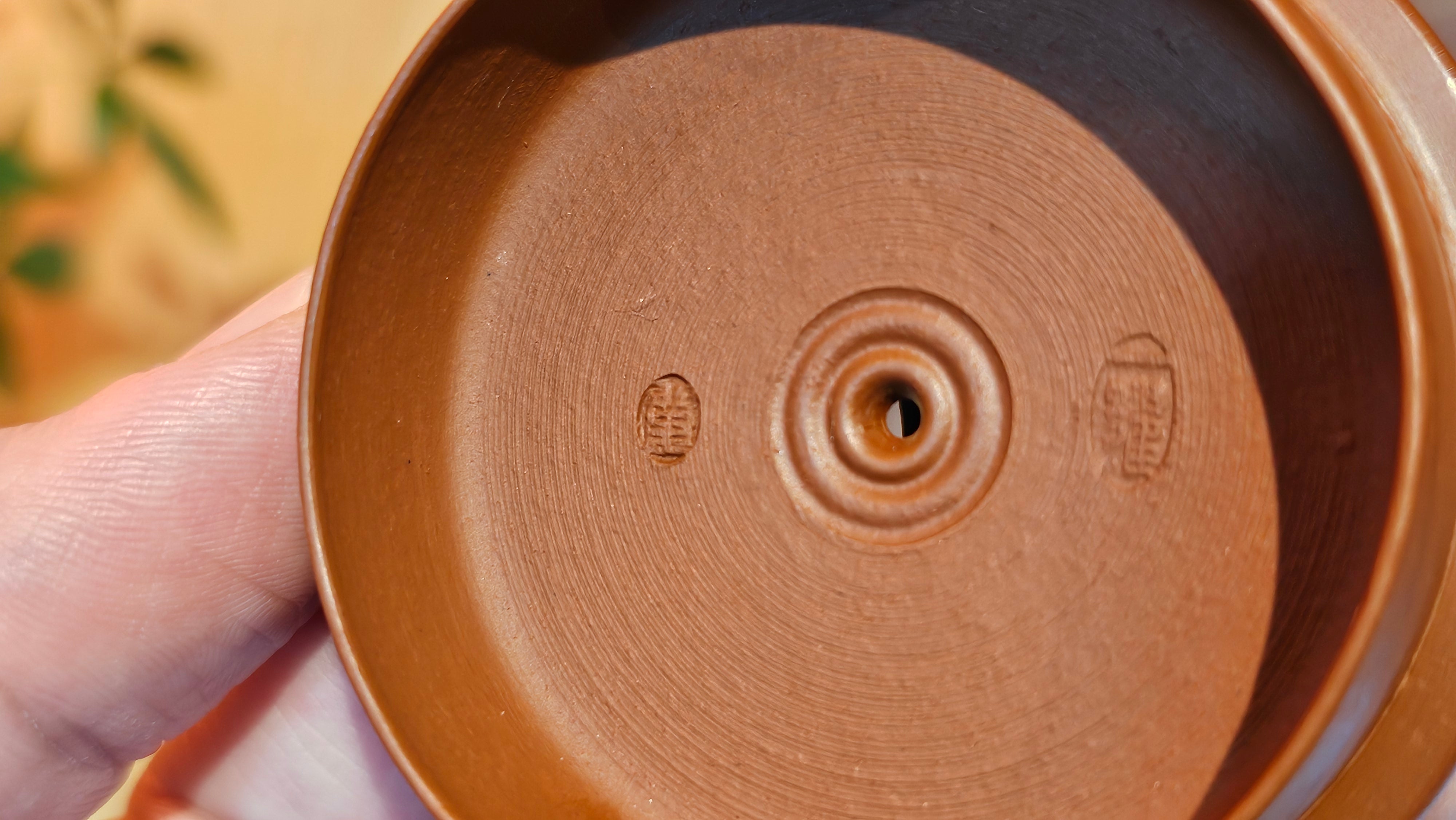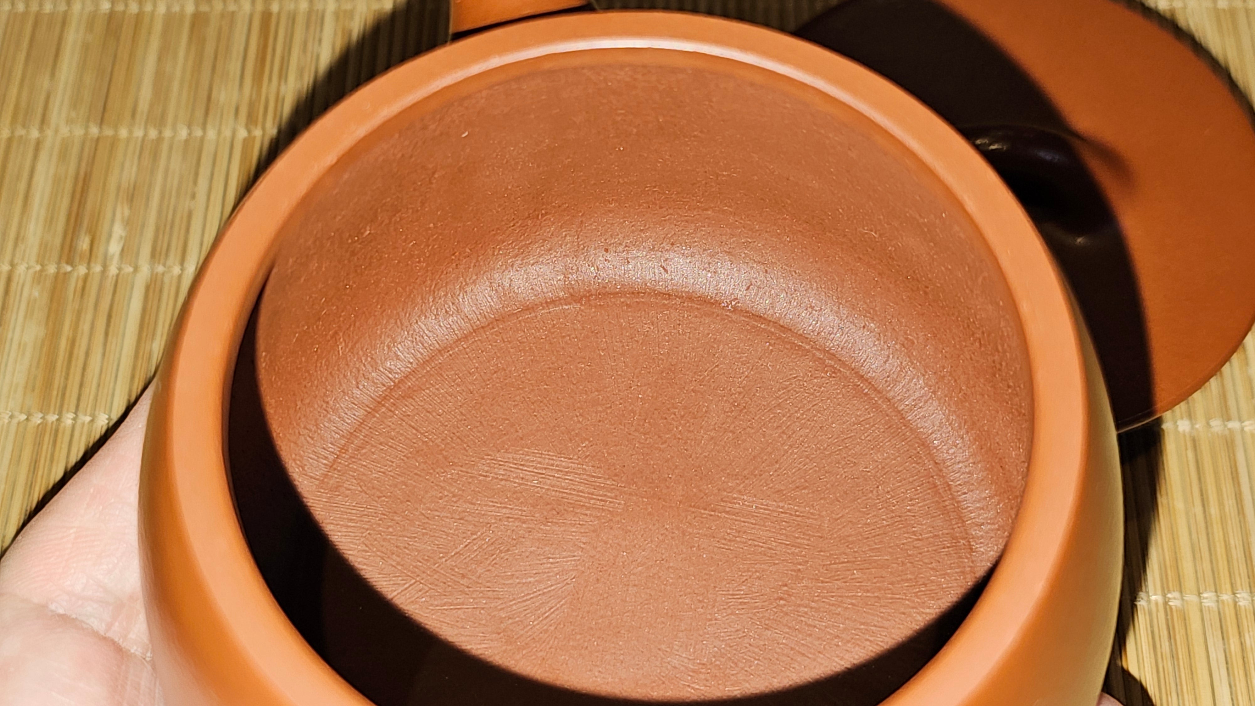 We know having a wider flat lidwill present a bigger challenge for him but he went ahead!  :-D Delightfully, he succeeded and here it is: Notice the very wide top opening, with Craftsman Zhai succeeding!  Notice the wide lid with the completely flat top: with no sinking/no deformation downwards due to the pressure of the kid knob during firing :-D