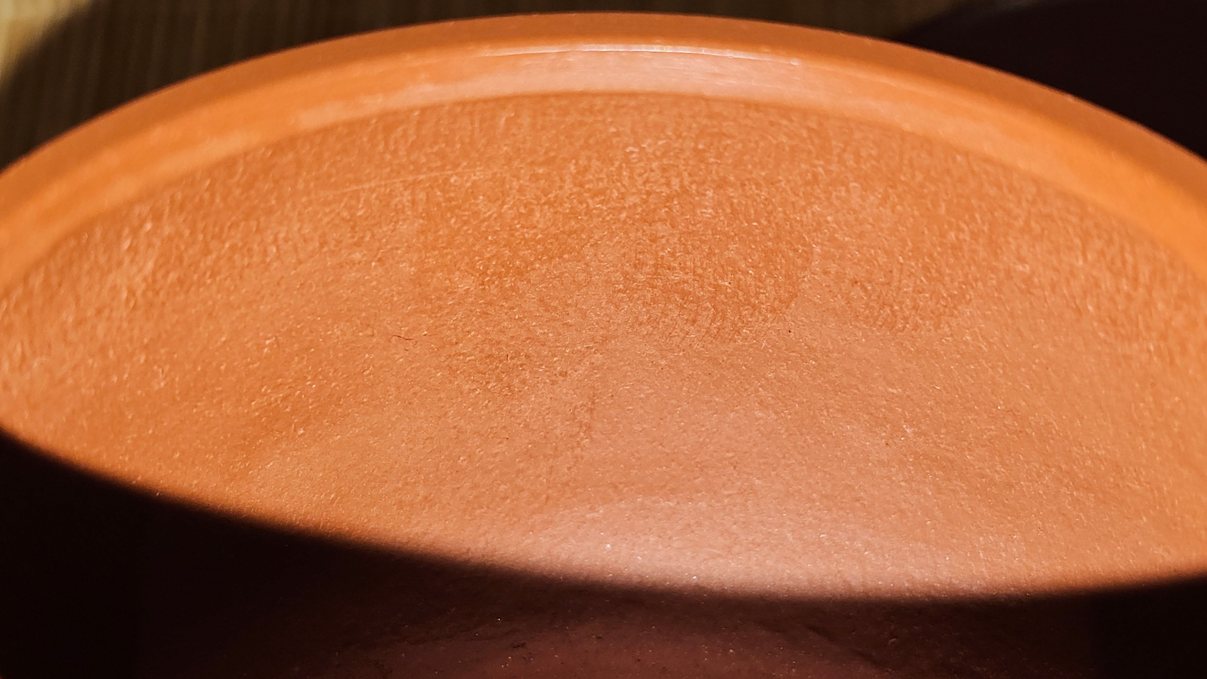 NOT those thick-/irregular-thickness-walled ones which are actually fake "Fully-handmade ZhuNi pots" utilising the cheating new technology: "车一刀 Che Yi Dao": Such ZhuNi pots utilizing Che Yi Dao process, have been sprouting up in the market since early 2022. Che Yi Dao involves a swivelling-rotational cutter that goes around a roughly-finished ZhuNi pot to cut the outer surface into a perfect shape. This cutter obliviates the need of accomplished skill of a true Fully-Handmaking Craftsman. Obviously, Che Yi Dao also absolves the need of a skilled FHM Craftsman to 1)pound the slab into a careful thin-slab, 2)paddle-pat the slab into a uniform shape purely manually.