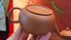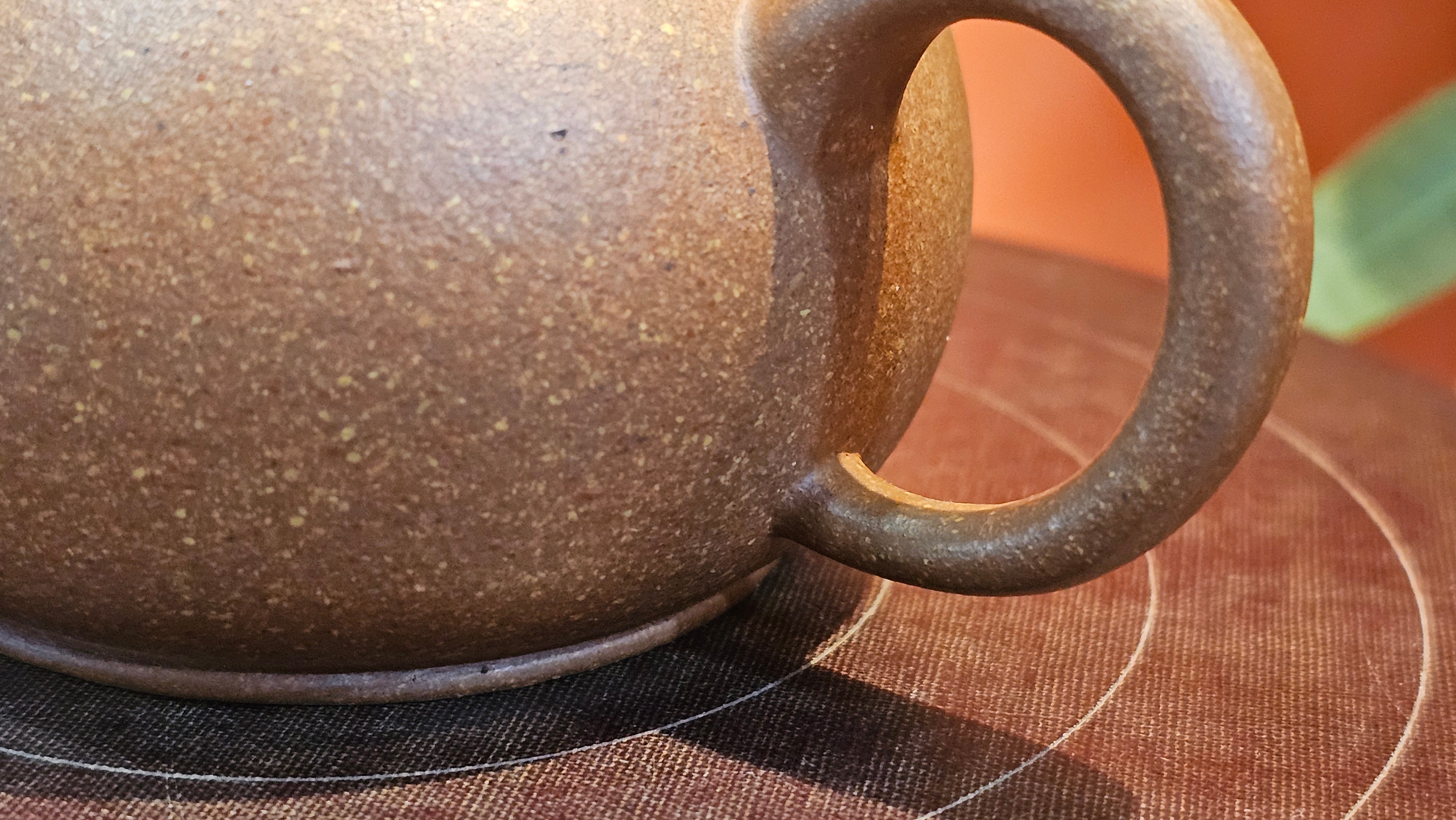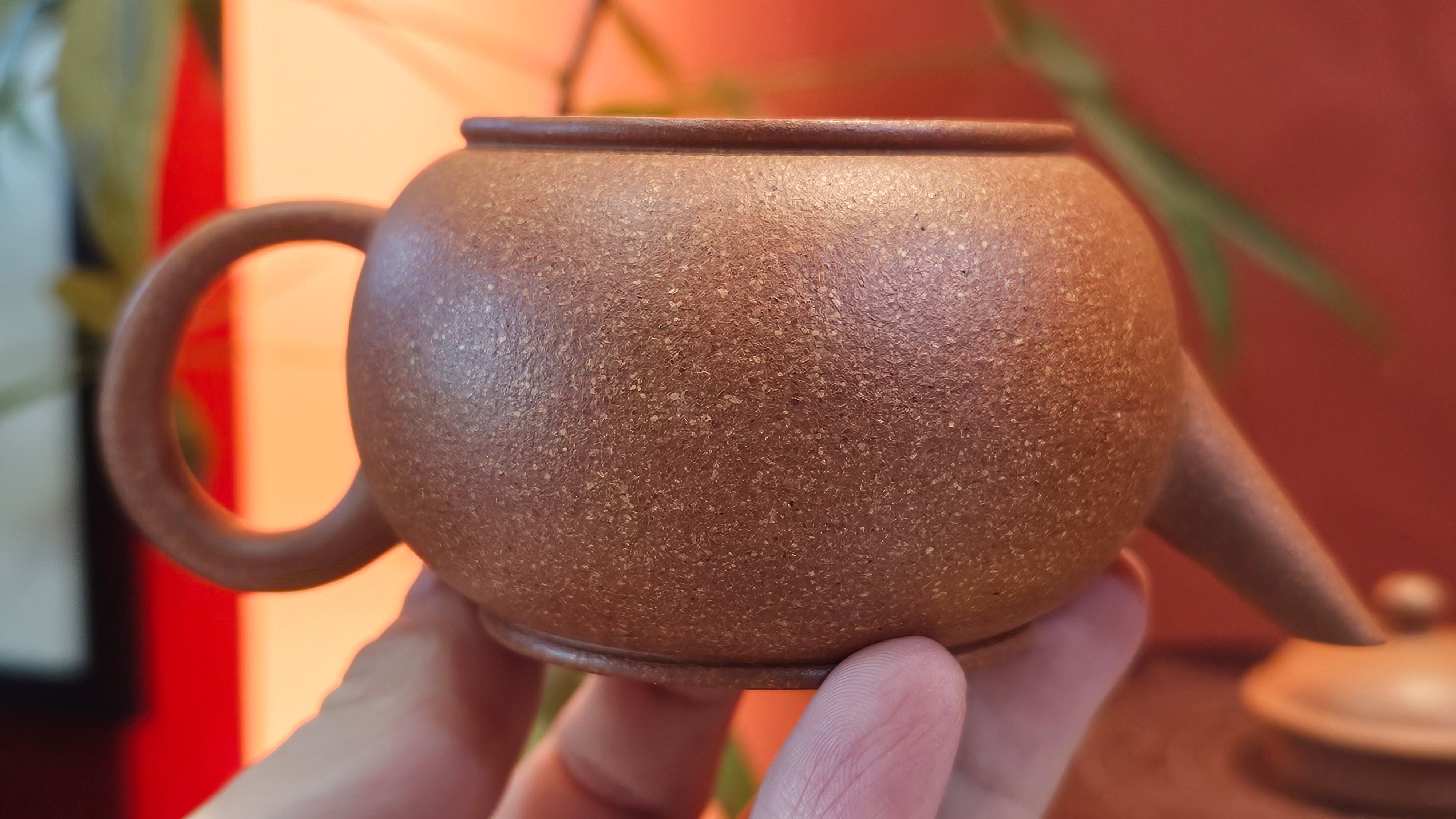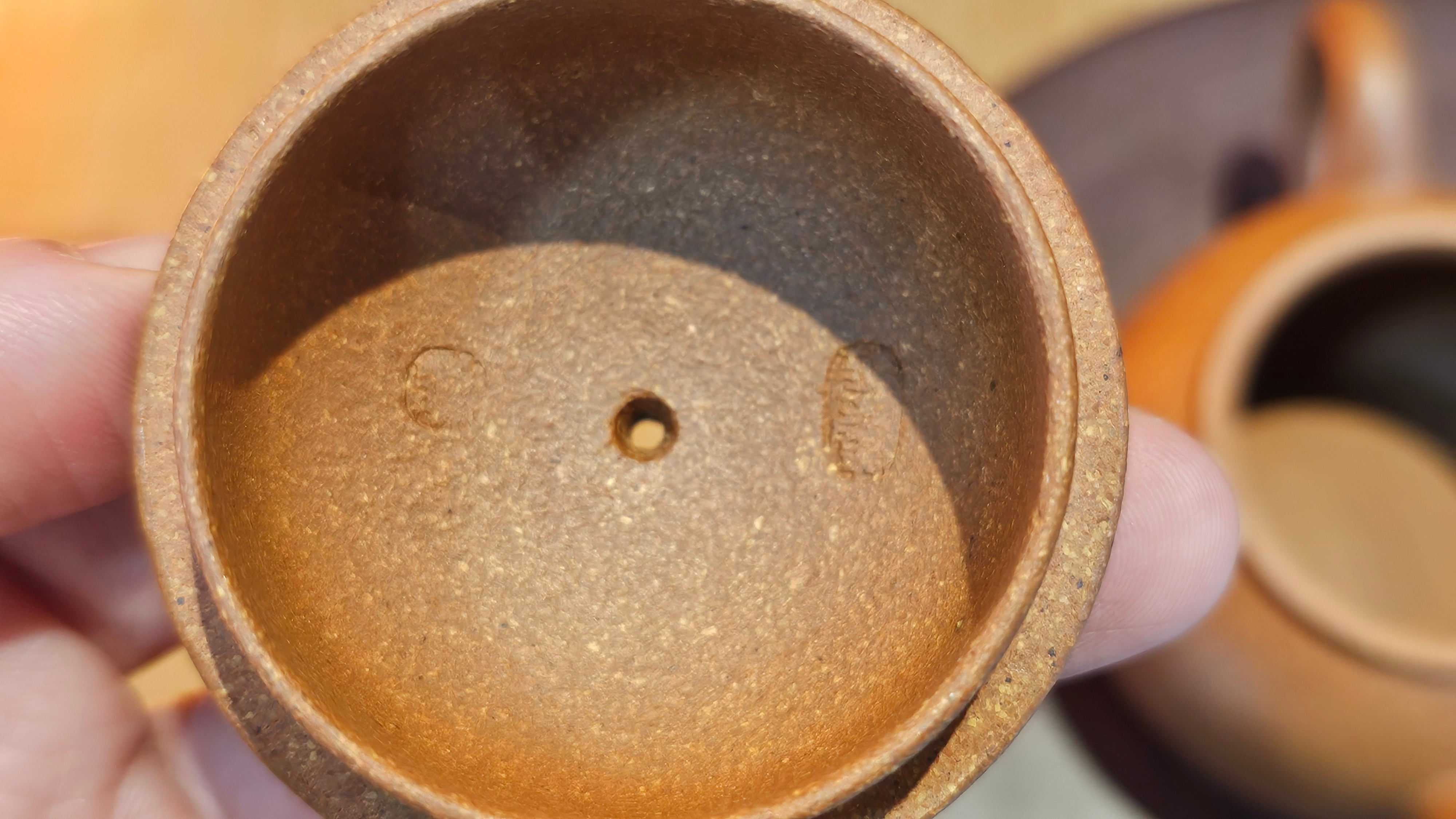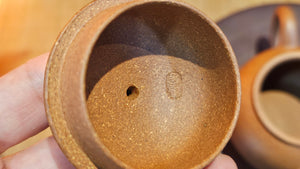 Chen Hua Jun is very familiar with Jiang Po Ni, both Red and Yellow, and here, he brings forth this gentlemanly Shui Ping 水平。 Jiang Po Ni is a combination of Hong Ni, Zi Ni and Lü Ni. Huang (Yellow) Jiang Po Ni is amazingly porous and yet inherently contains a fair degree of Hong Ni within, and with a higher percentage of Lü Ni within than Hong (Red) Jiang Po Ni. Huang Jiang Po Ni is one of the most amazing unadulterated ZiSha clay with amazing Patina formation through use. It is very rewarding to use Huang Jiang Po Ni, both for its amazing Patina formation and its excellent pairings with both Sheng and Shu Pu Er.